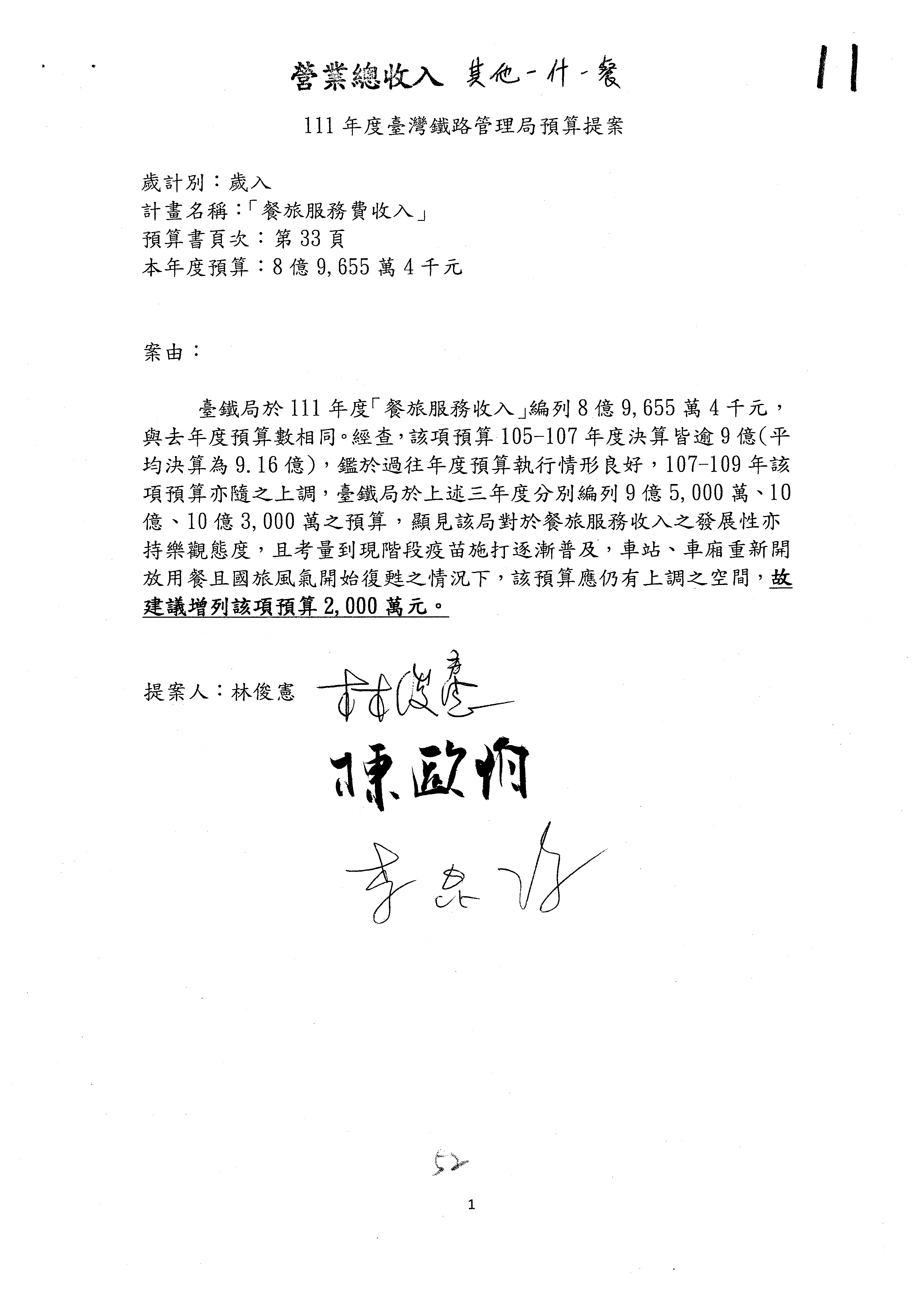 1.業務總收入:原列337億2,456萬3千元,增列「業務收入」2億元,其餘均照列,改列為339億2,456萬3千元。