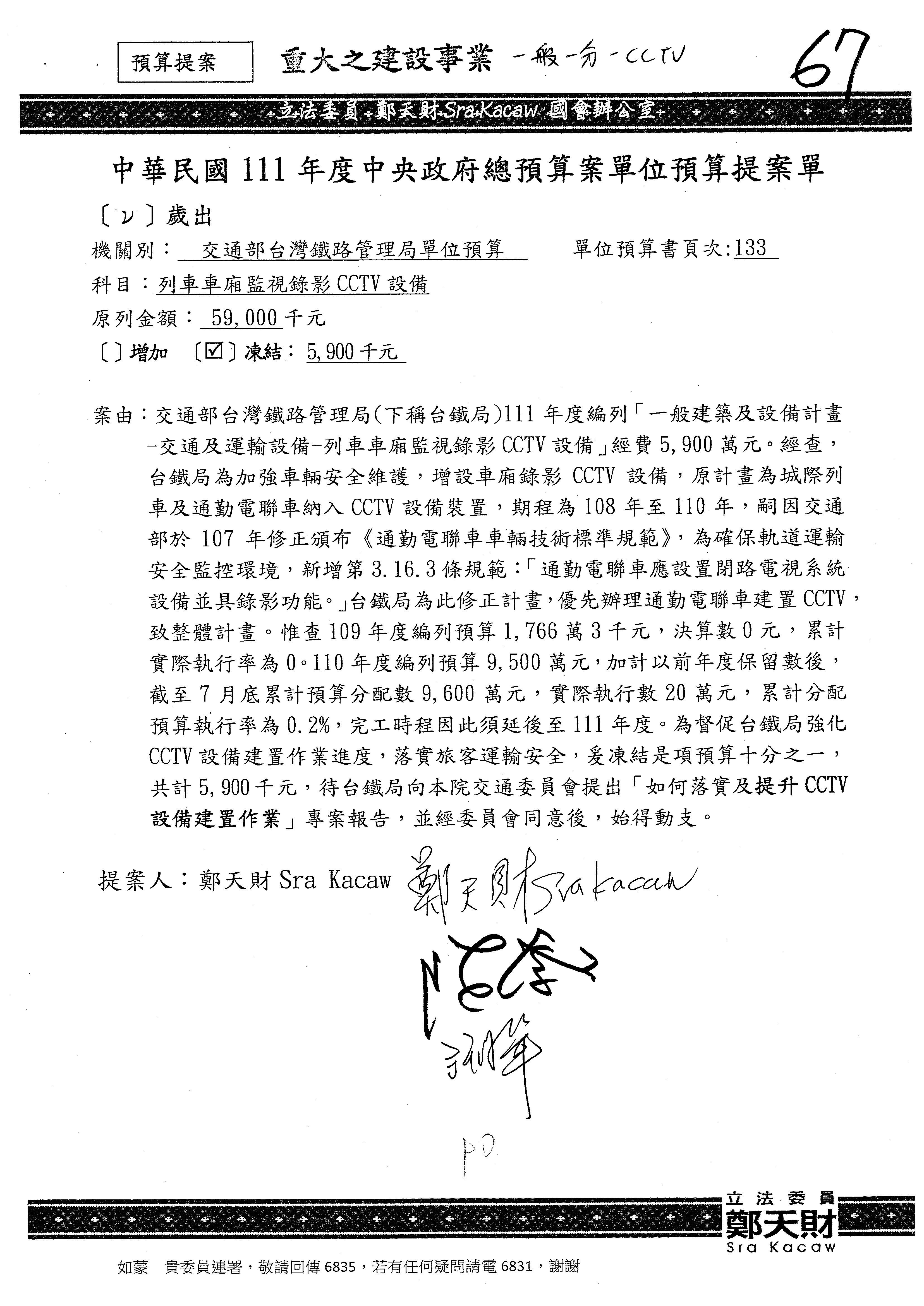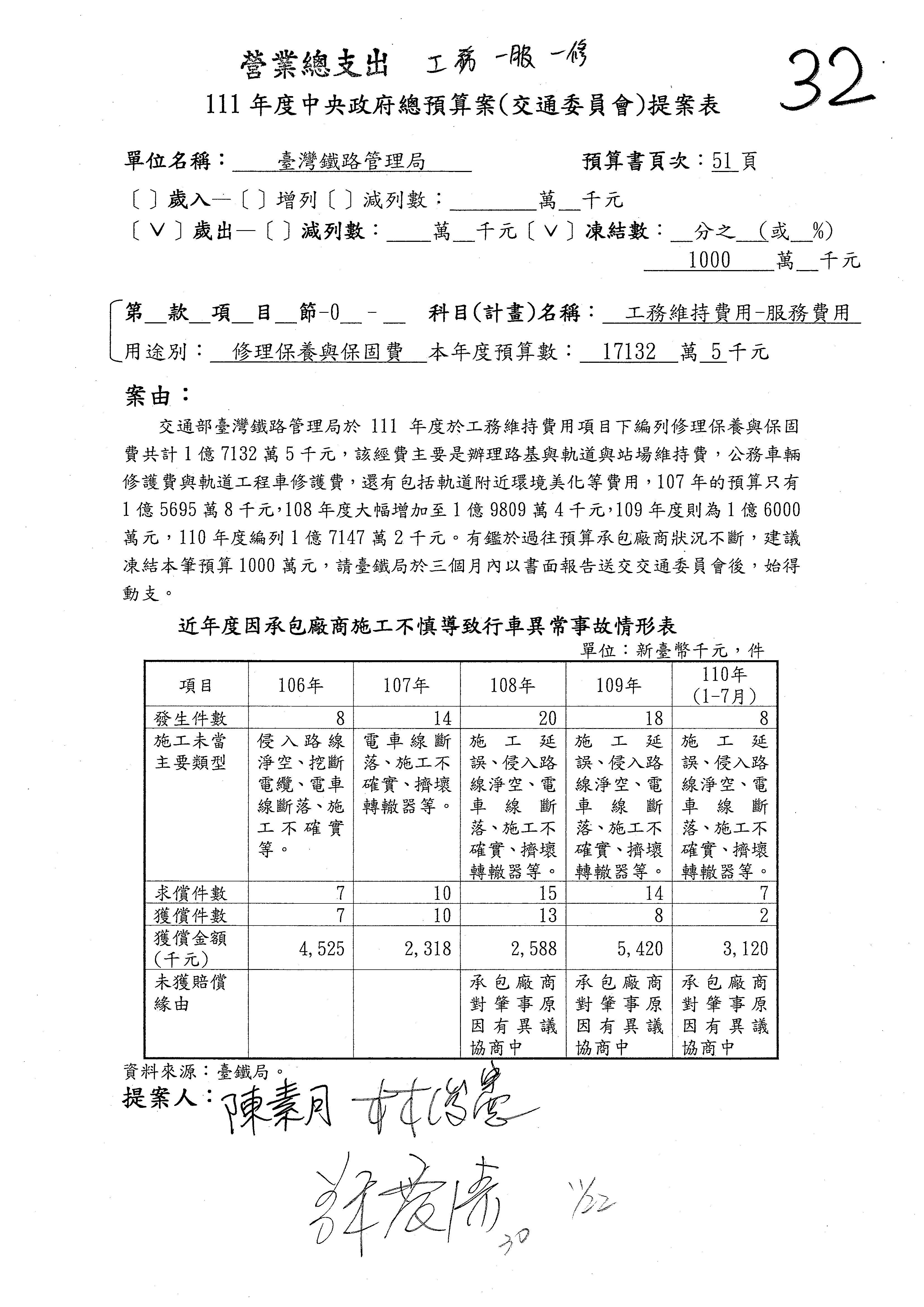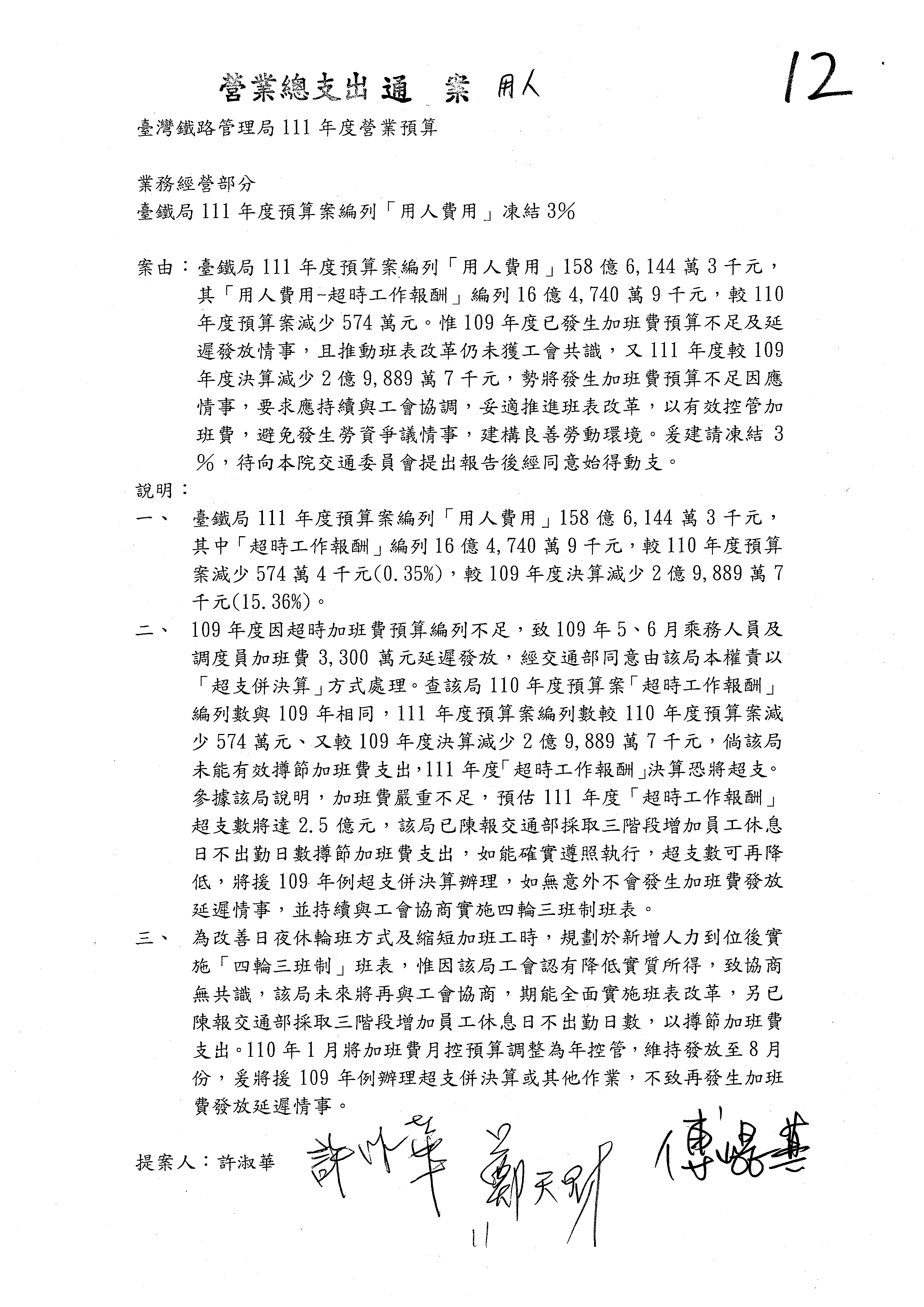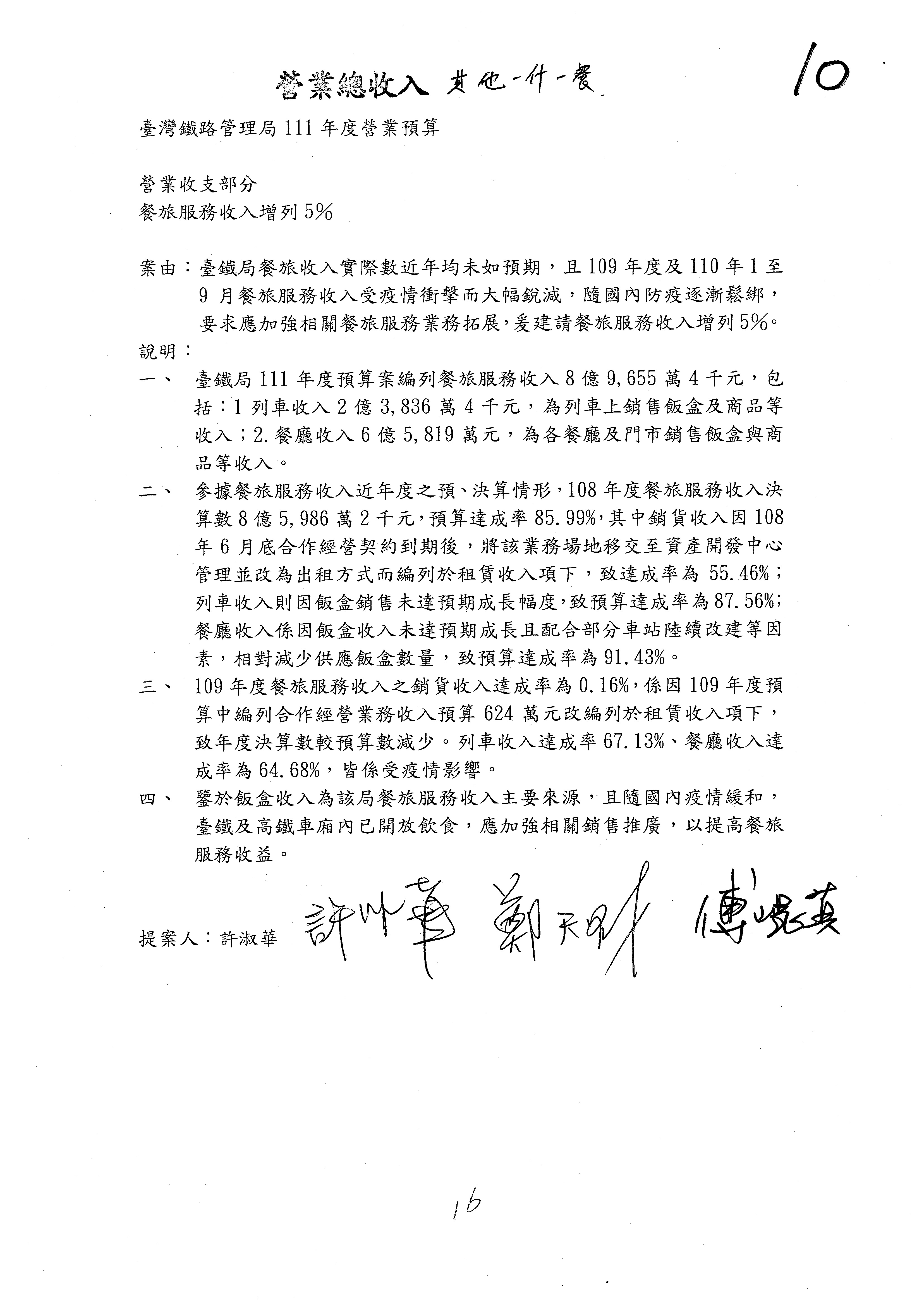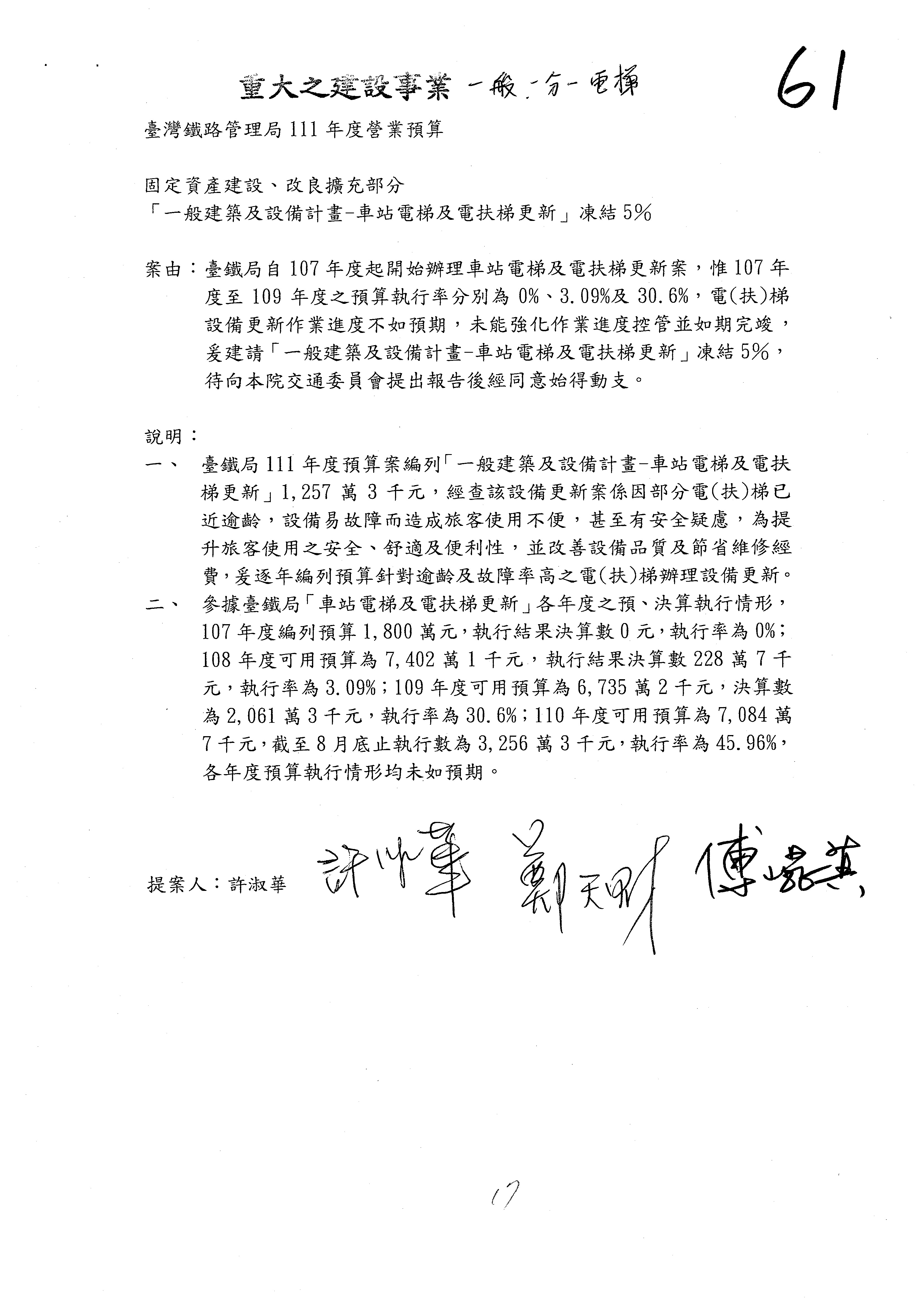 杜局長微:許淑華委員的提案,案由是鑑於107年10月間發生普悠瑪列車出軌事故,該局於編列109、110年……
