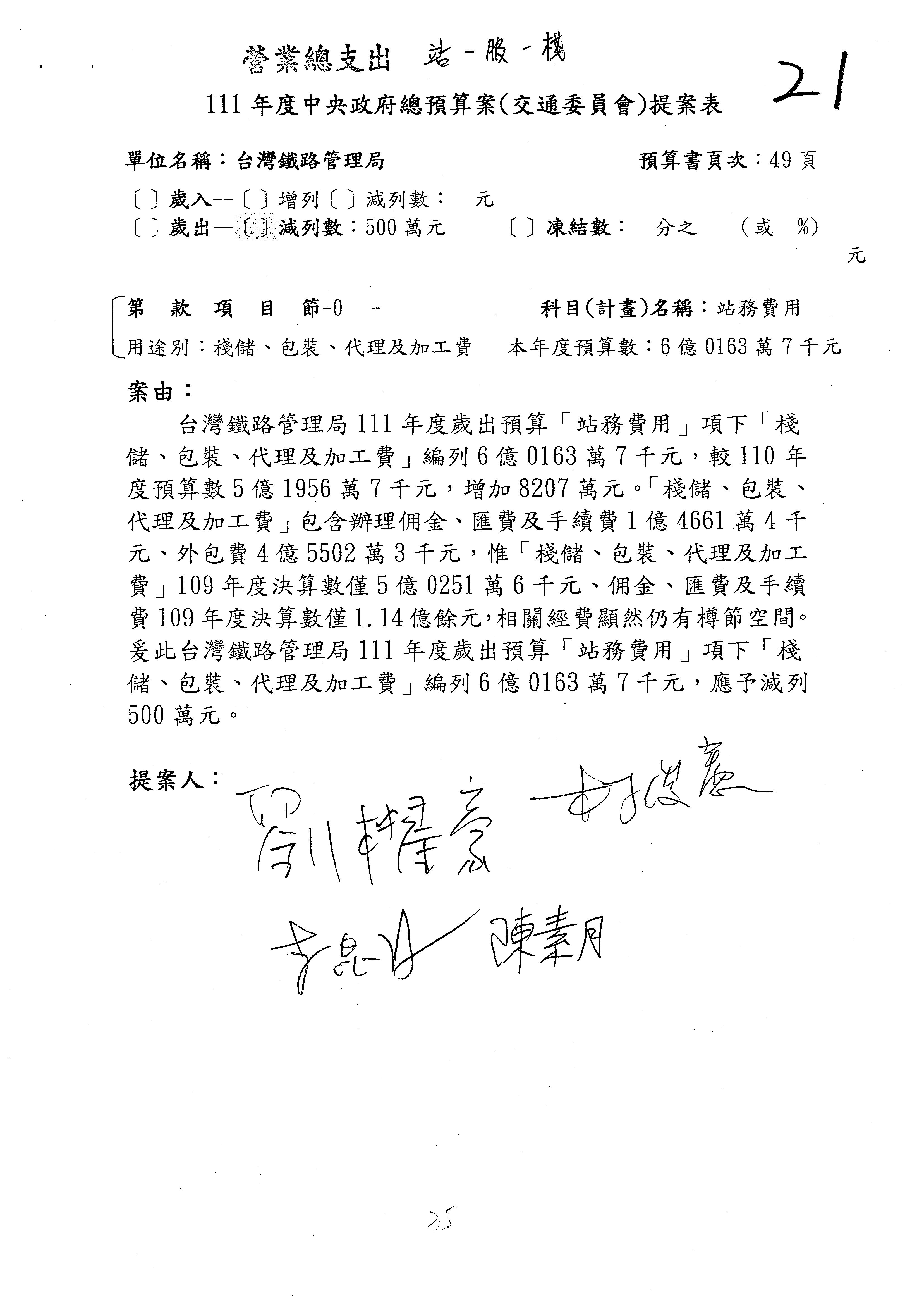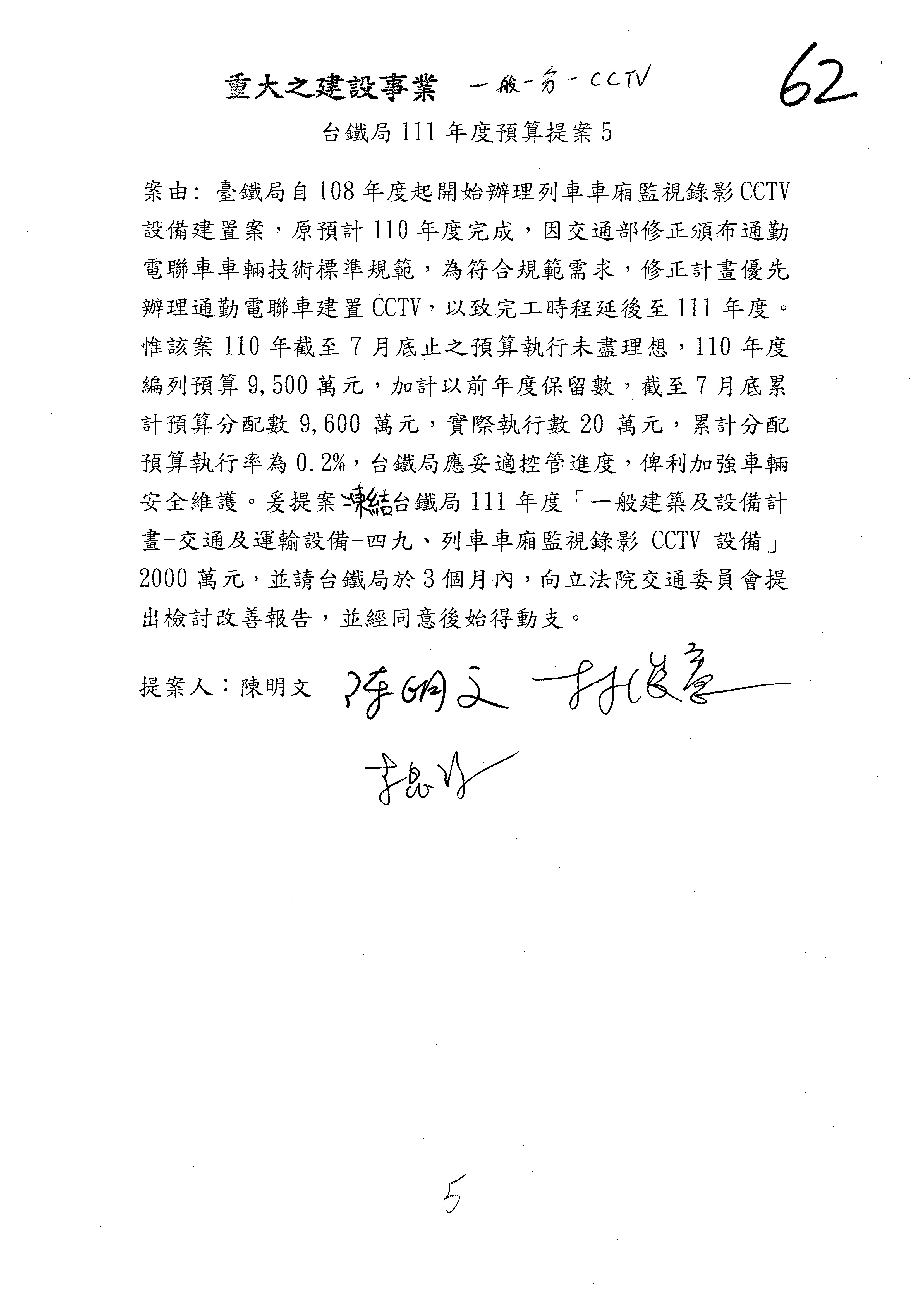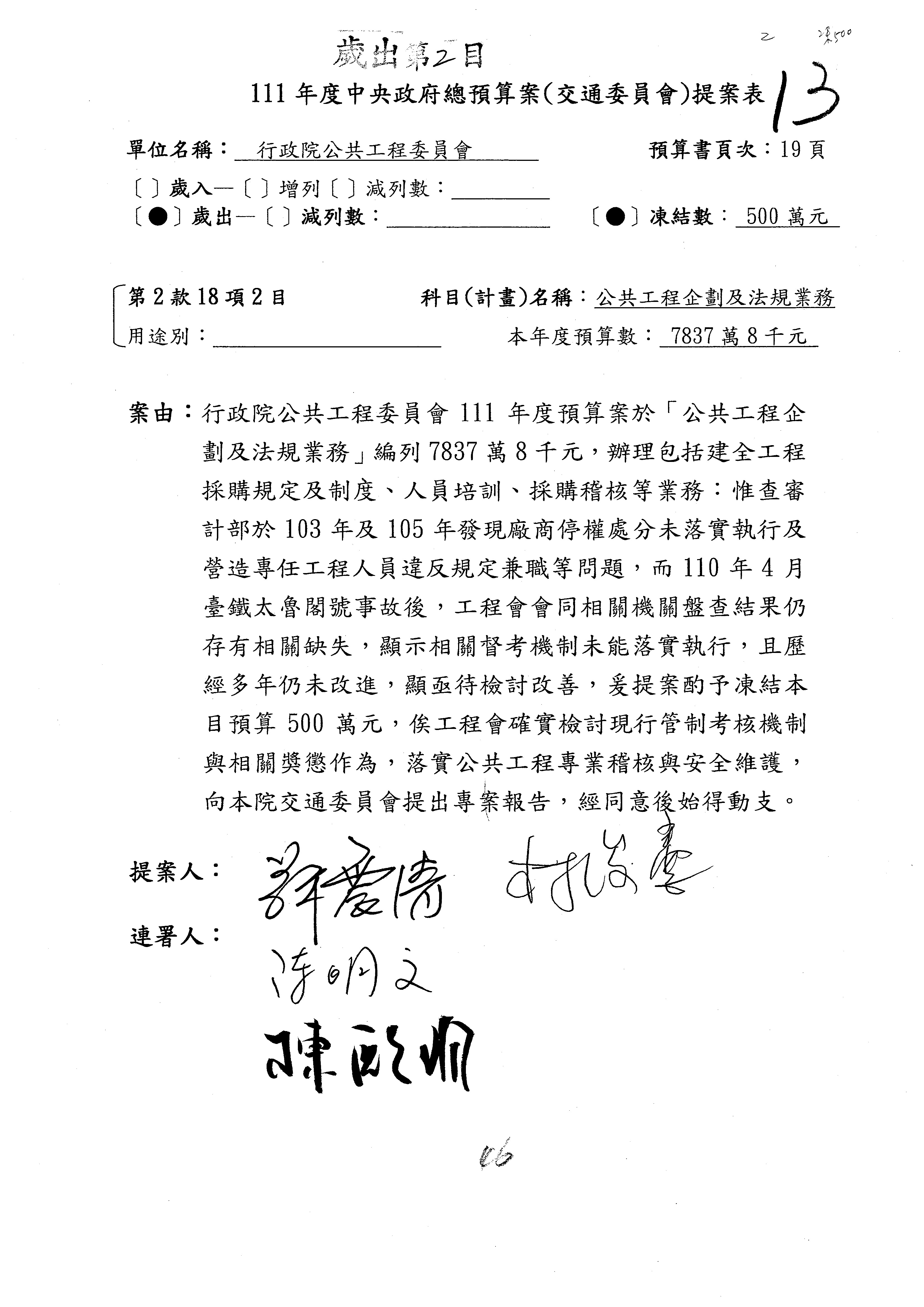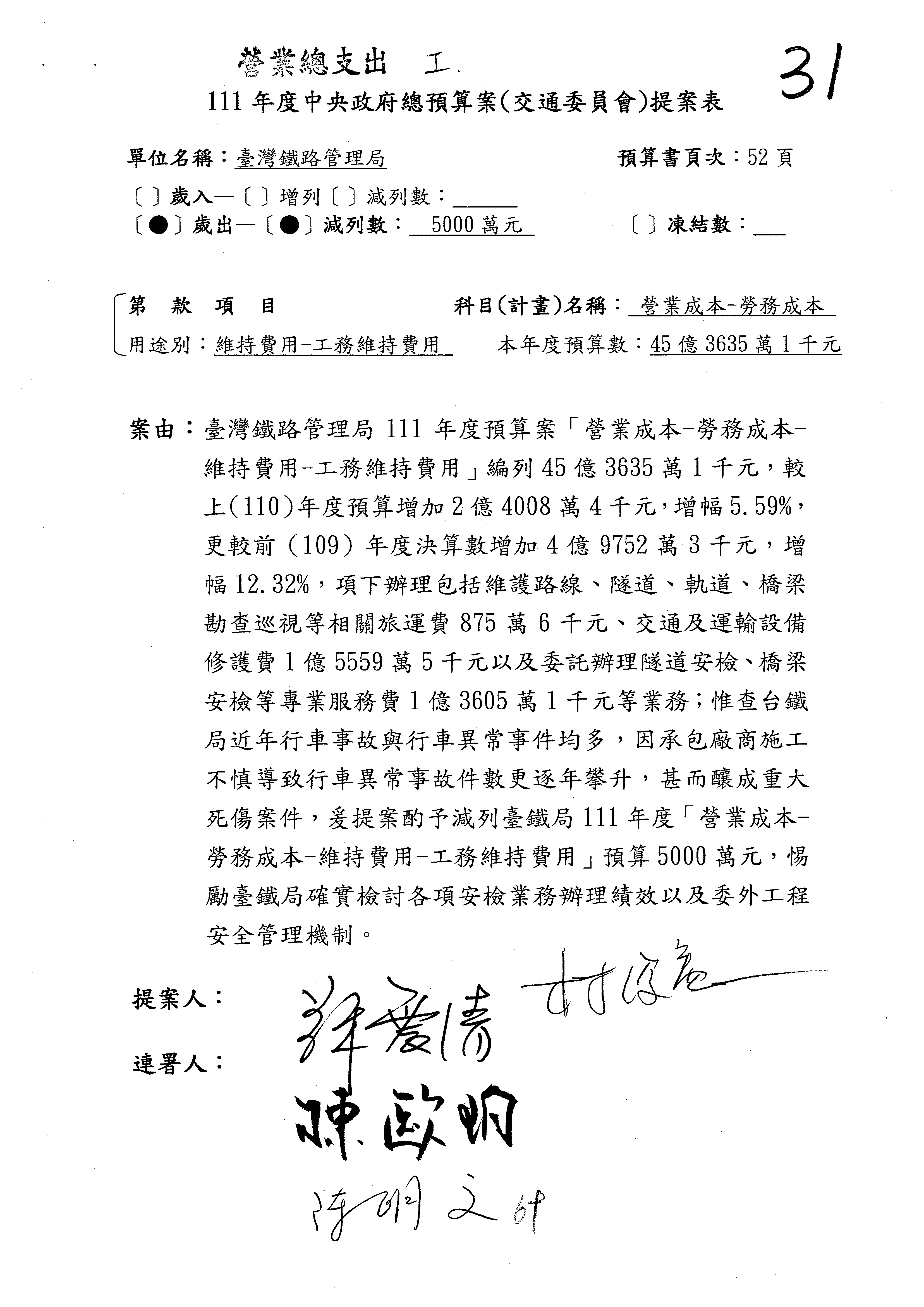 杜局長微:許淑華委員的提案,案由是鑑於107年10月間發生普悠瑪列車出軌事故,該局於編列109、110年……