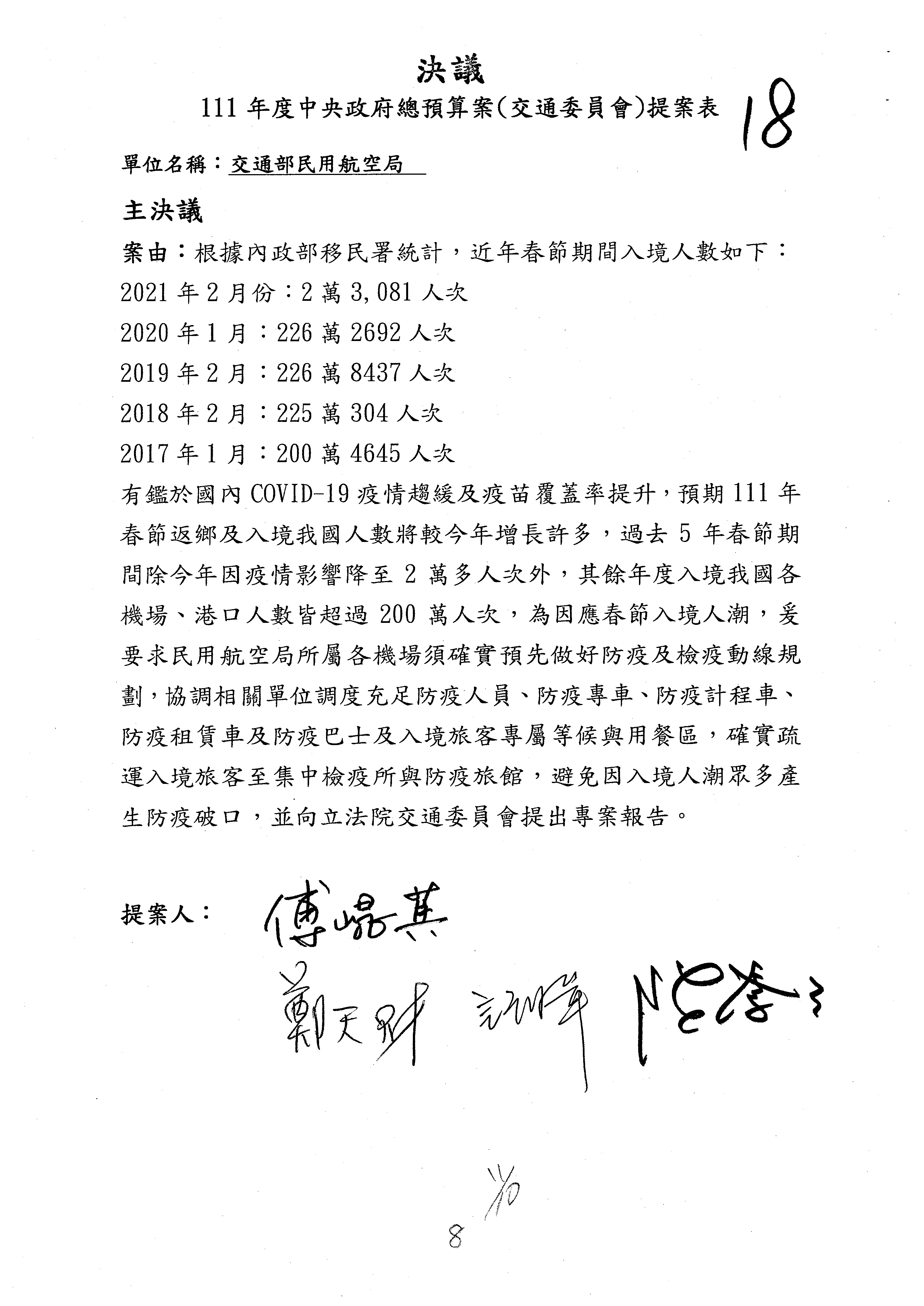 2.委員要求提供之書面報告及相關資料,請交通部儘速以書面答復。