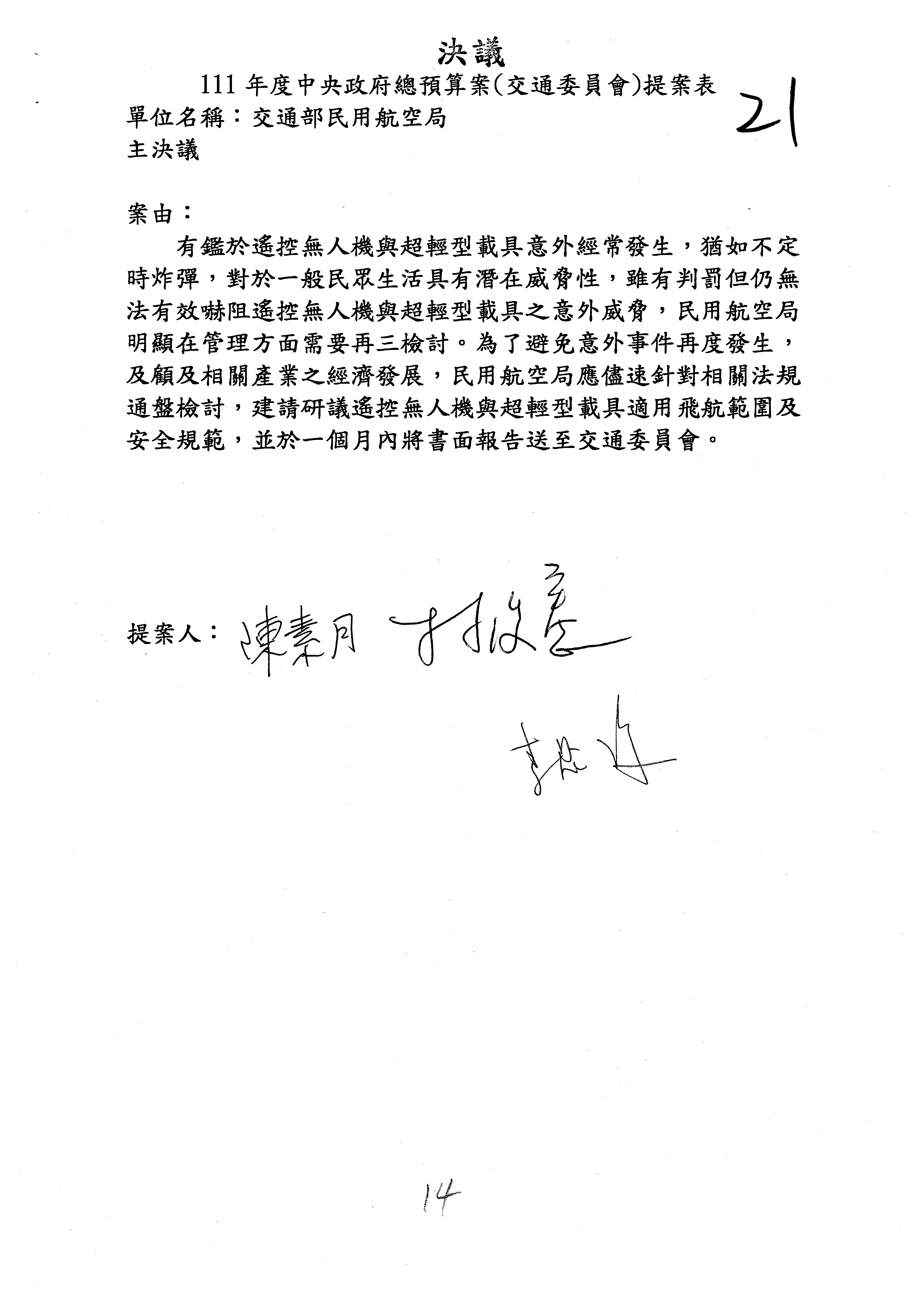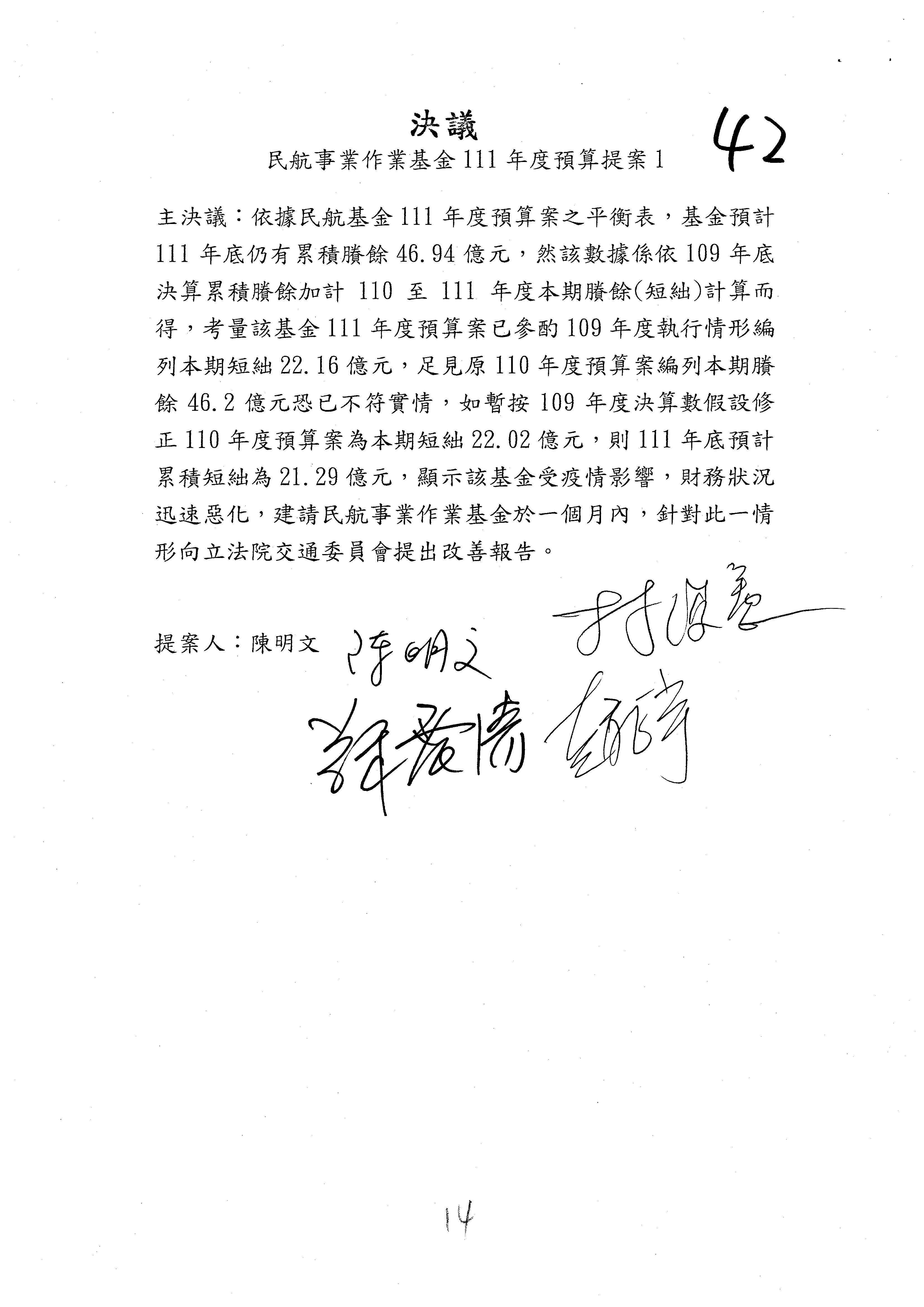 立法院第10屆第4會期交通委員會第14次全體委員會議議事錄