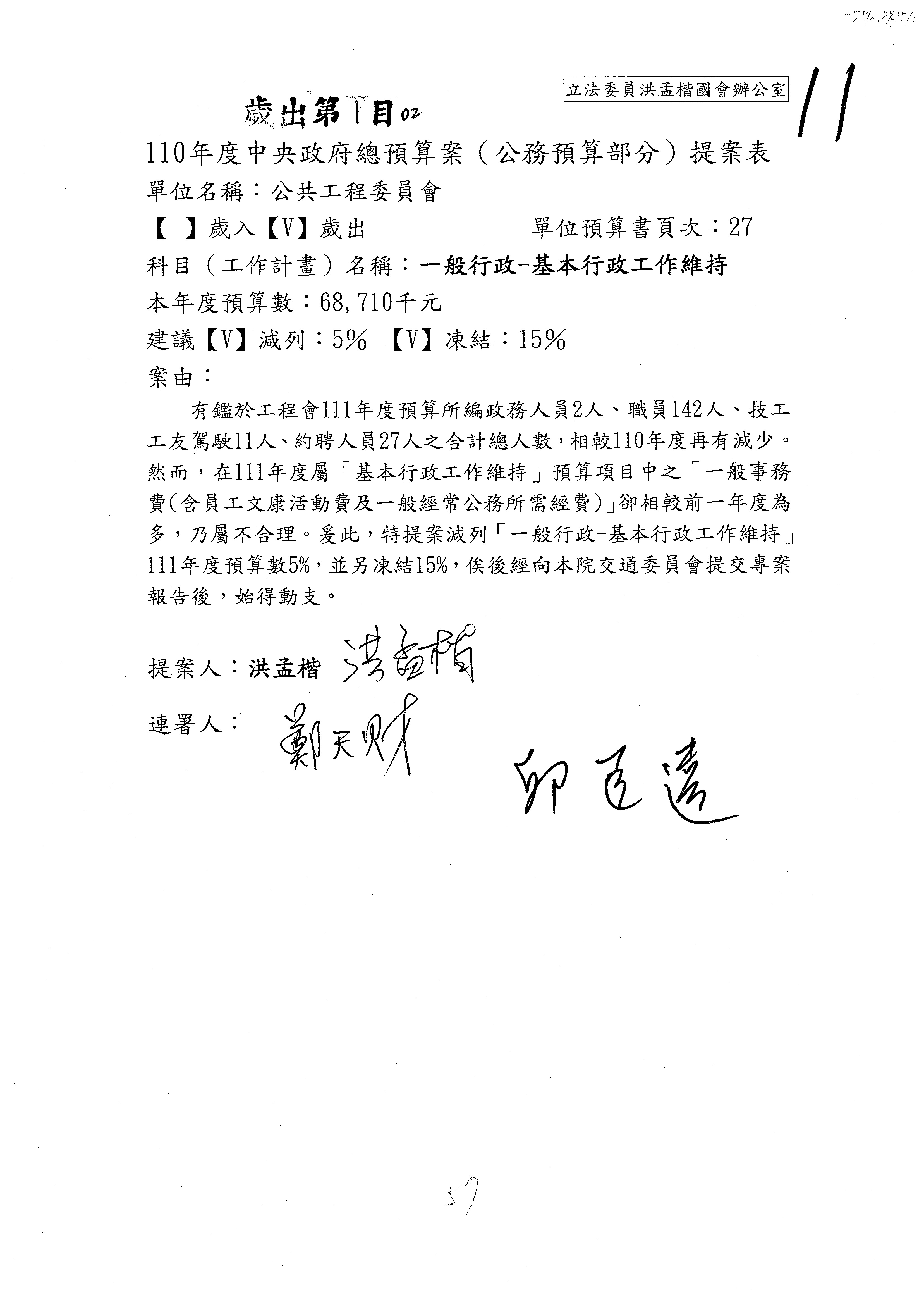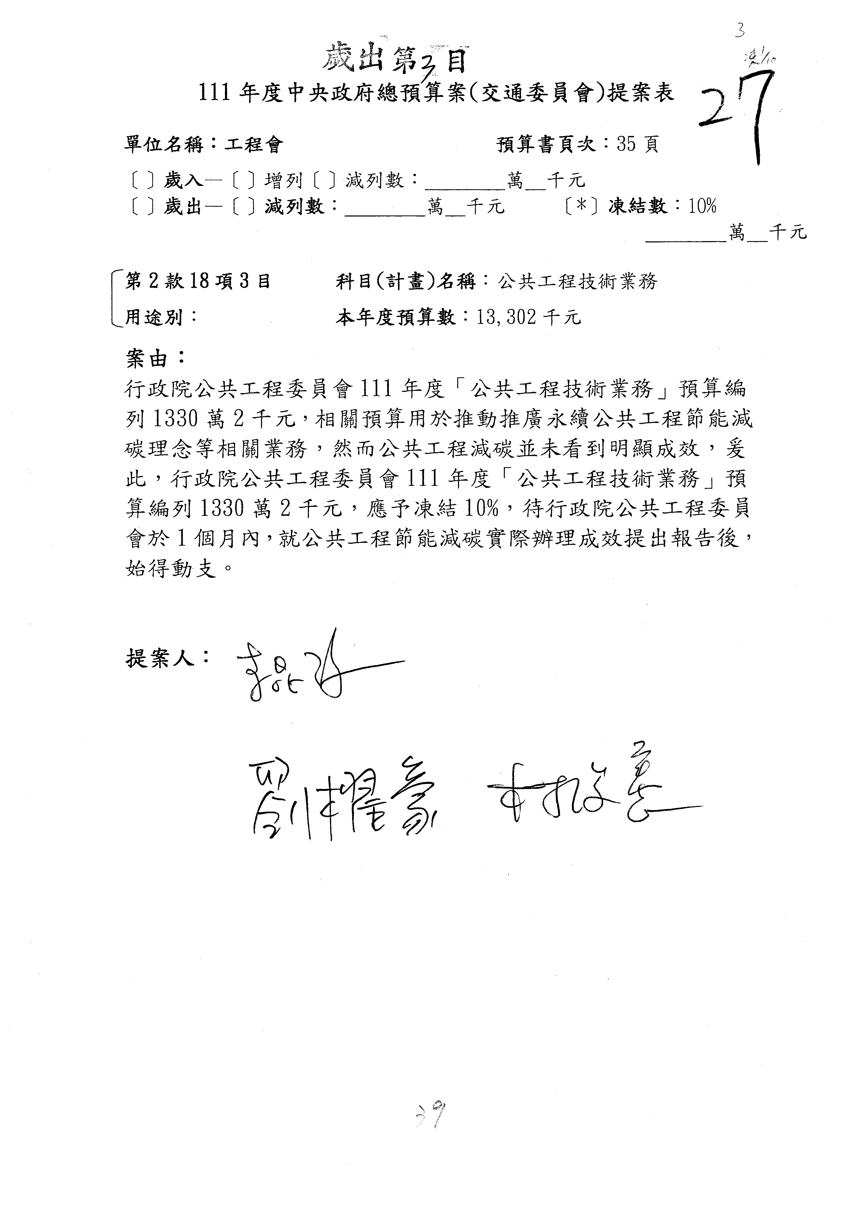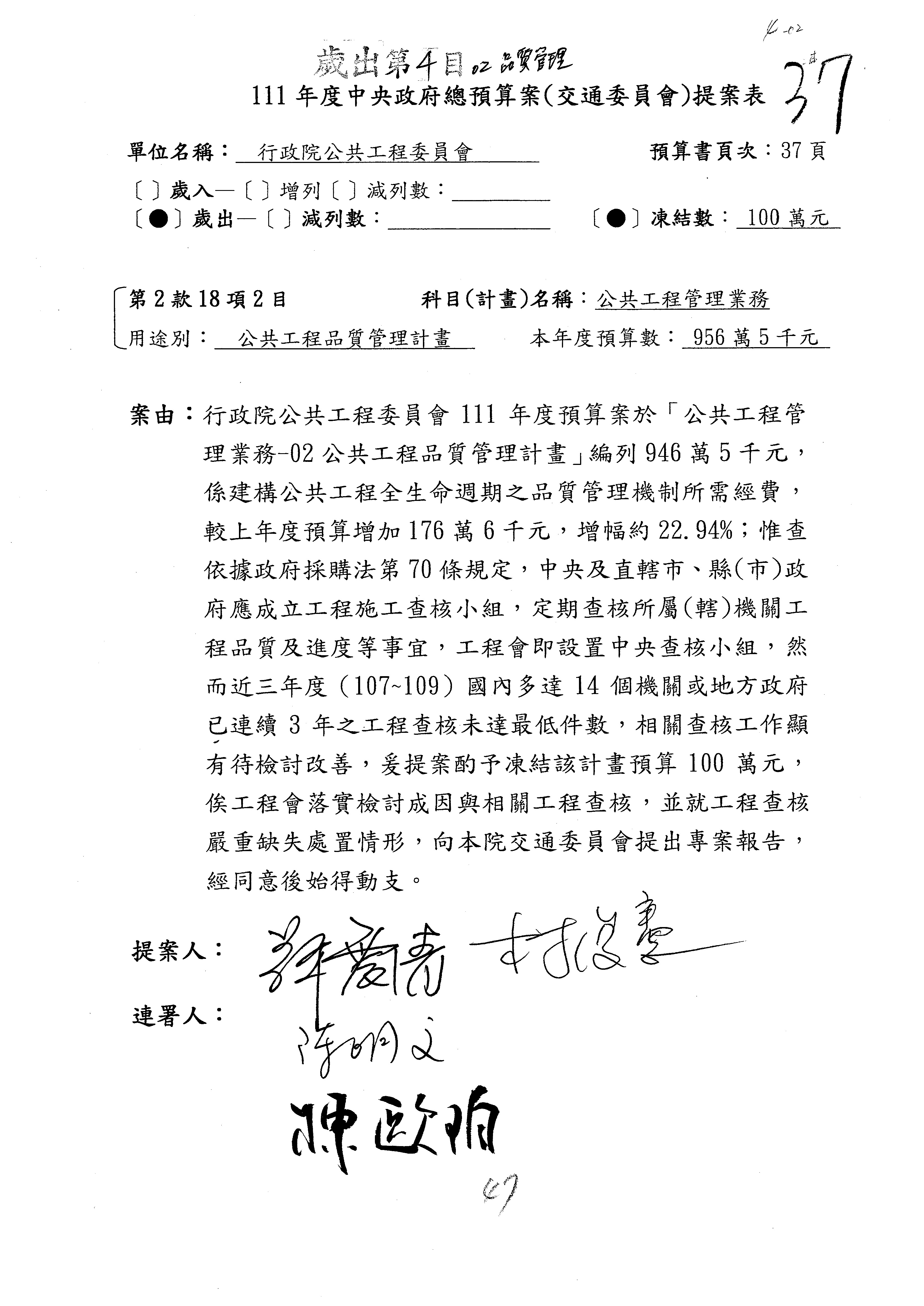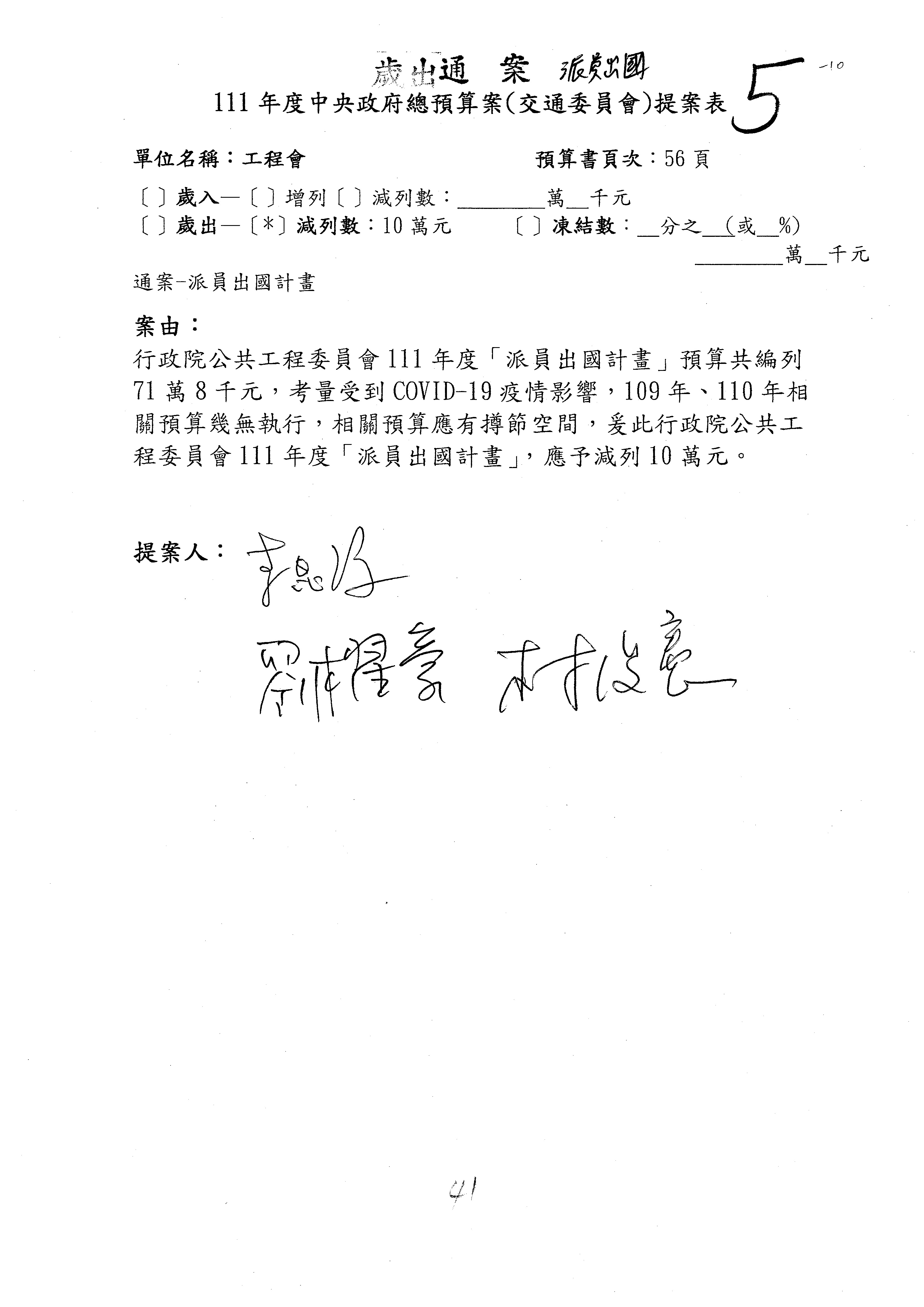三、111年度交通部國道公路建設管理基金非營業預算審查完畢,內容如審查結果。