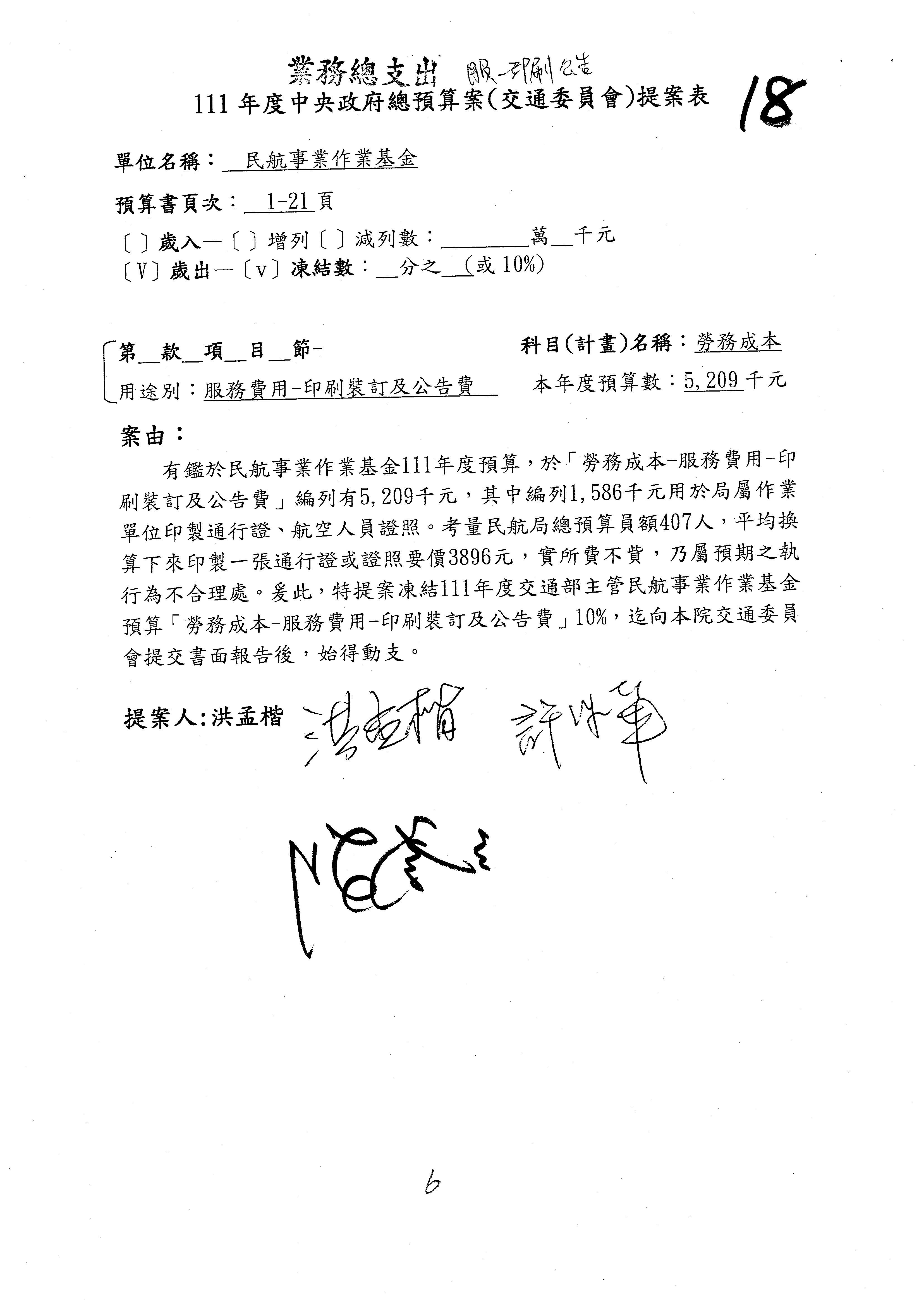 繼續審查111年度中央政府總預算案附屬單位預算非營業部分關於交通部主管交通作業基金─國道公路建設管理基金分預算。