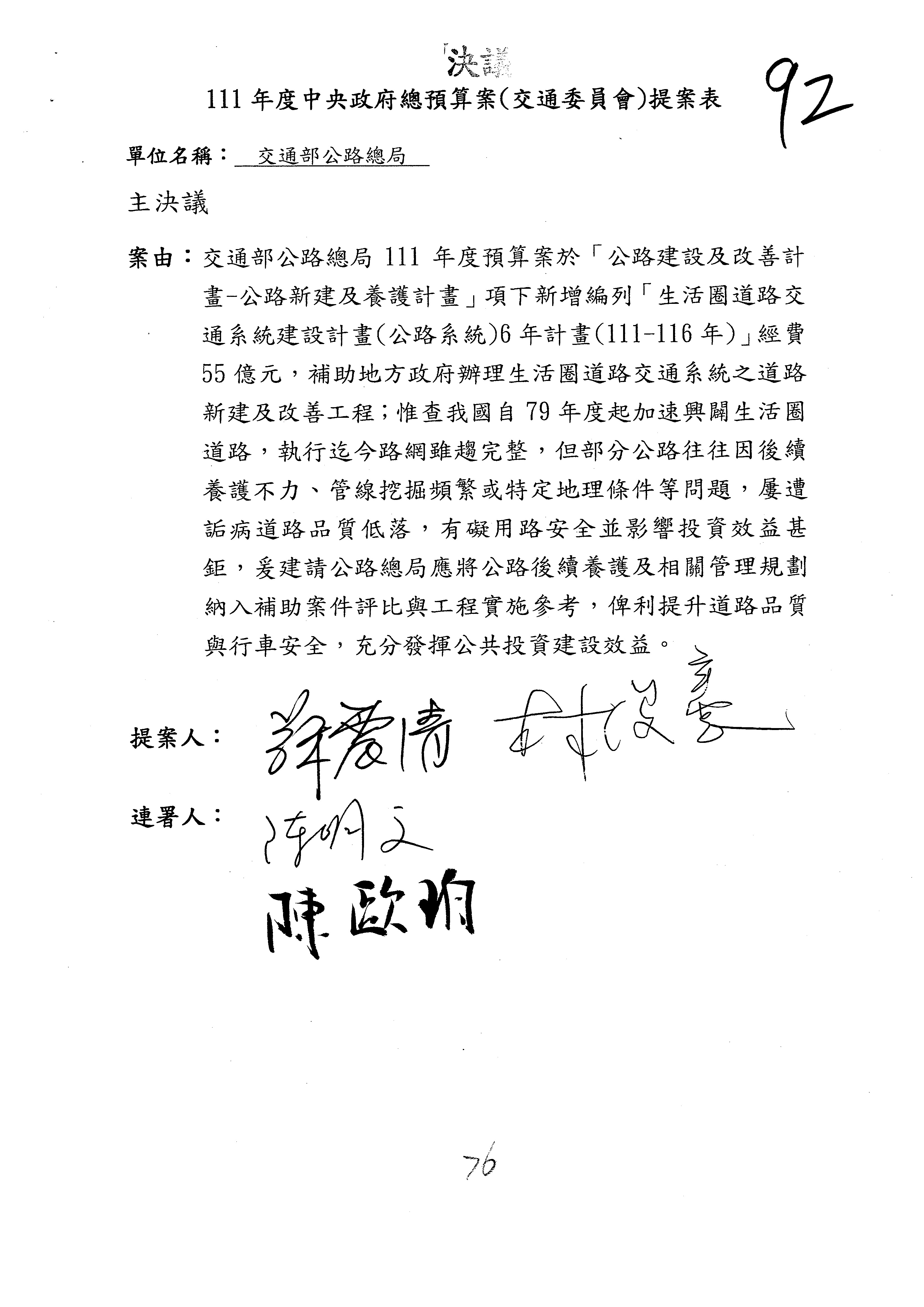 主席:第92案,通過。