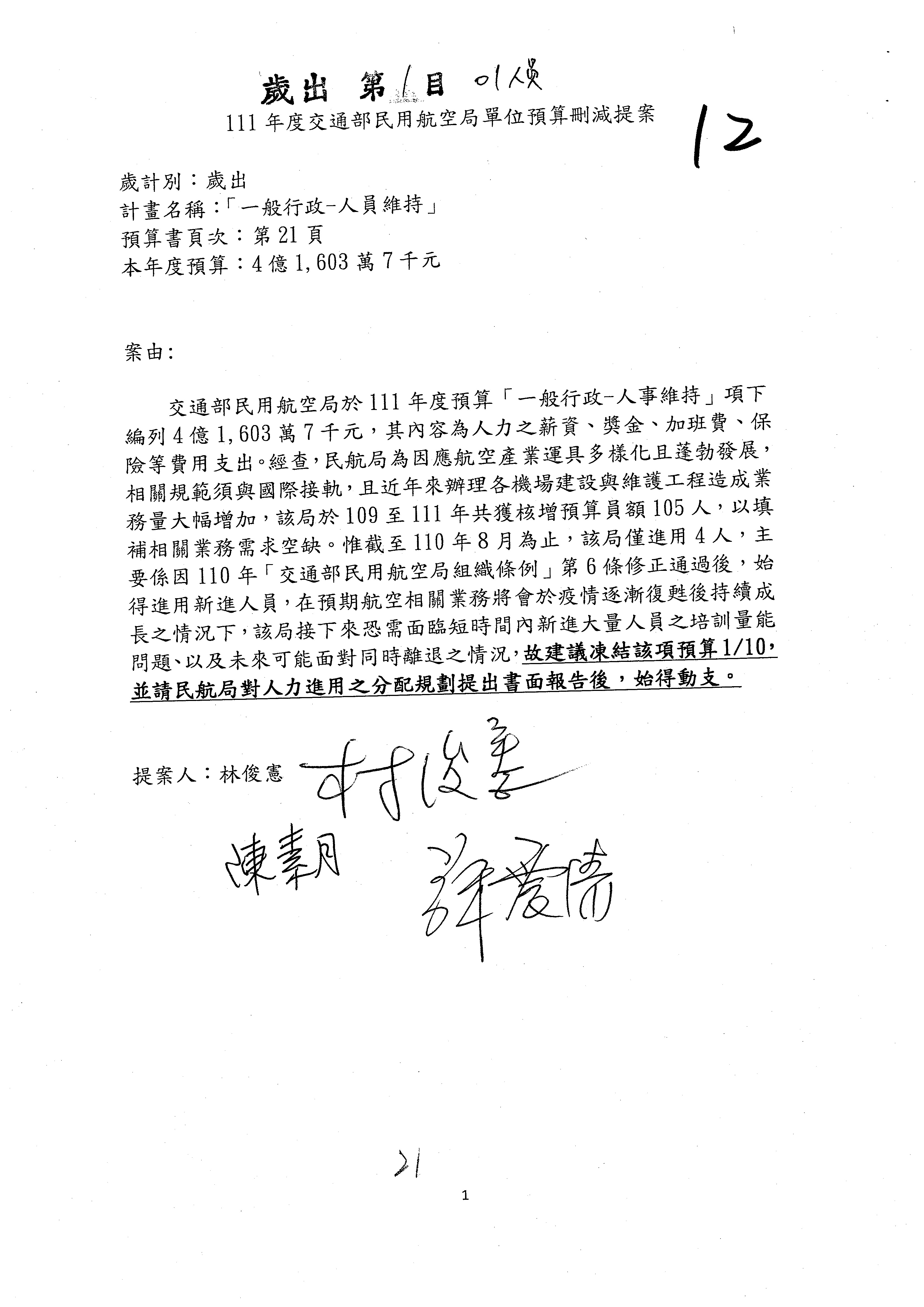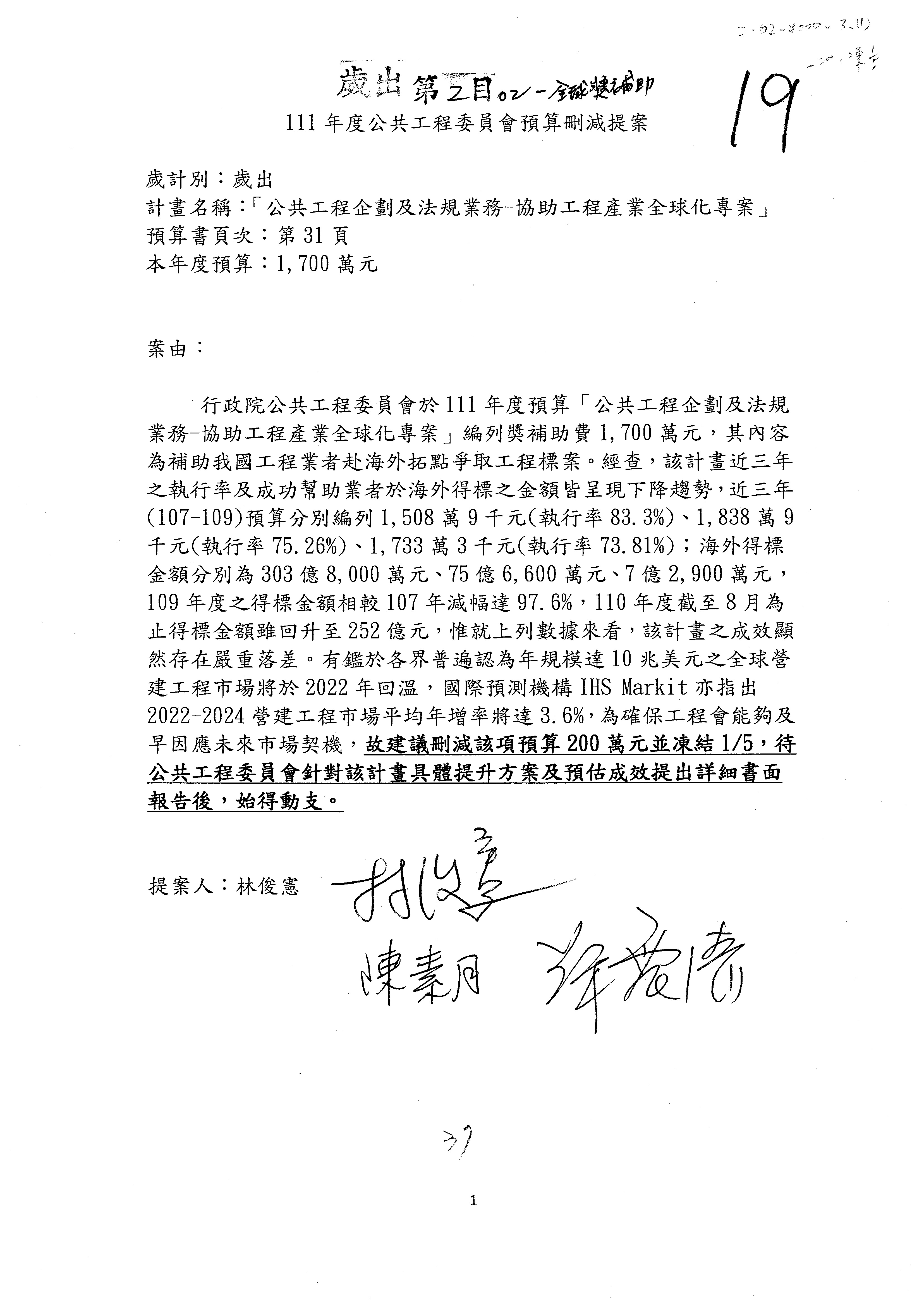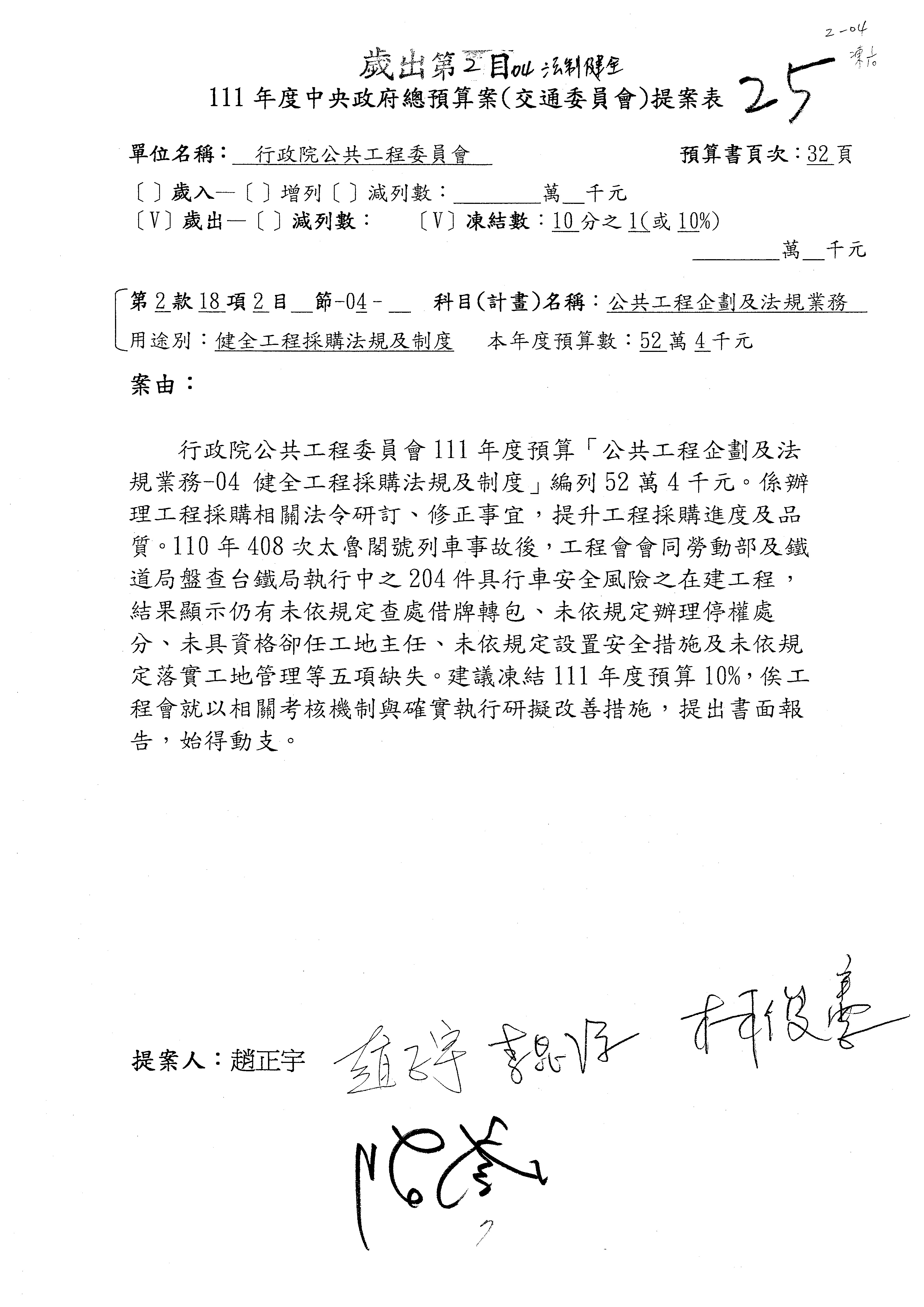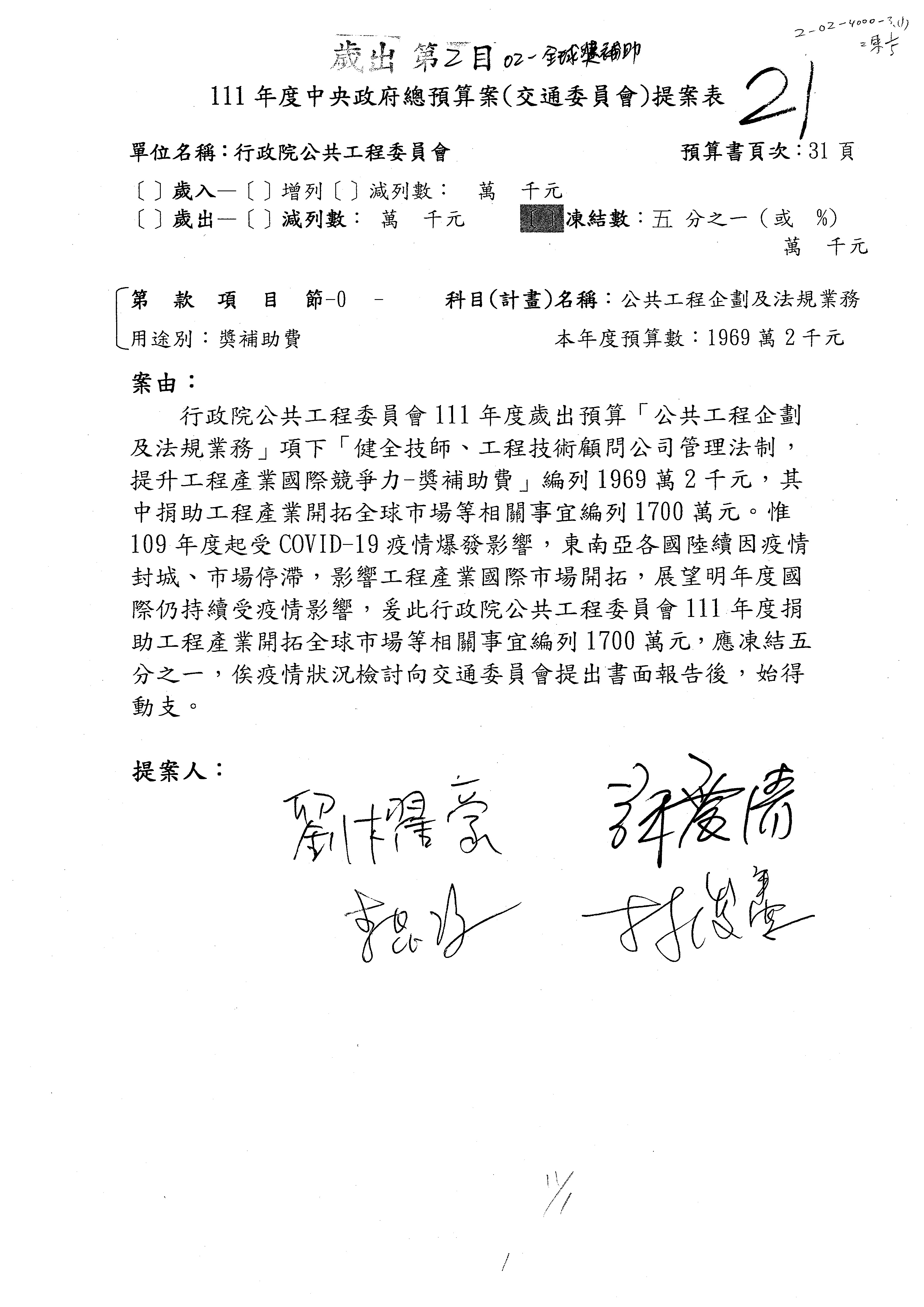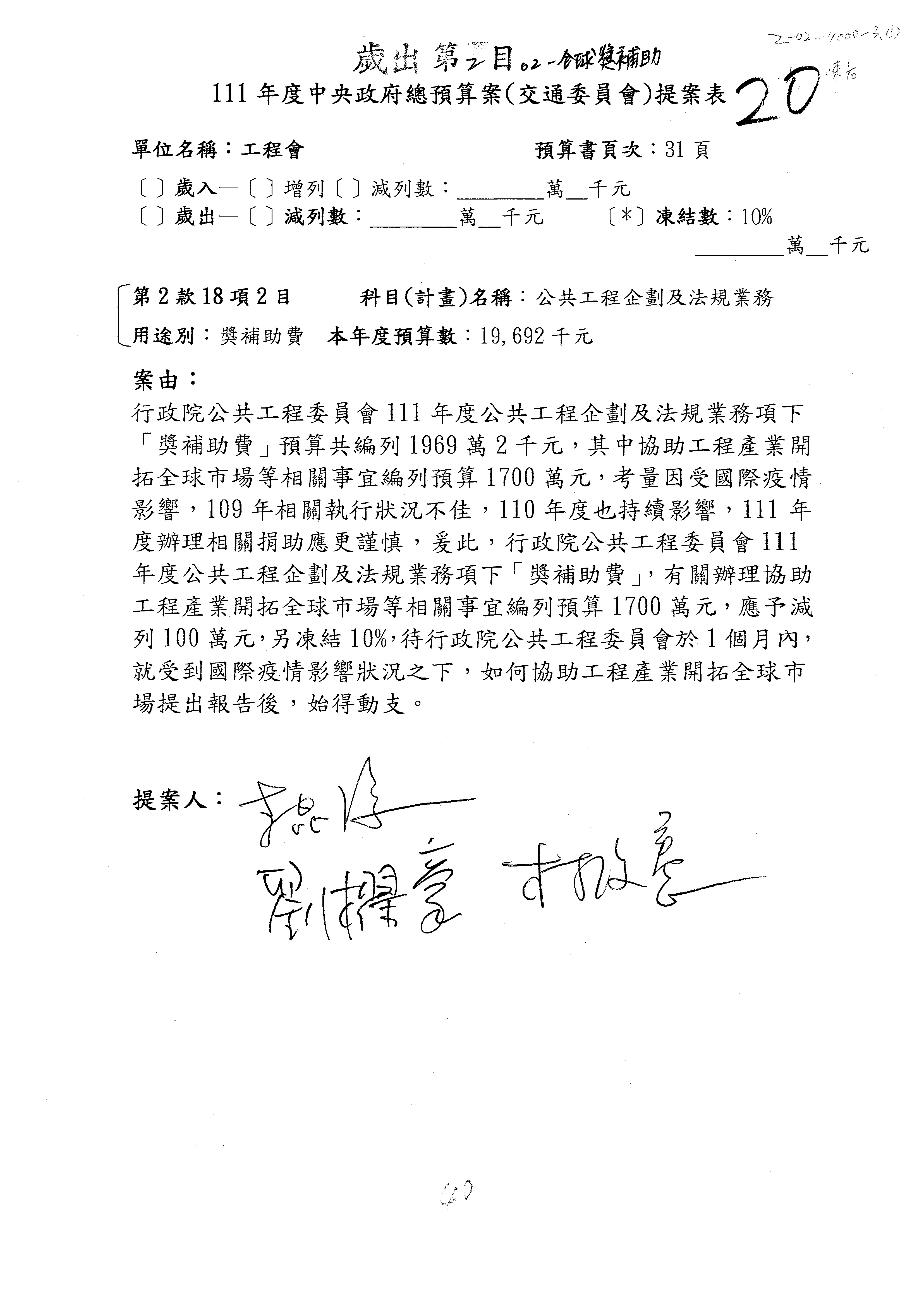一、本(20)日預算審查結果,照列或照協商結論通過。