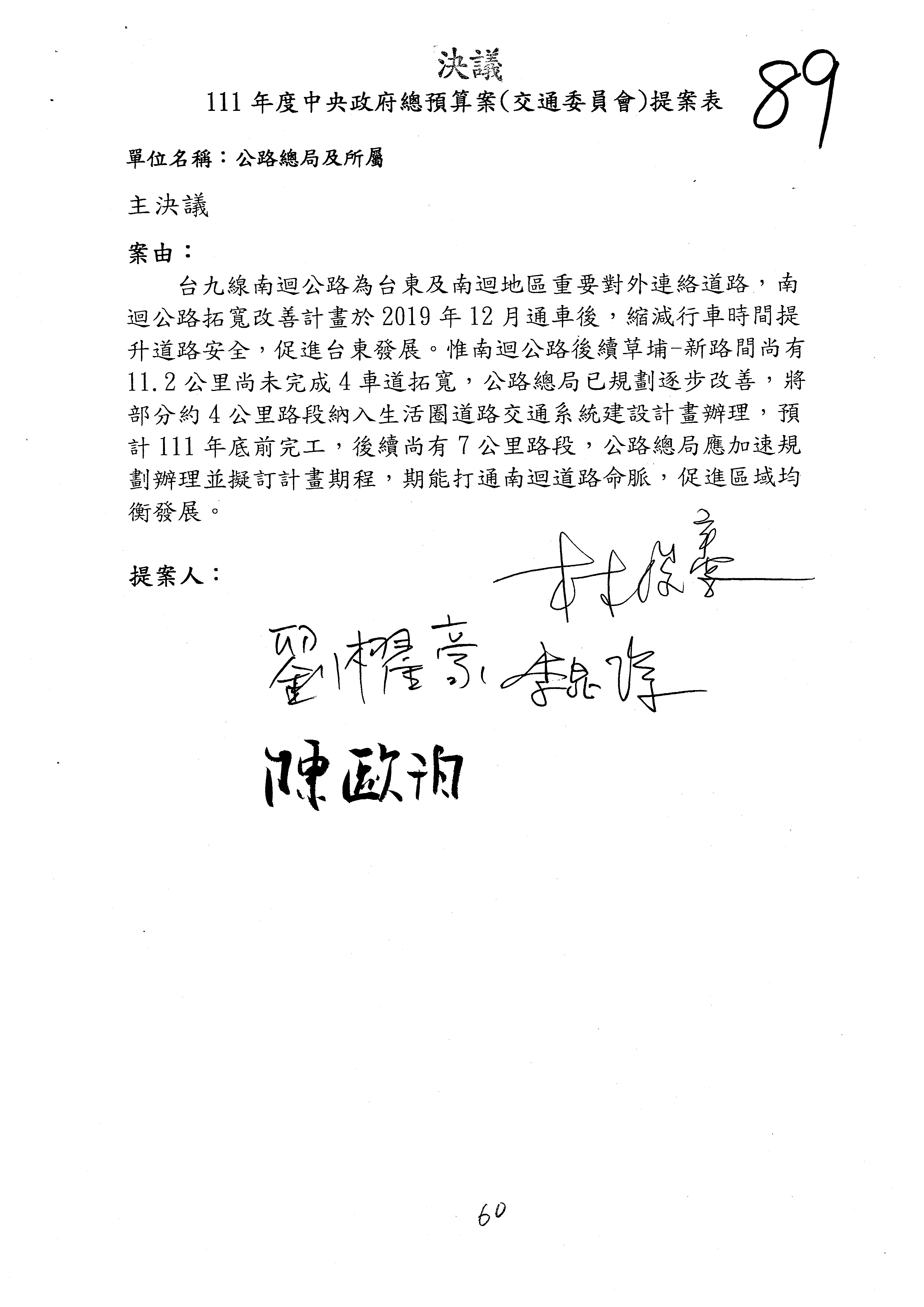 杜局長微:第89案沒有意見。