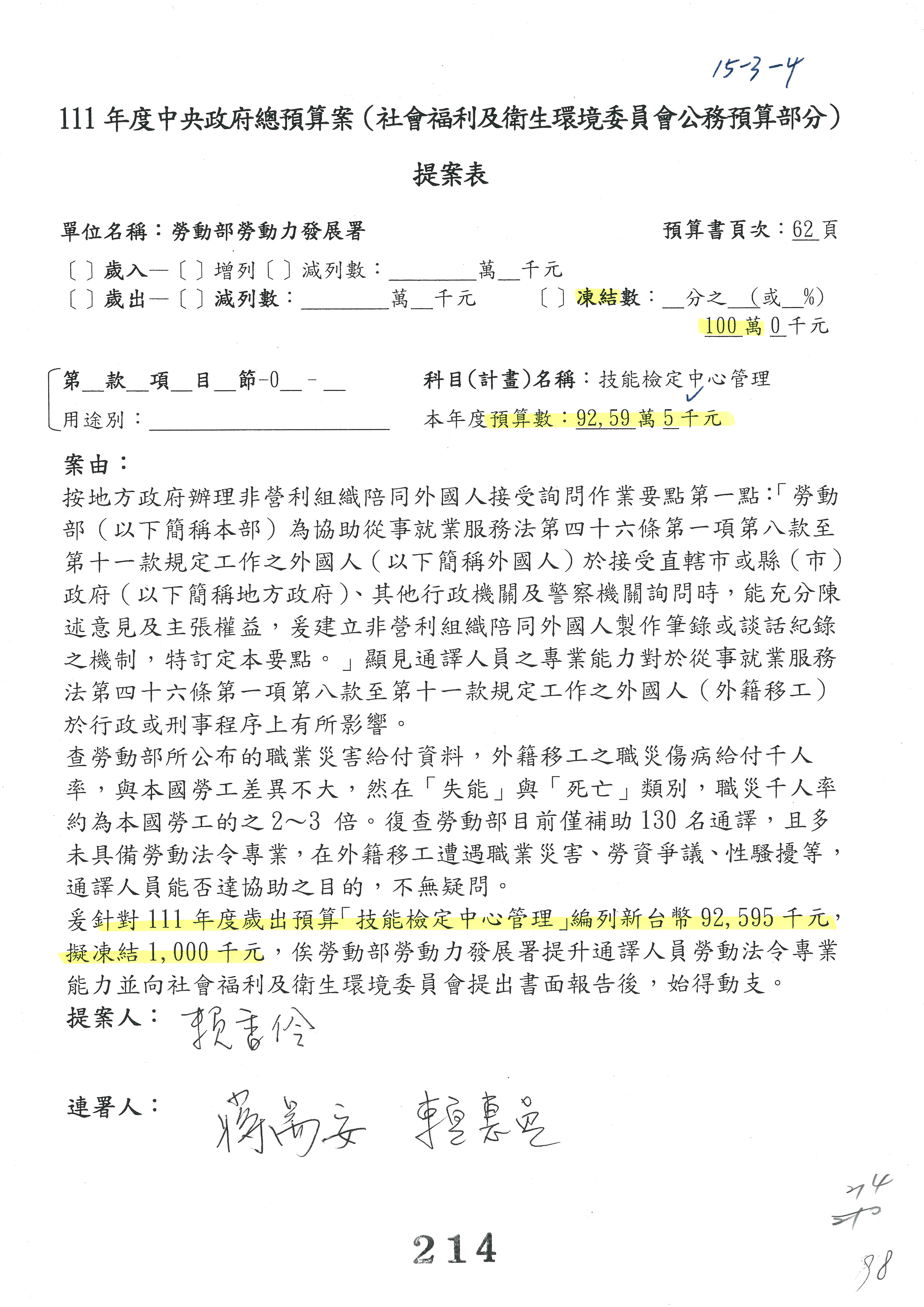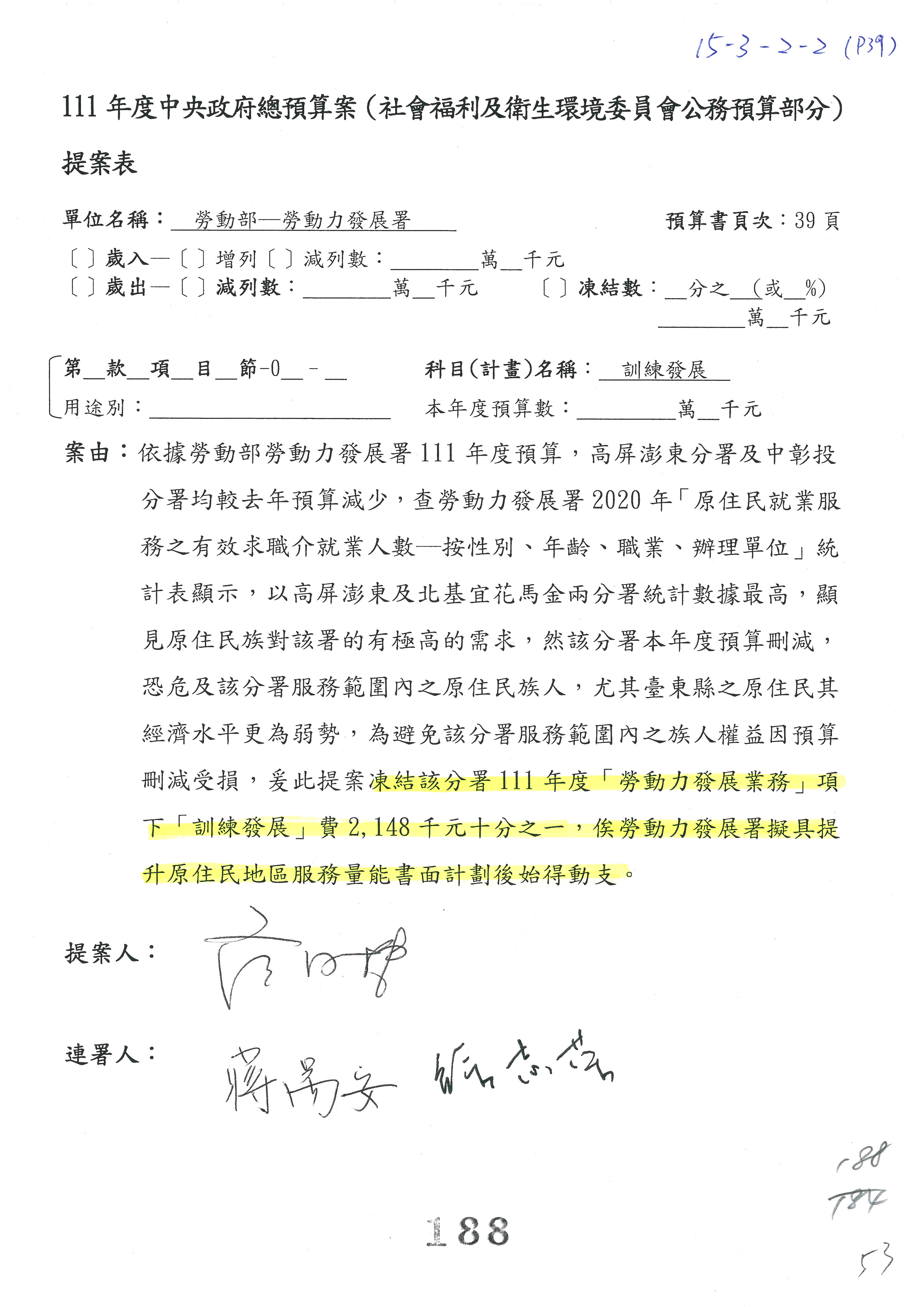 主席:等討論到第94案,我們再來討論併案,第88案就先改凍結20萬元。