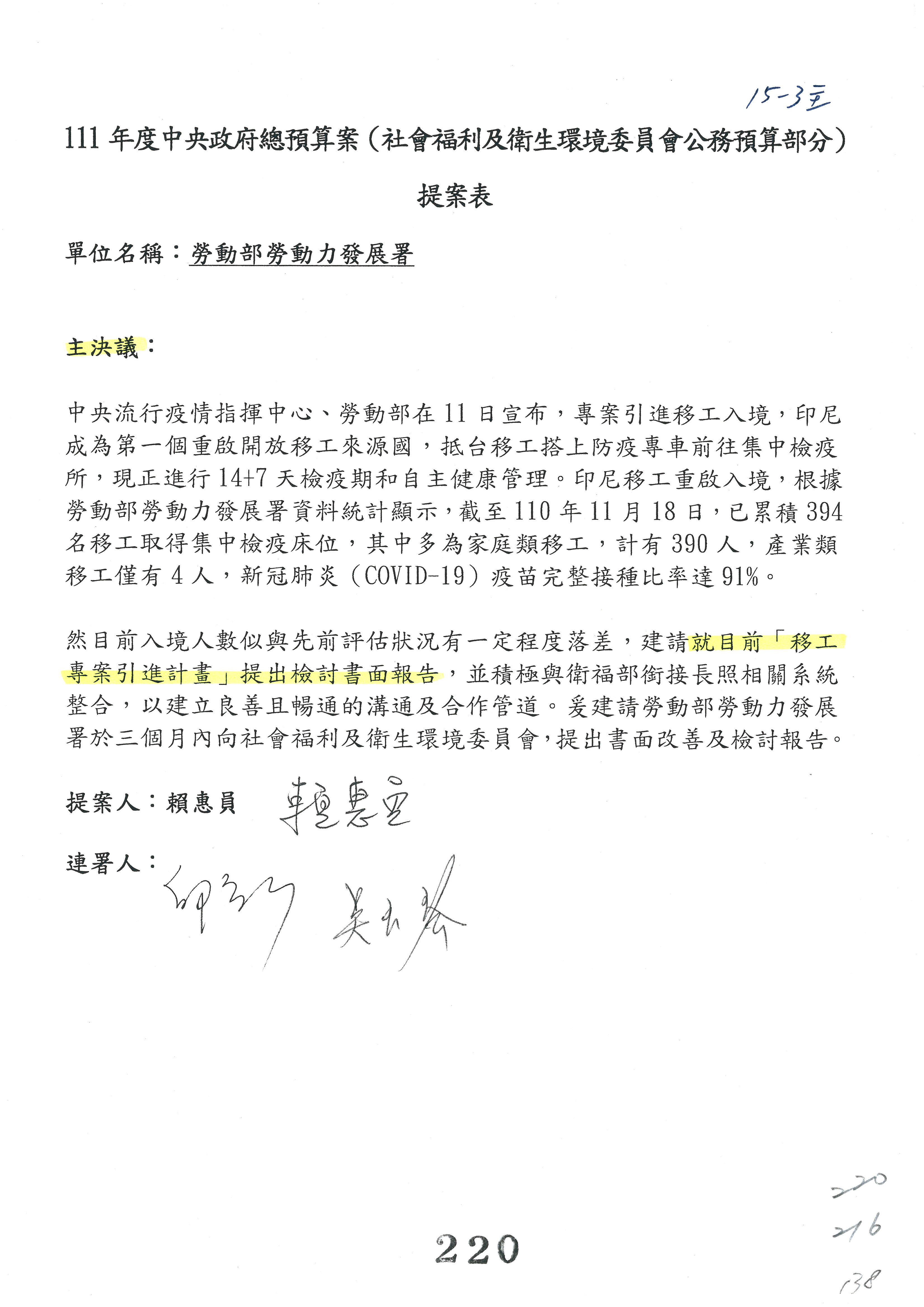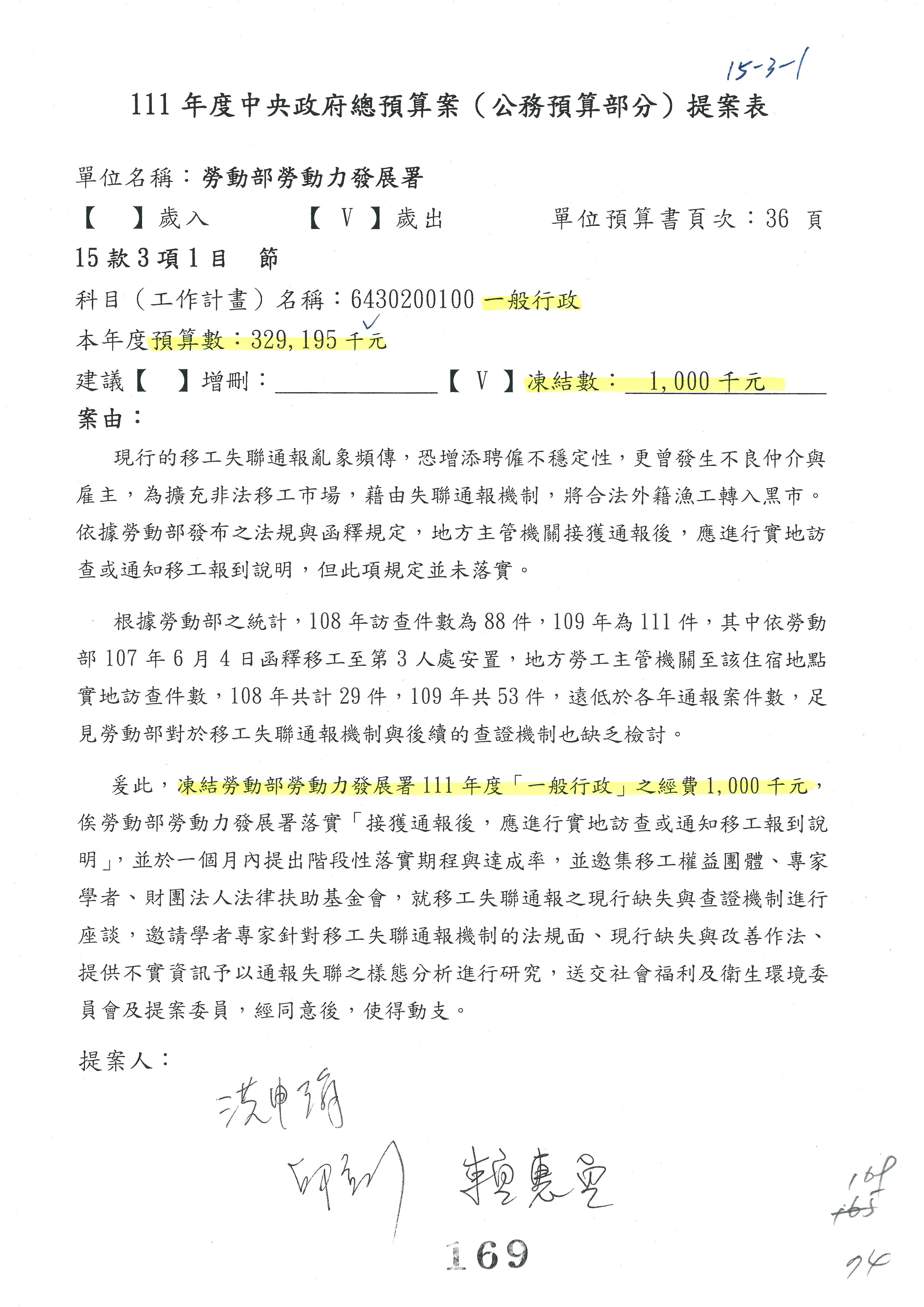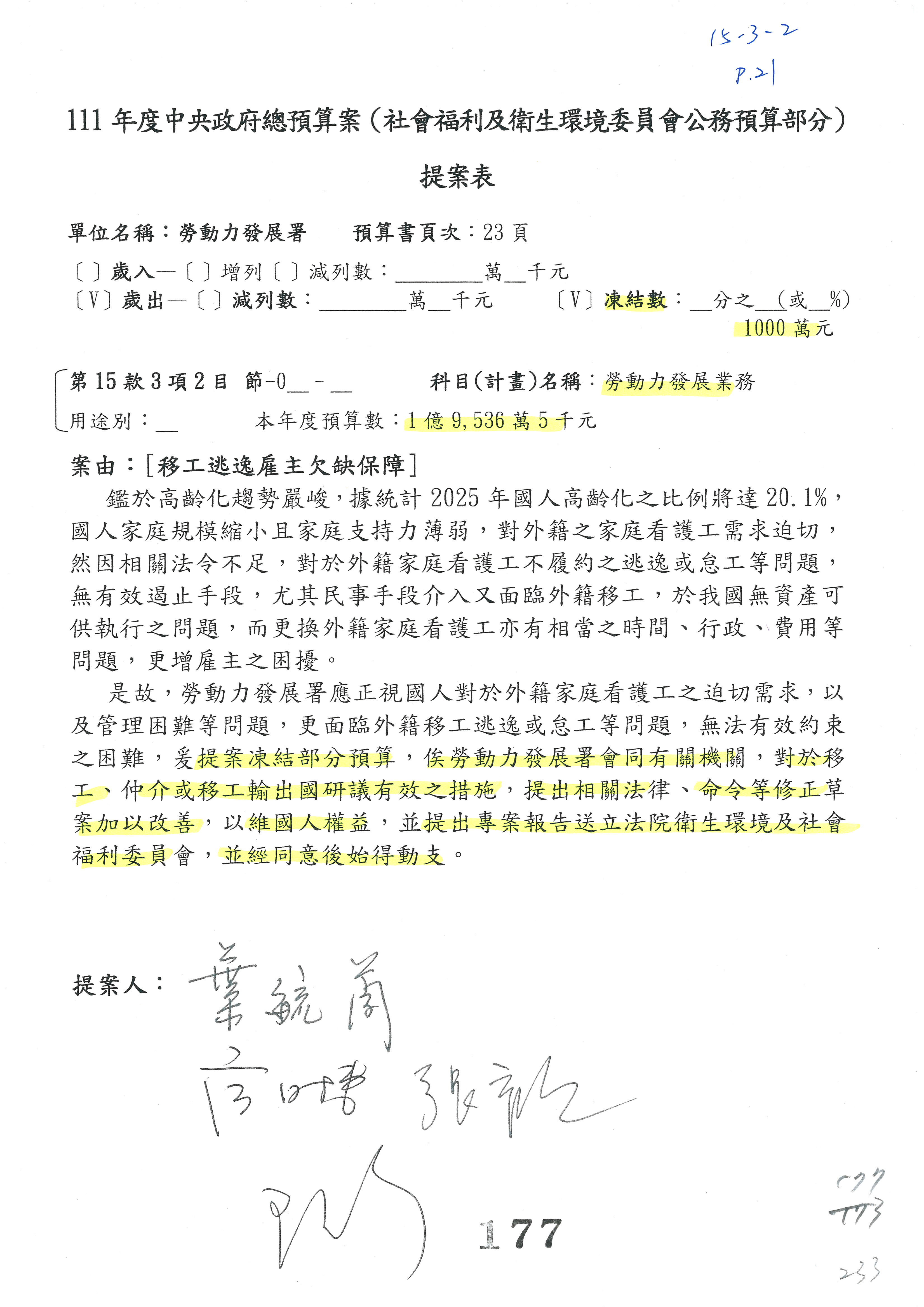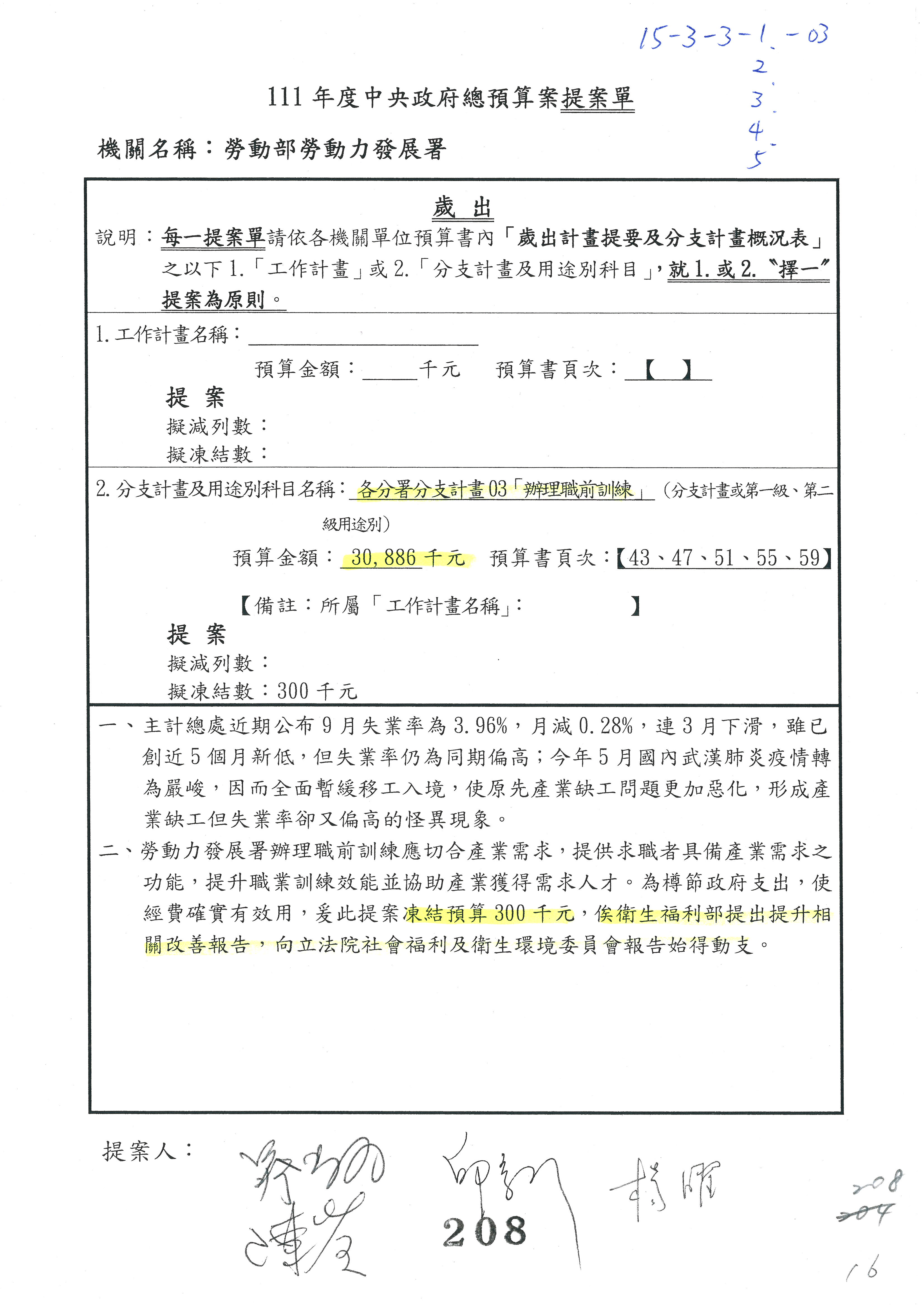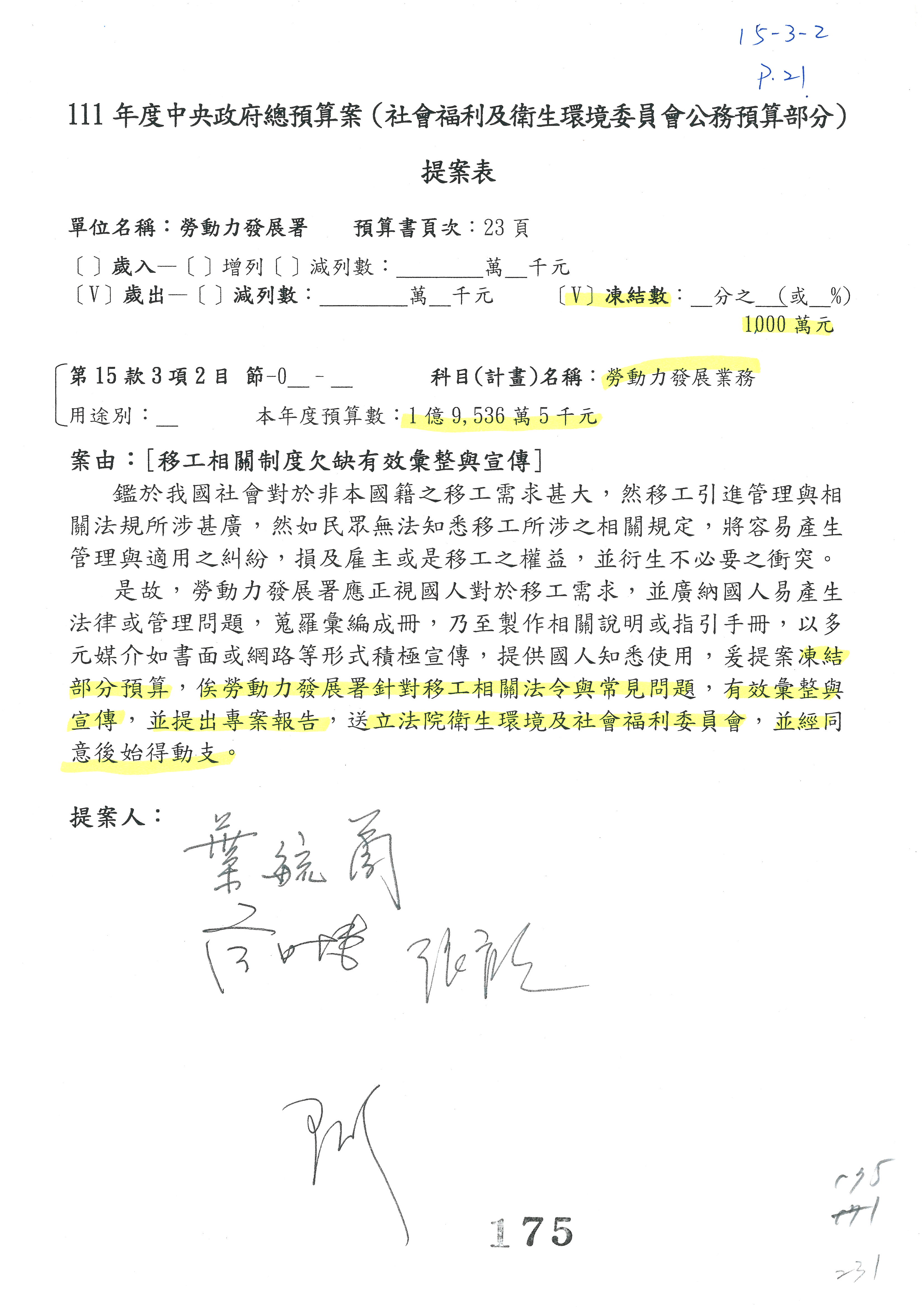 陳司長美女:第3案委員同意改凍10萬元,並同意跟其他委員提案併案,已簽署。