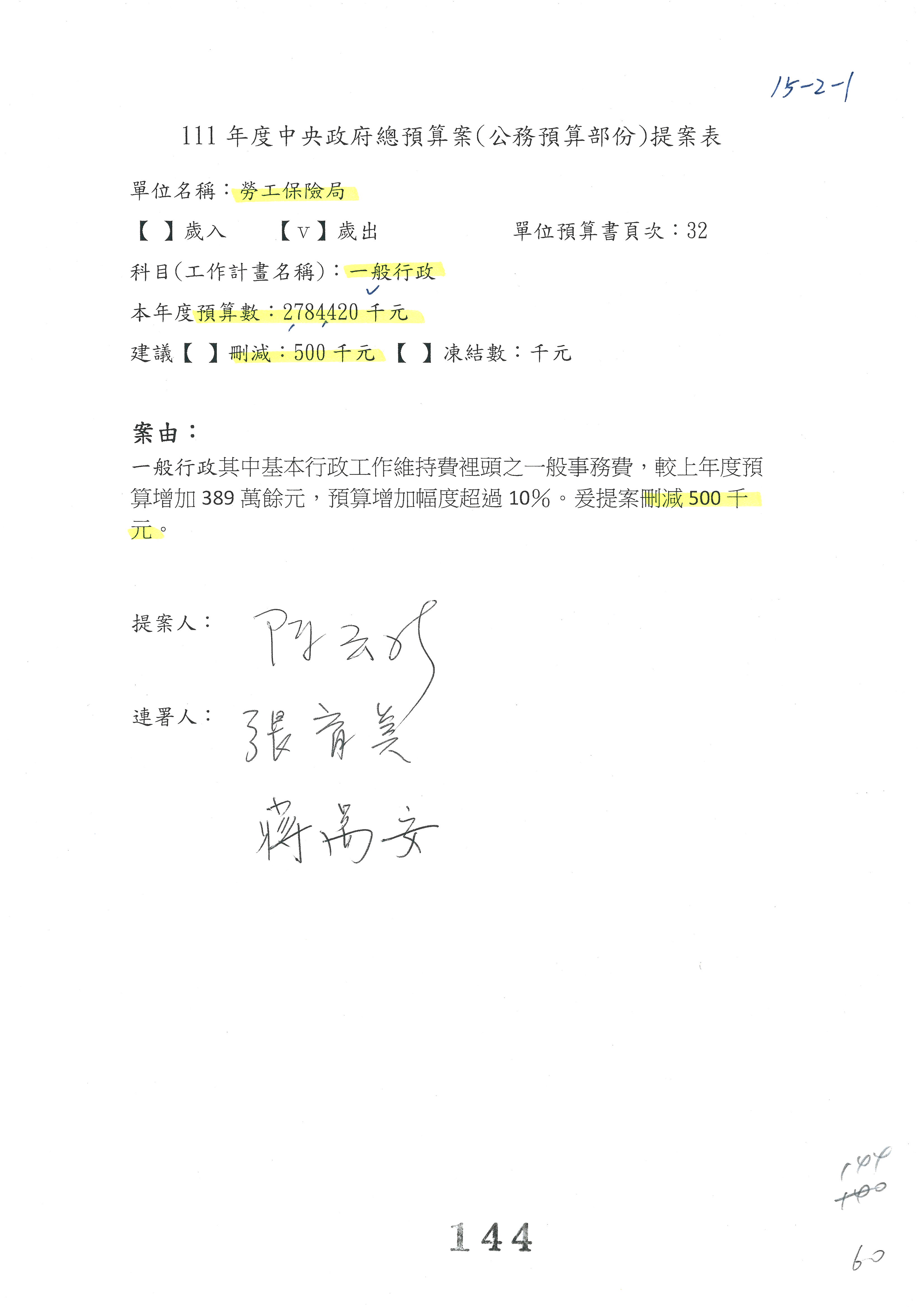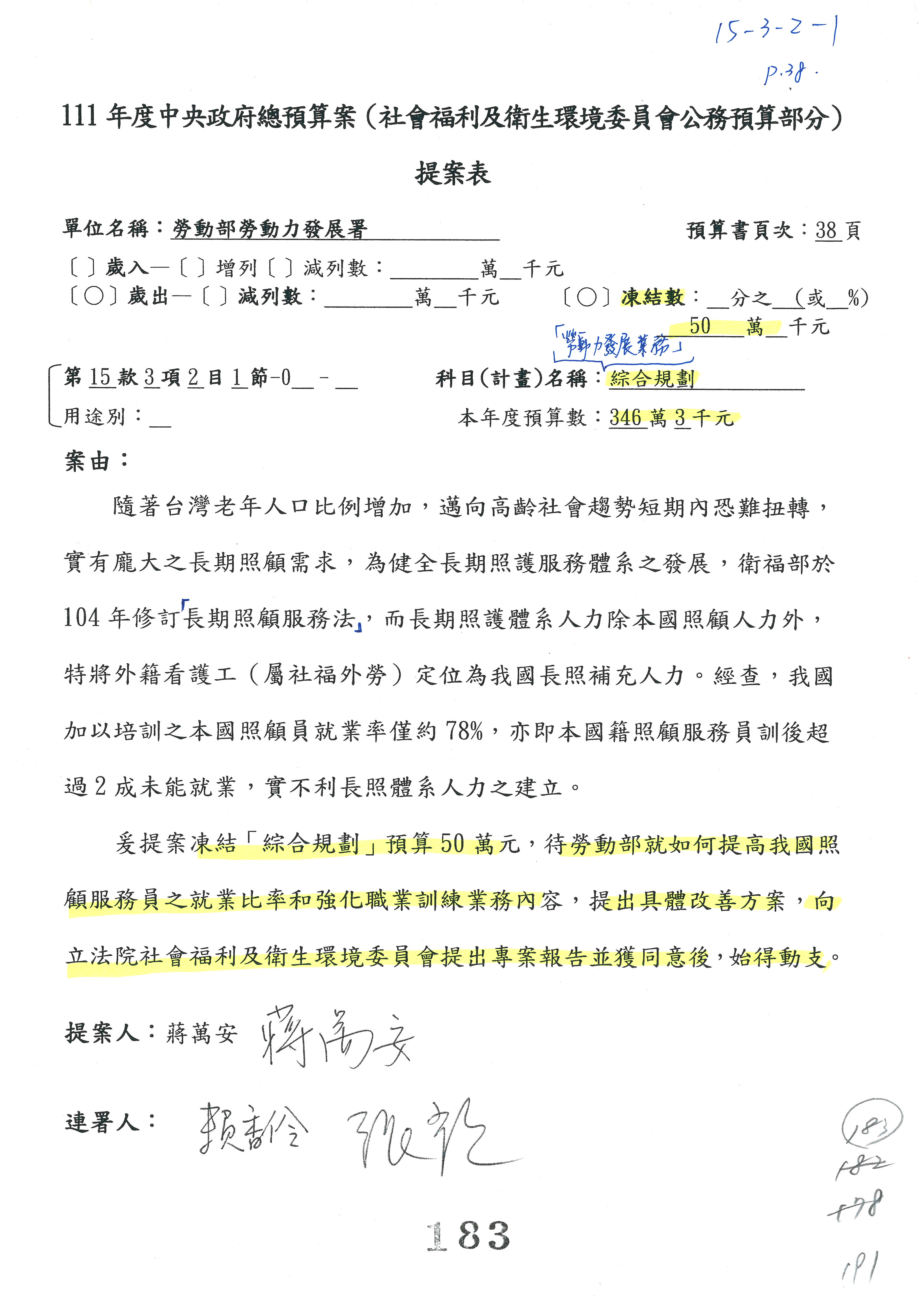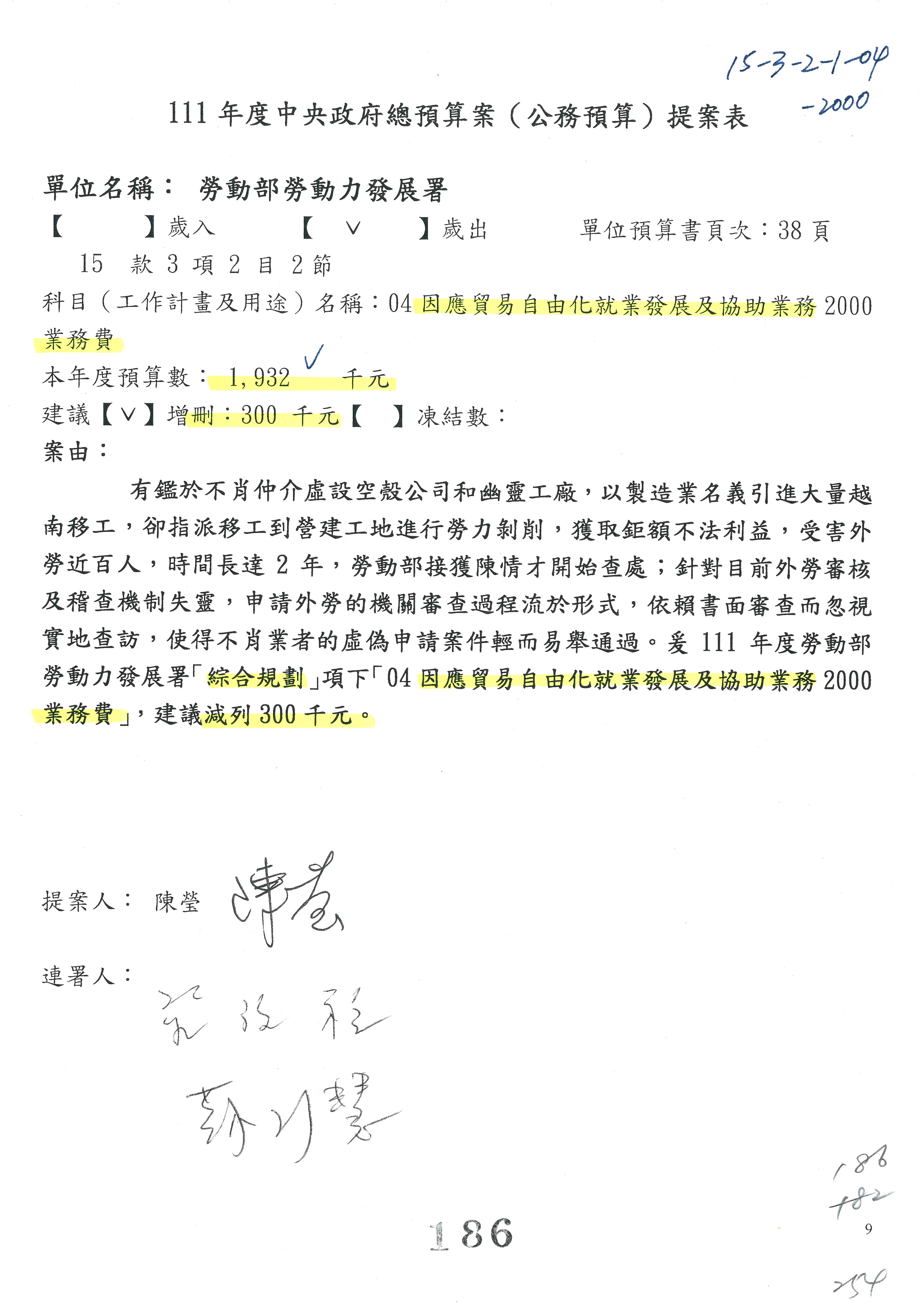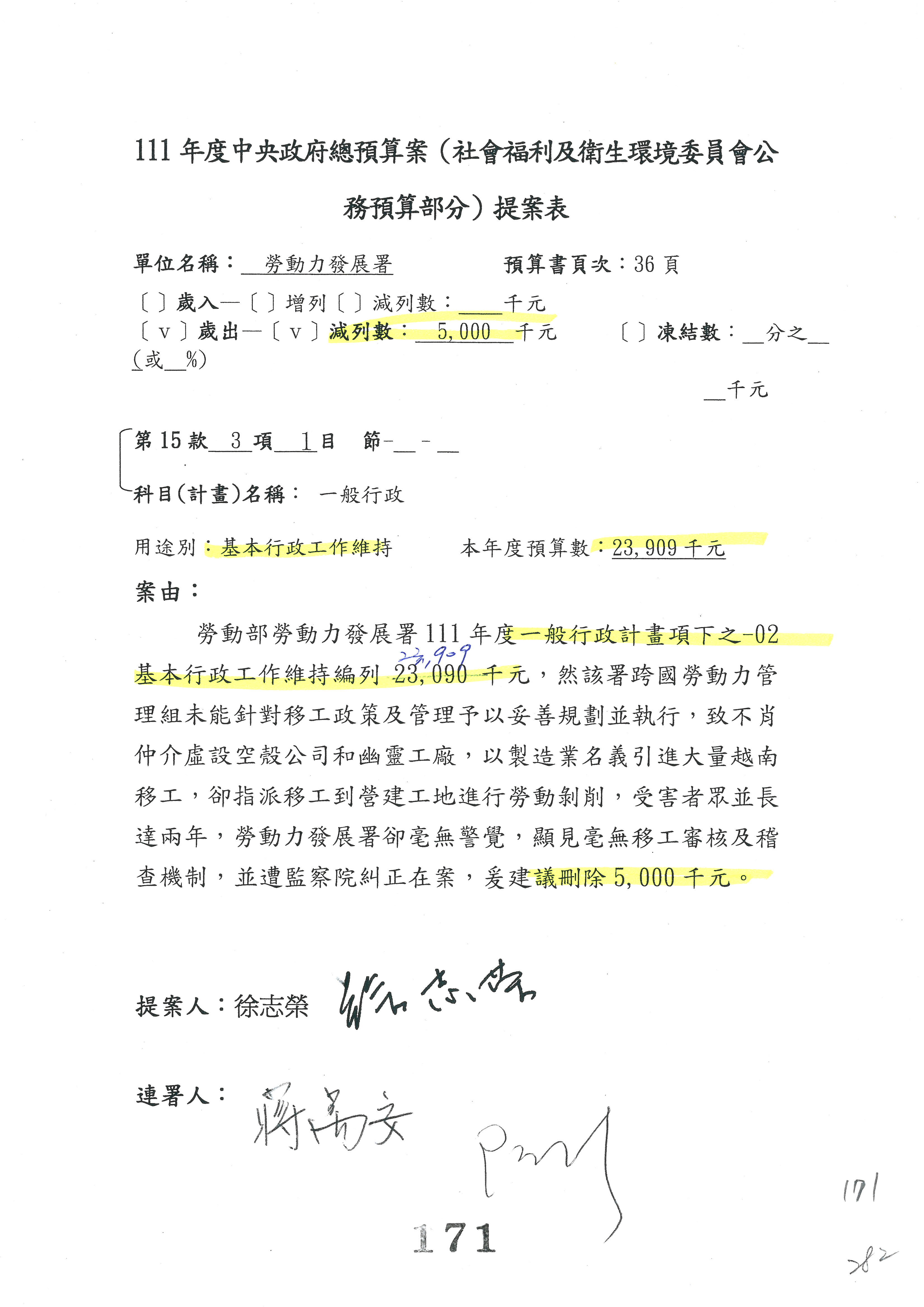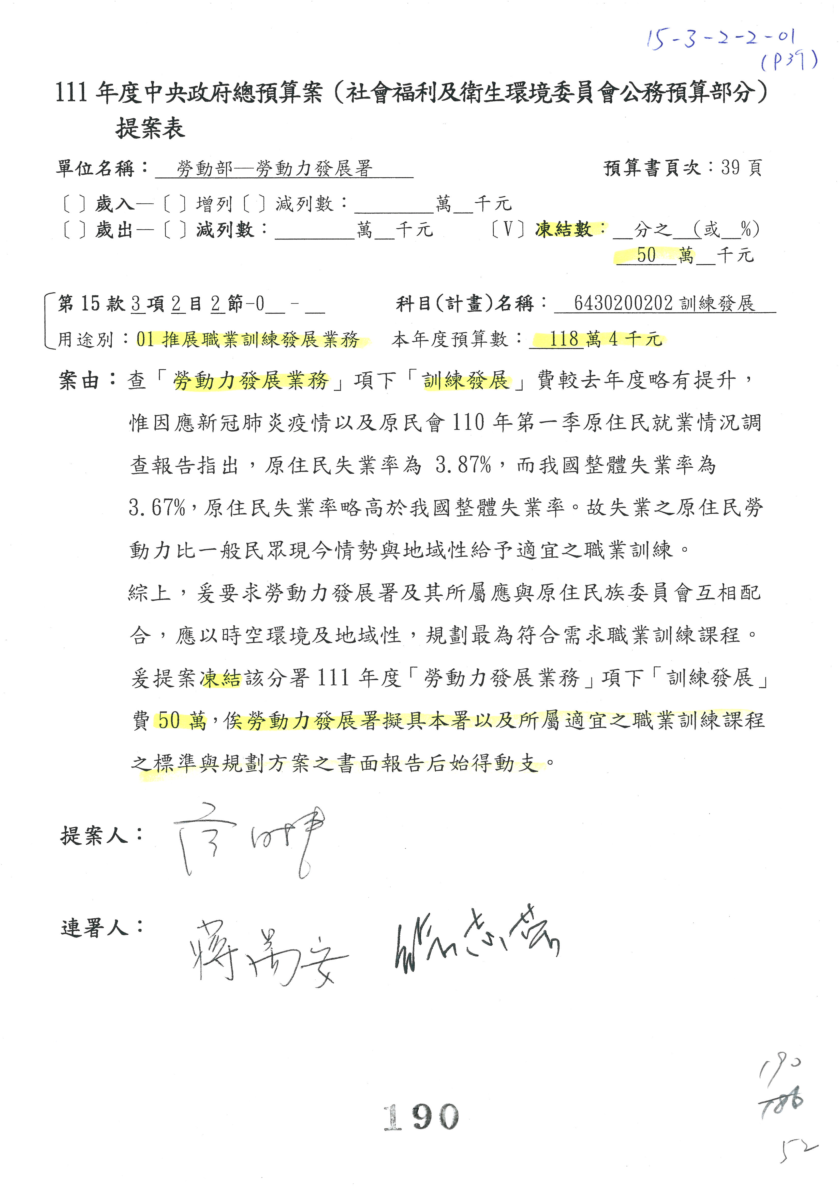 陳司長美女:第3案委員同意改凍10萬元,並同意跟其他委員提案併案,已簽署。