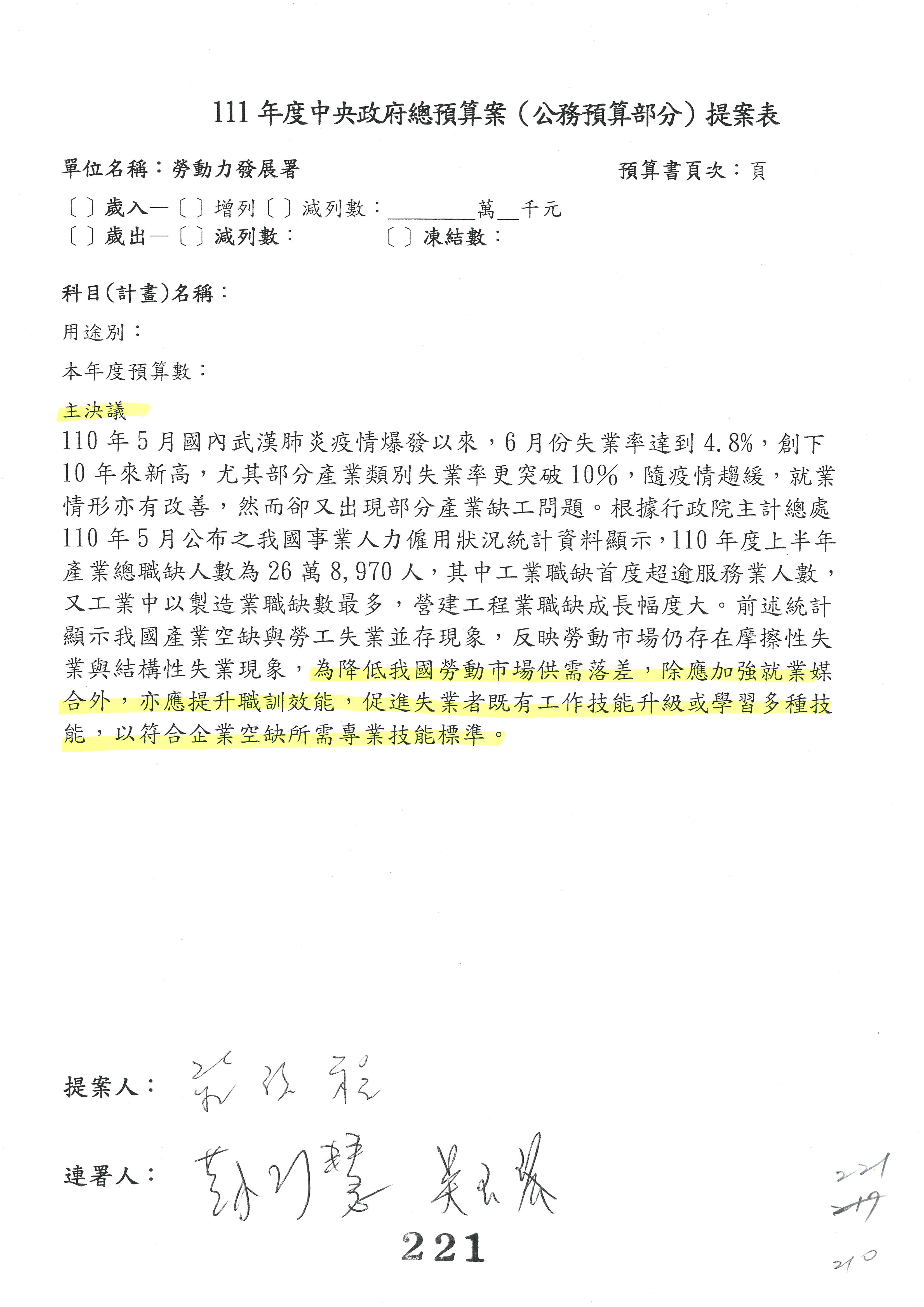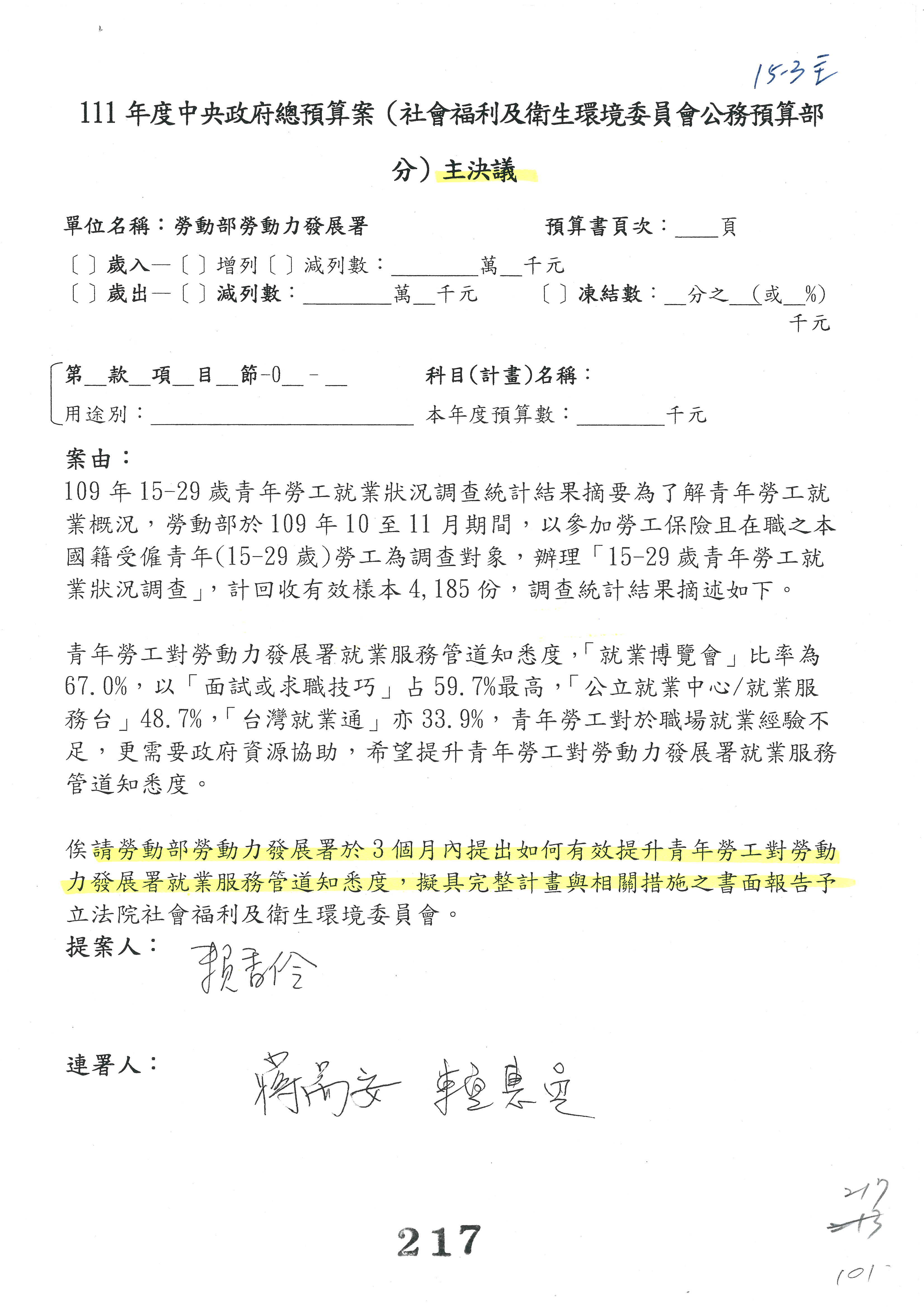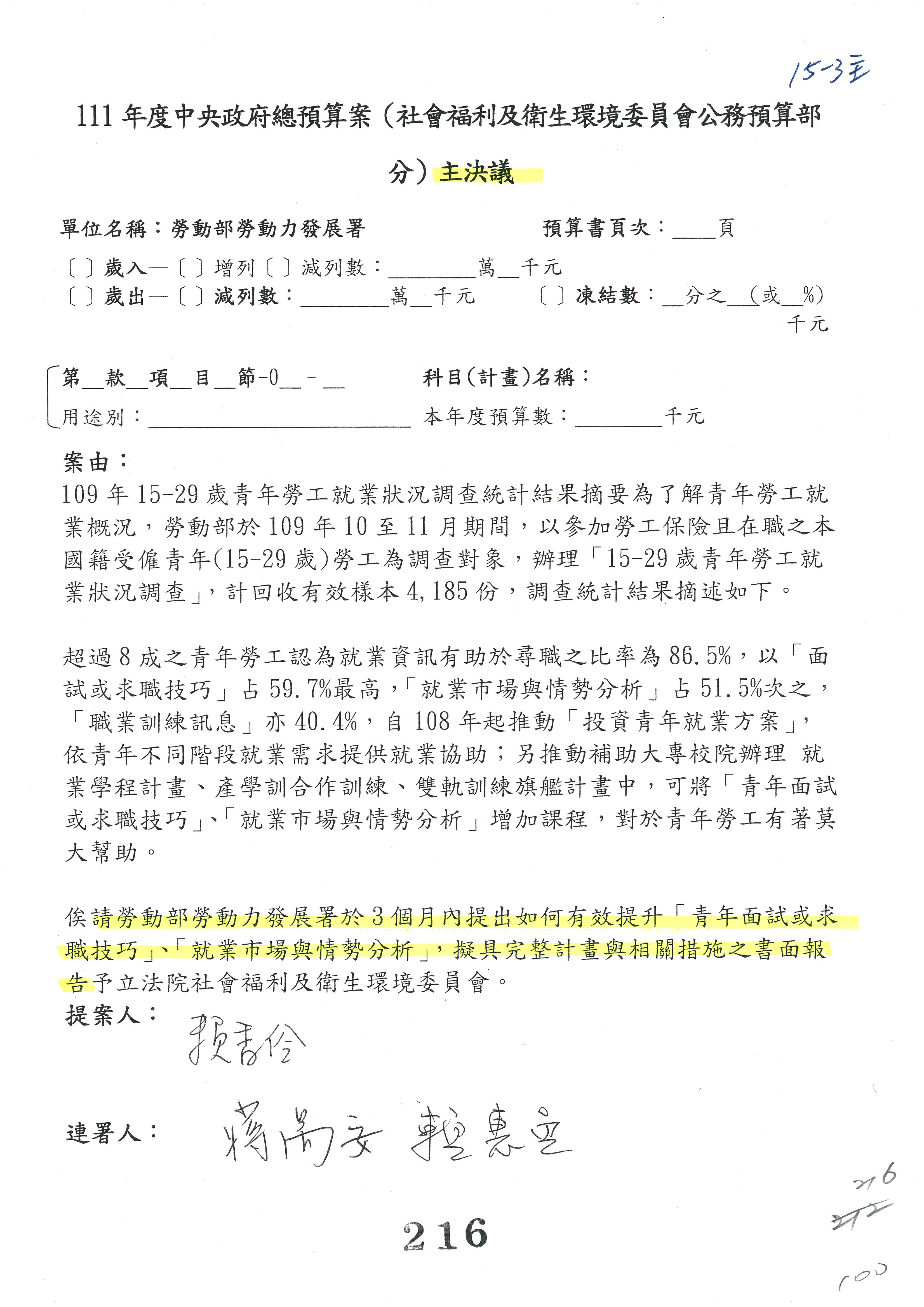 蘇局長郁卿:這個部分,我們也謝謝委員支持,改為主決議,也已經簽名。