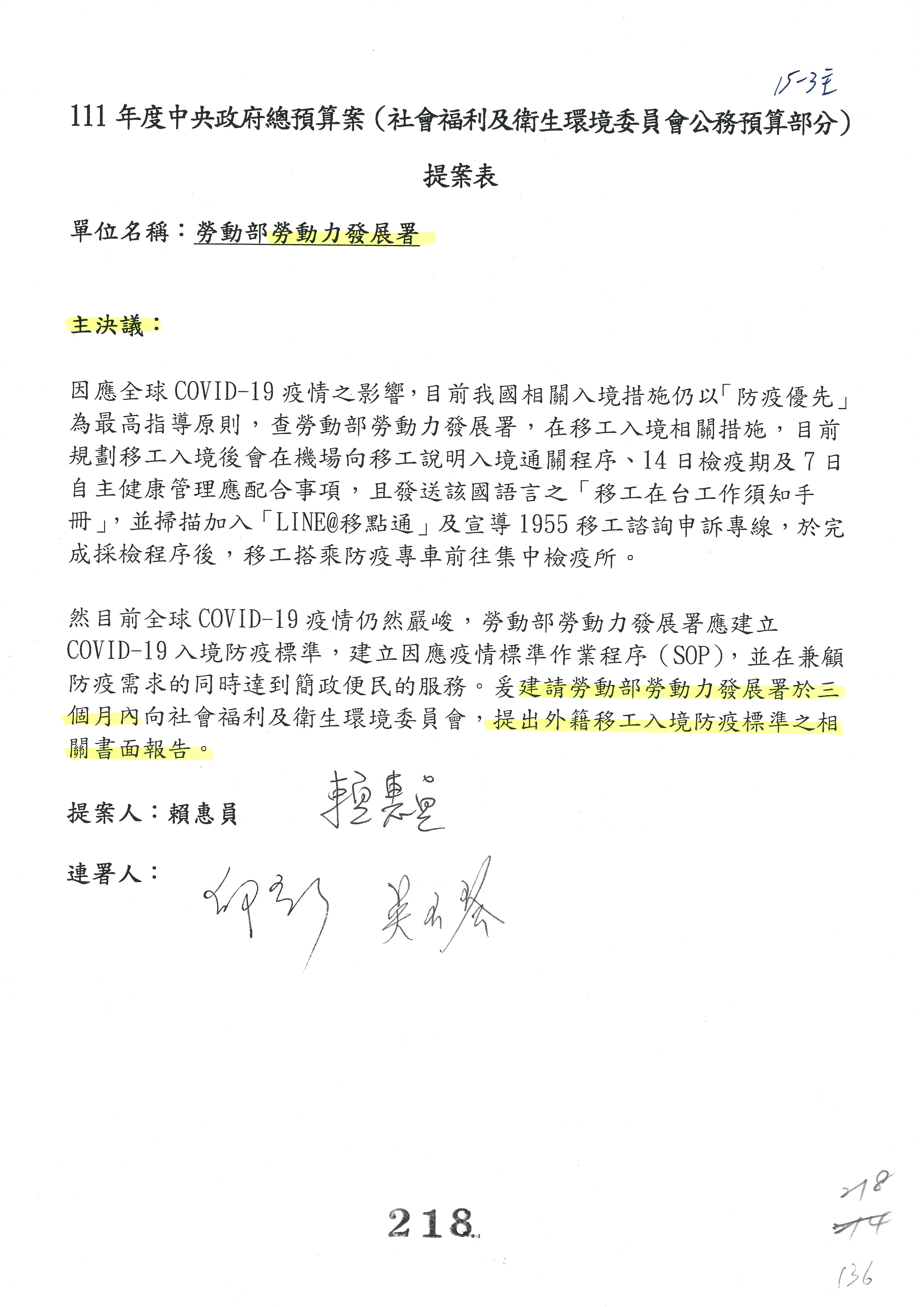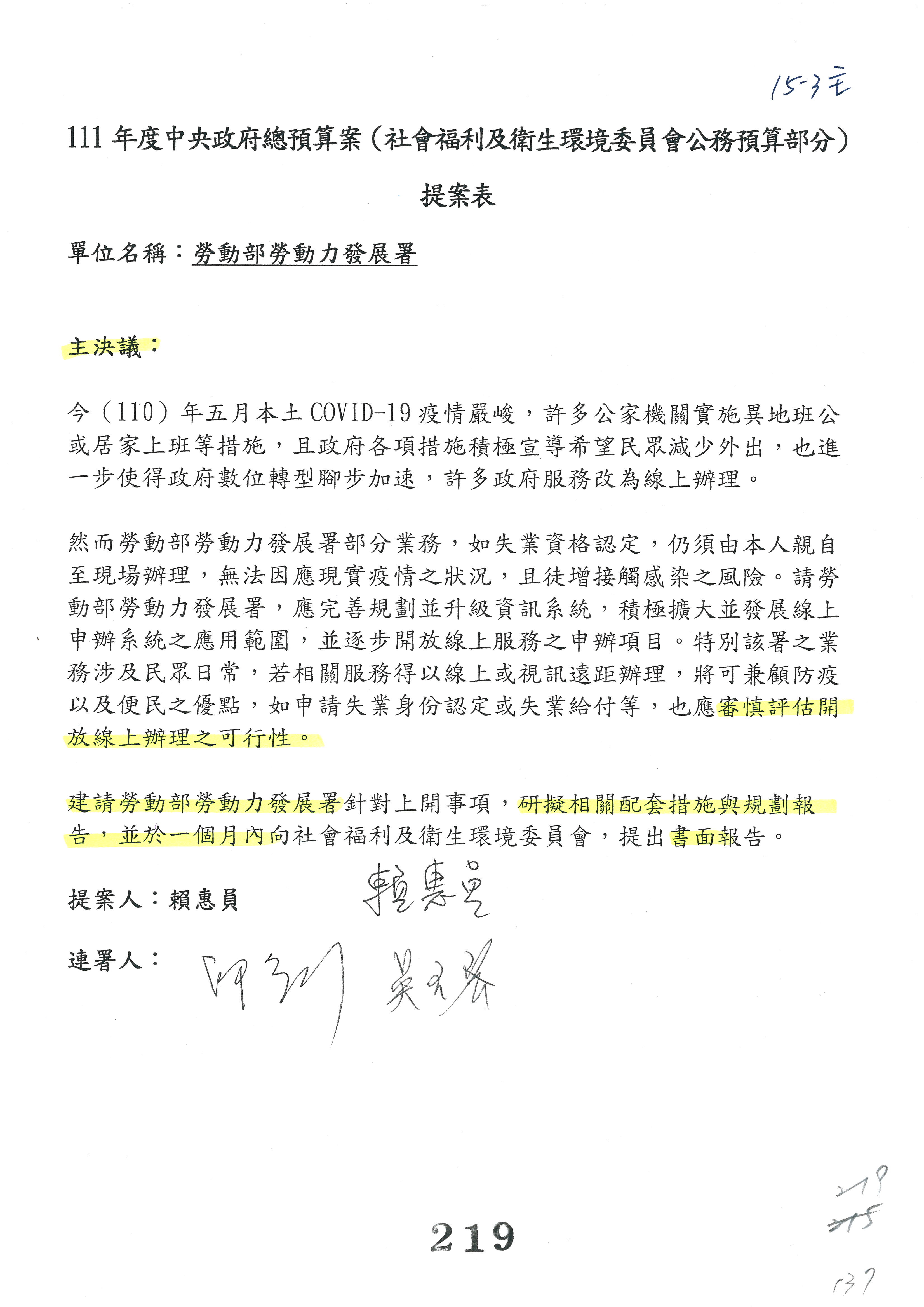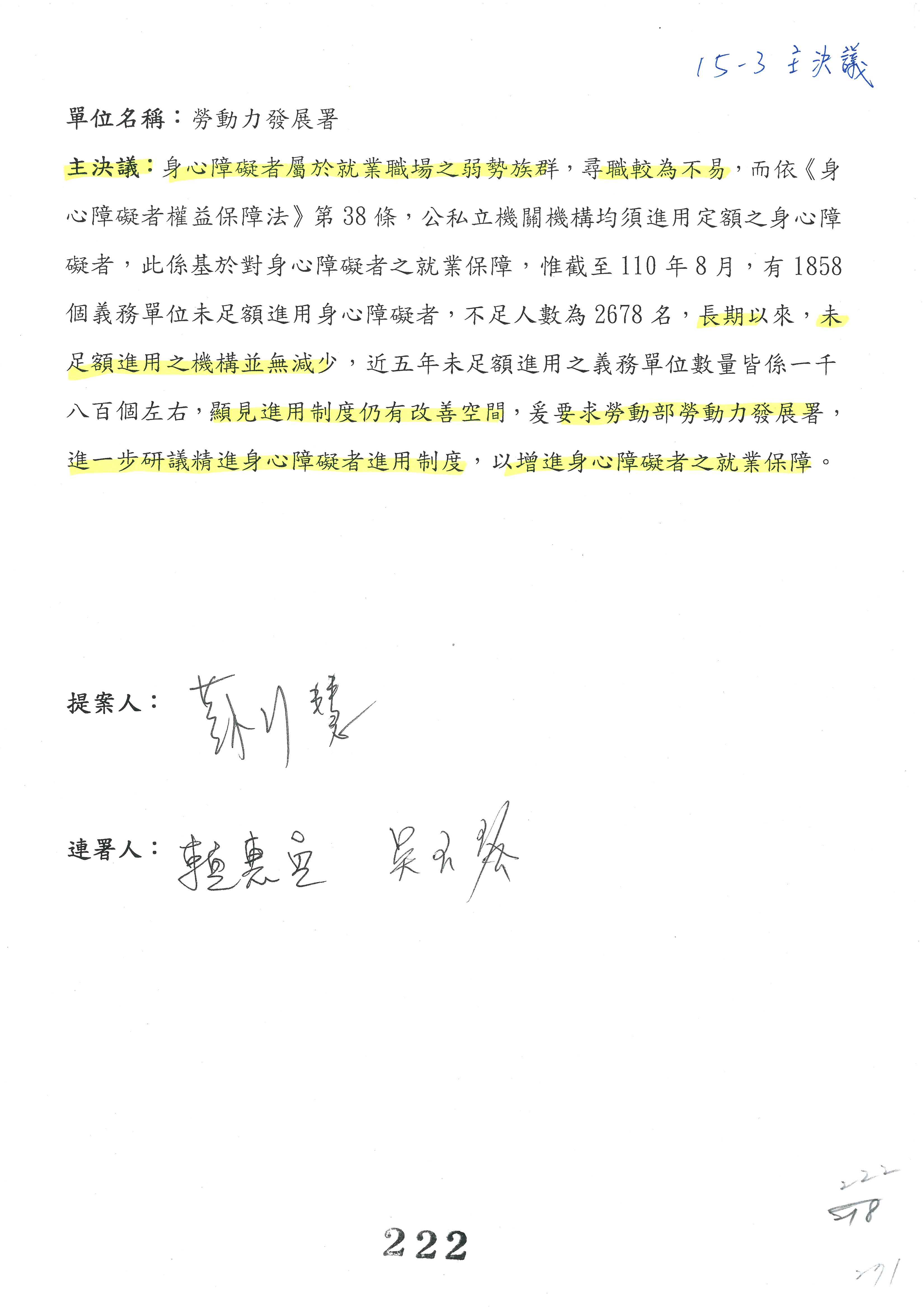 蘇局長郁卿:這個部分,我們也謝謝委員支持,改為主決議,也已經簽名。