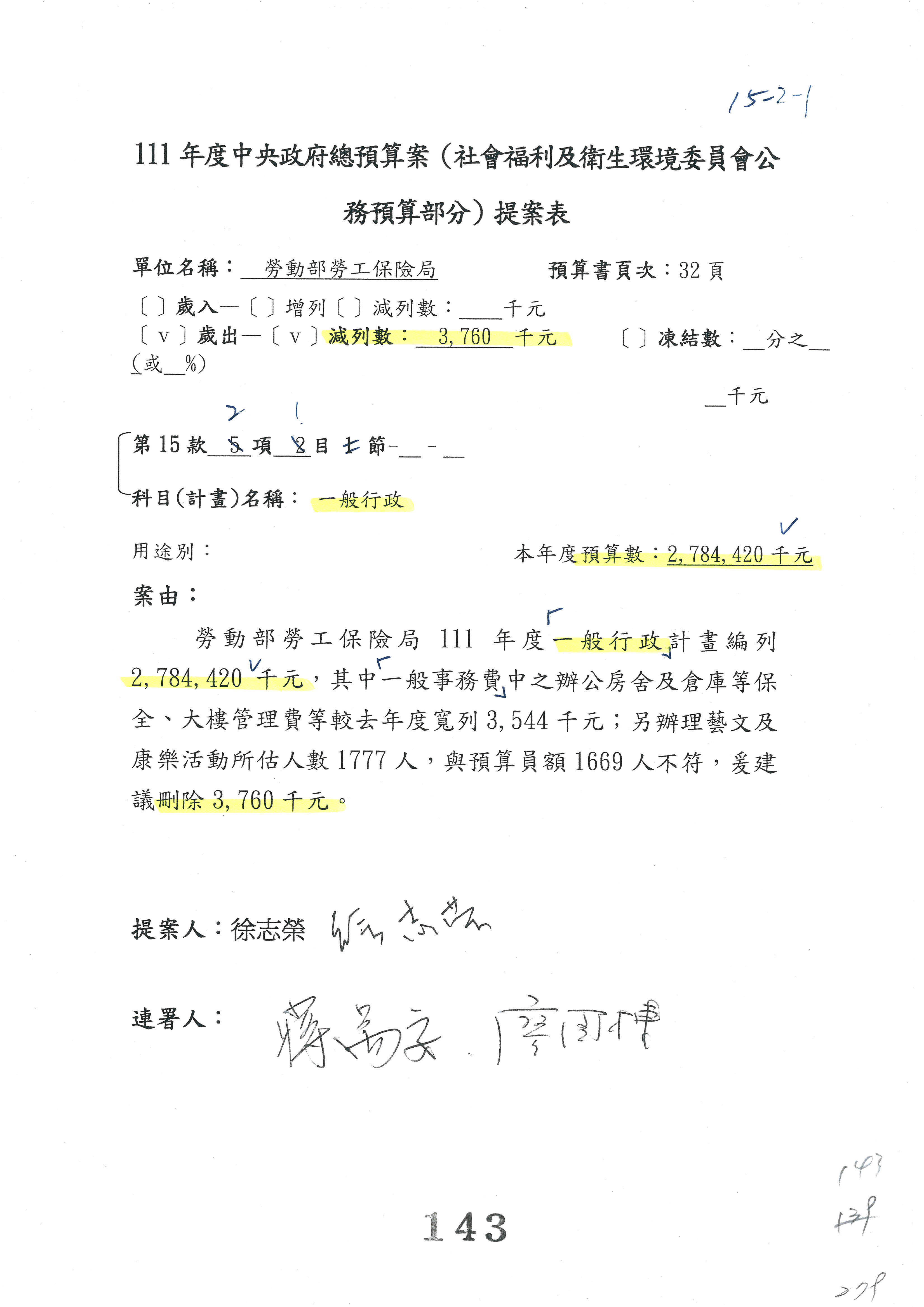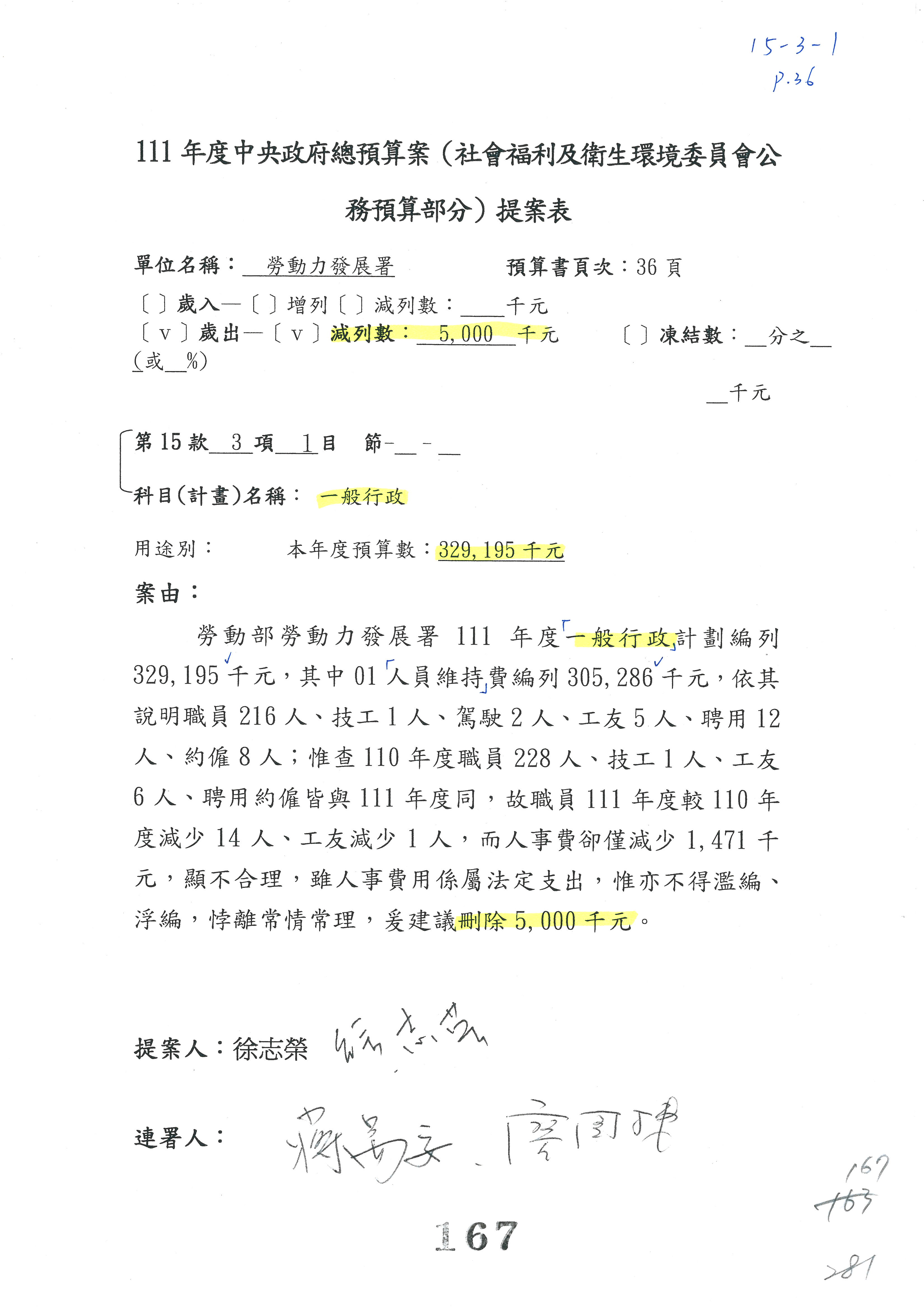 王司長厚誠:在進行提案之前,先懇請委員同意以下預算如果涉及到刪減預算,科目可以自行調整?