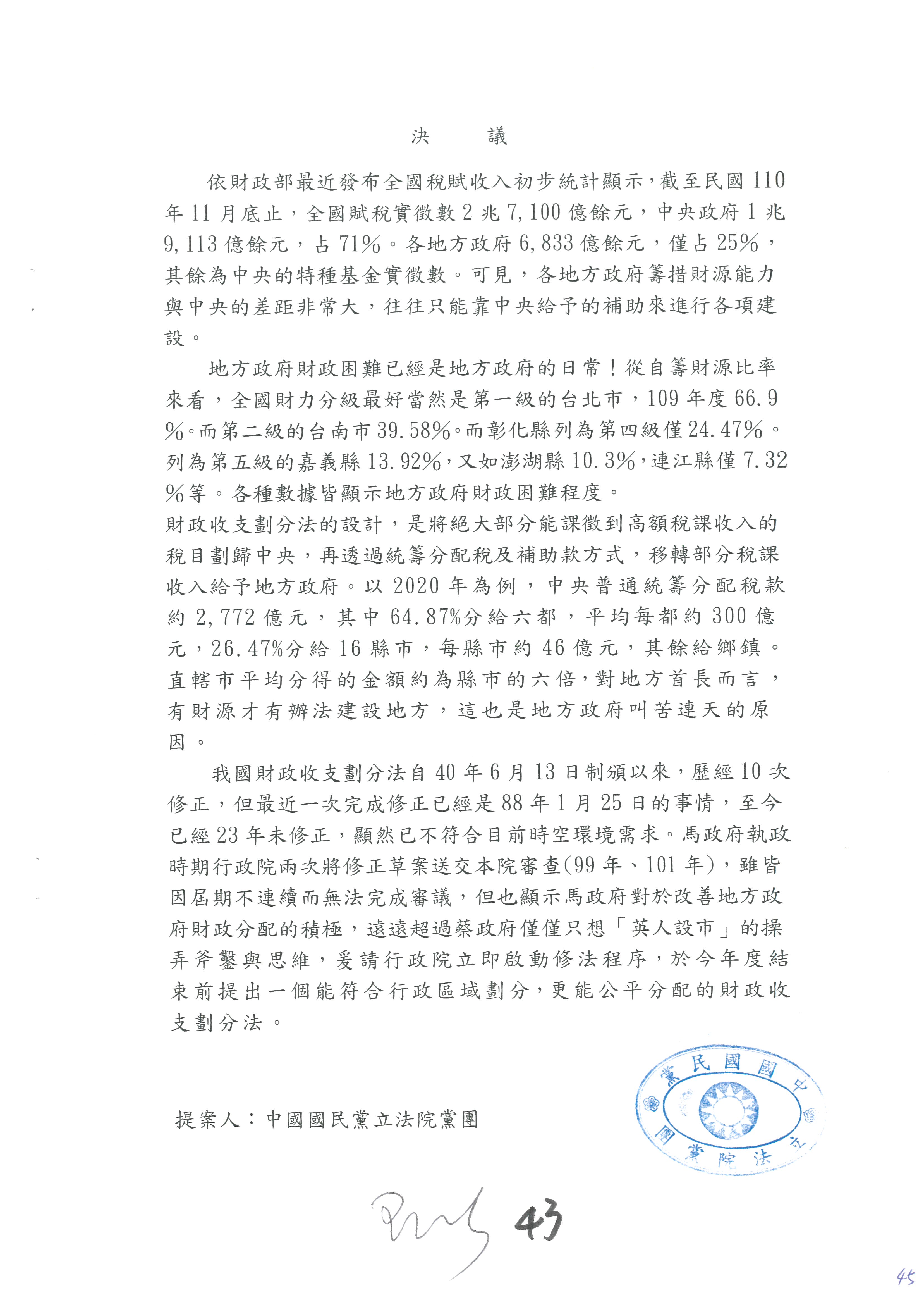 表決時間:中華民國111年1月27日下午6時43分14秒