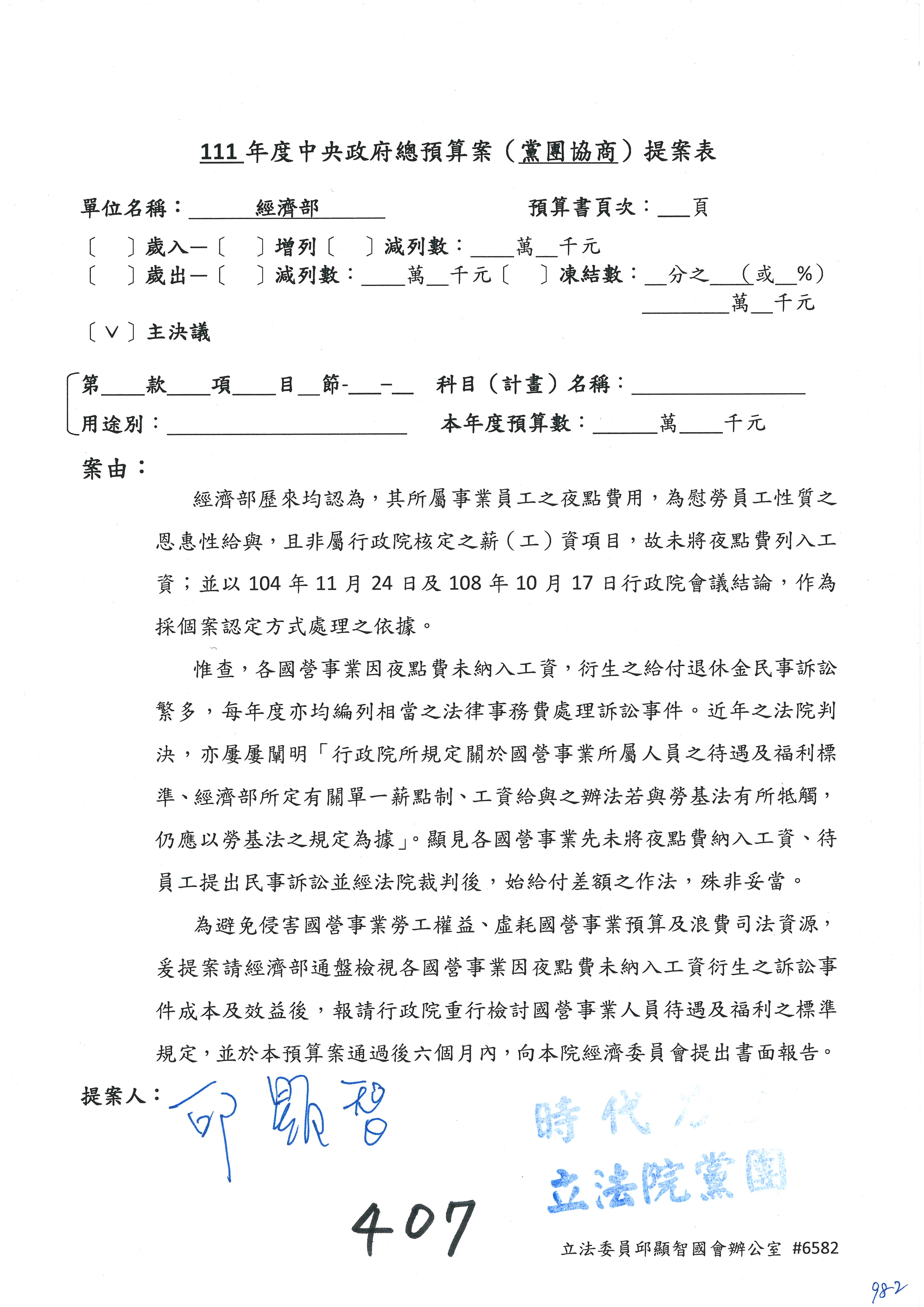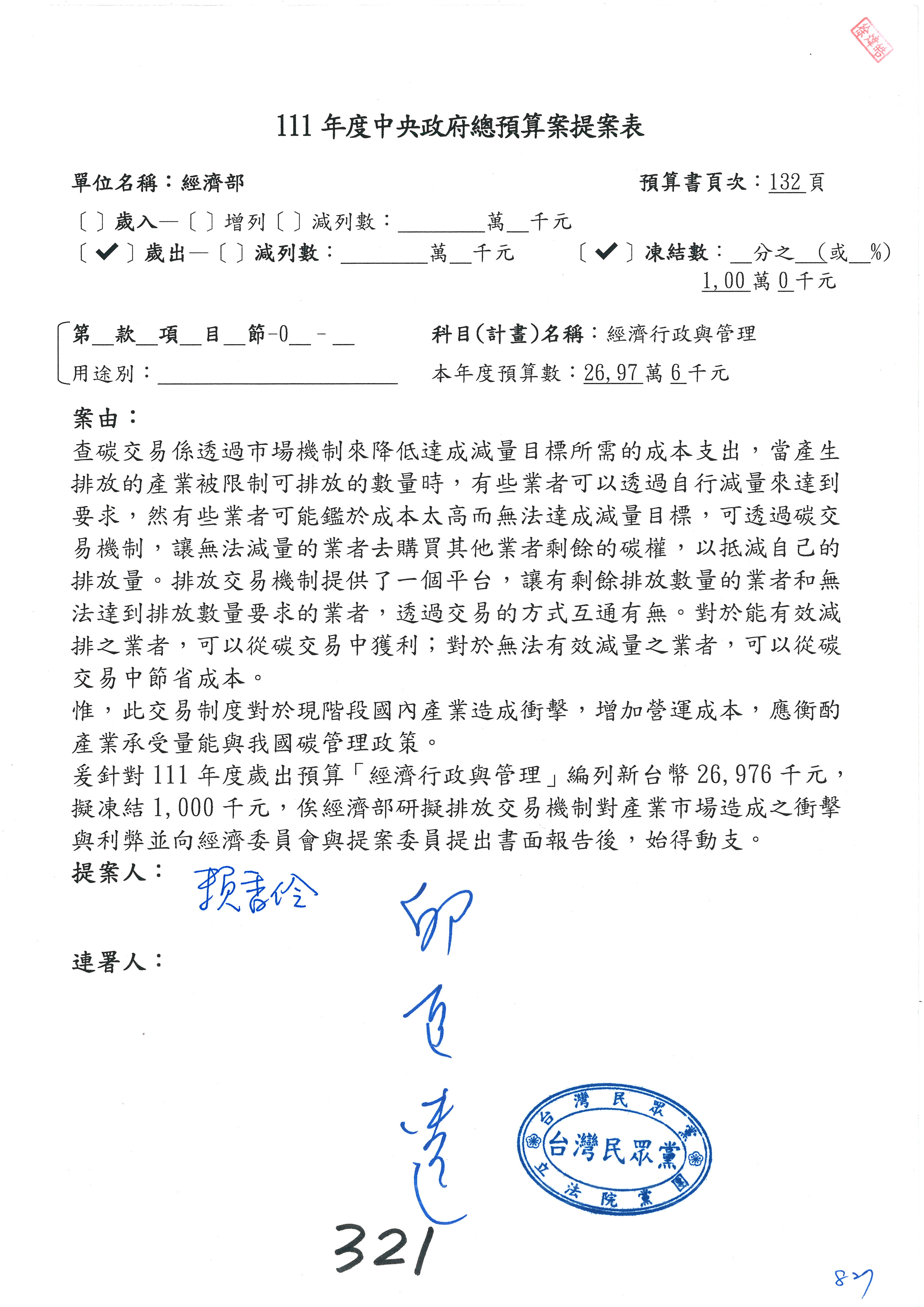 時代力量針對110年度中央政府總預算案提出822案,希望對政府預算監督把關做出有效實質的監督,請大家支持。