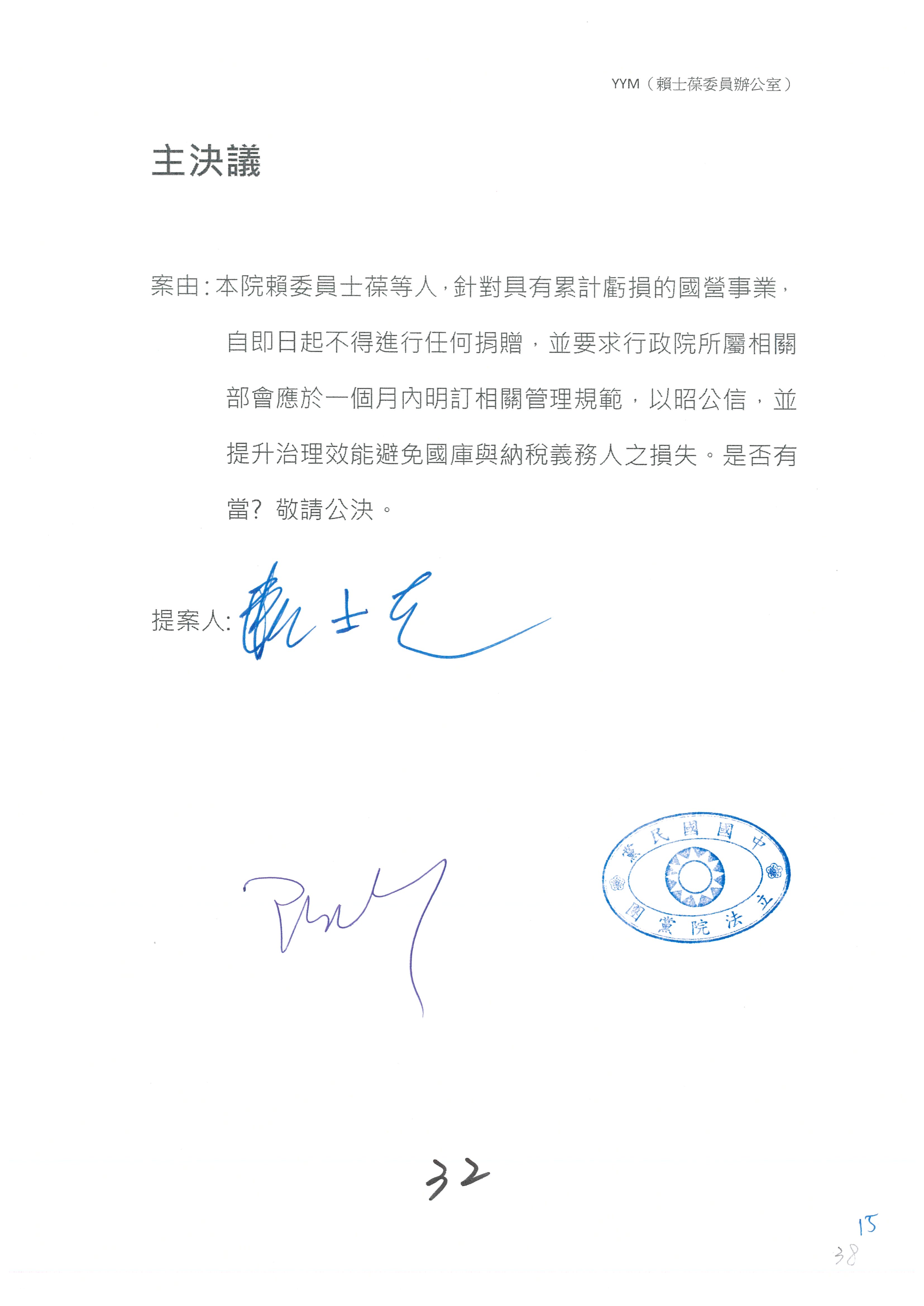 同時,對於像台電、中油這種虧損的國營單位居然還挹注高雄市政府,我們覺得民進黨執政不要再慷人民之慨,該編的預算就覈實編列,不要開口向中油、台電這些虧損的企業要錢。因此我們會有一個提案,要求虧損的國營企業不得捐獻,我希望所有的政黨要準此原則。