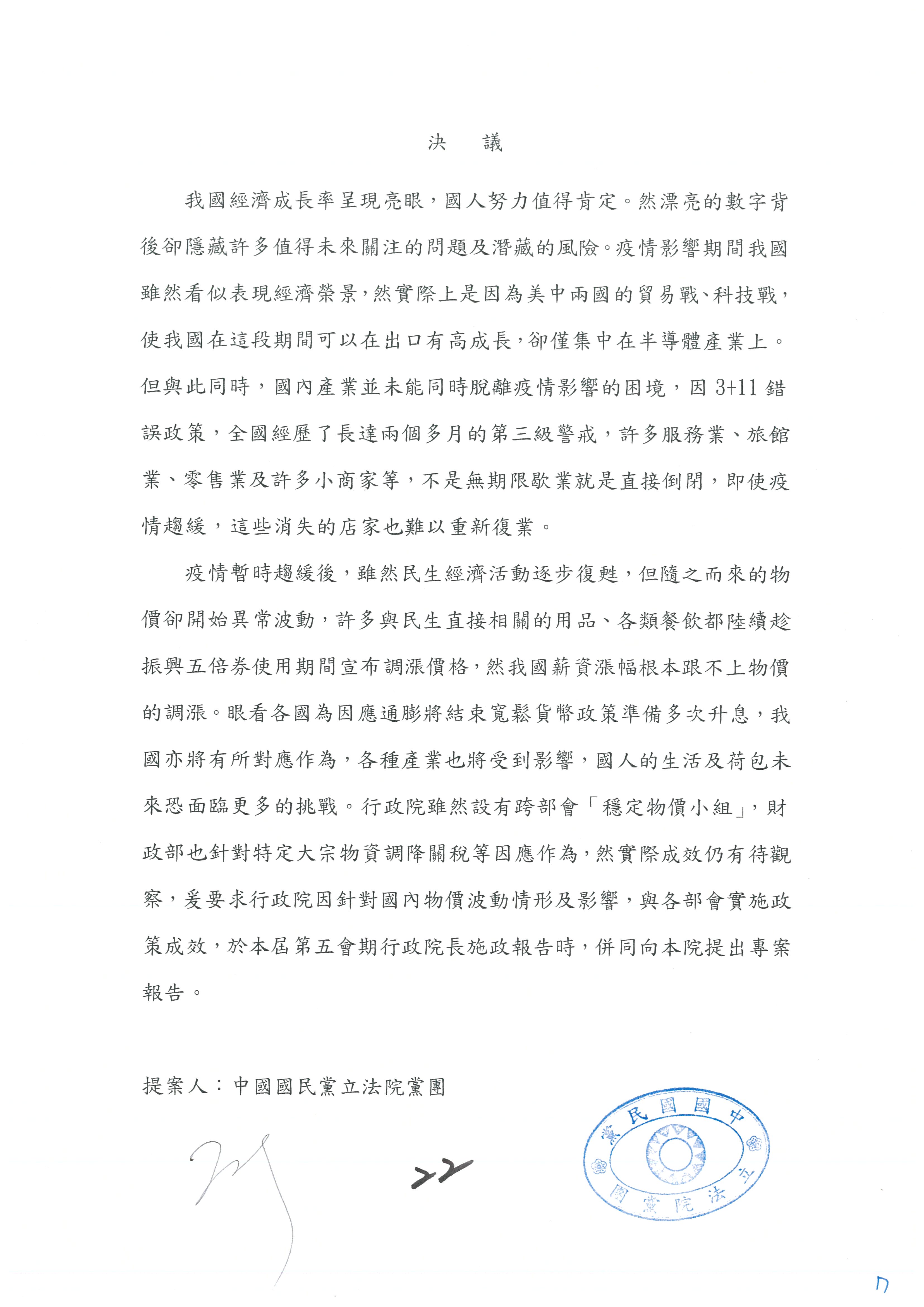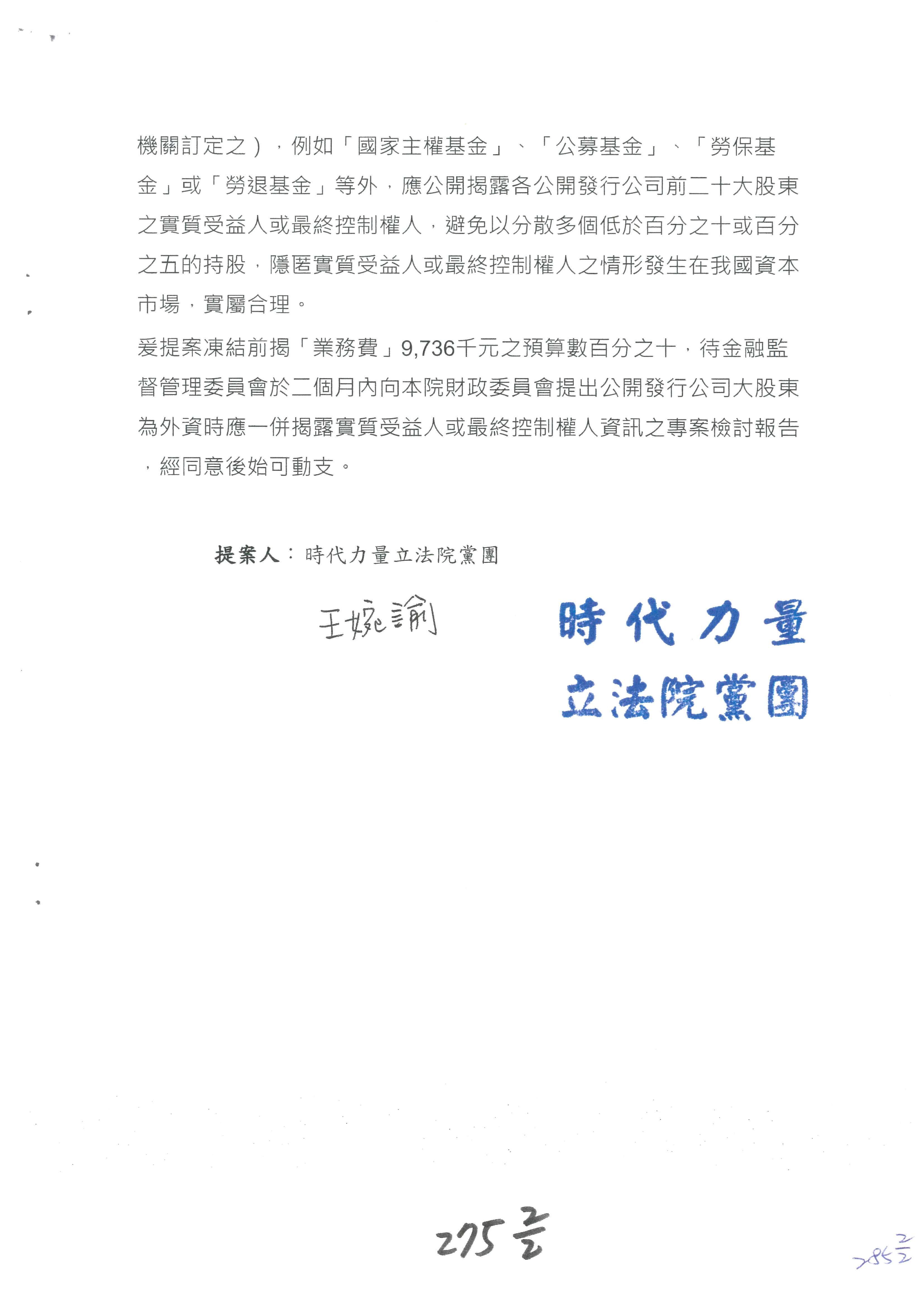 主席:張委員其祿聲明對剛才之表決與民眾黨黨團意見一致,列入公報紀錄。