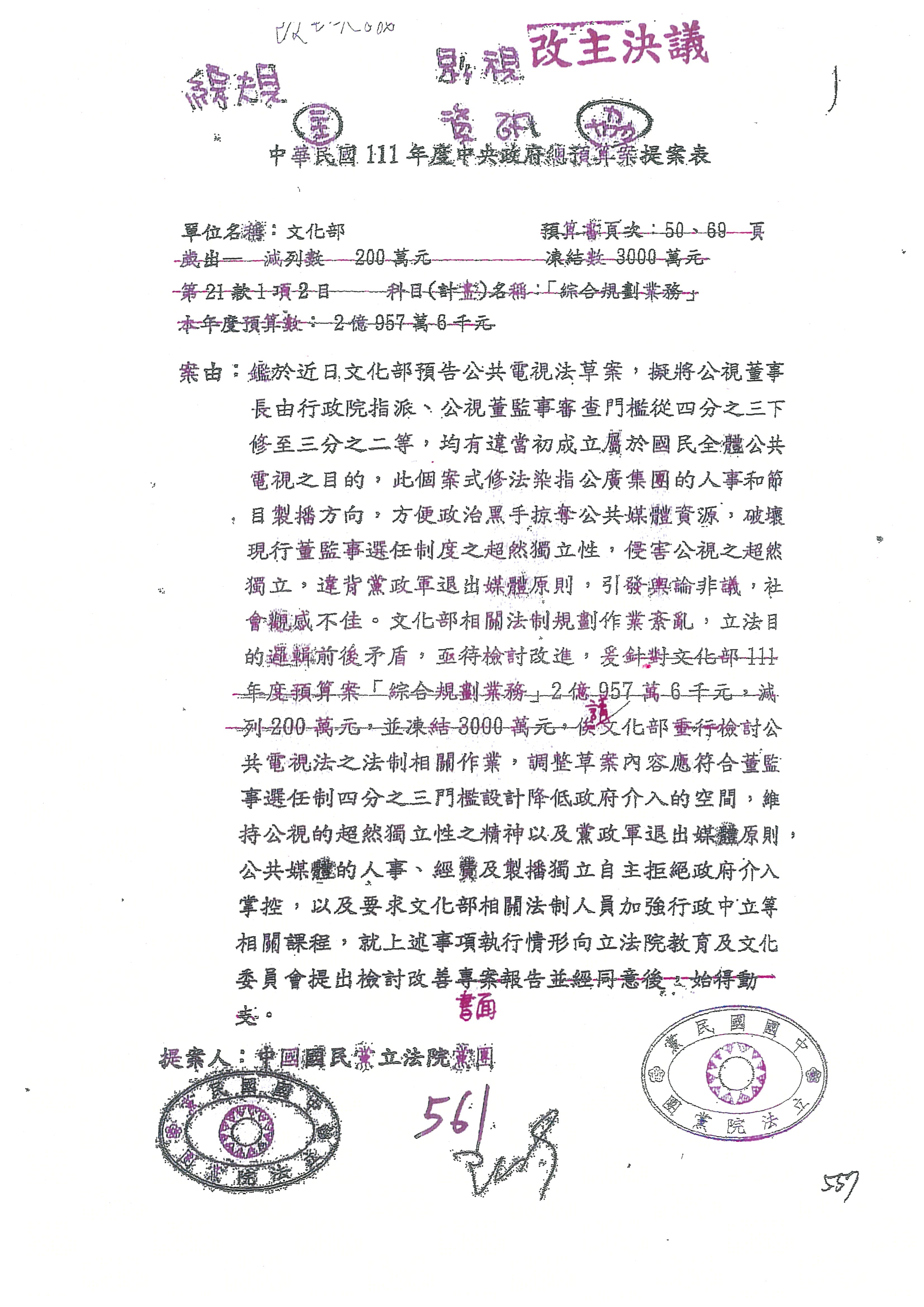 主席:報告表決結果:出席委員100人,贊成者44人,反對者56人,棄權者0人,贊成者少數,本案不通過。