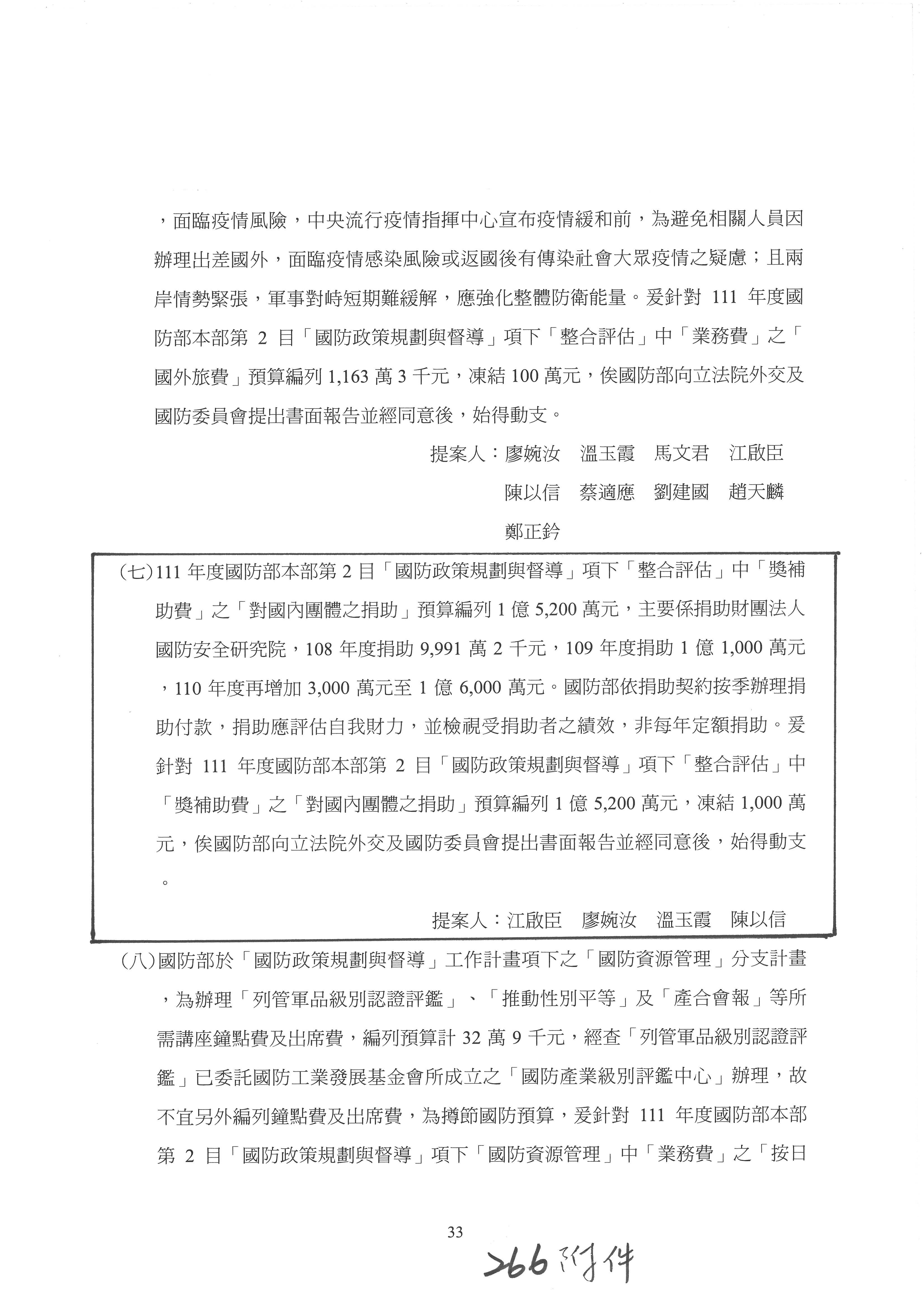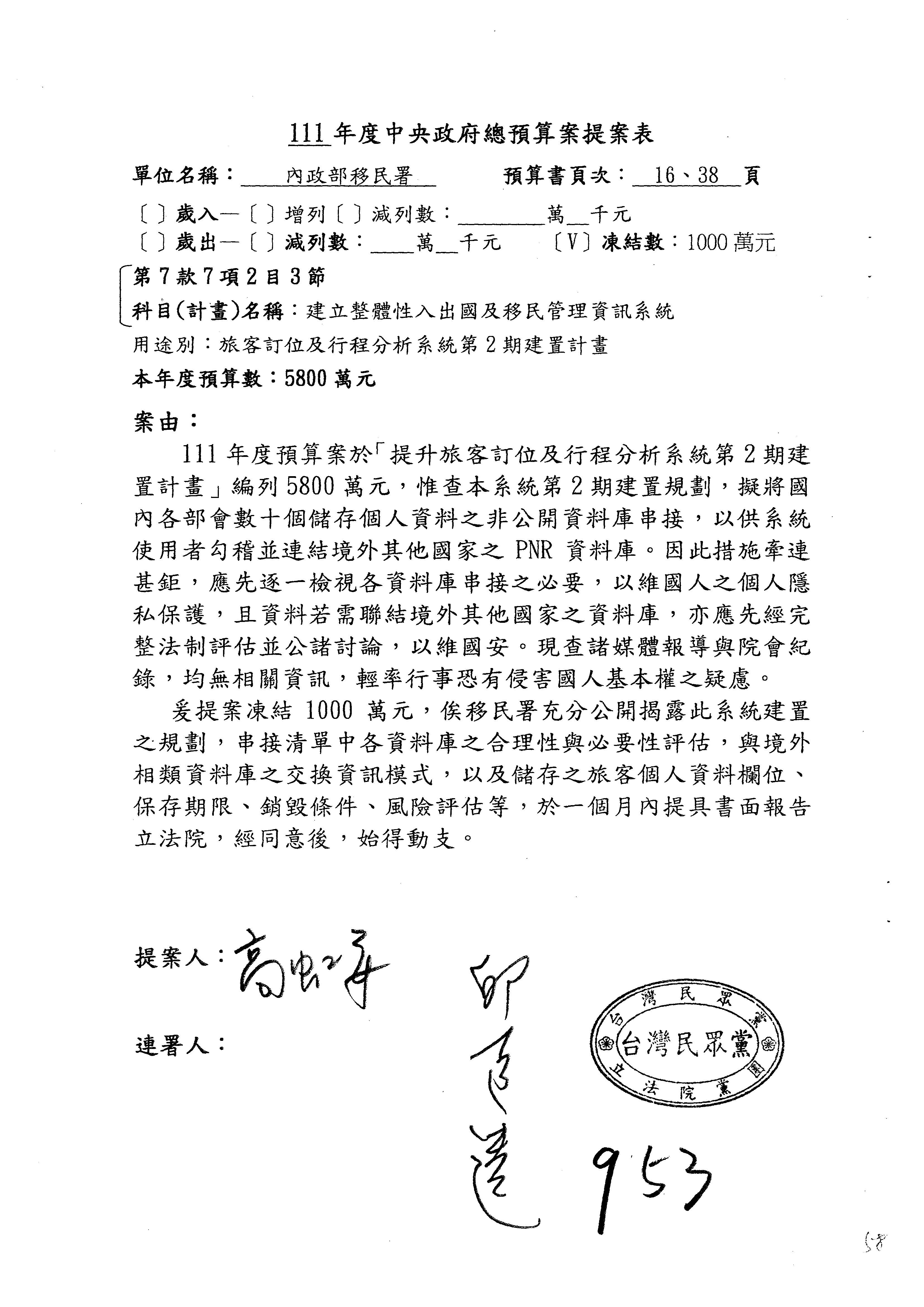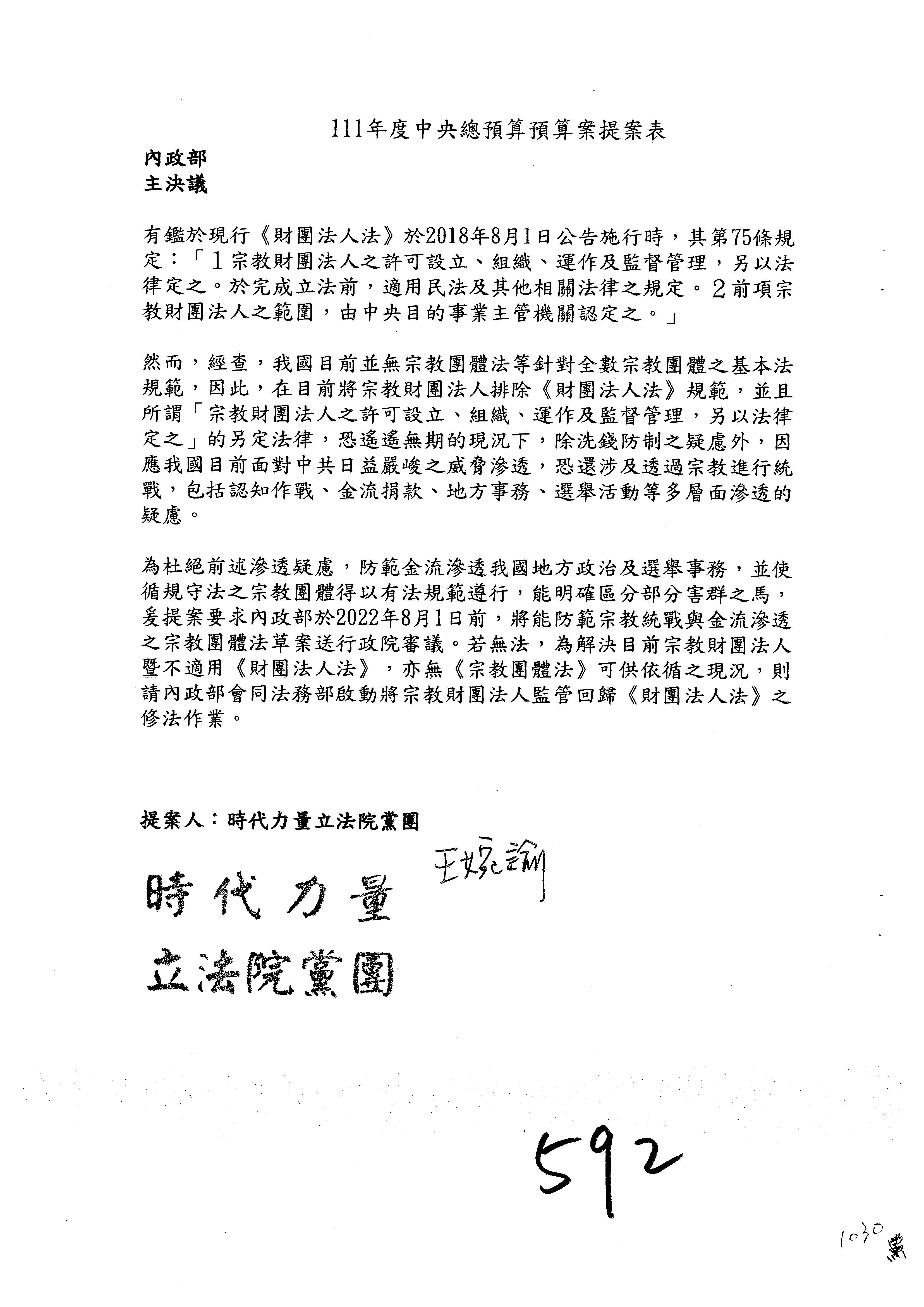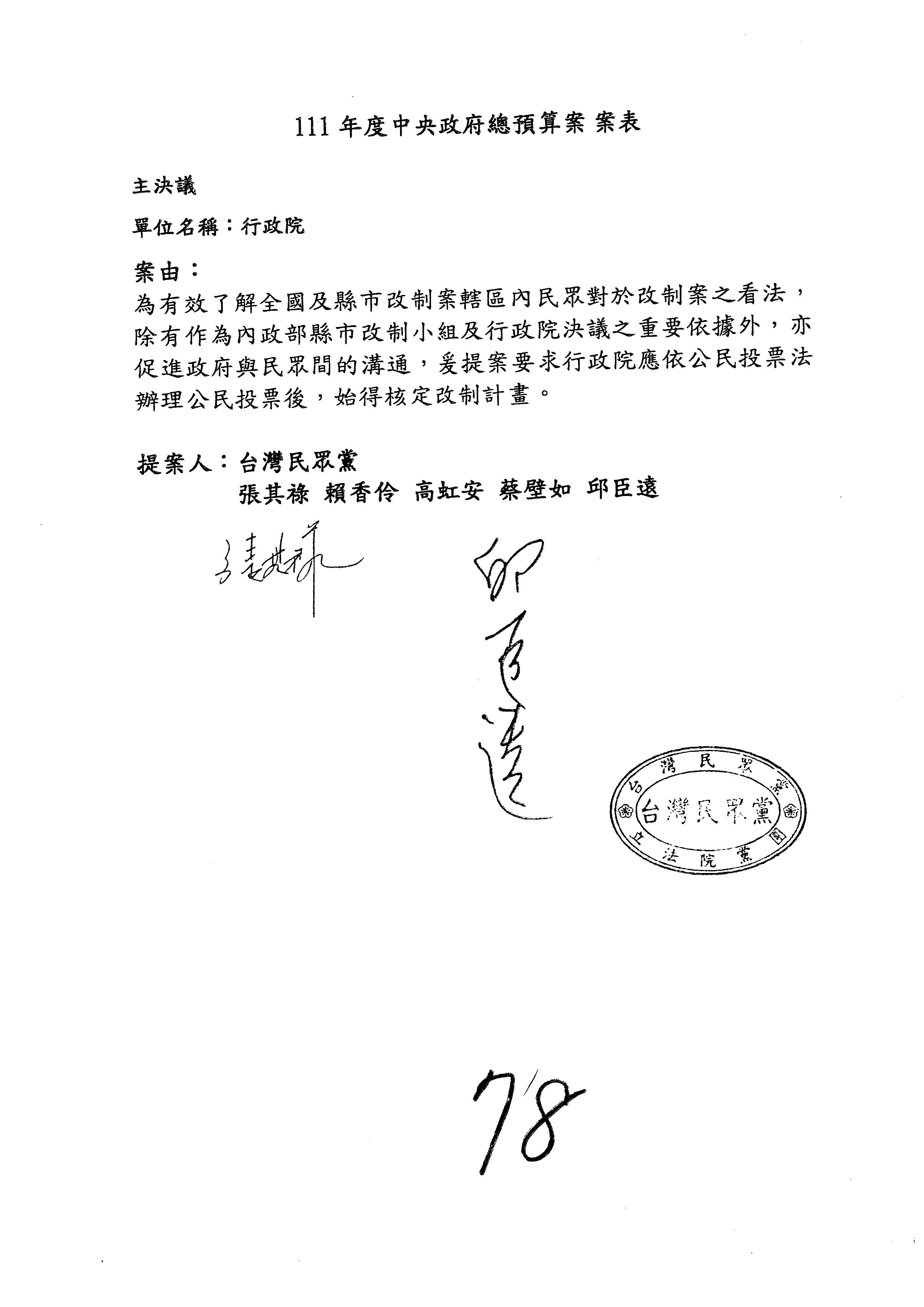在內政部分,我們還是認為雖然這次地制法沒有直接進行修法,但我們也從臨時會的過程中,看到地制法有非常多的問題,包括未來地方制度不管是改制或者升格,這些過程不只是重視一個字的修法,必須還是要有充分民意的溝通,甚至要發揮更多由下而上的機制,才能夠更好。所以這次民眾黨在公務預算的提案裡面,也有把地制法需要經過非常充分的民意溝通跟由下而上的機制進行提案,我們也希望等一下能夠得到支持。另外,在公民電子投票連署系統部分,事實上我們的New eID已經延宕非常久,而且在各式各樣的投票中,我們都認為不論是不在籍投票或者是電子投票的方式,在我國並不是完全做不到,但在各會期中卻一再延宕,我們要求儘速上路,這也是民眾黨在內政委員會相關的提案,也希望能得到支持。