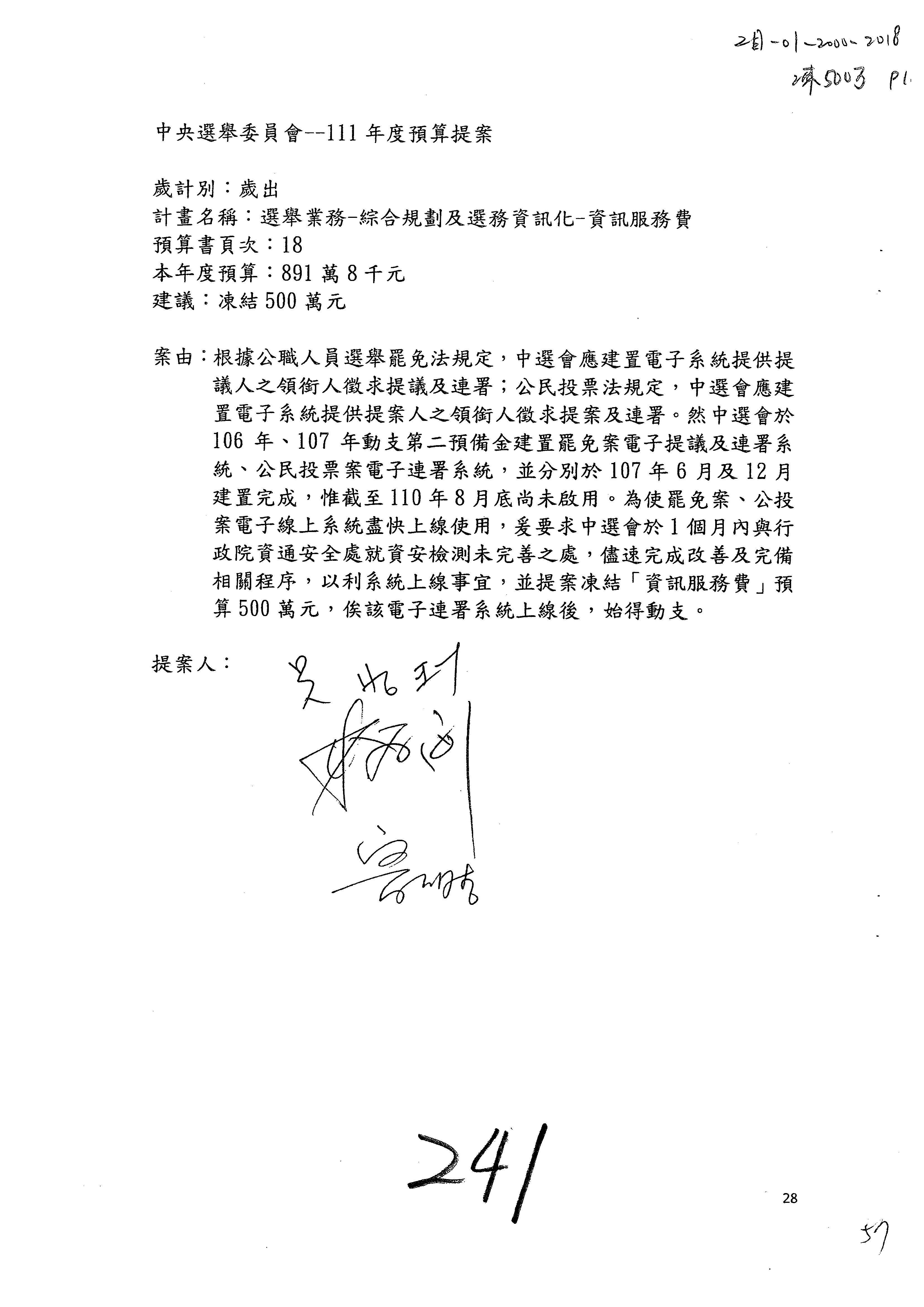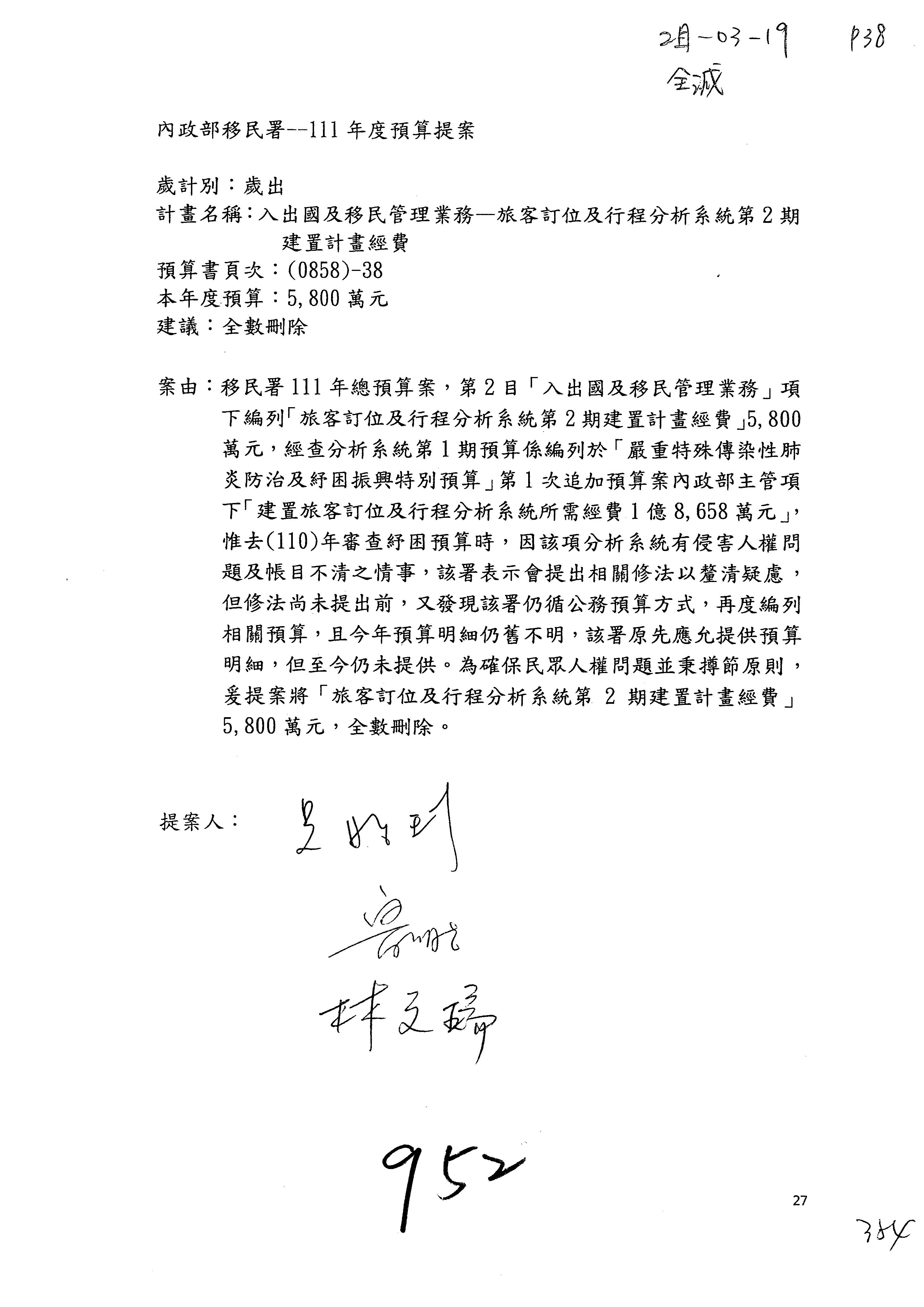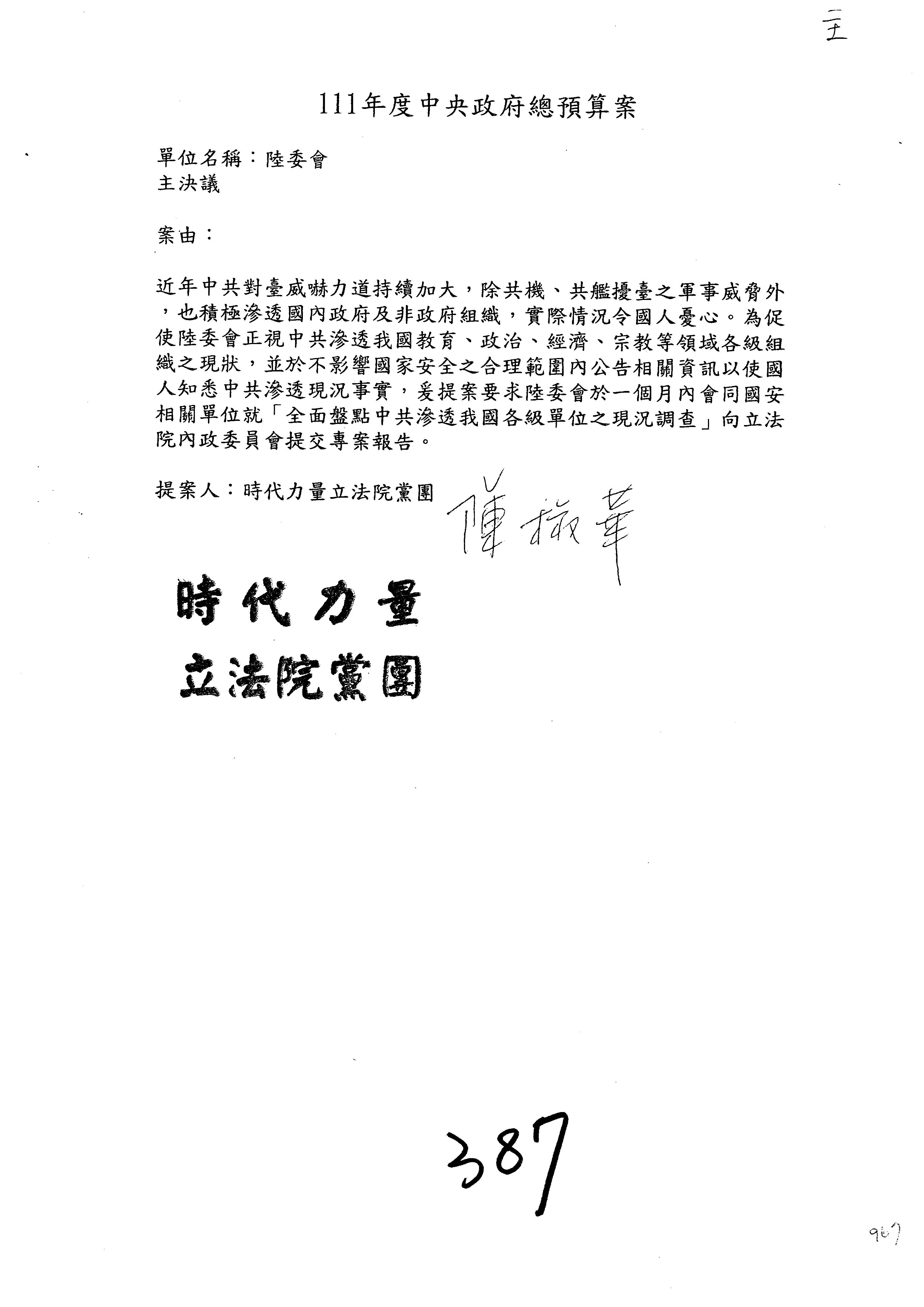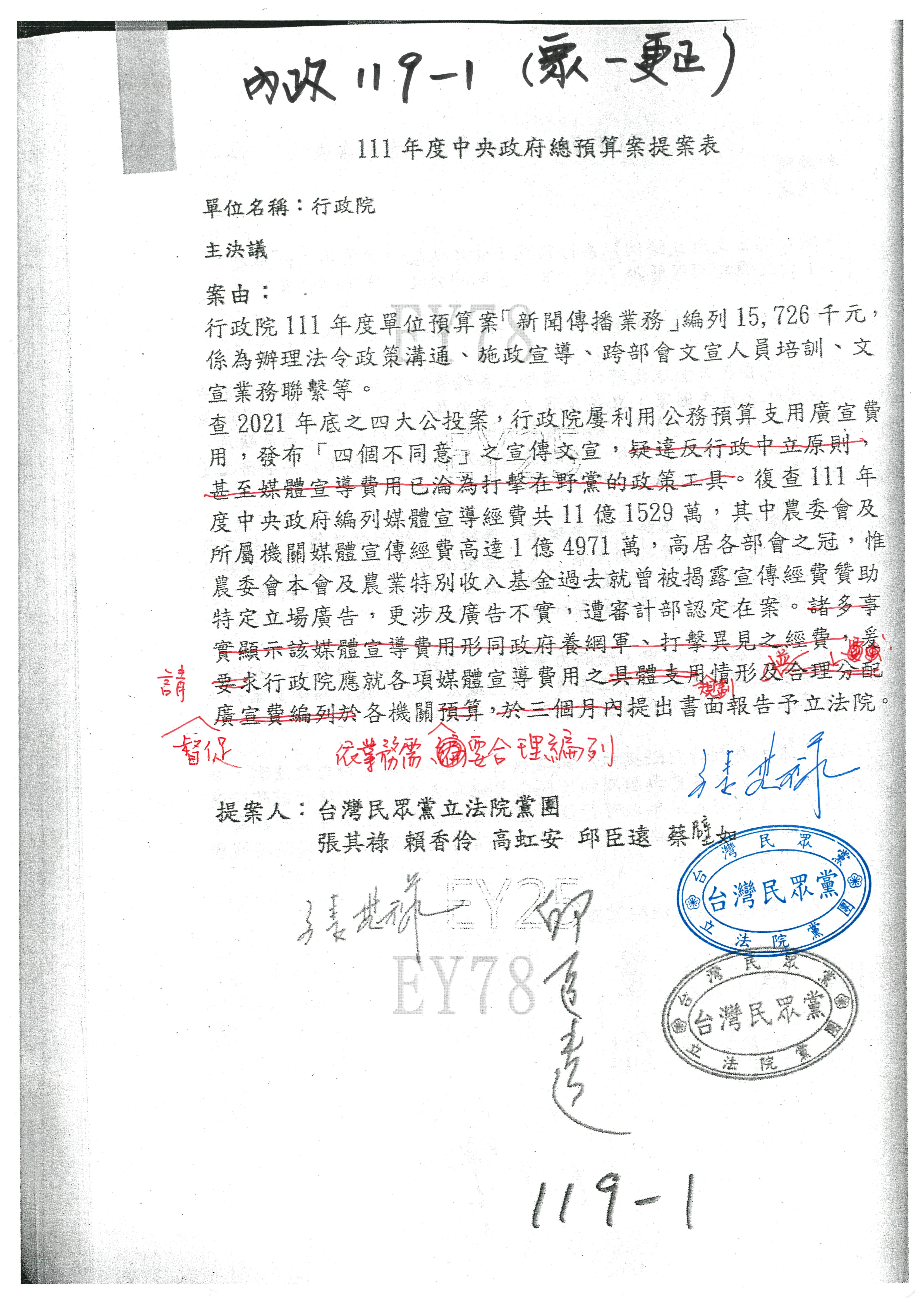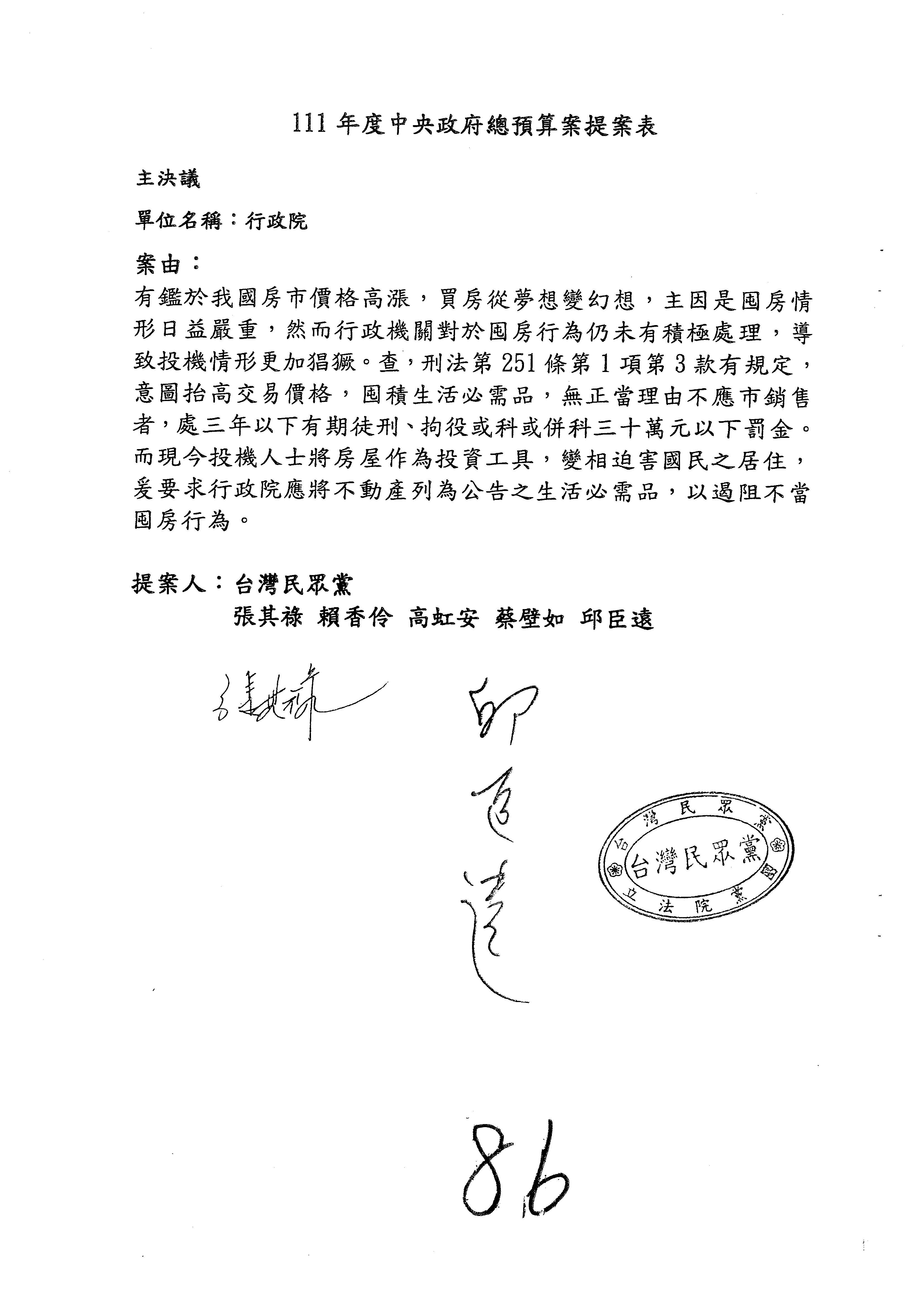 在內政部分,我們還是認為雖然這次地制法沒有直接進行修法,但我們也從臨時會的過程中,看到地制法有非常多的問題,包括未來地方制度不管是改制或者升格,這些過程不只是重視一個字的修法,必須還是要有充分民意的溝通,甚至要發揮更多由下而上的機制,才能夠更好。所以這次民眾黨在公務預算的提案裡面,也有把地制法需要經過非常充分的民意溝通跟由下而上的機制進行提案,我們也希望等一下能夠得到支持。另外,在公民電子投票連署系統部分,事實上我們的New eID已經延宕非常久,而且在各式各樣的投票中,我們都認為不論是不在籍投票或者是電子投票的方式,在我國並不是完全做不到,但在各會期中卻一再延宕,我們要求儘速上路,這也是民眾黨在內政委員會相關的提案,也希望能得到支持。
