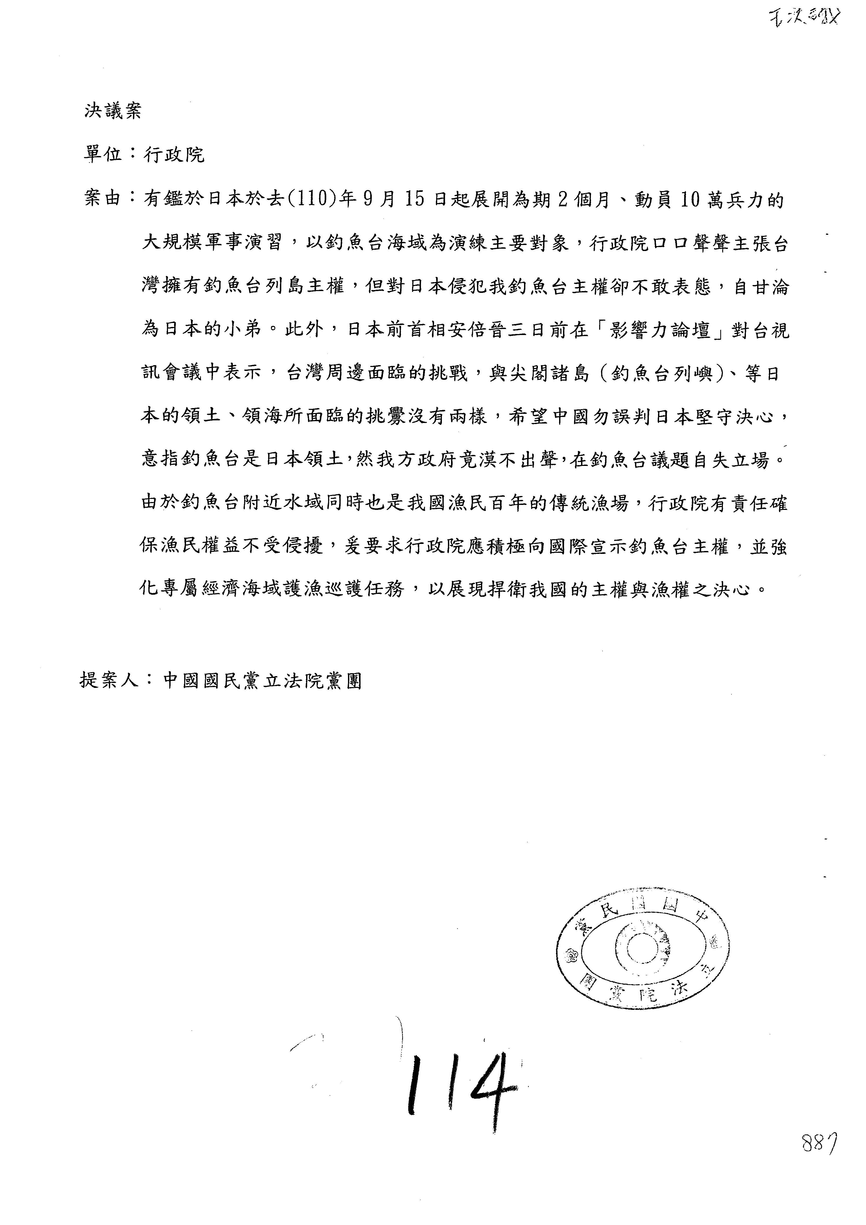 主席:林委員奕華聲明對剛才表決與國民黨黨團意見一致,列入公報紀錄。