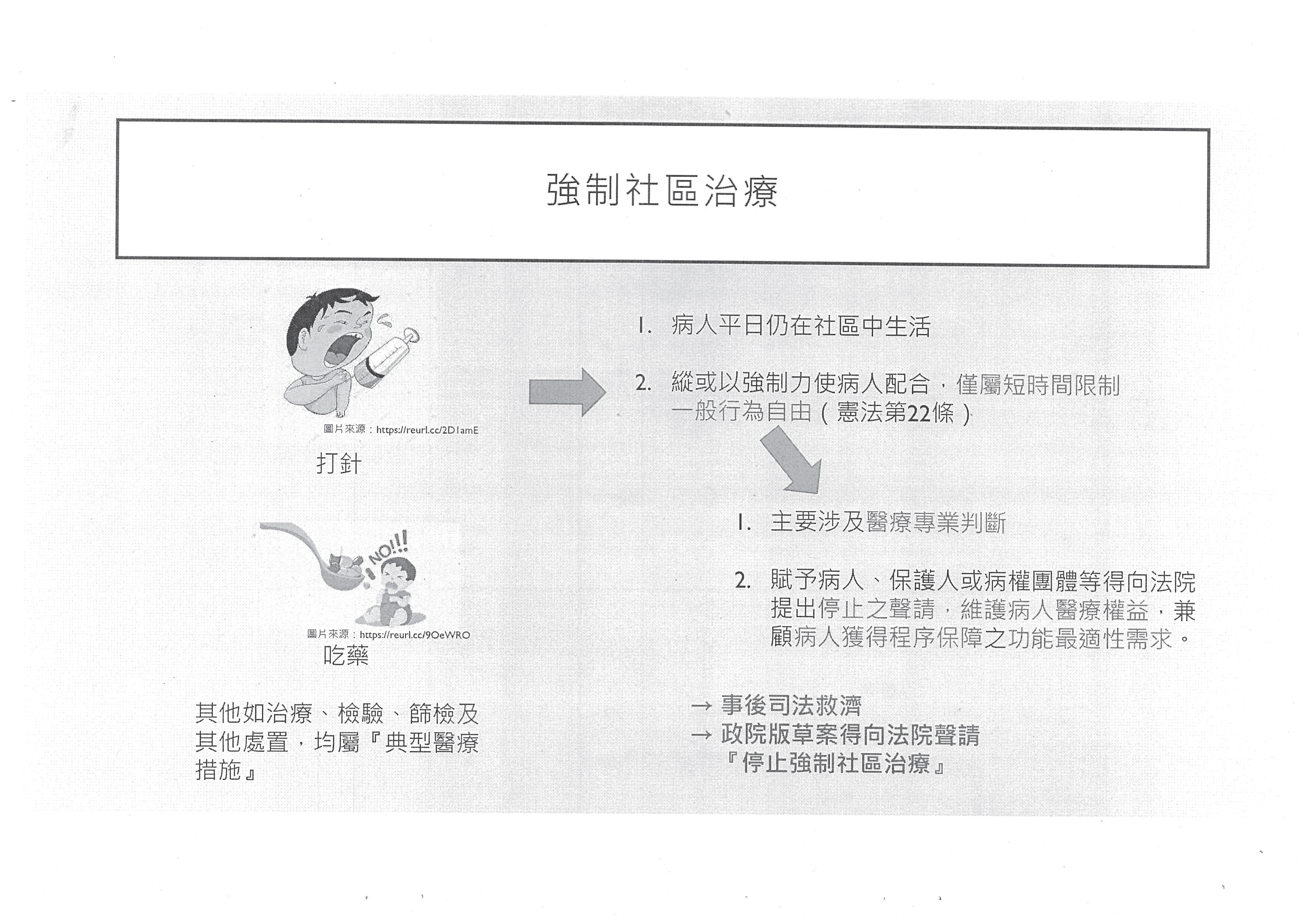 范委員雲:有些的確是長服法本來就有的部分,關於身權法,我要講的是精神衛生法寫細一些,可以提供給一些本來不在身權法裡面,未領有身心障礙證明,但其實是精神病人及其照顧者的權益,這部法可以彌補那邊沒有的部分,我覺得這也很重要,謝謝。