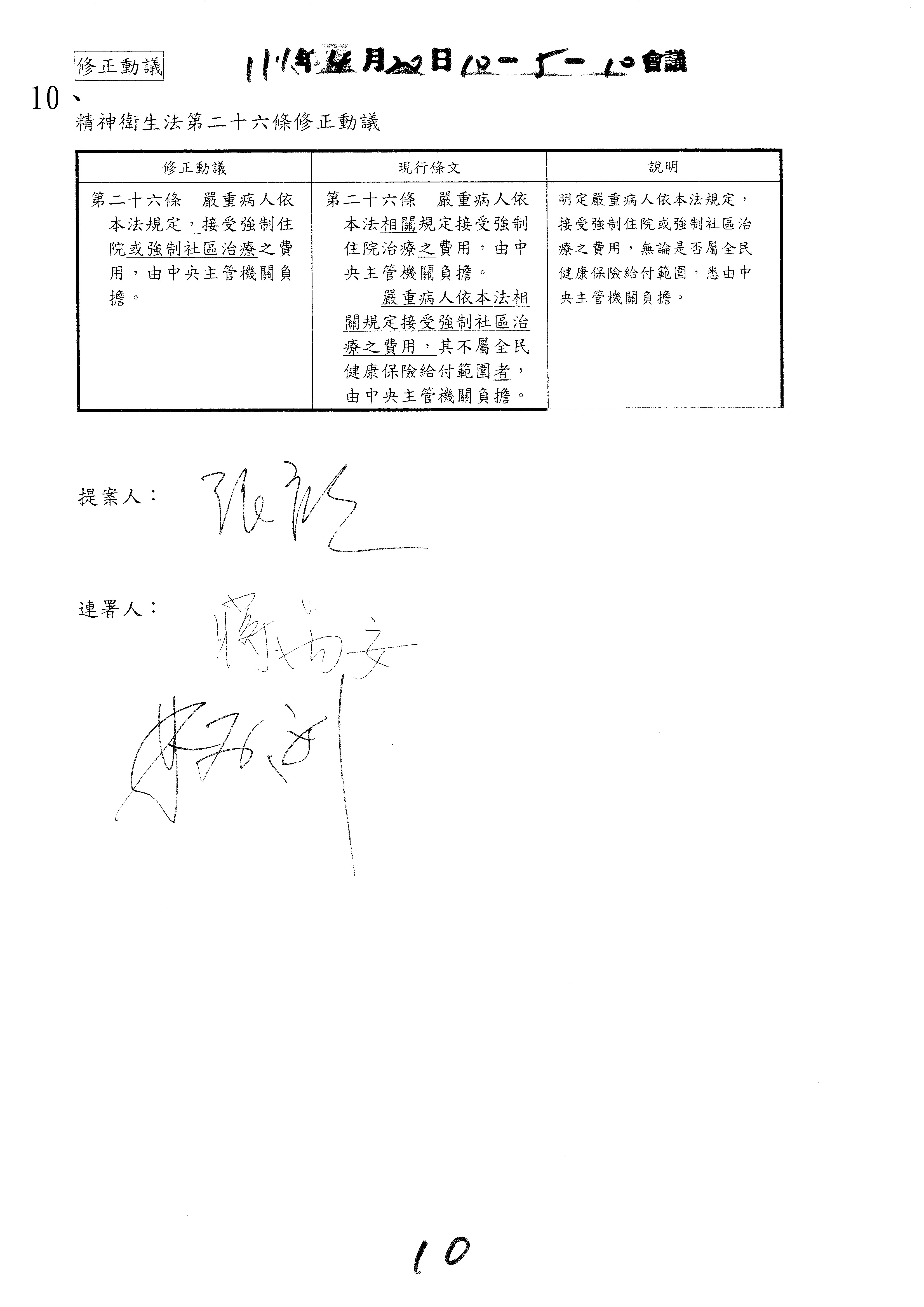 立法院第10屆第5會期社會福利及衛生環境委員會第10次全體委員會議紀錄