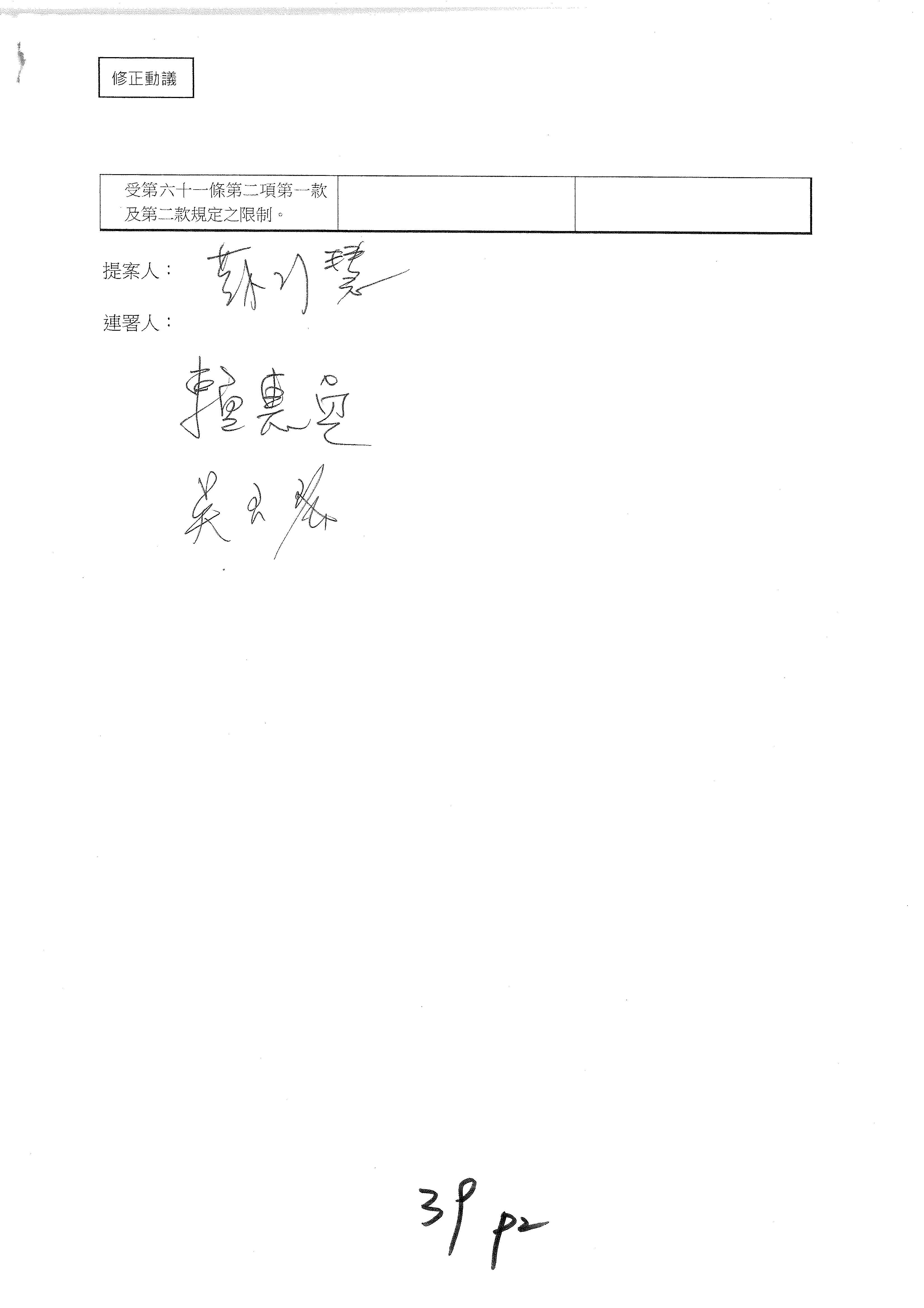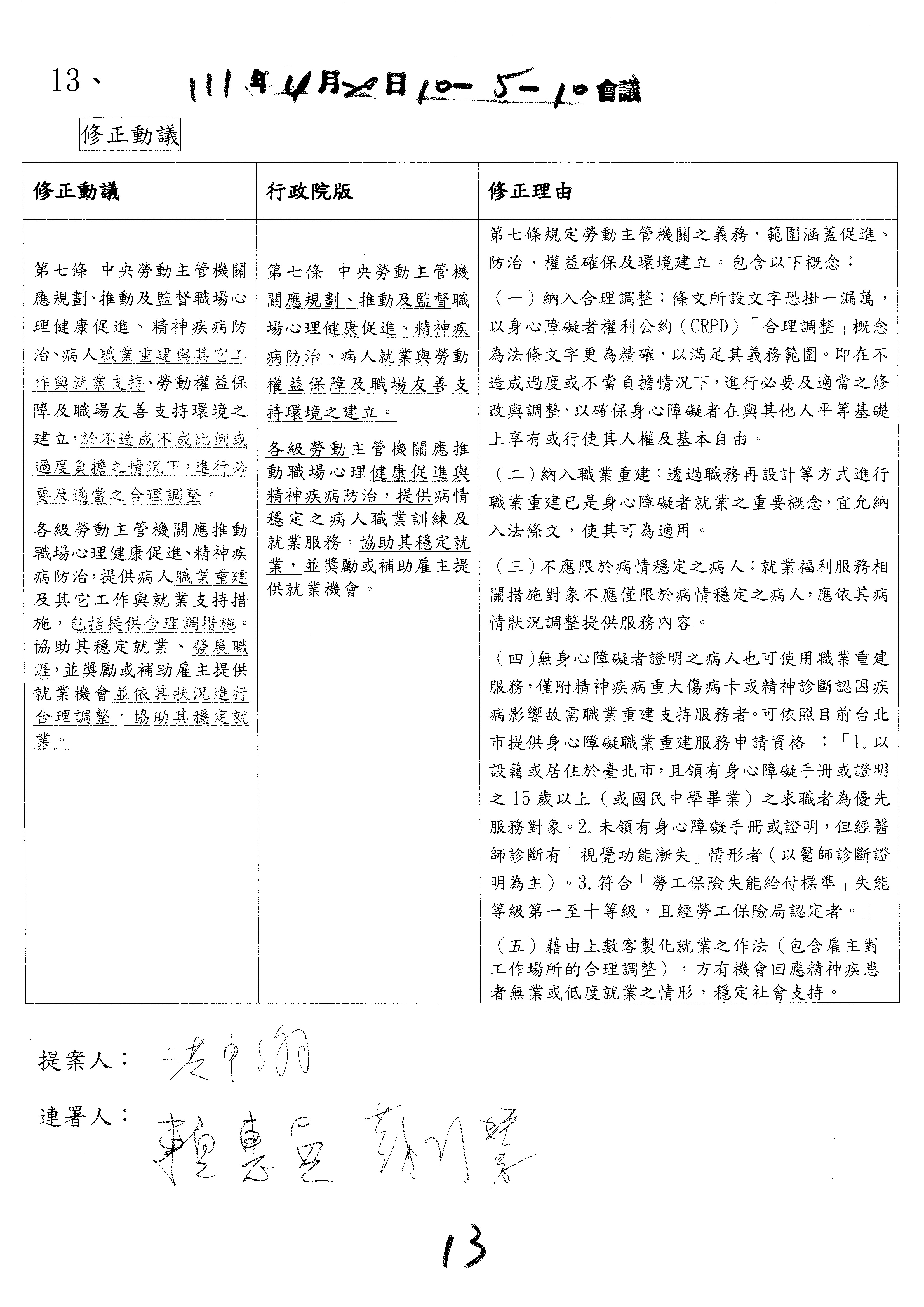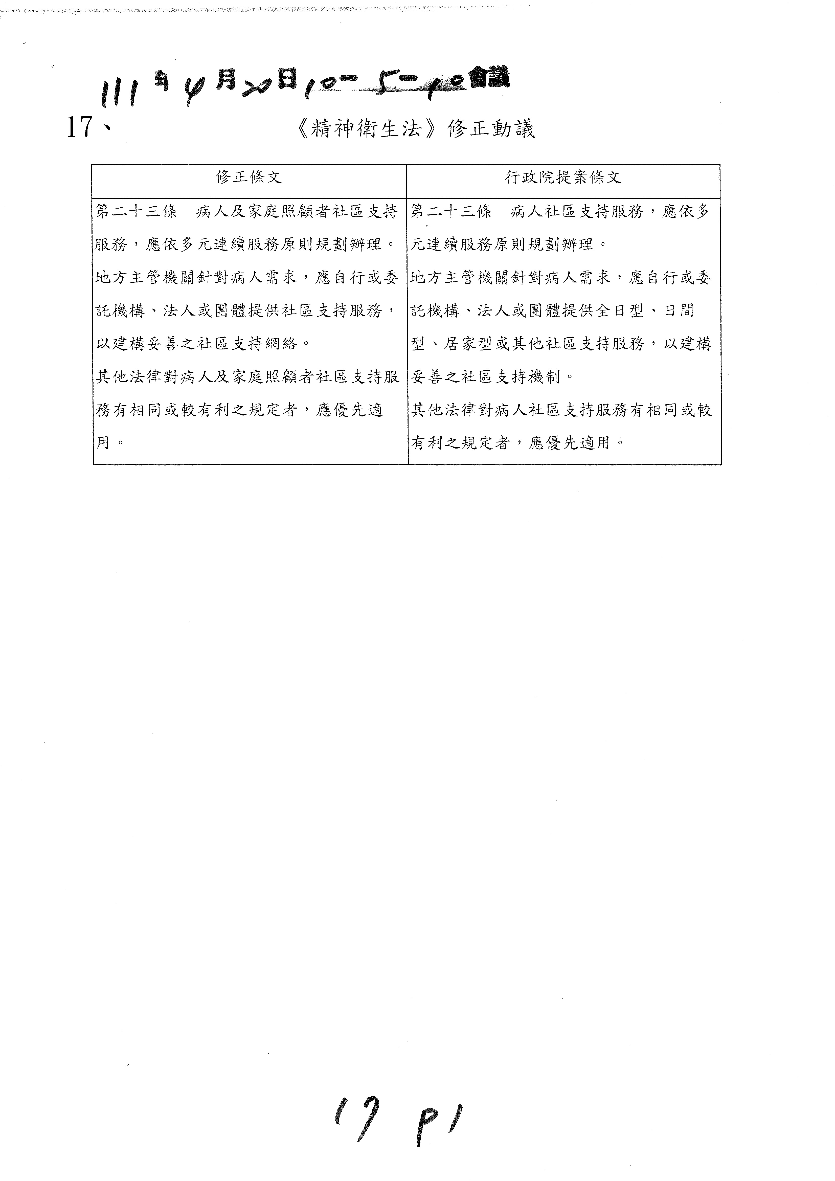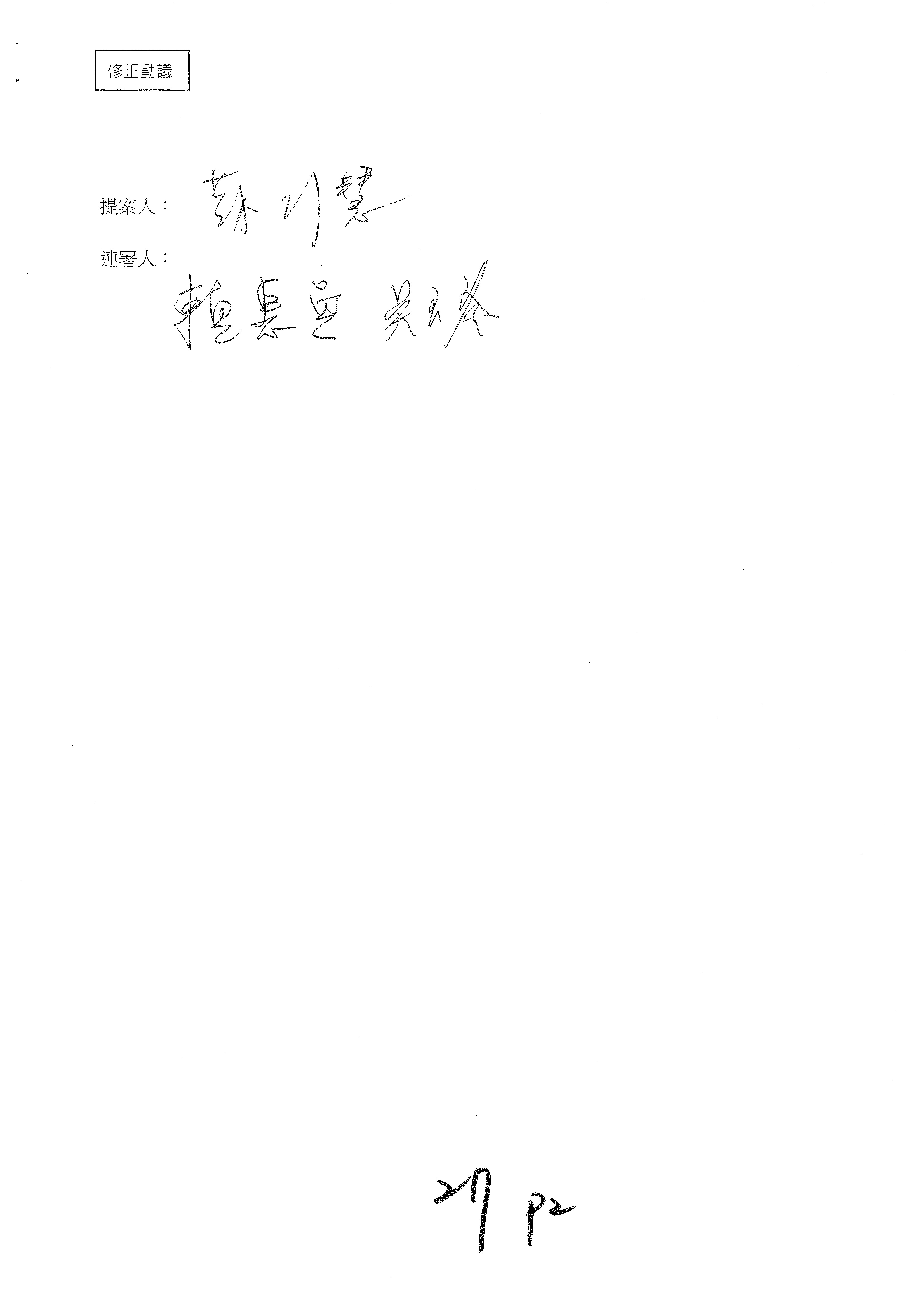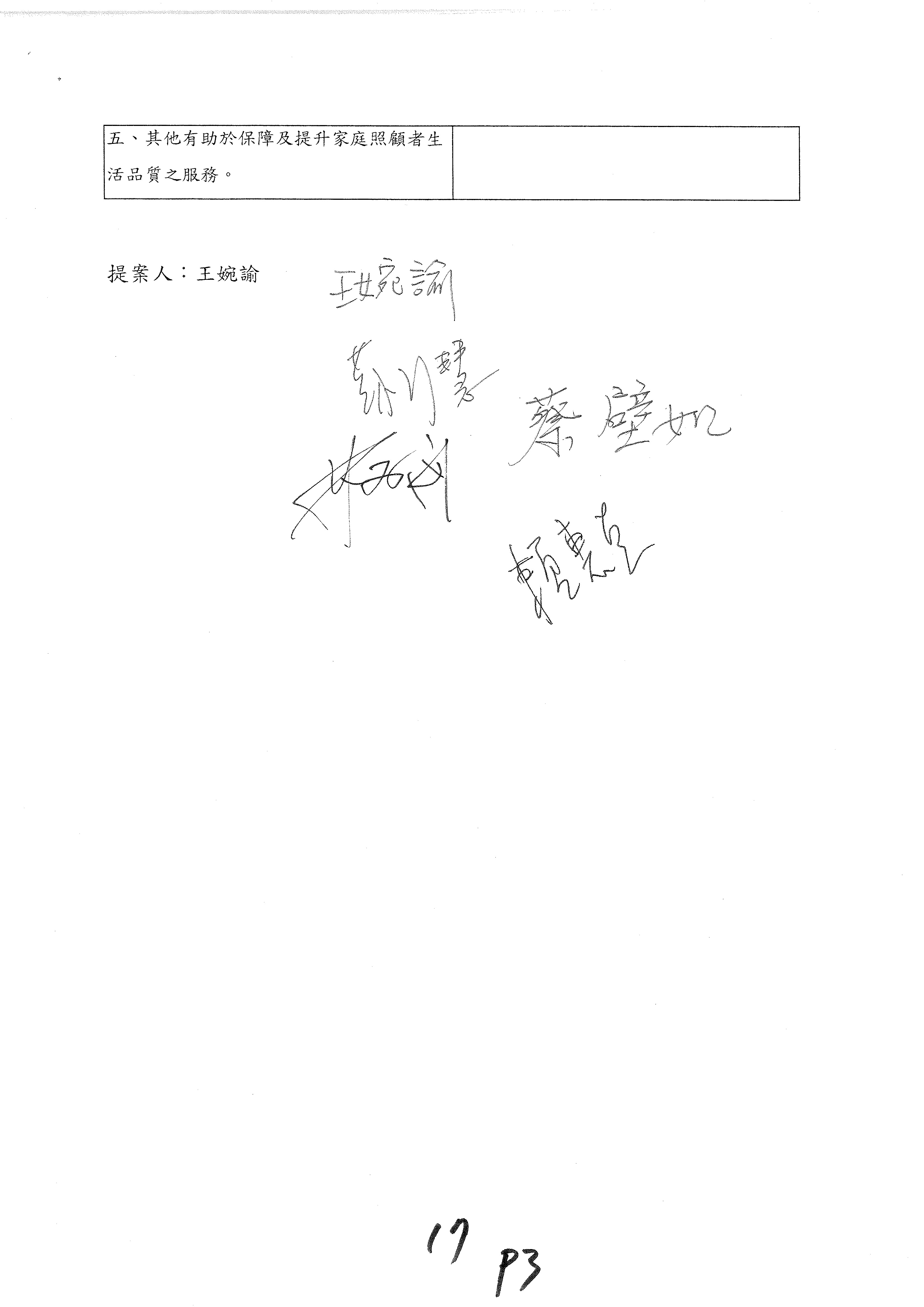 王委員婉諭:第17案的修正動議,17p1、p2。