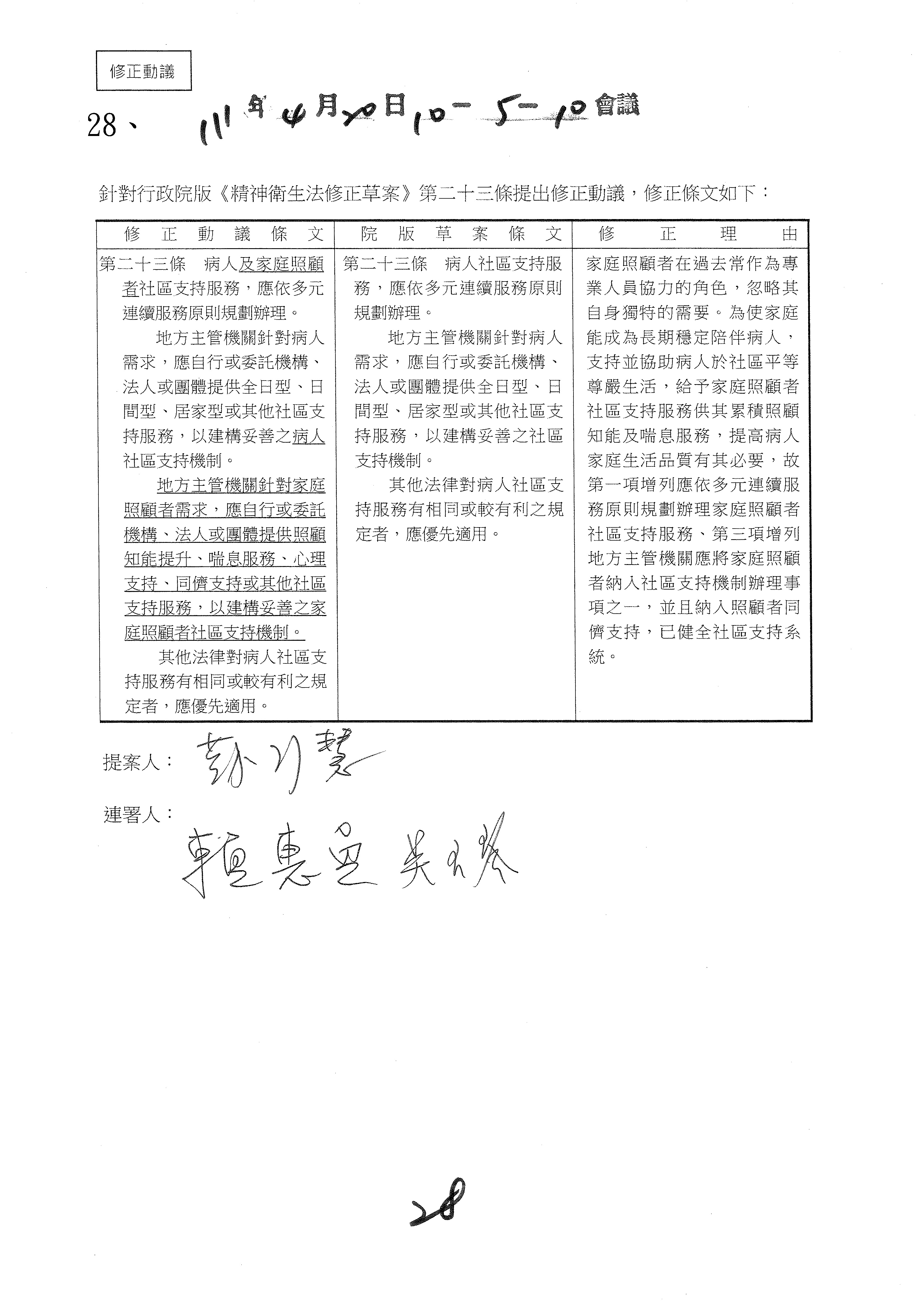 王委員婉諭:我們的版本是第二十八條,不是第十八條之一吧?剛剛宣讀的是第二十八條。