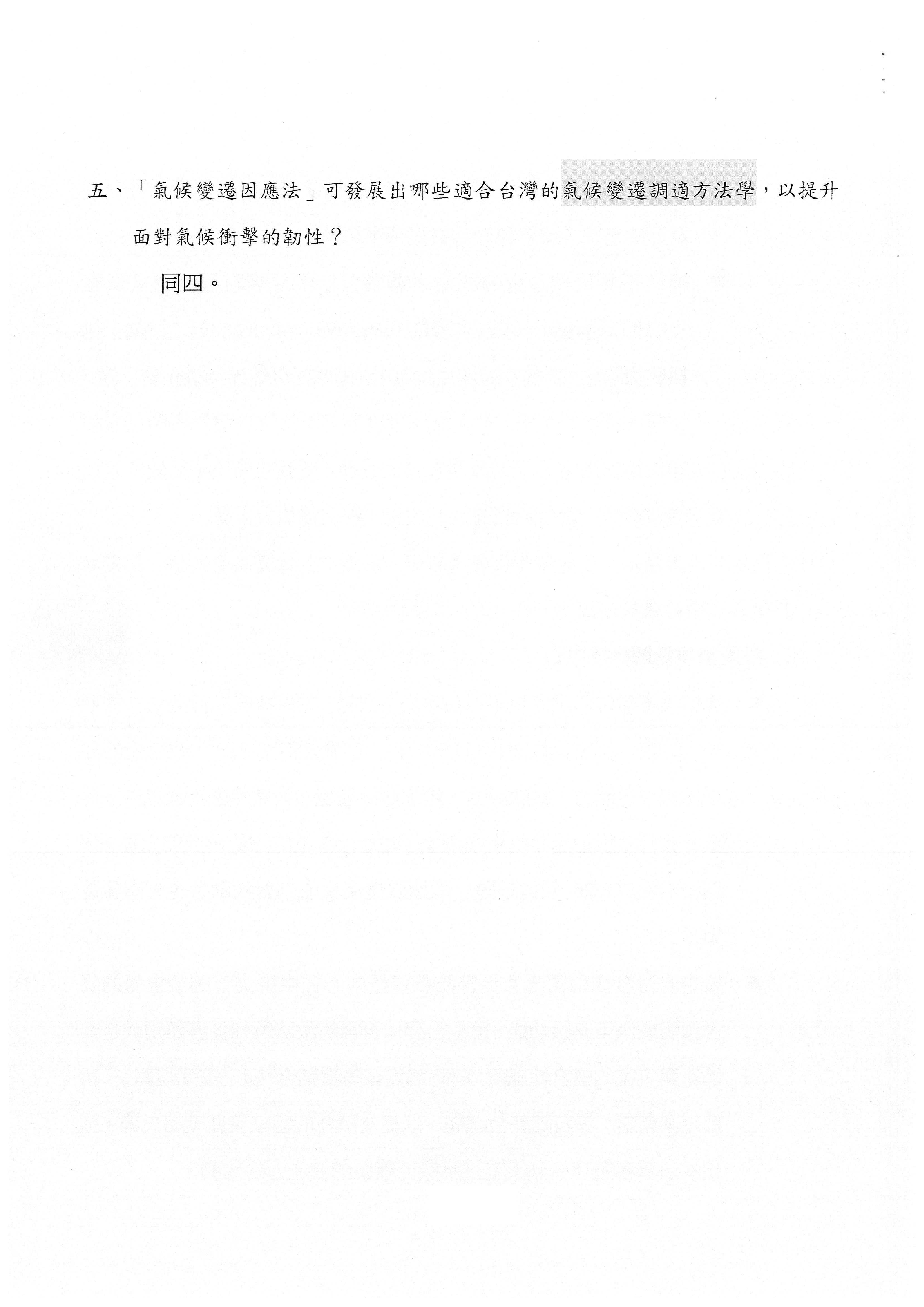 四、「氣候變遷因應法」該如何強化氣候科研,或進一步設置專責單位,奠定以科學為基礎的氣候治理。