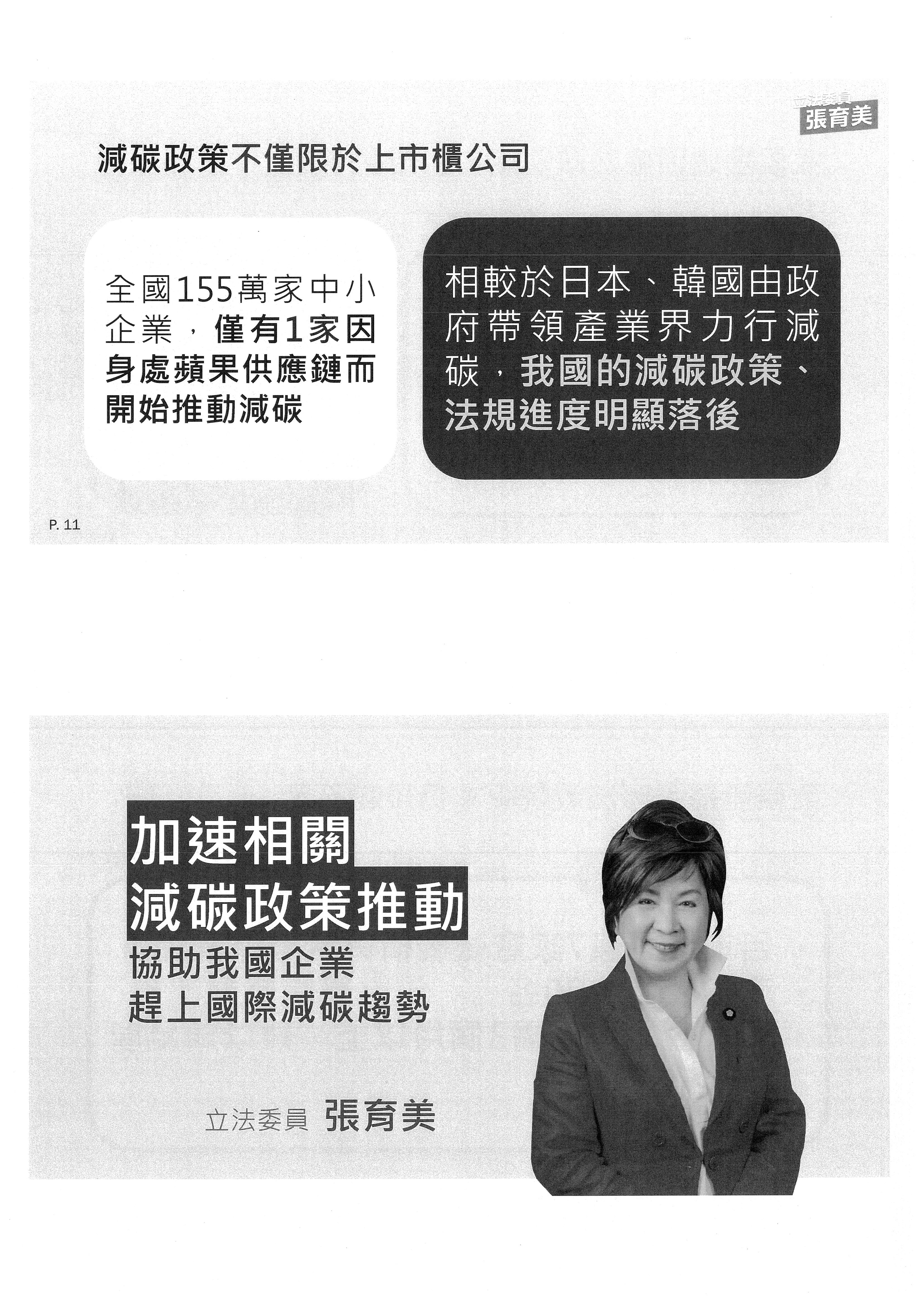 在企業方面,目前在法裡面只談產業要定期提供盤查登錄的資料,但我們同時也要求,不能只提供盤查登錄的資料,還要提出減量計畫書,這樣才能明定出減碳的目標,而且減碳計畫書還要公開,大家後續才能做稽核。