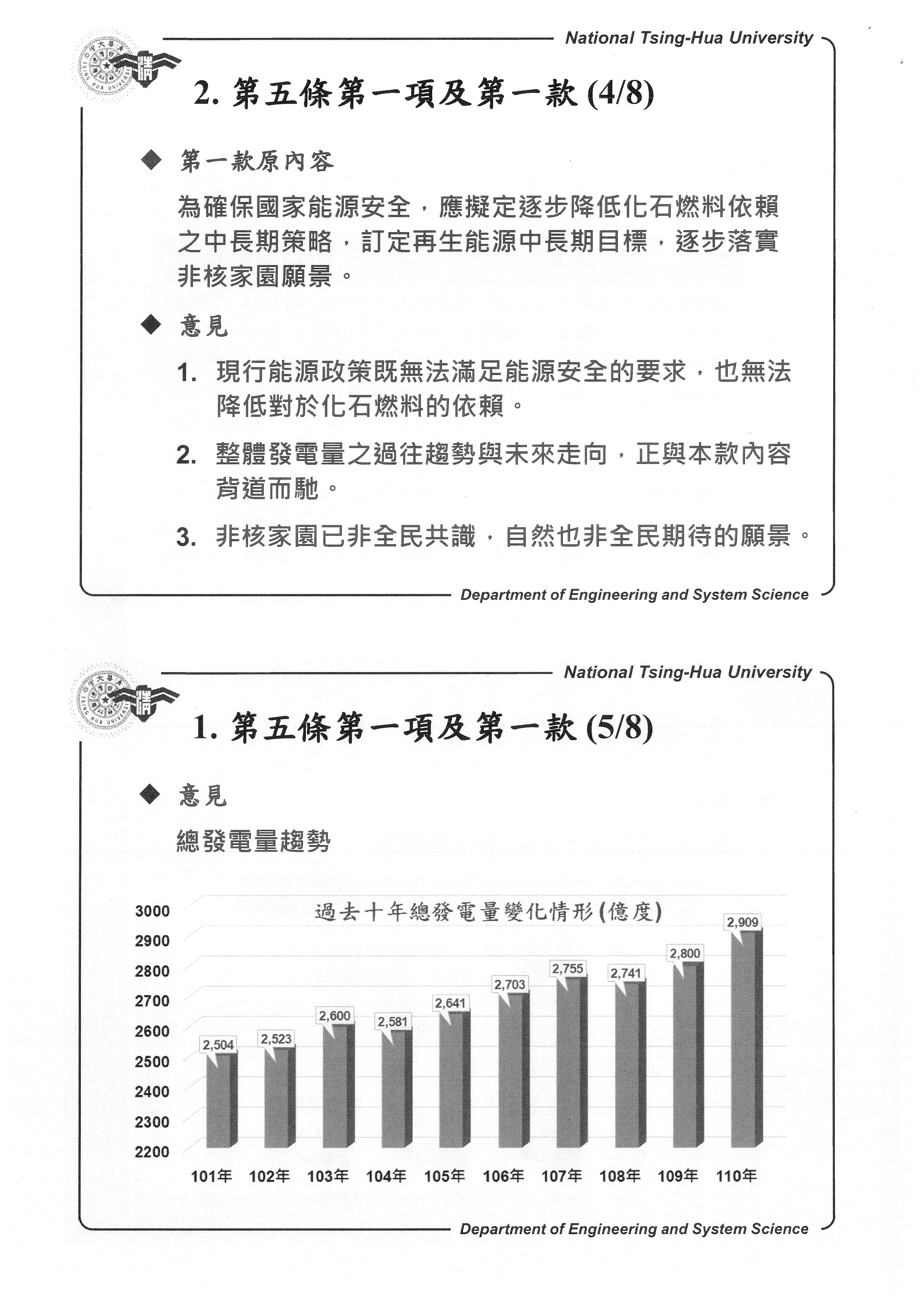林專業總工程師武煌:報告主席,核電方面我們是依照國家的政策執行,現在是非核政策、非核家園。