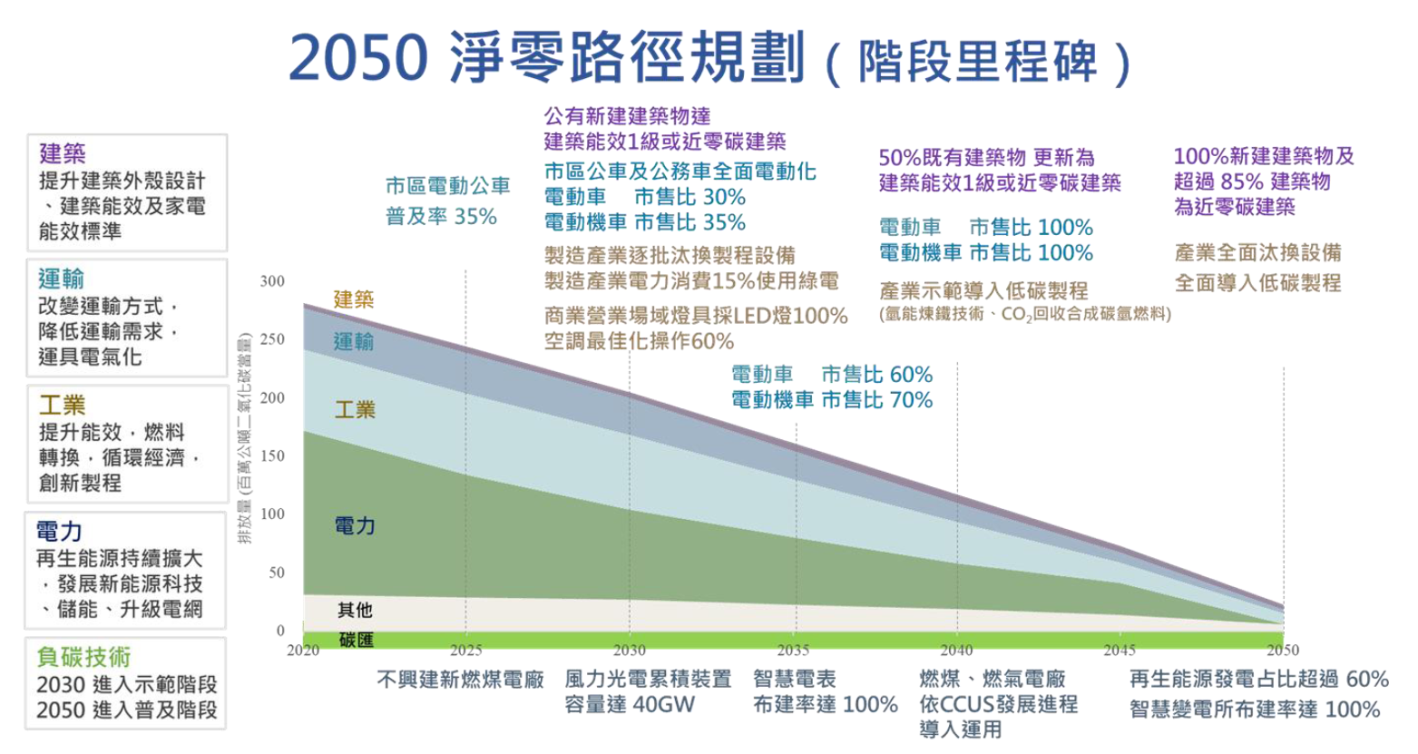圖1.臺灣淨零轉型路徑規劃之階段里程碑