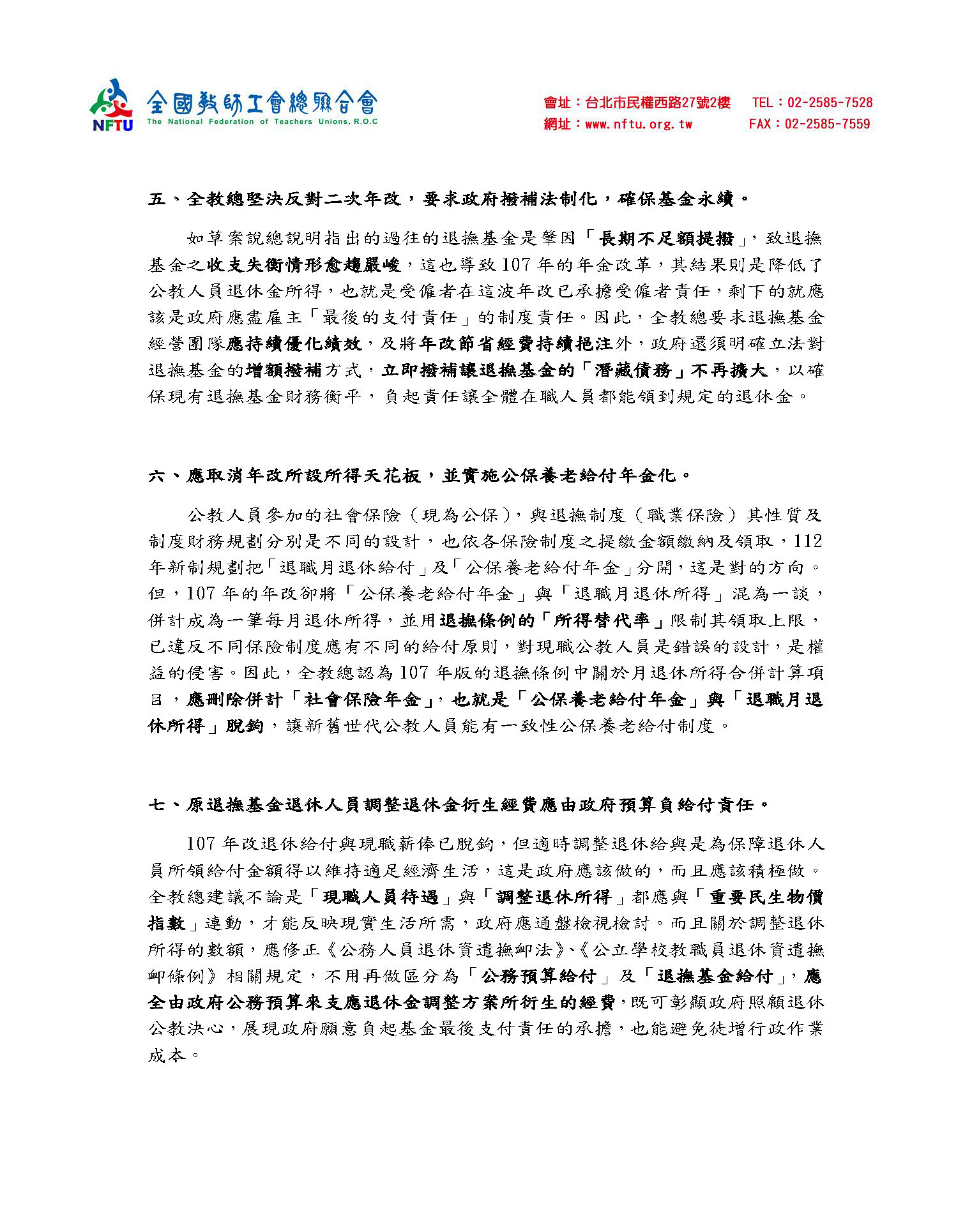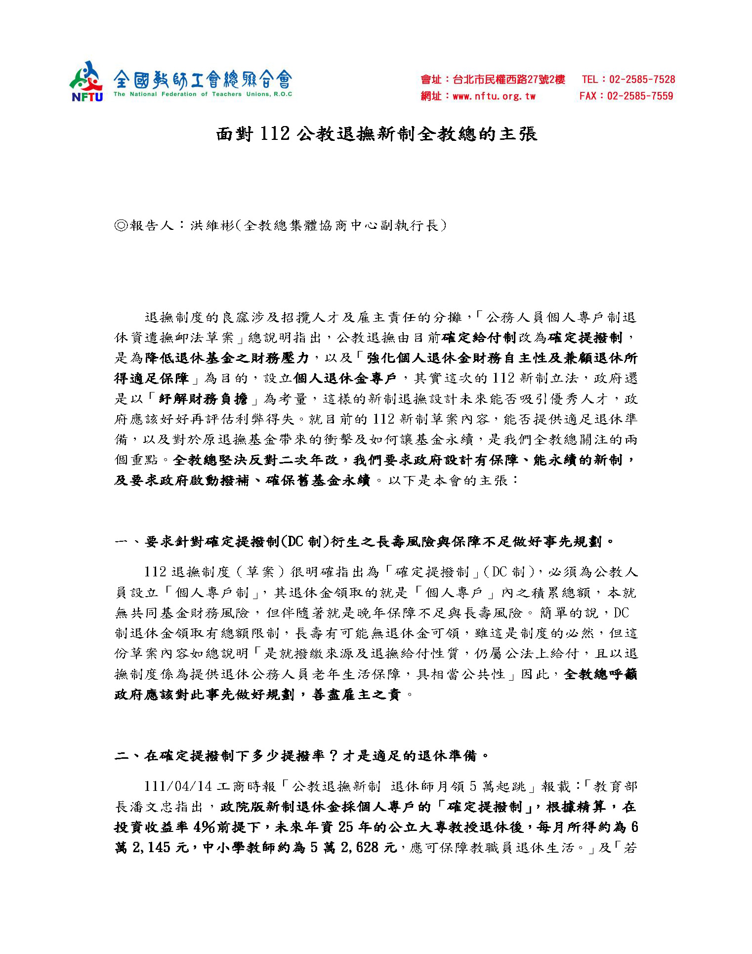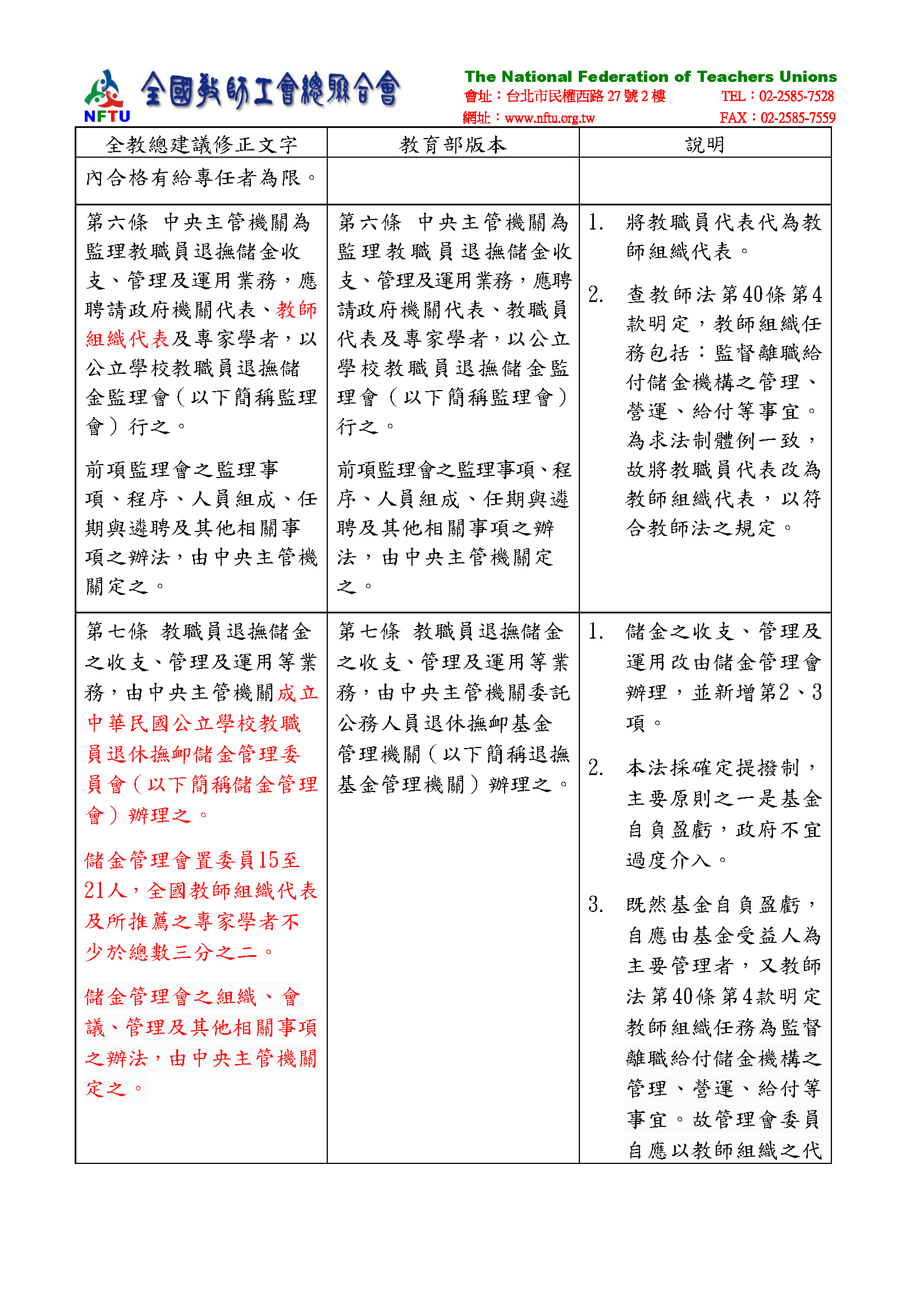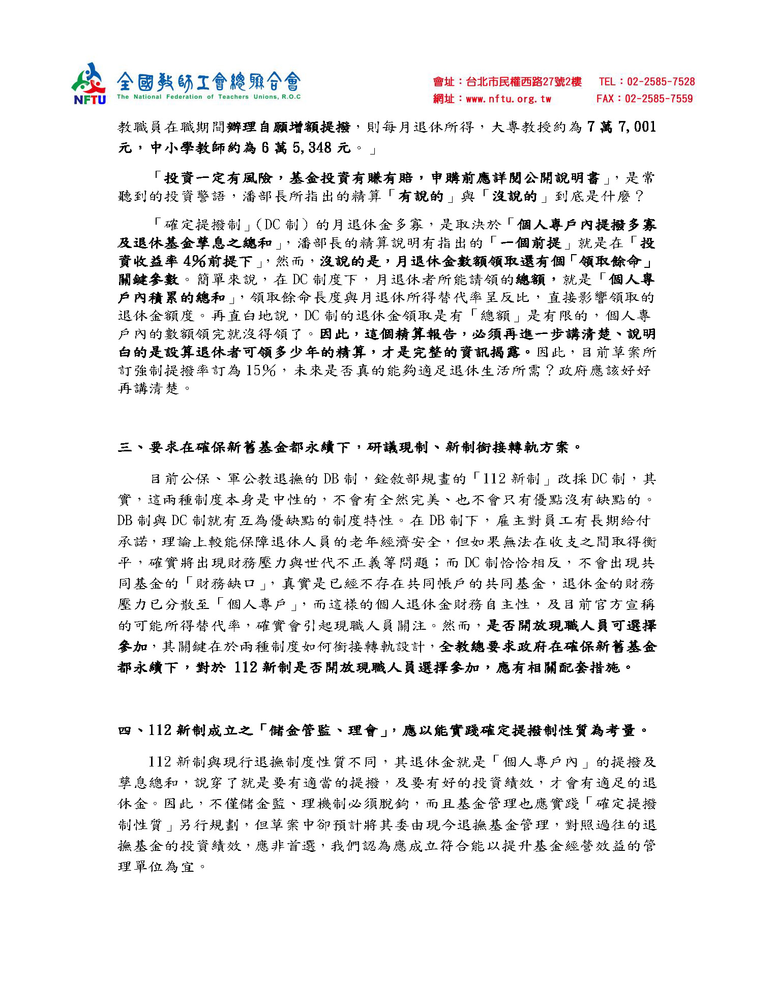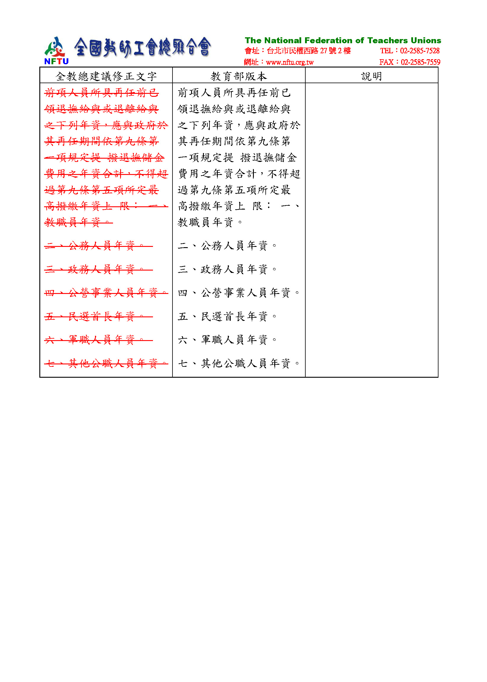 全國教師工會總聯合會書面資料: