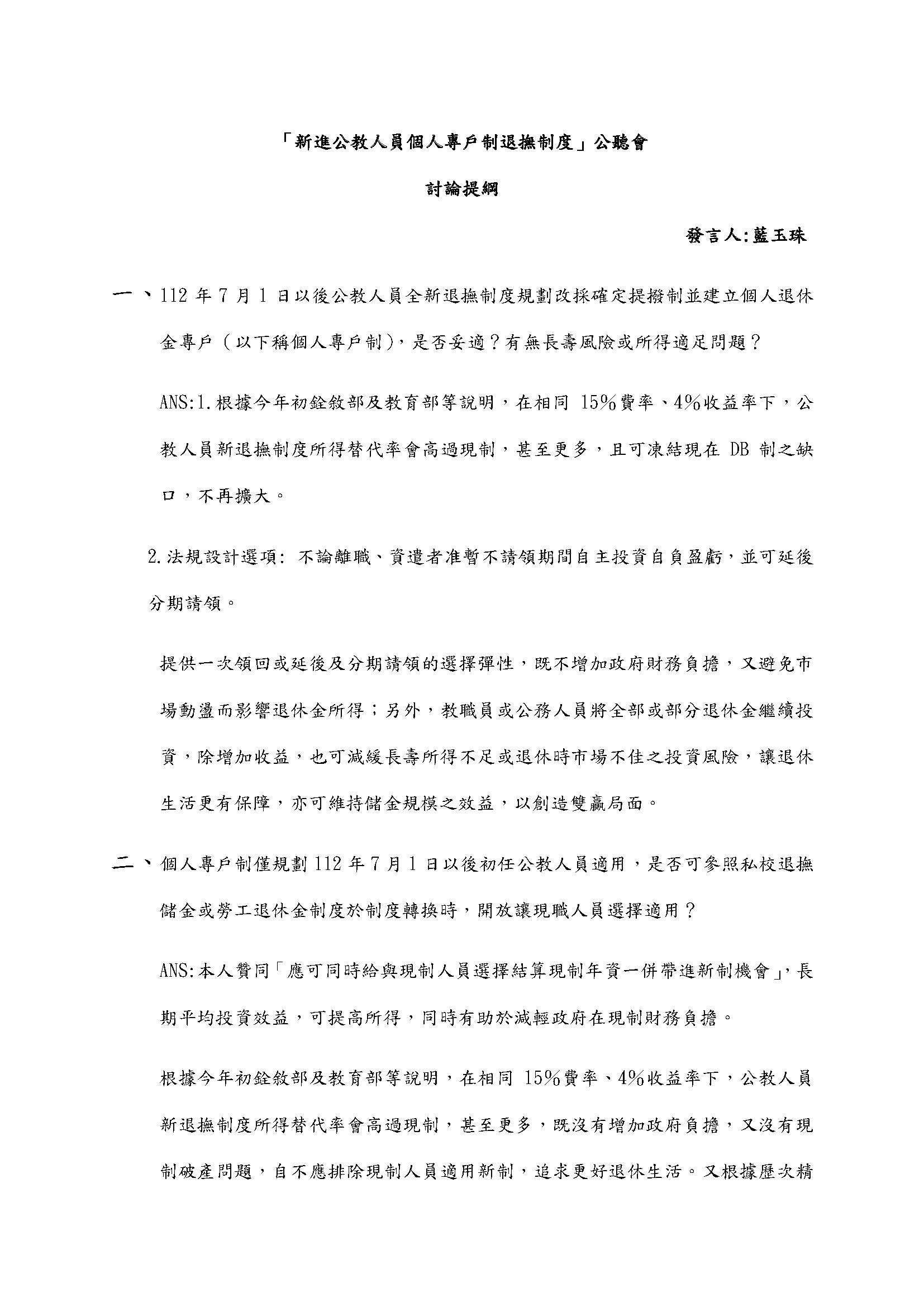 藍玉珠副教授書面資料: