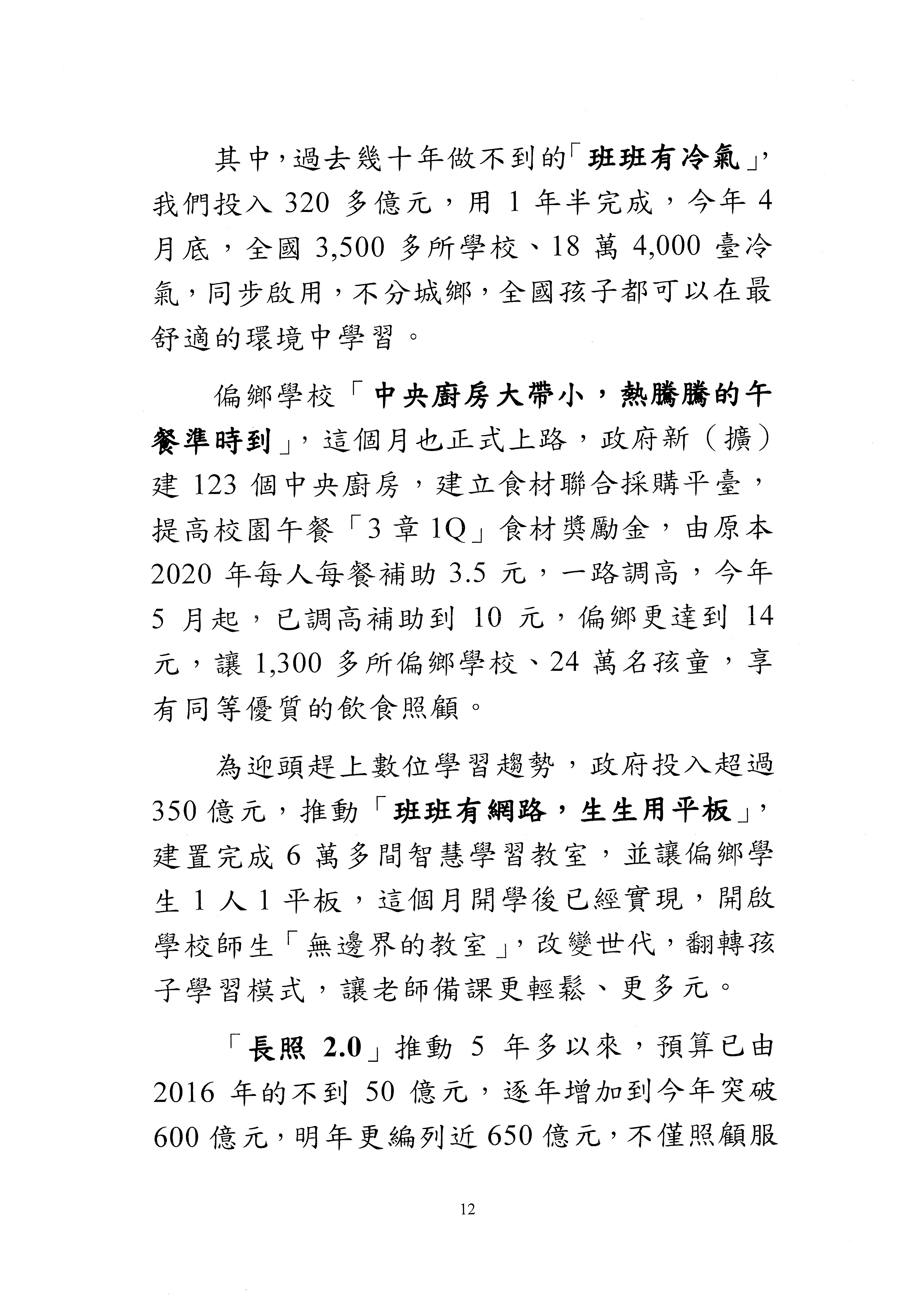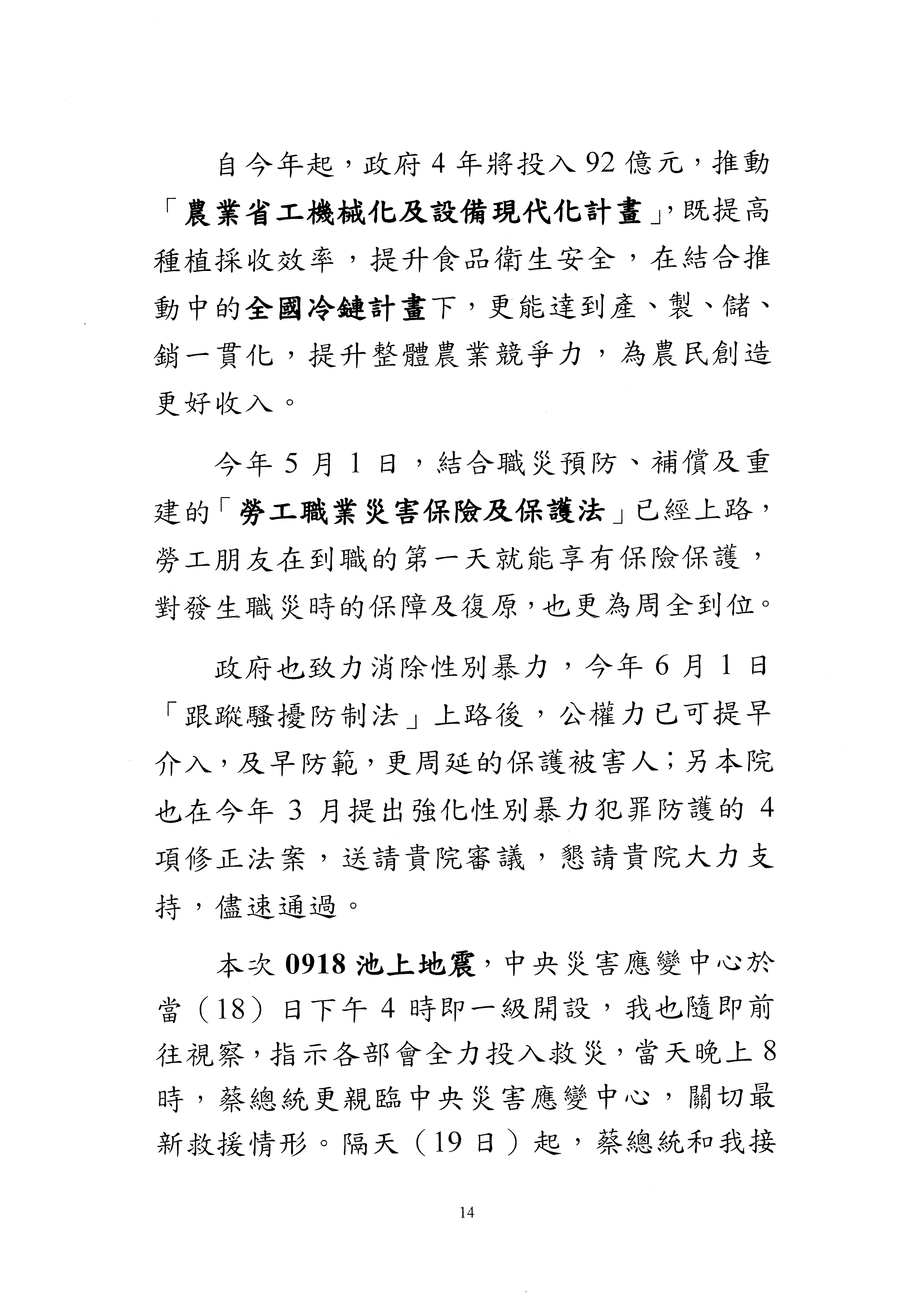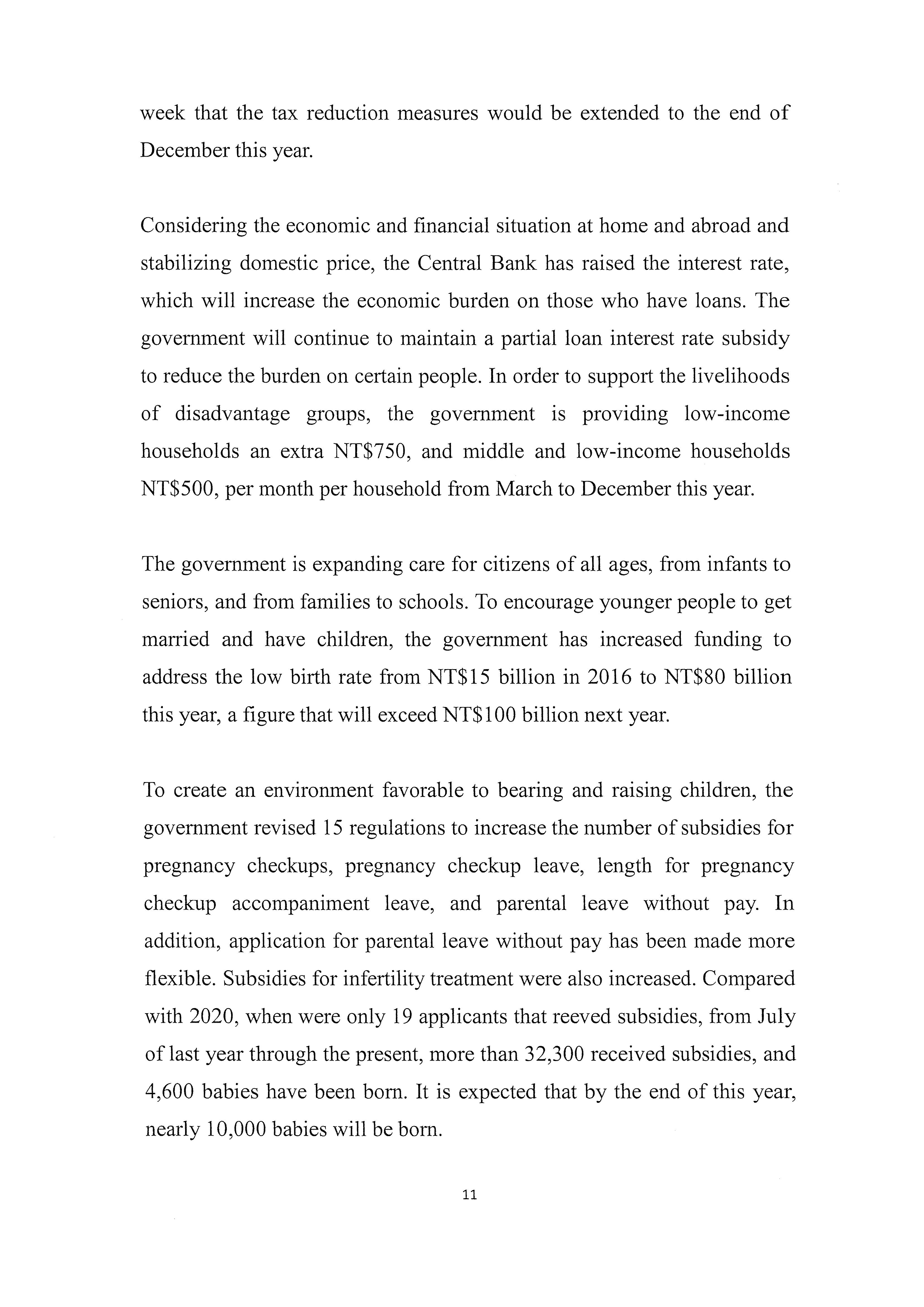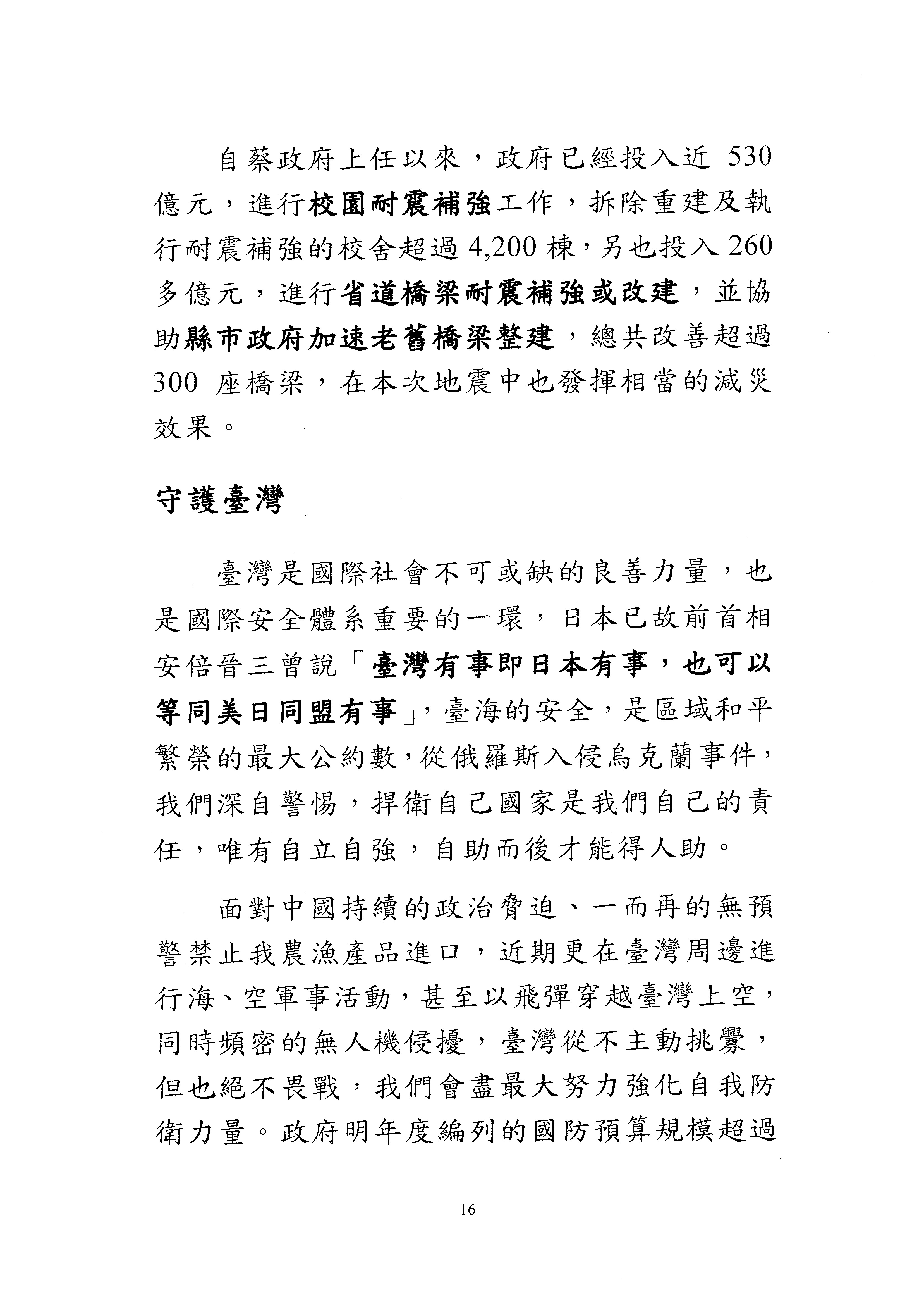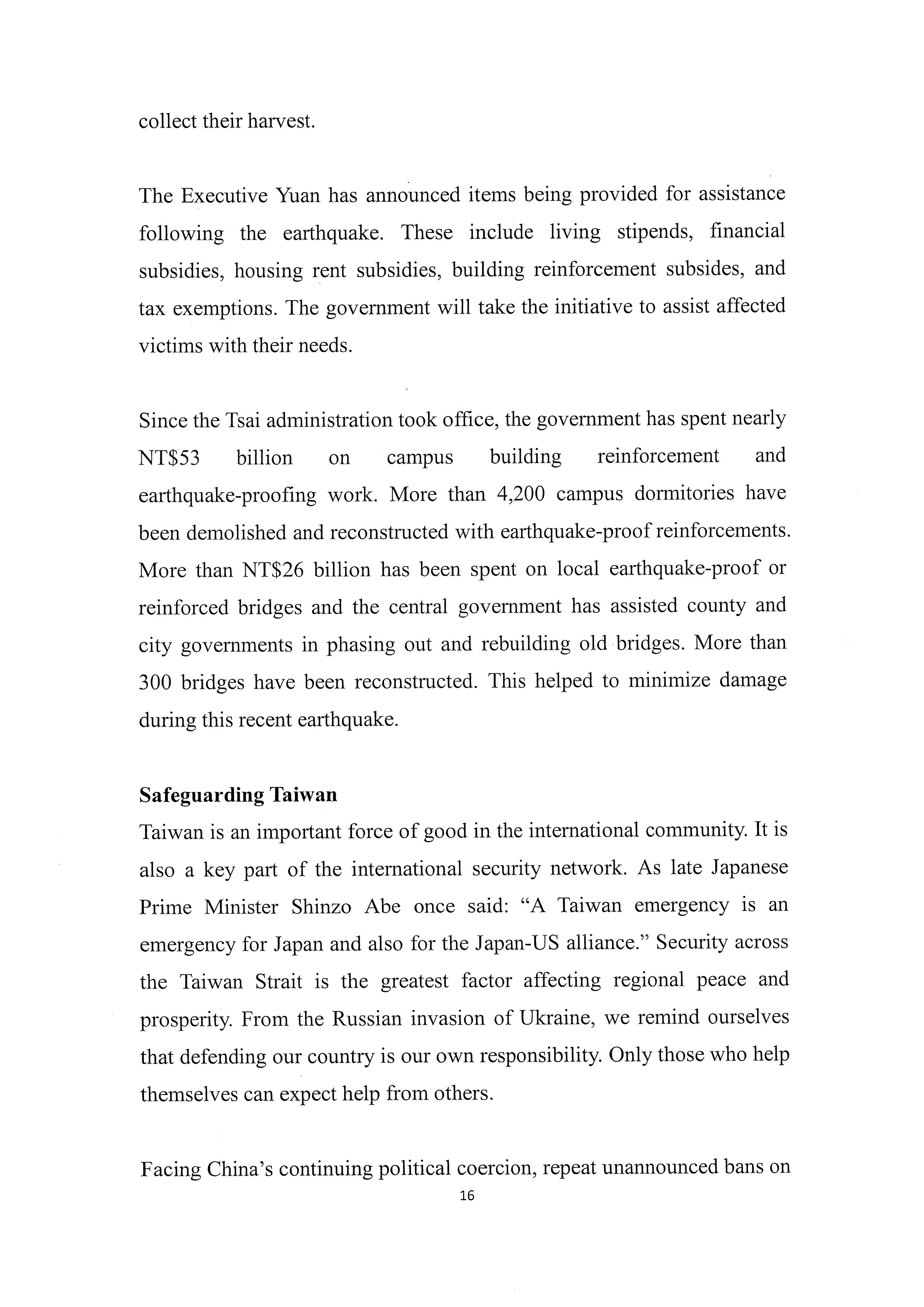 補刊:立法院公報第111卷第86期第10屆第6會期行政院院長口頭施政報告英譯對照版