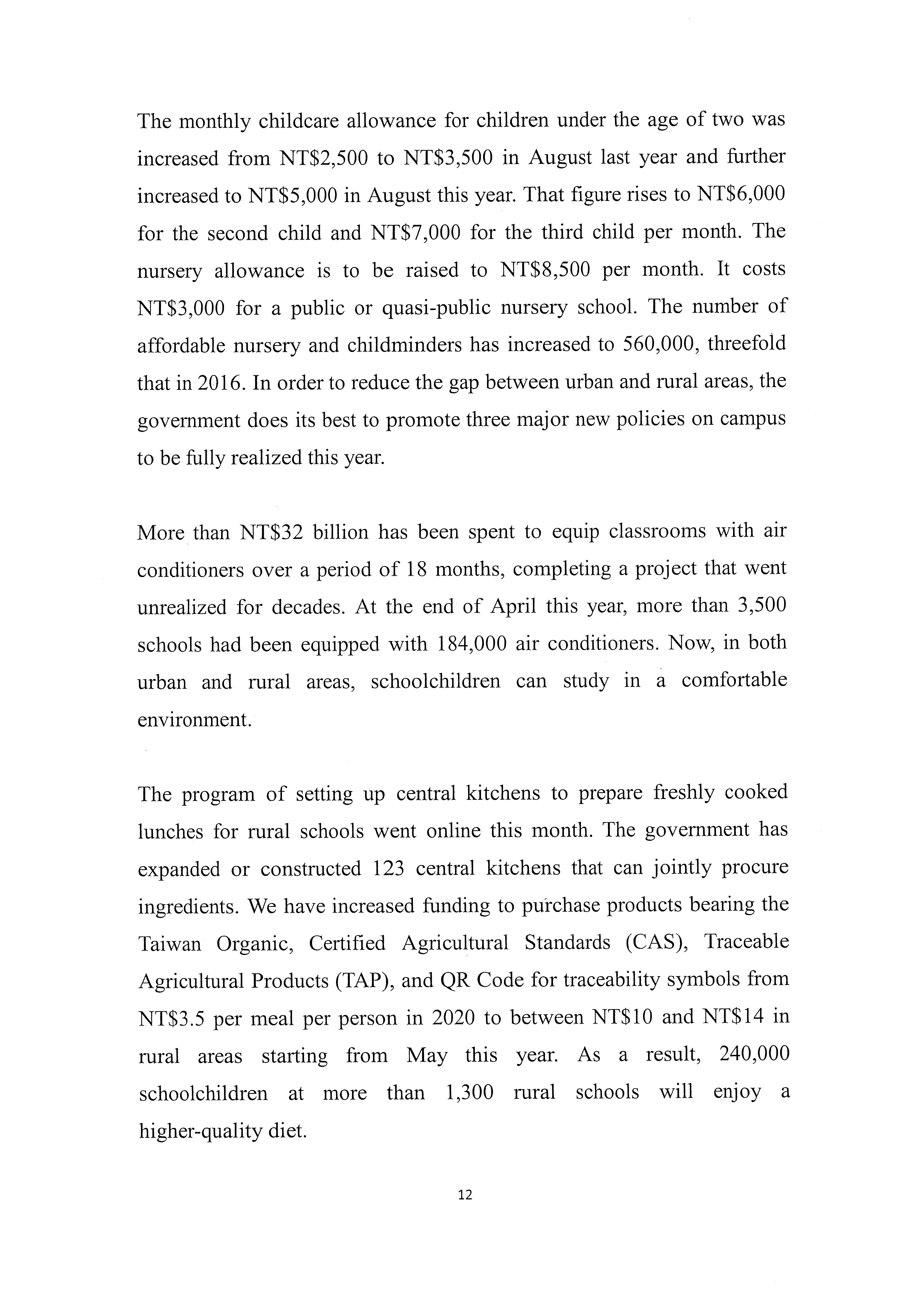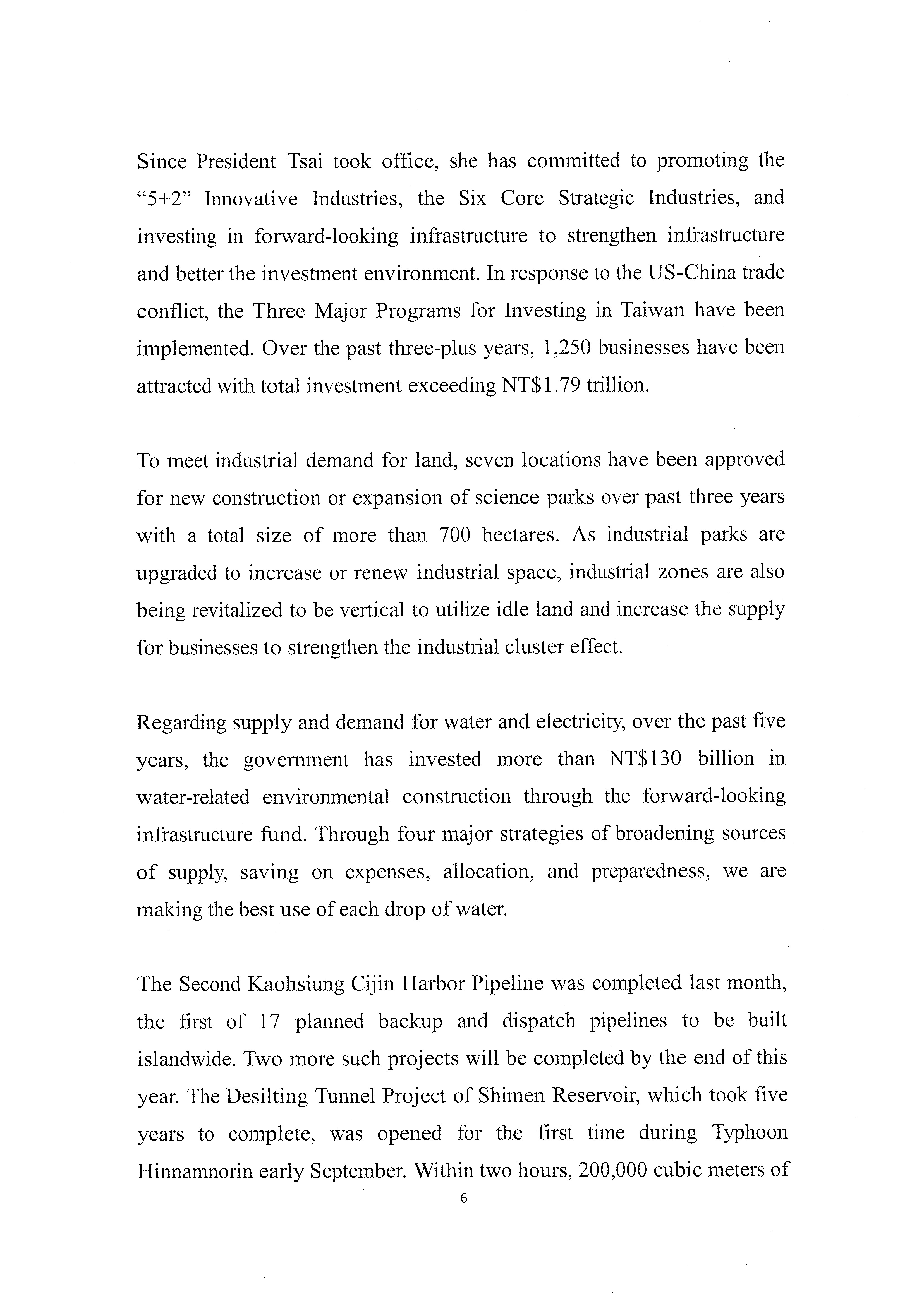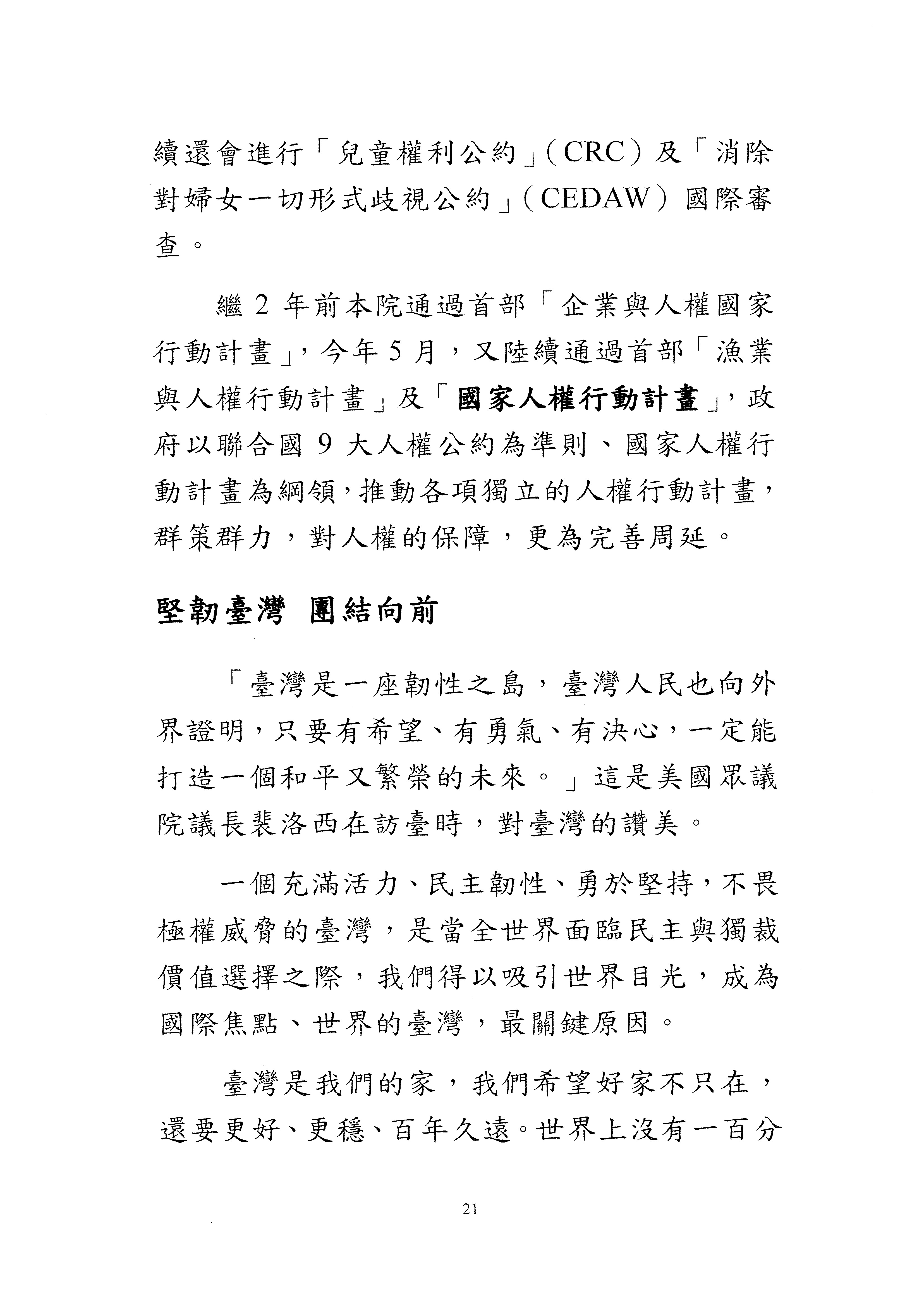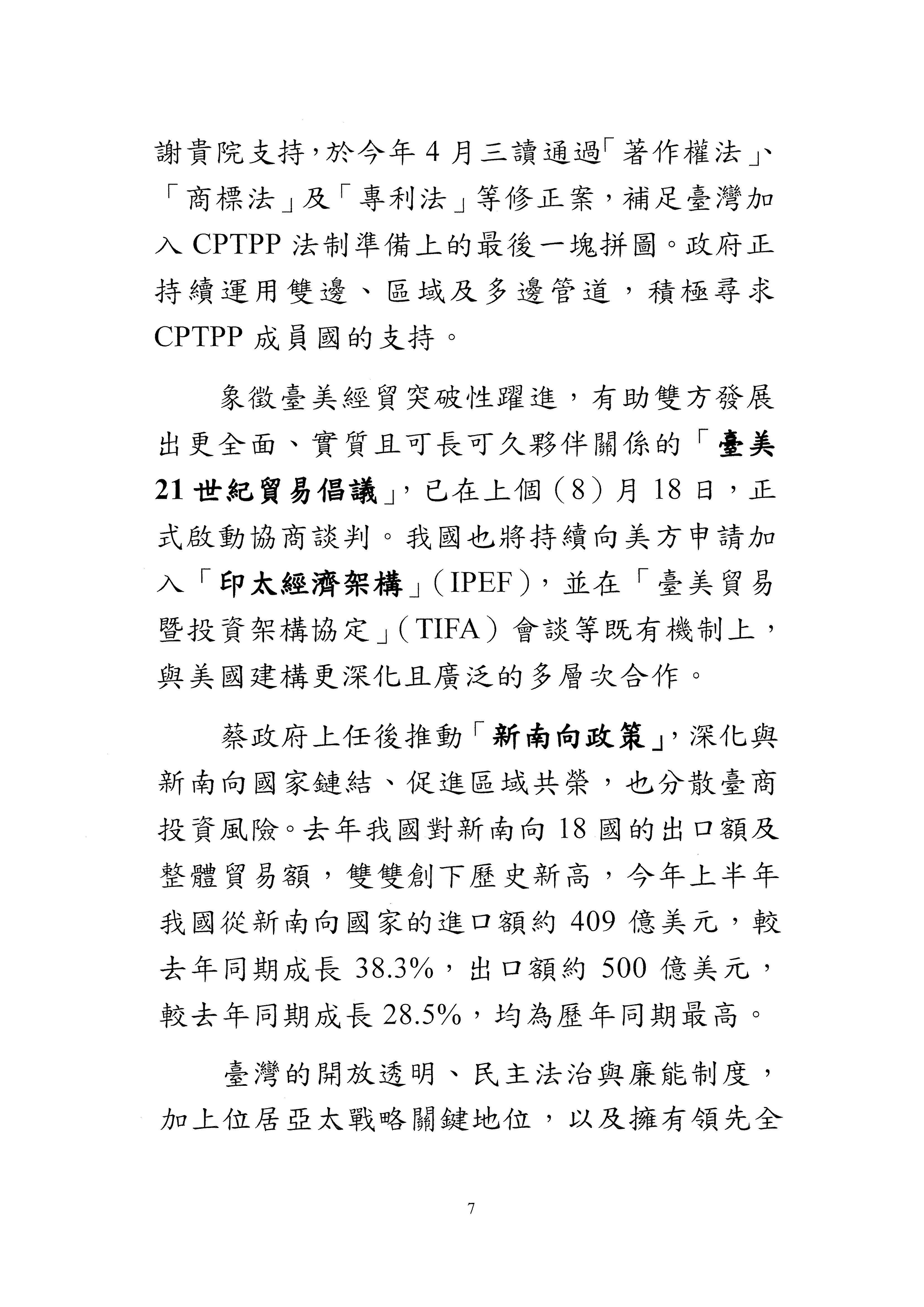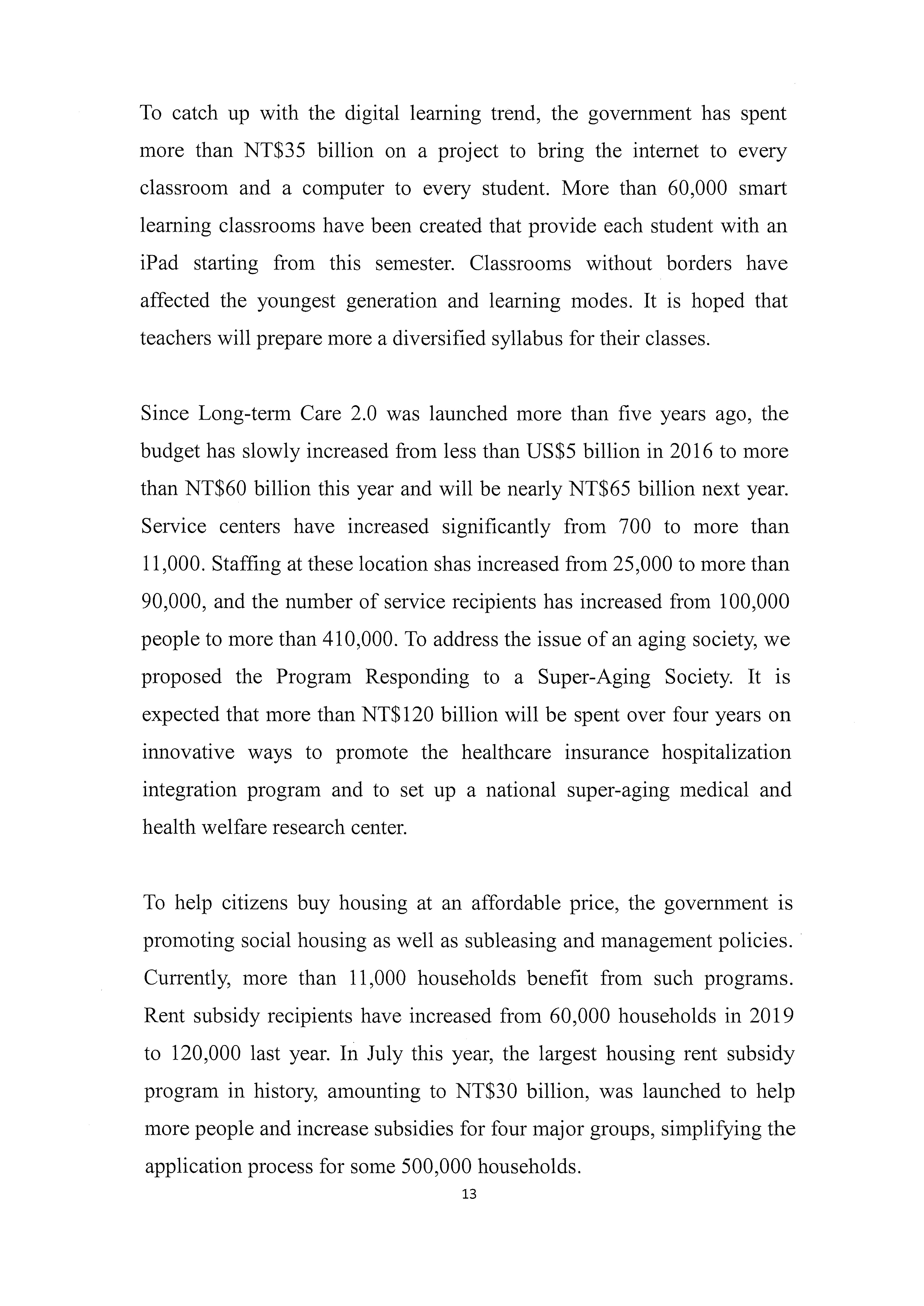 補刊:立法院公報第111卷第86期第10屆第6會期行政院院長口頭施政報告英譯對照版