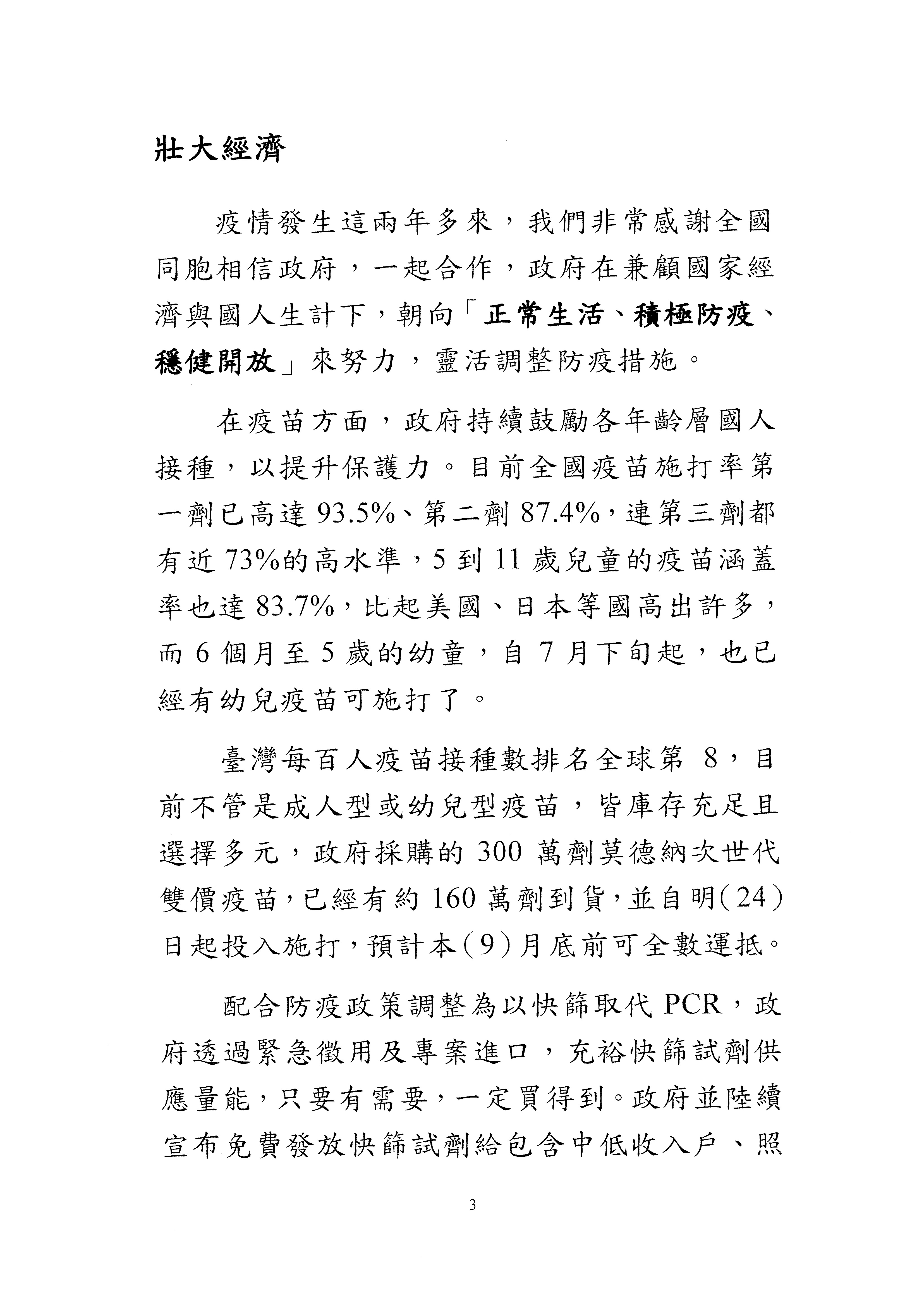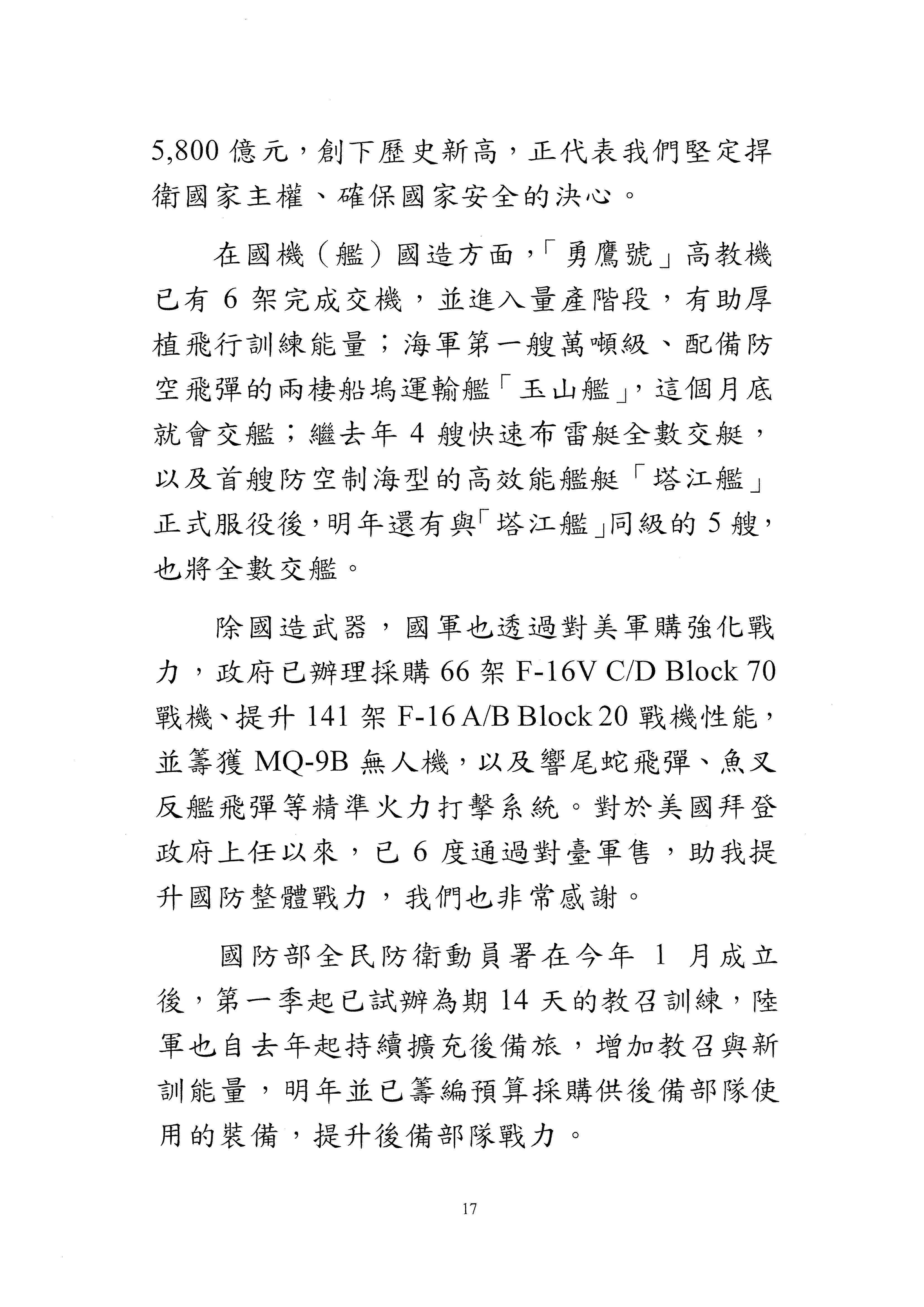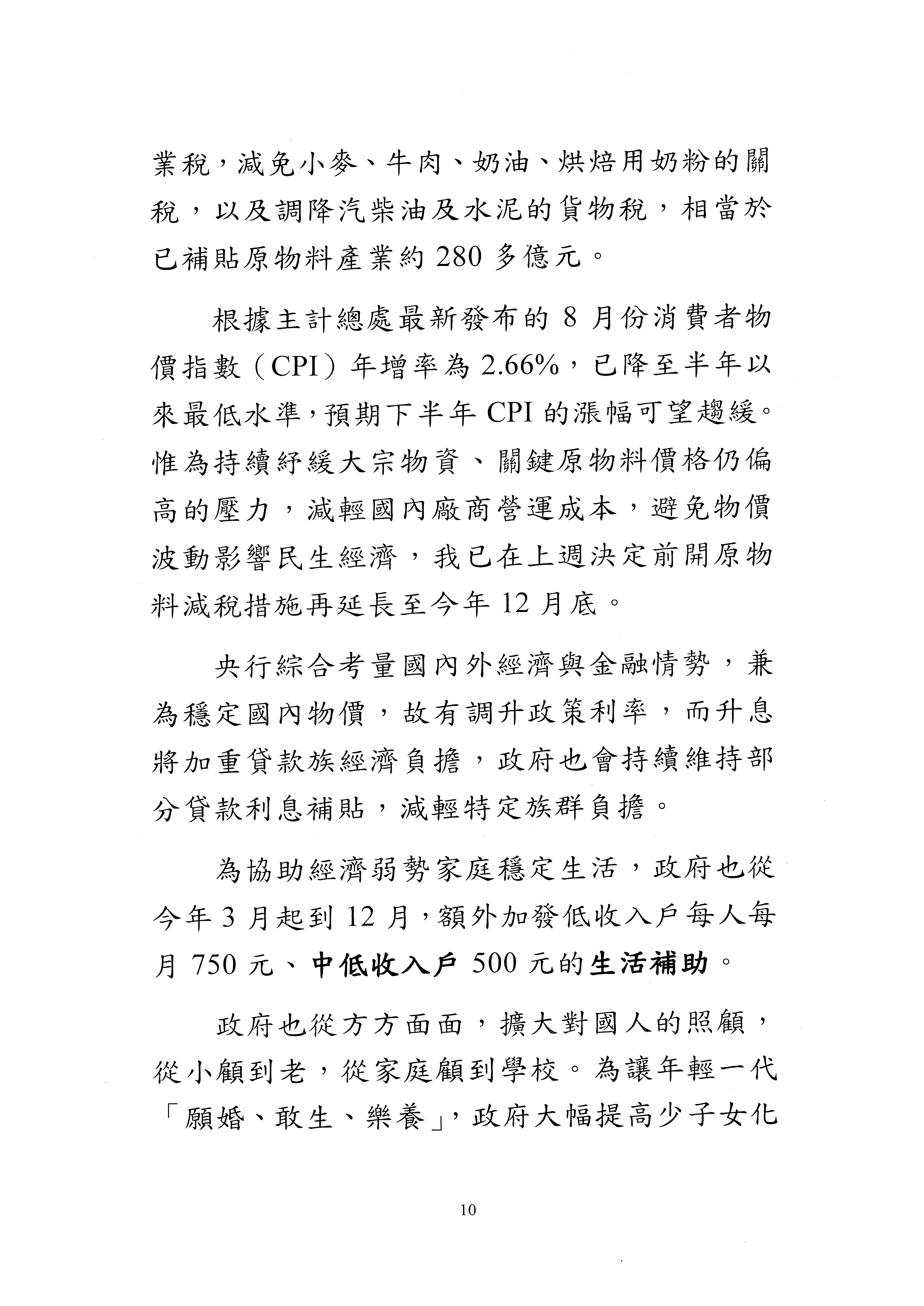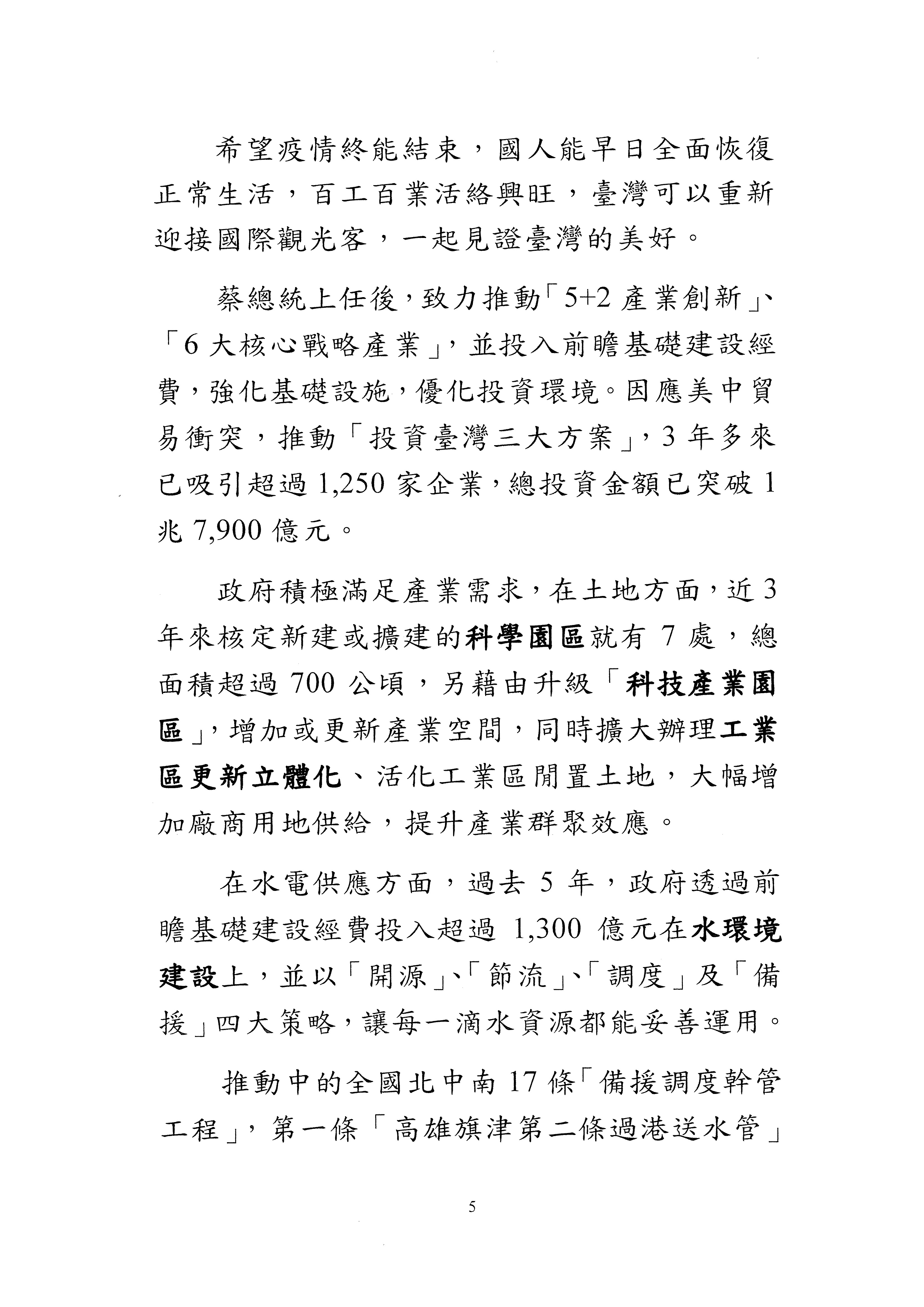 補刊:立法院公報第111卷第86期第10屆第6會期行政院院長口頭施政報告英譯對照版