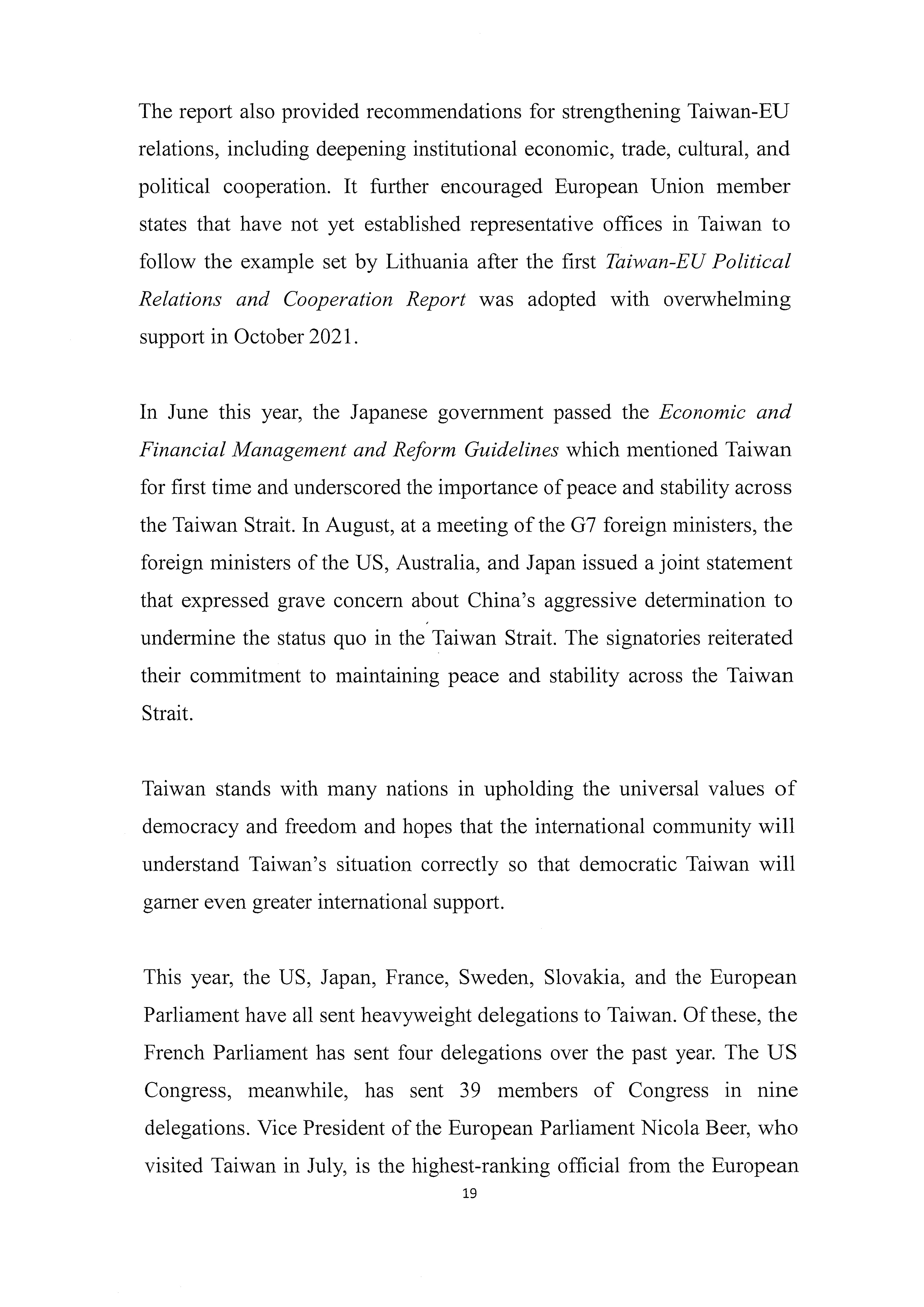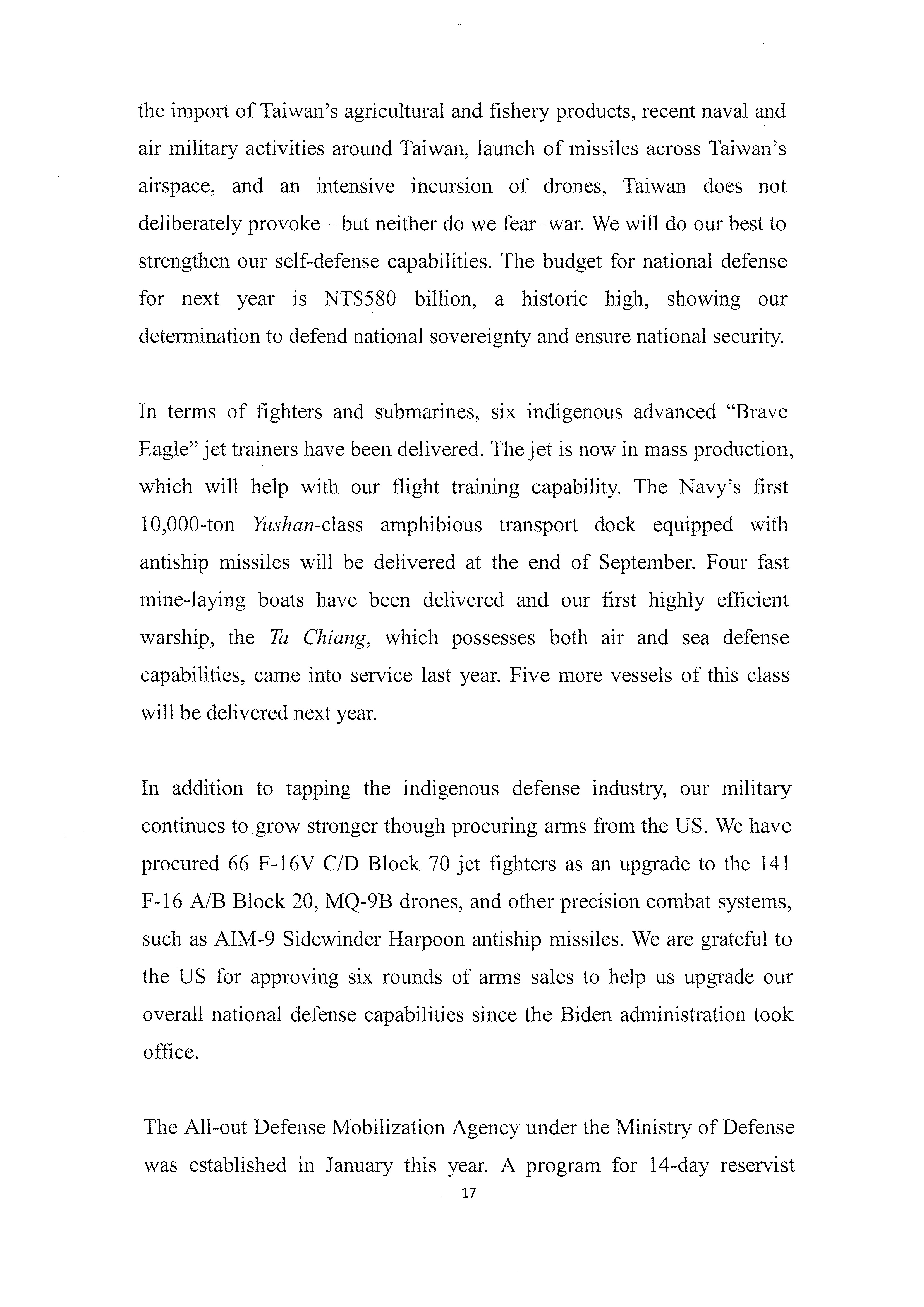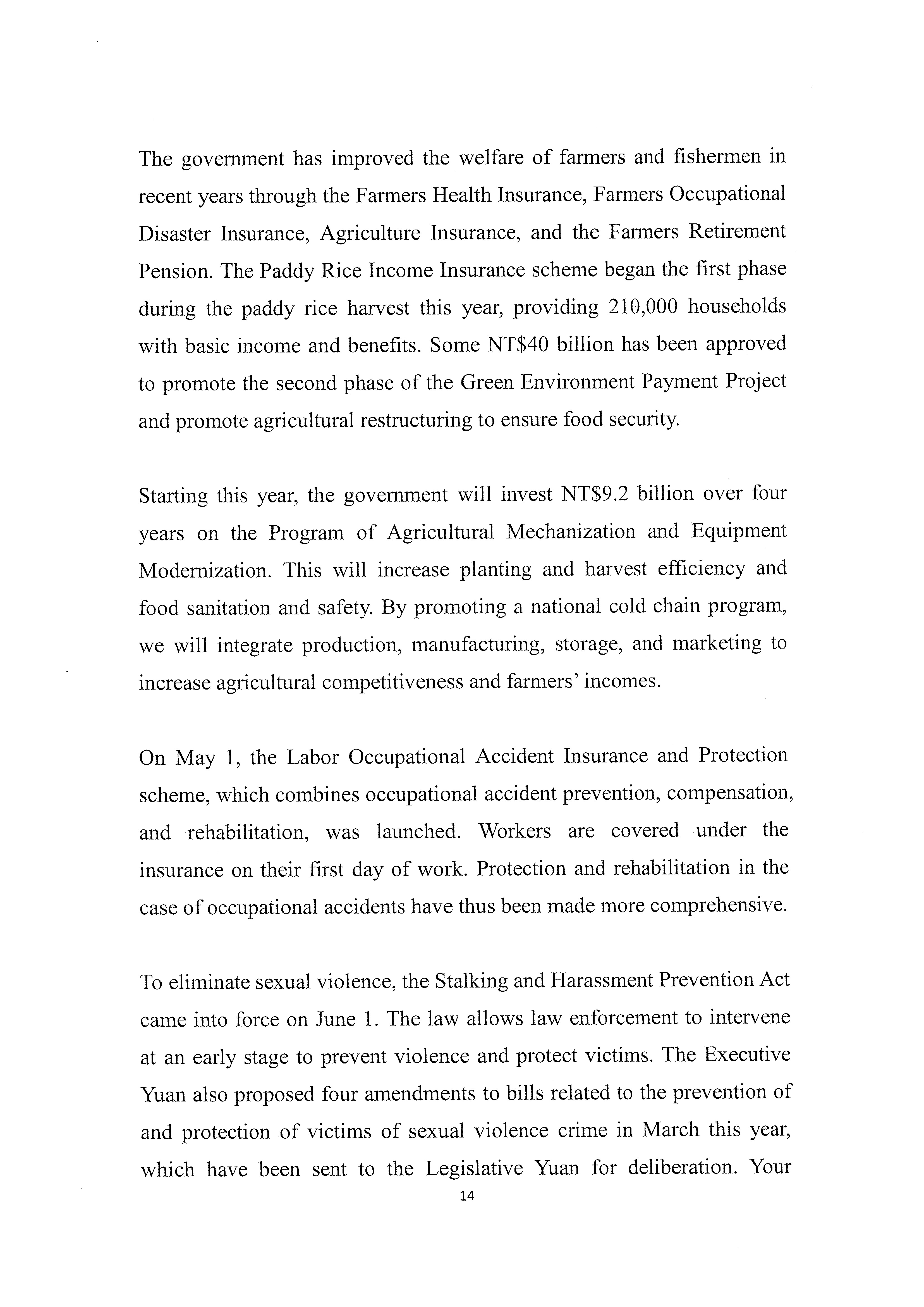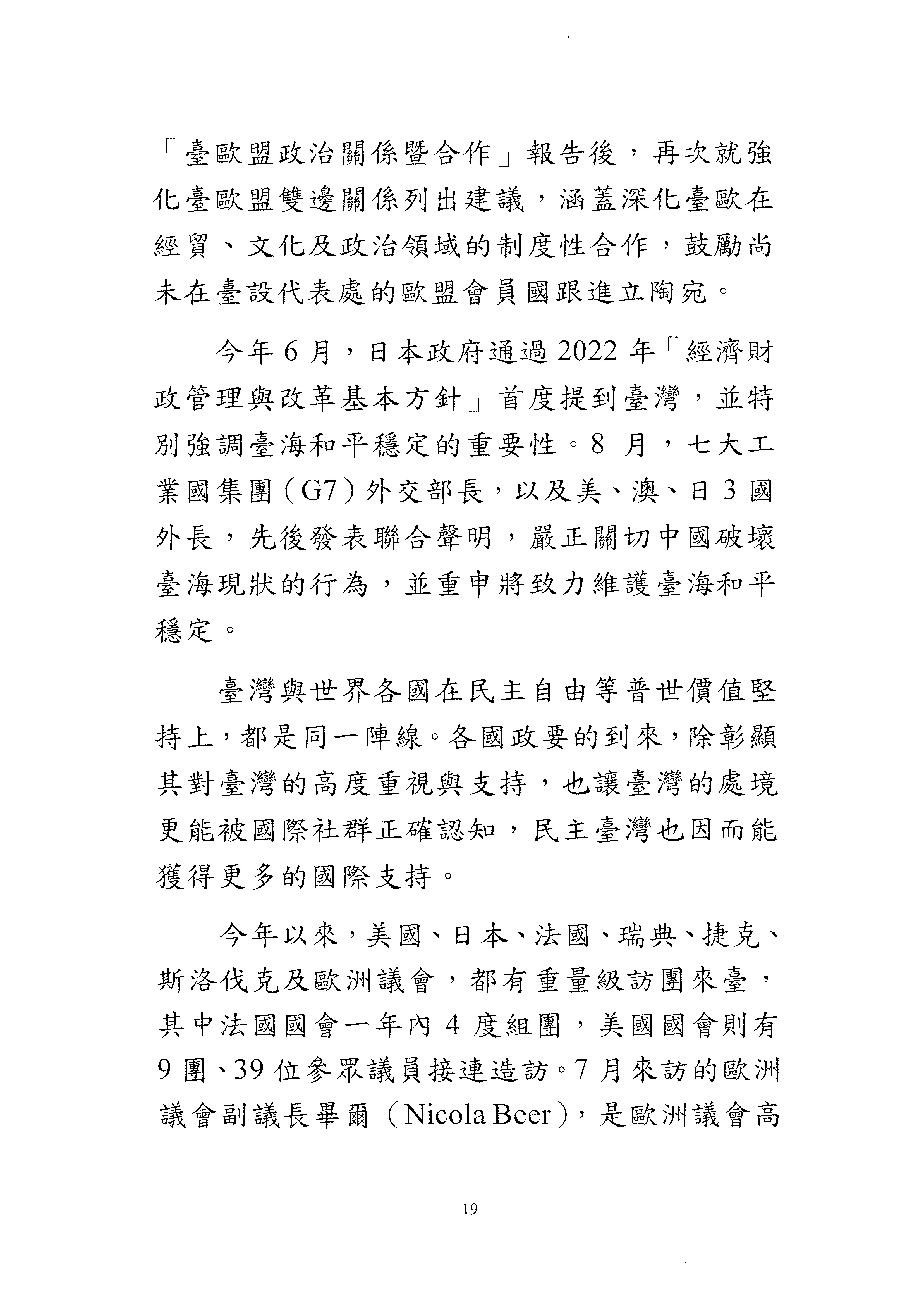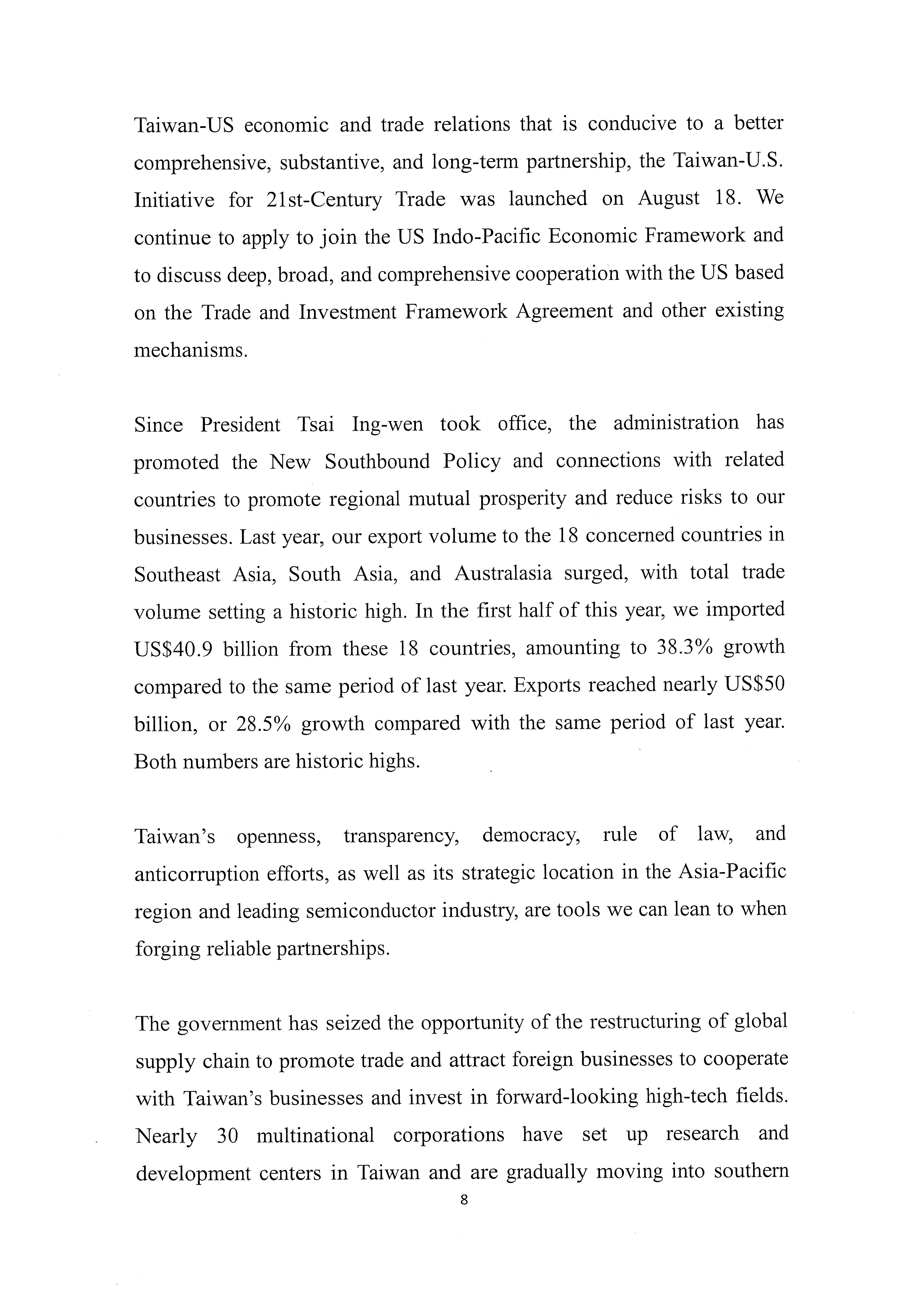 補刊:立法院公報第111卷第86期第10屆第6會期行政院院長口頭施政報告英譯對照版