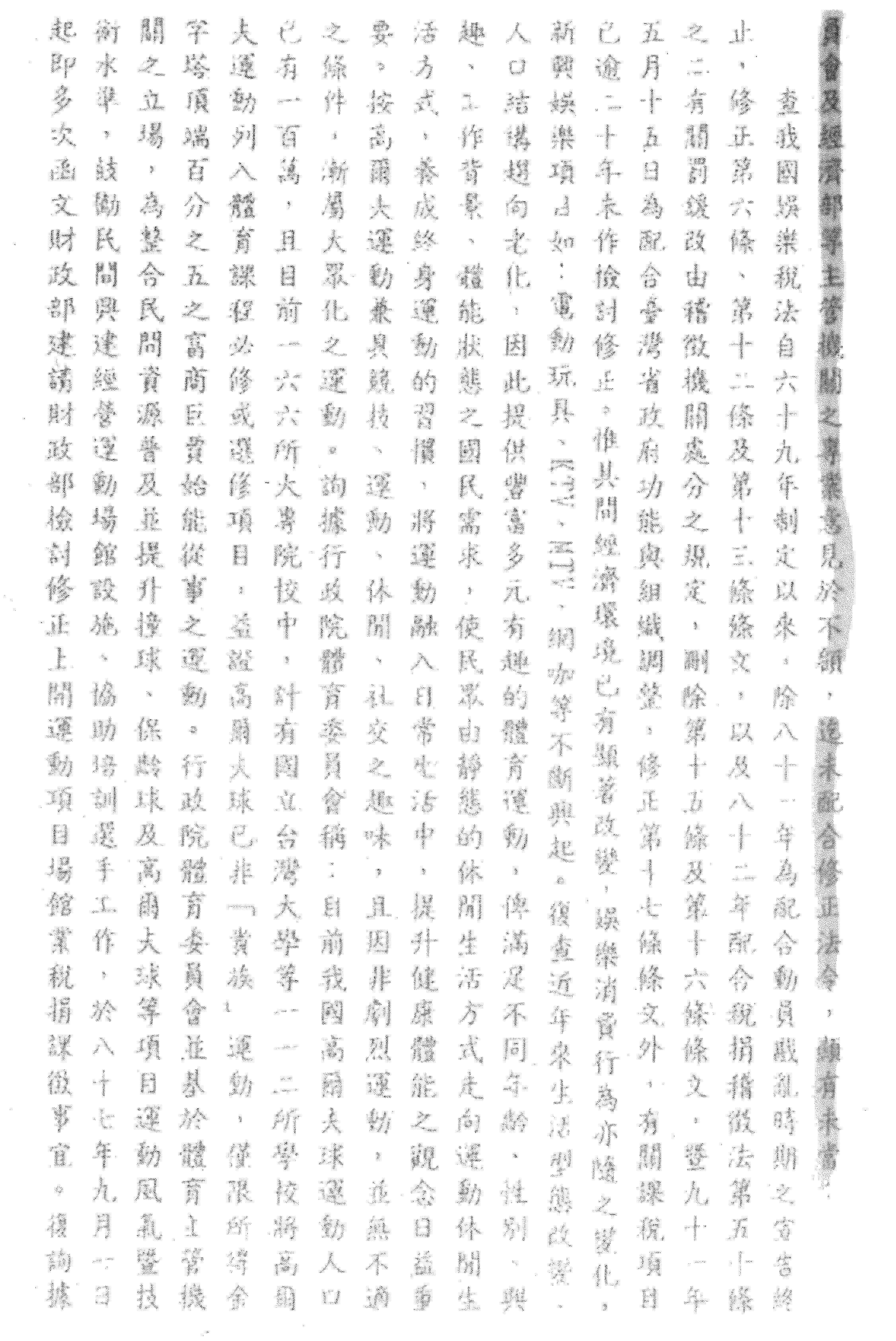 另外,有些是社會上認為應該要課徵的項目,例如奢侈或是投機的活動,這裡面有所謂的夜總會表演,如果你還找得到夜總會的話,另外就是舞場、舞廳,還有像彰化市或屏東市的電子遊樂場,這些是否應該思考一下把它併入加值型及非加值型營業稅第十二條,因為它有所謂的特種飲食業之營業稅稅率,像夜總會、酒家,剛才也有向大家暗示過,那種地方你們大概不會去。或者有陪侍服務的茶室、咖啡廳,這些地方是不是併入加值型營業稅法中?