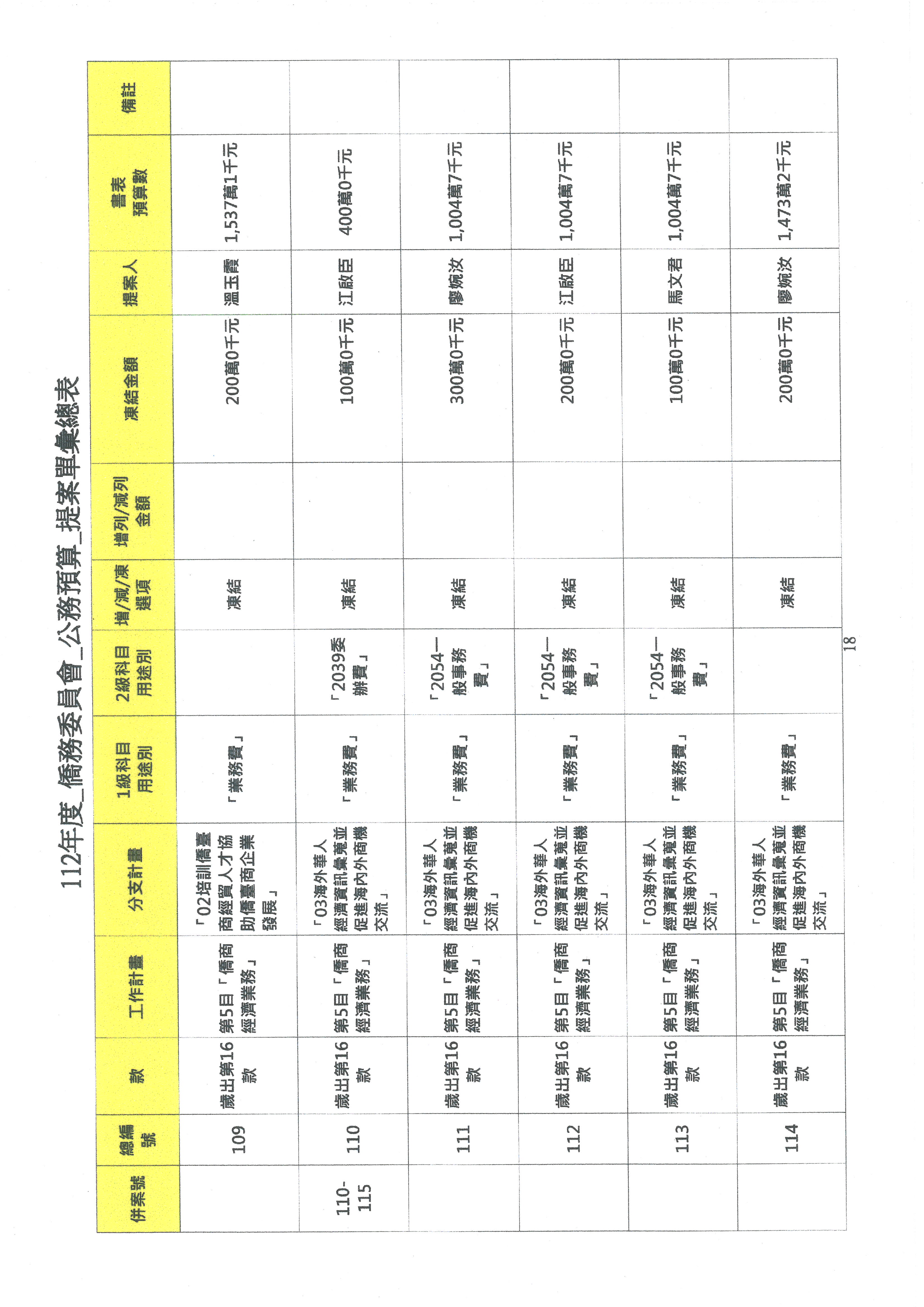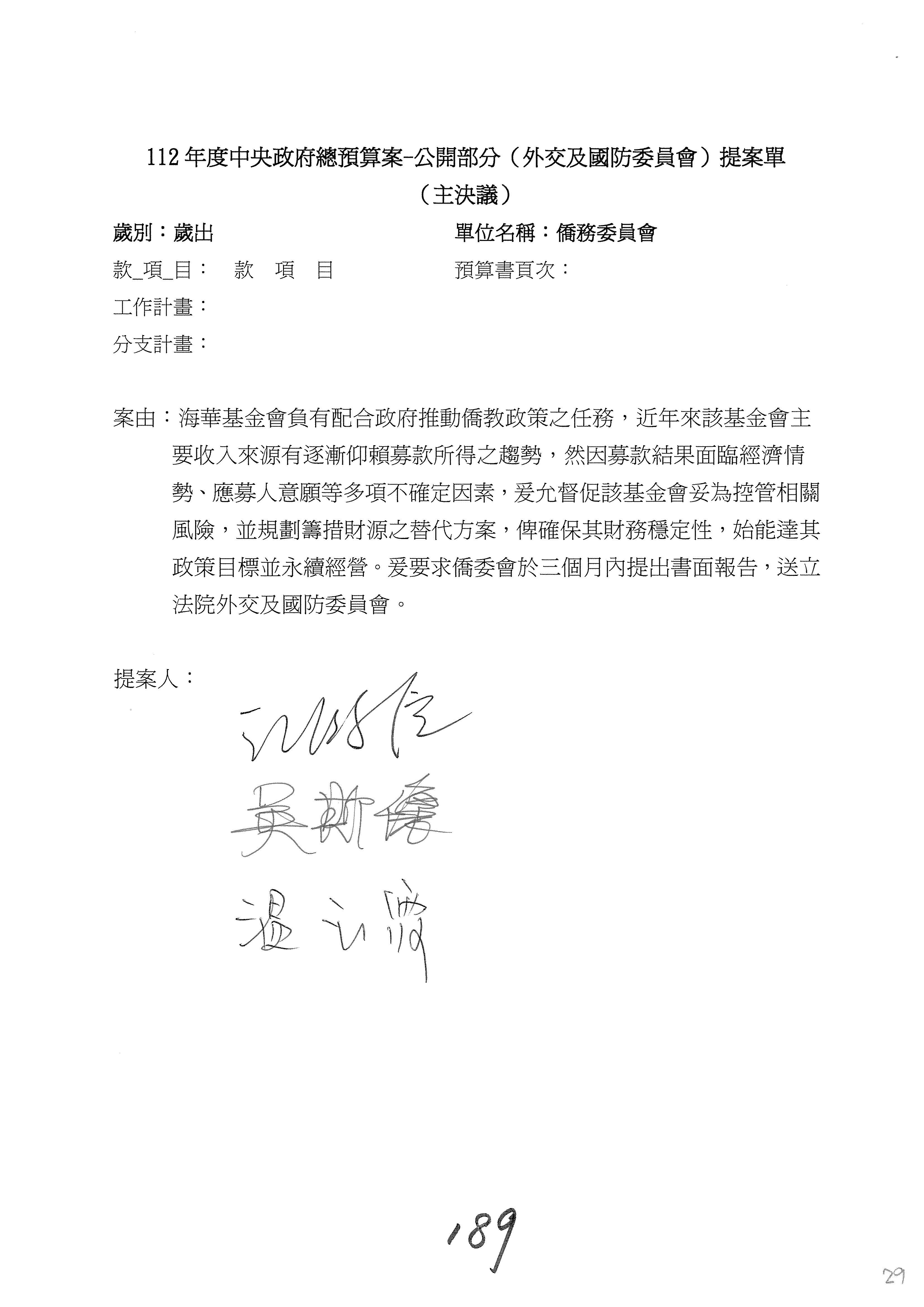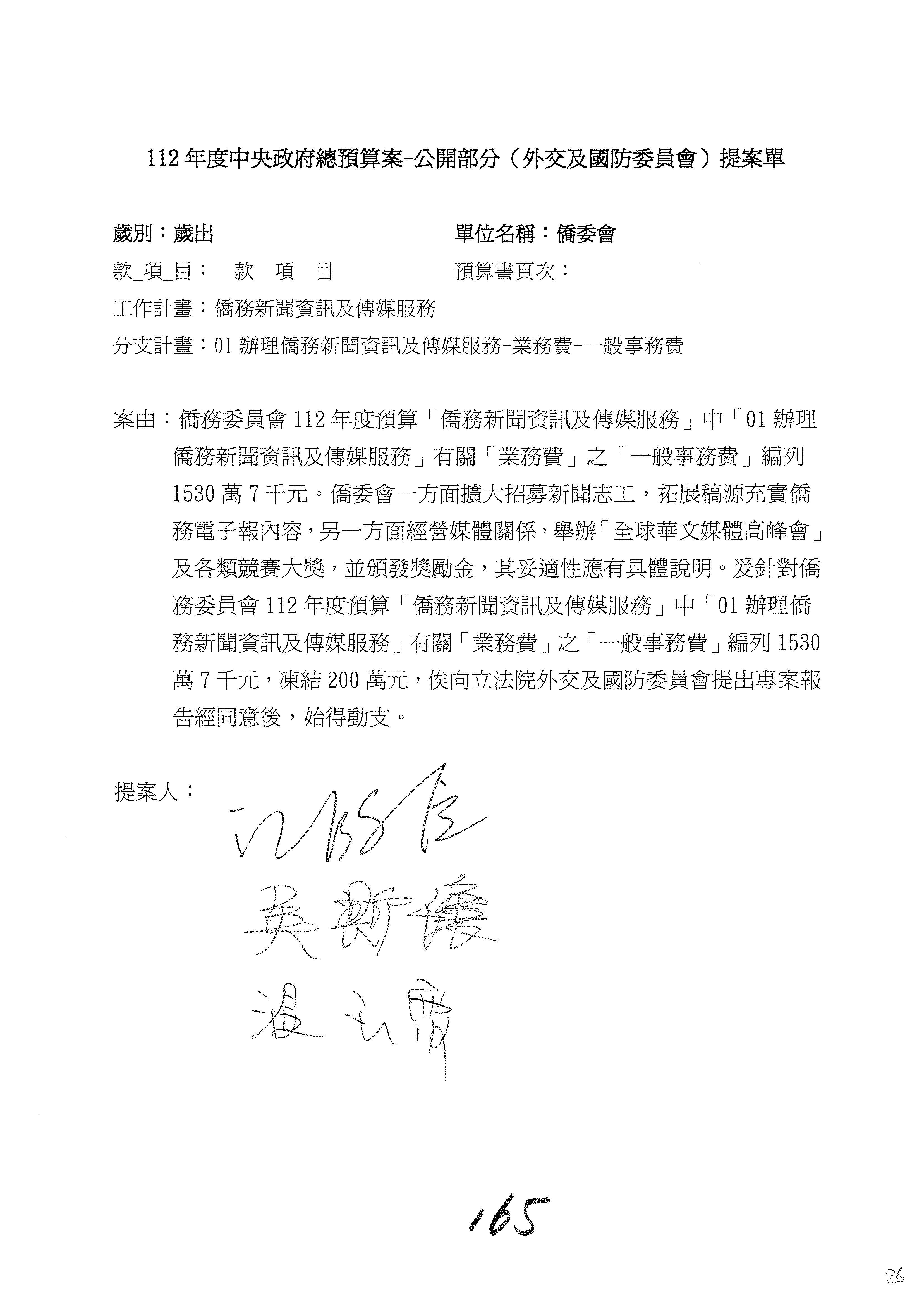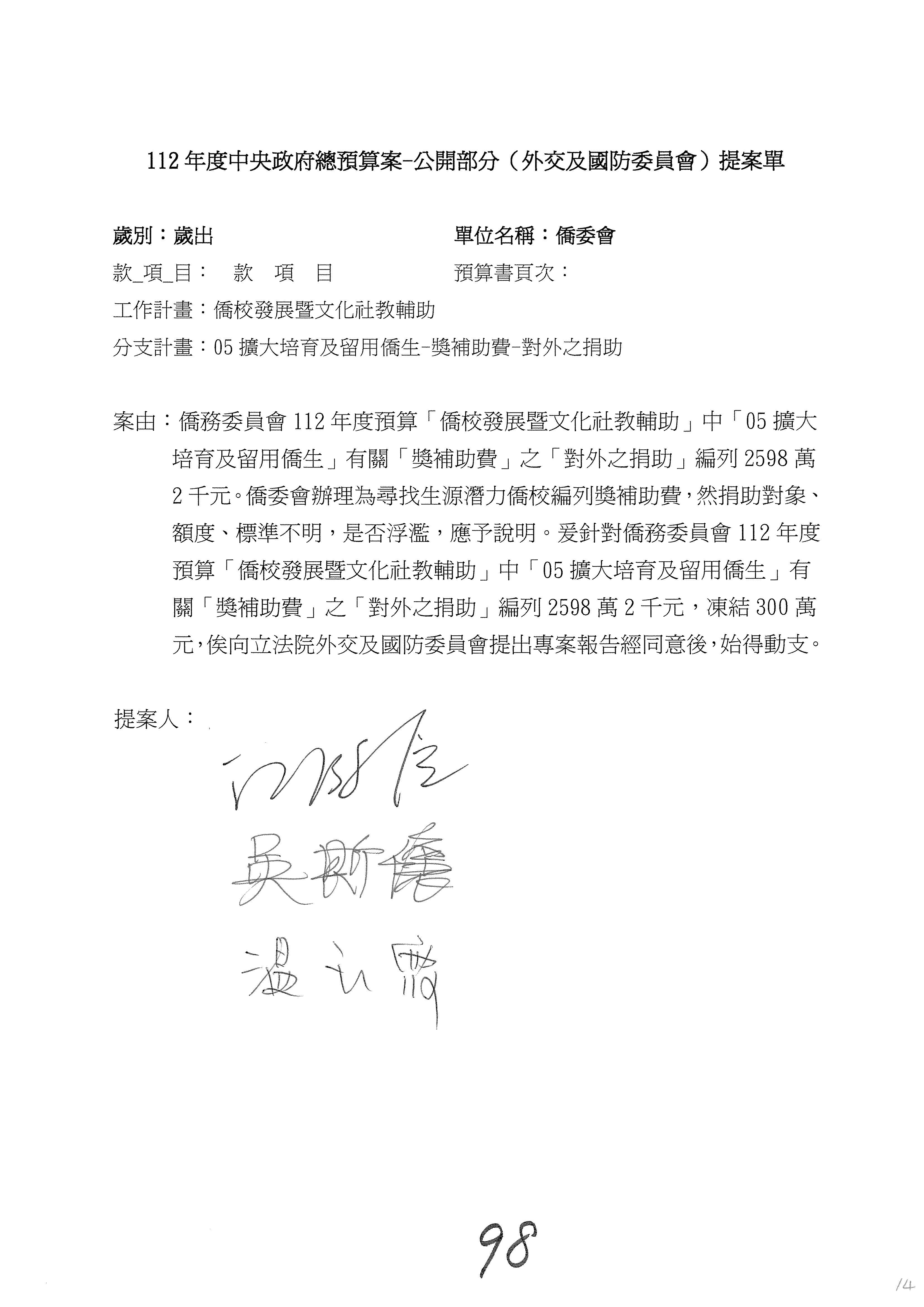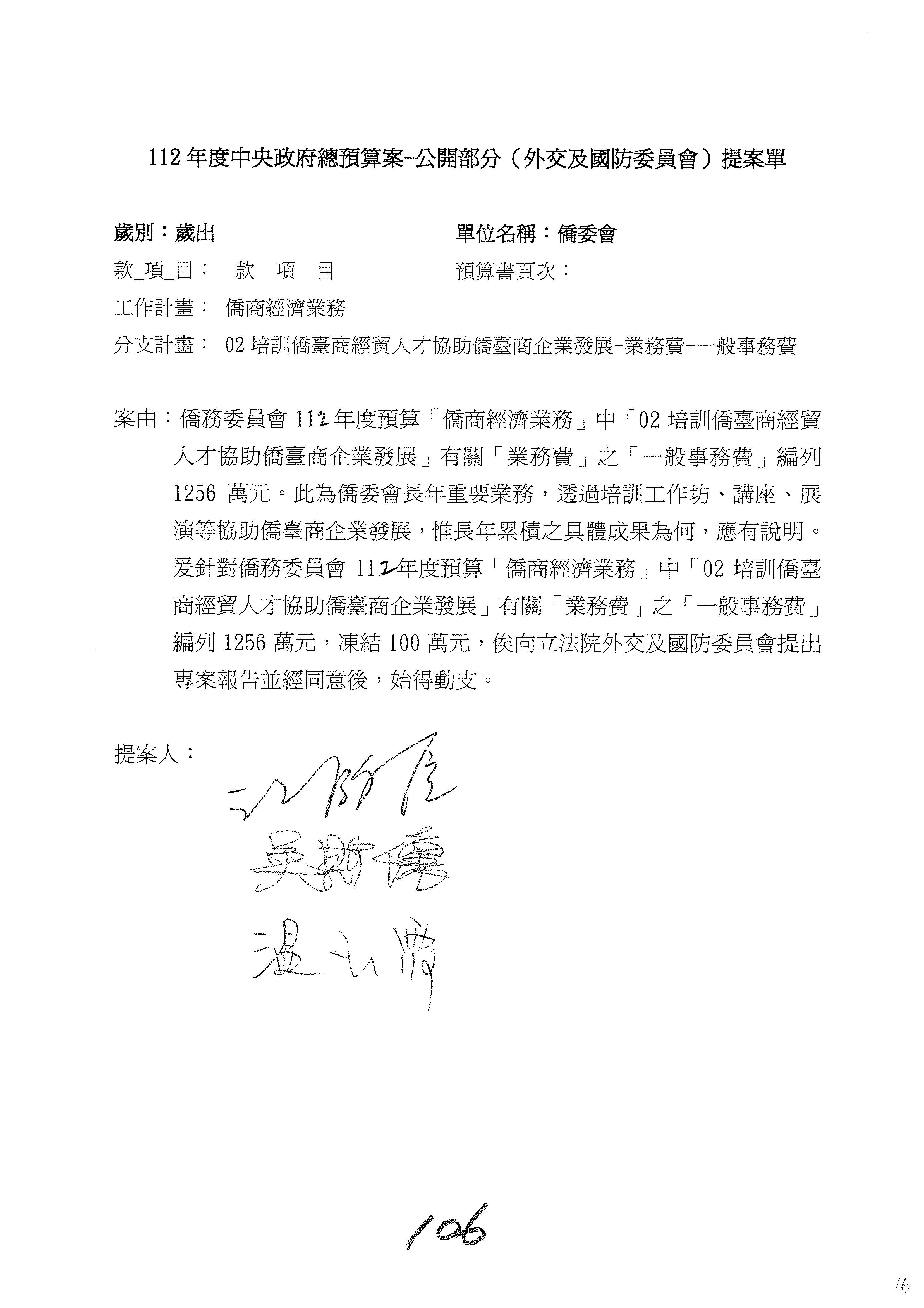 (二)112年度僑務委員會主管預算提案單(公開部分):