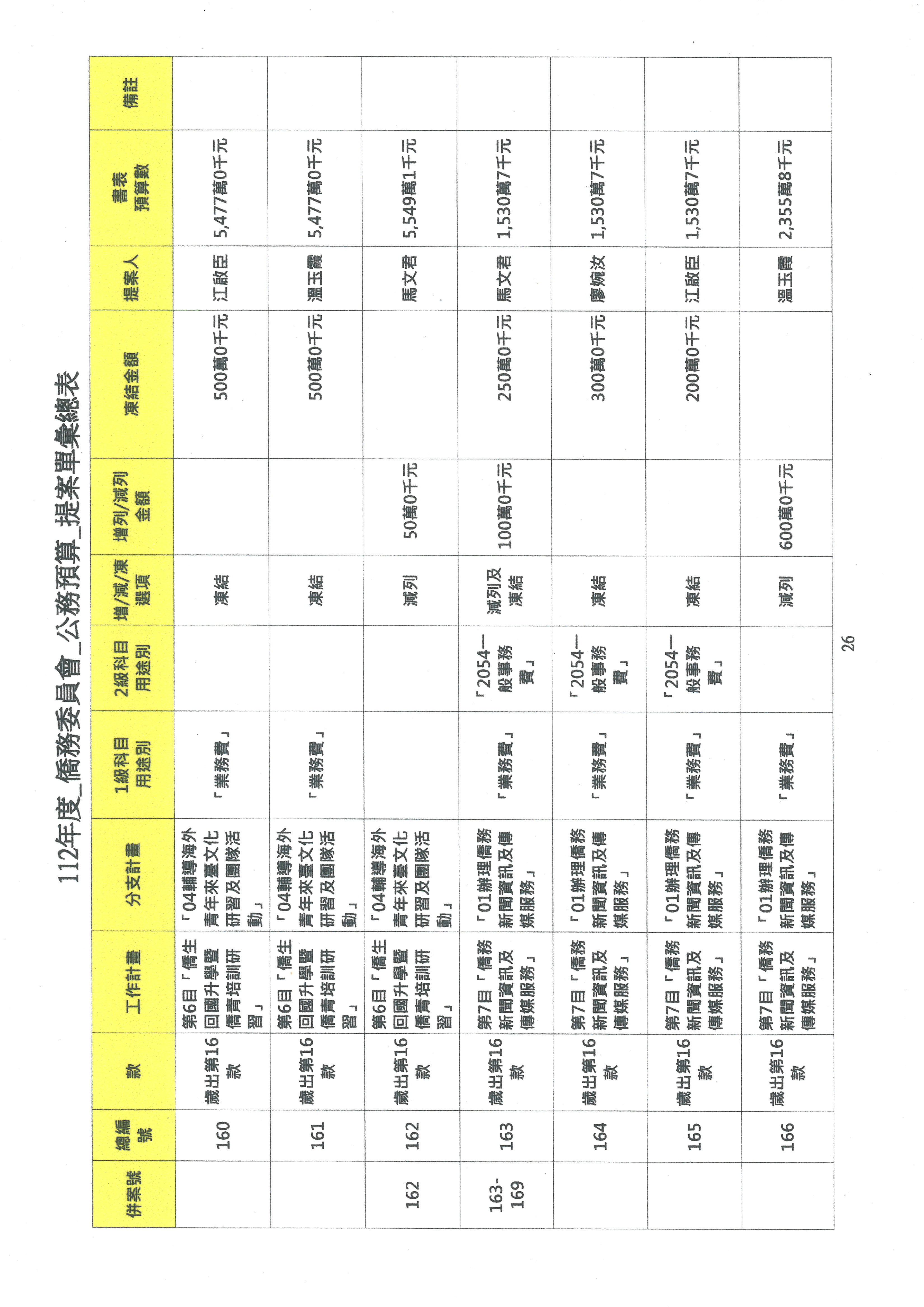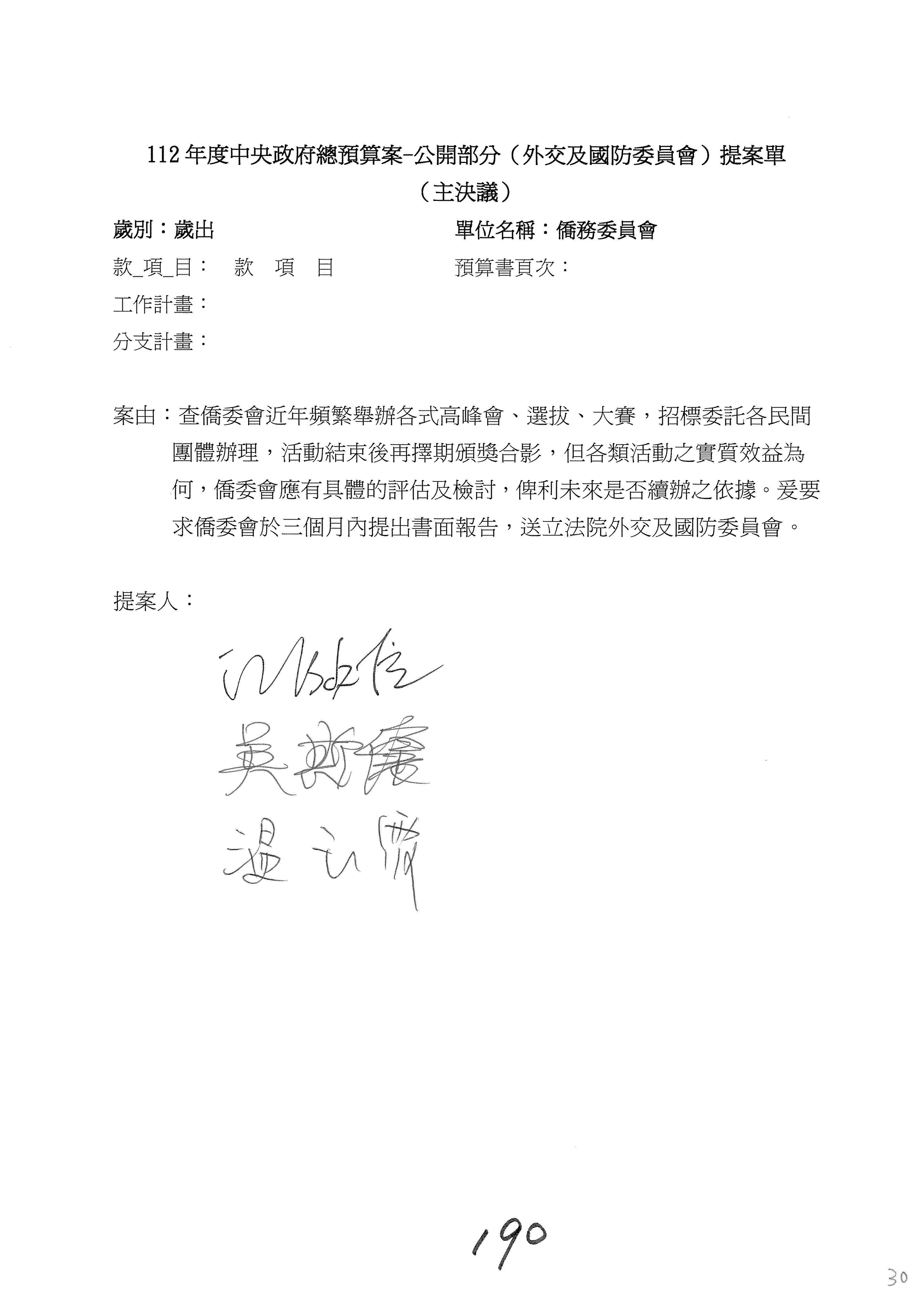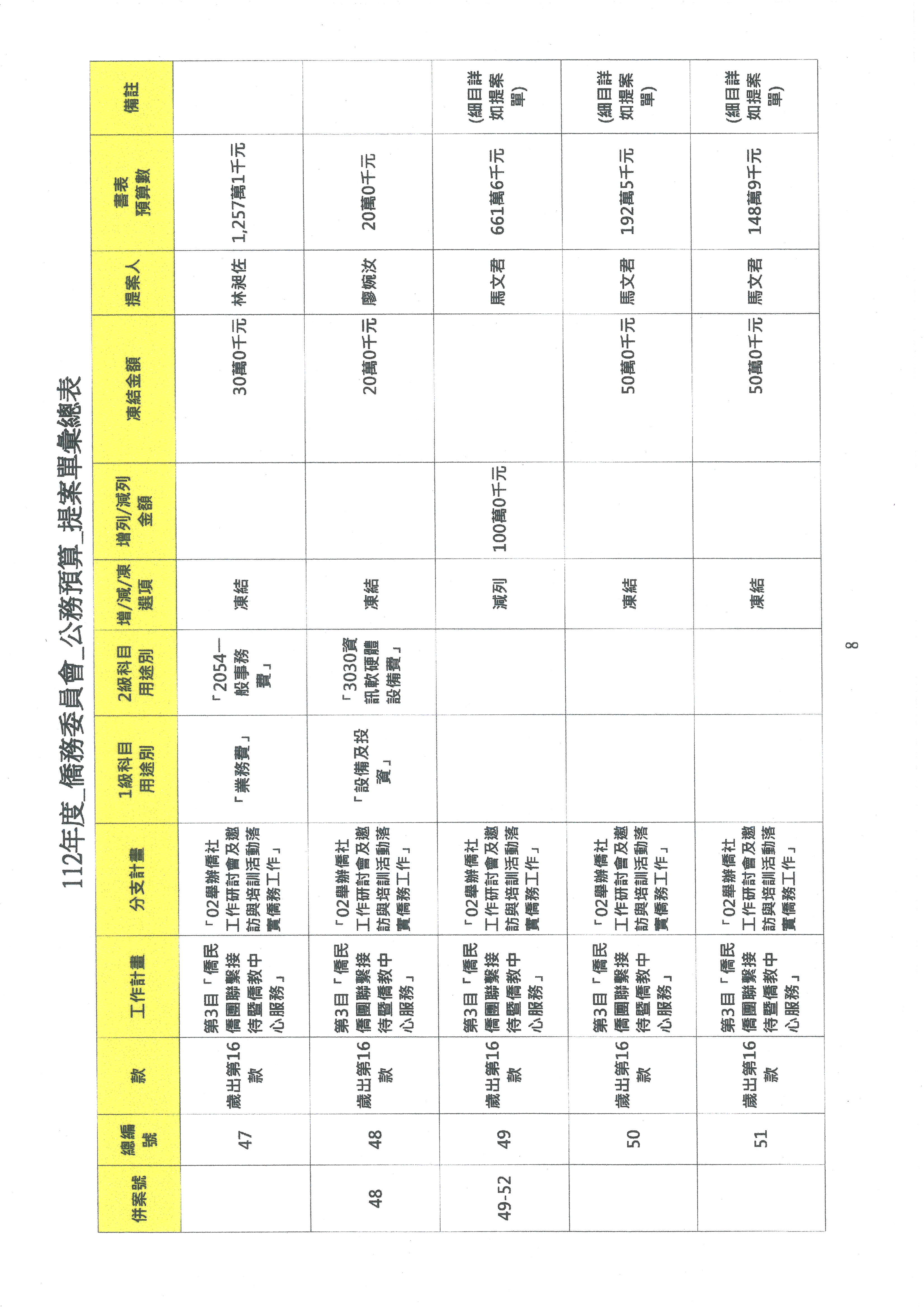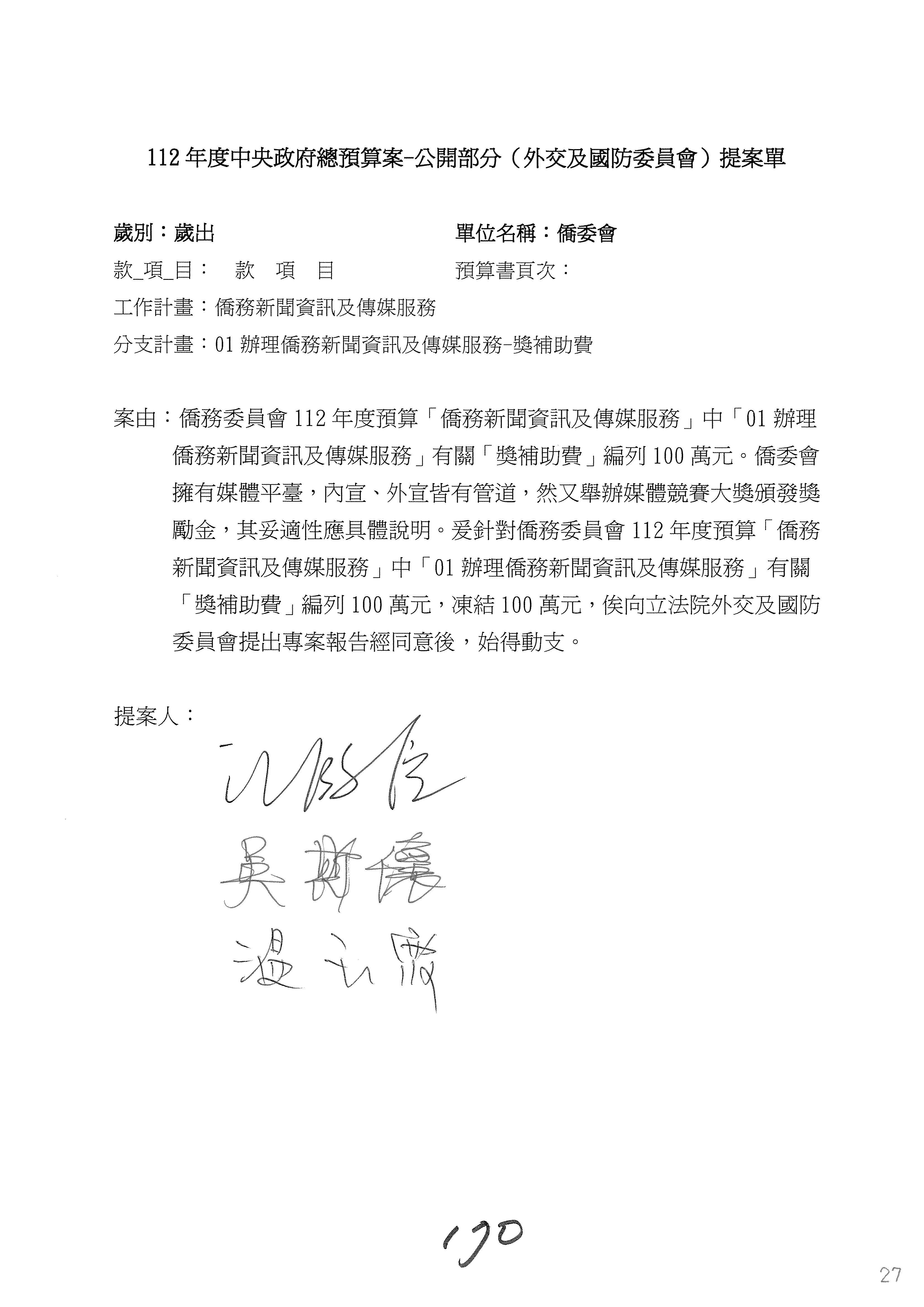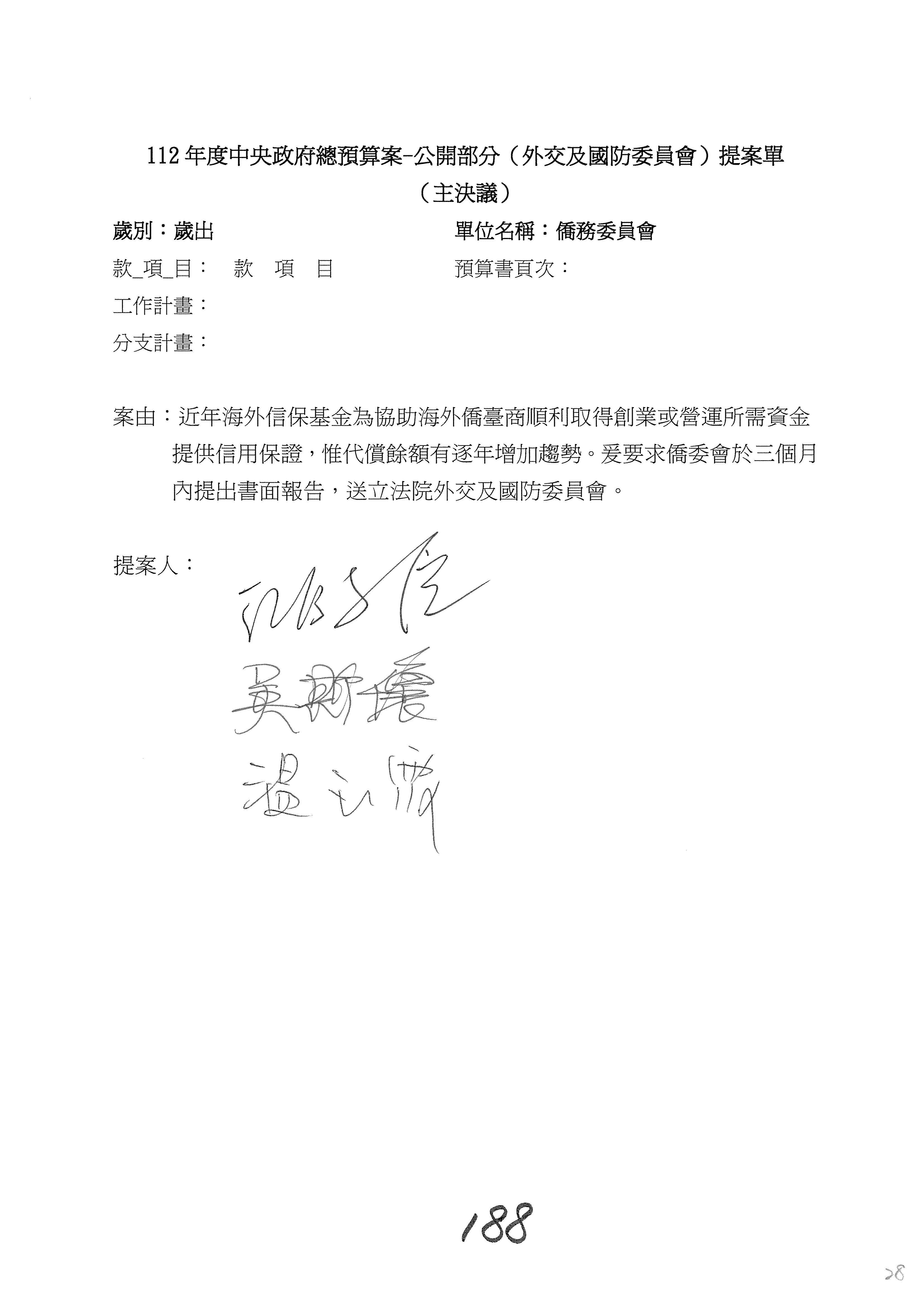 (二)112年度僑務委員會主管預算提案單(公開部分):