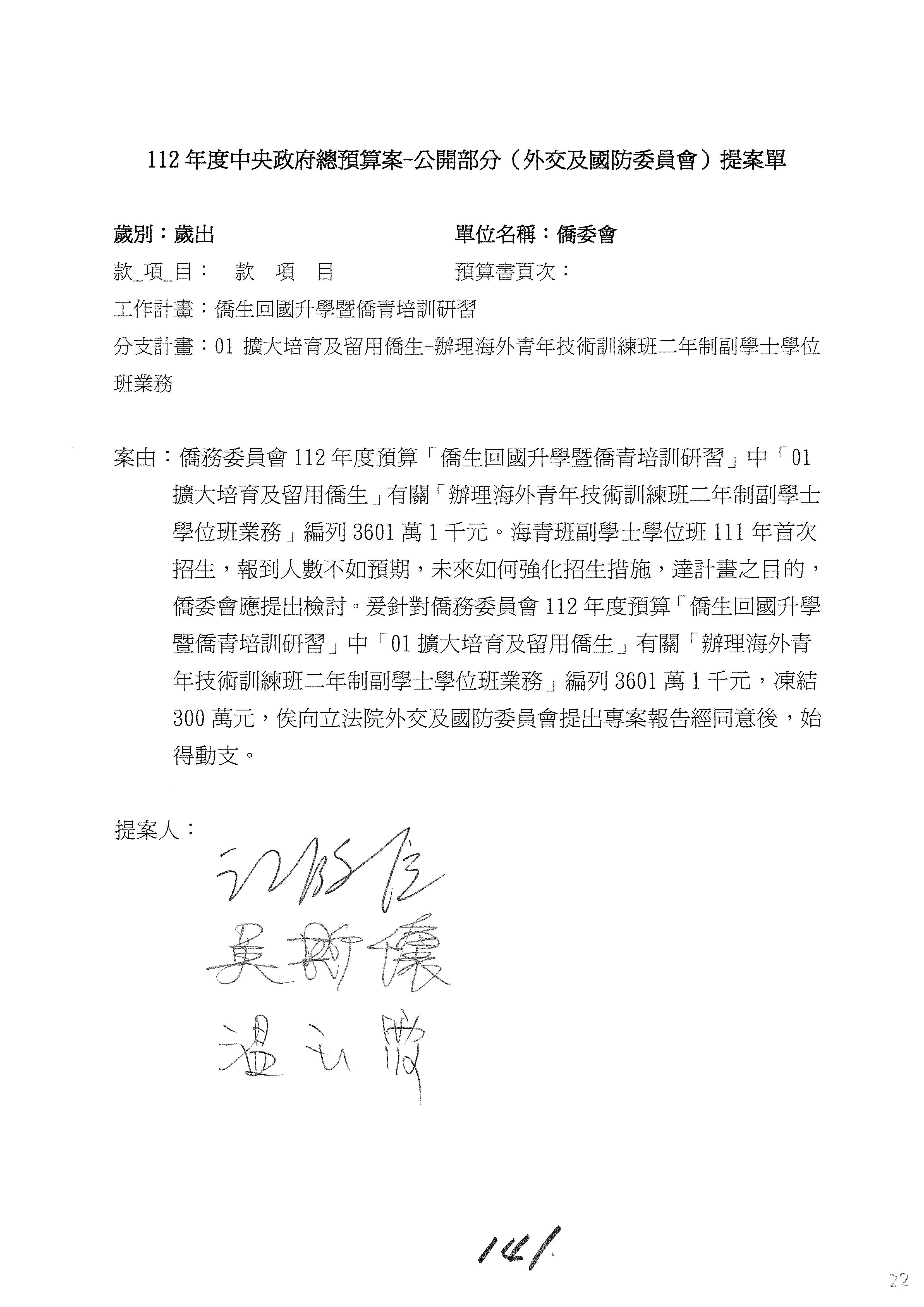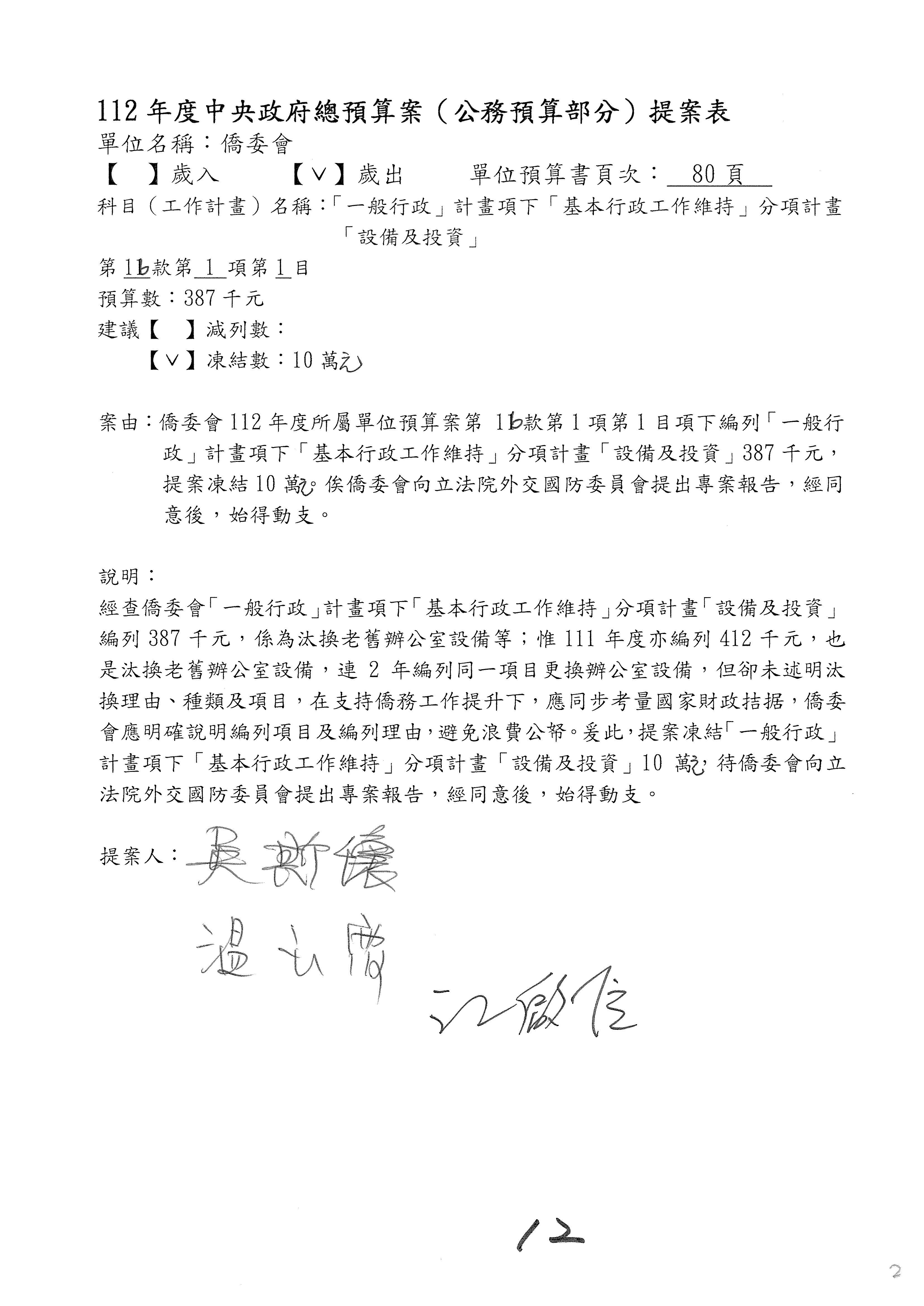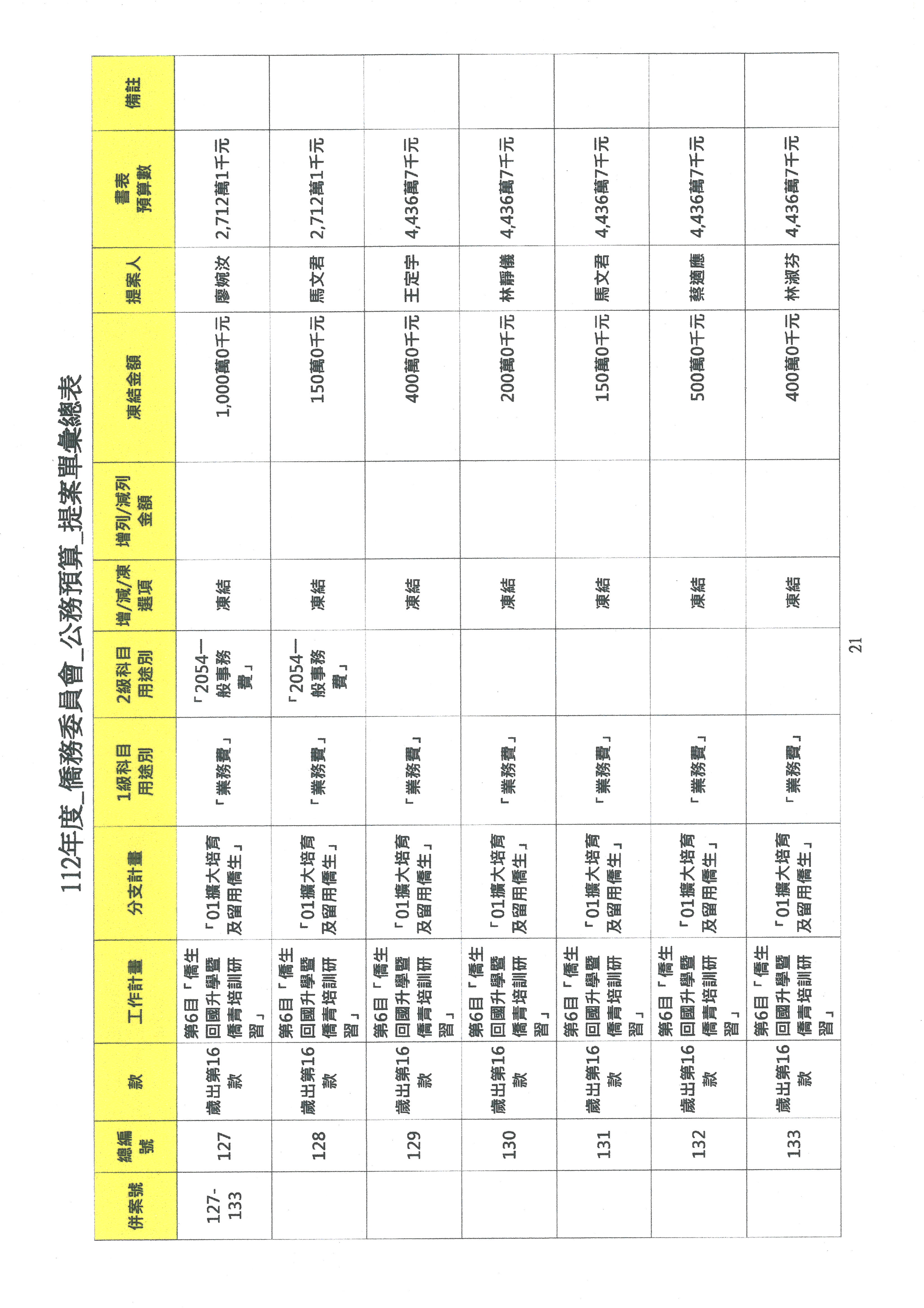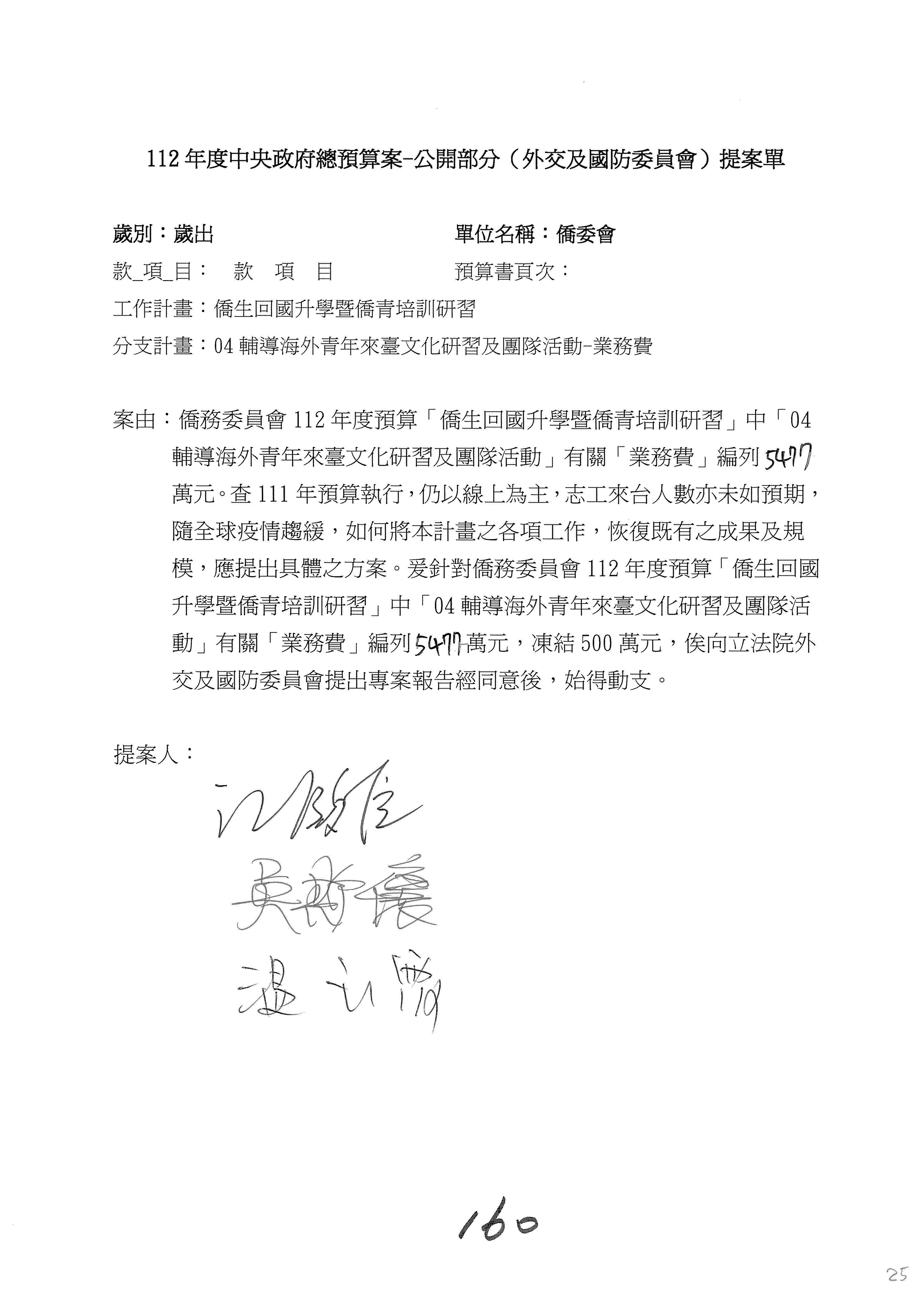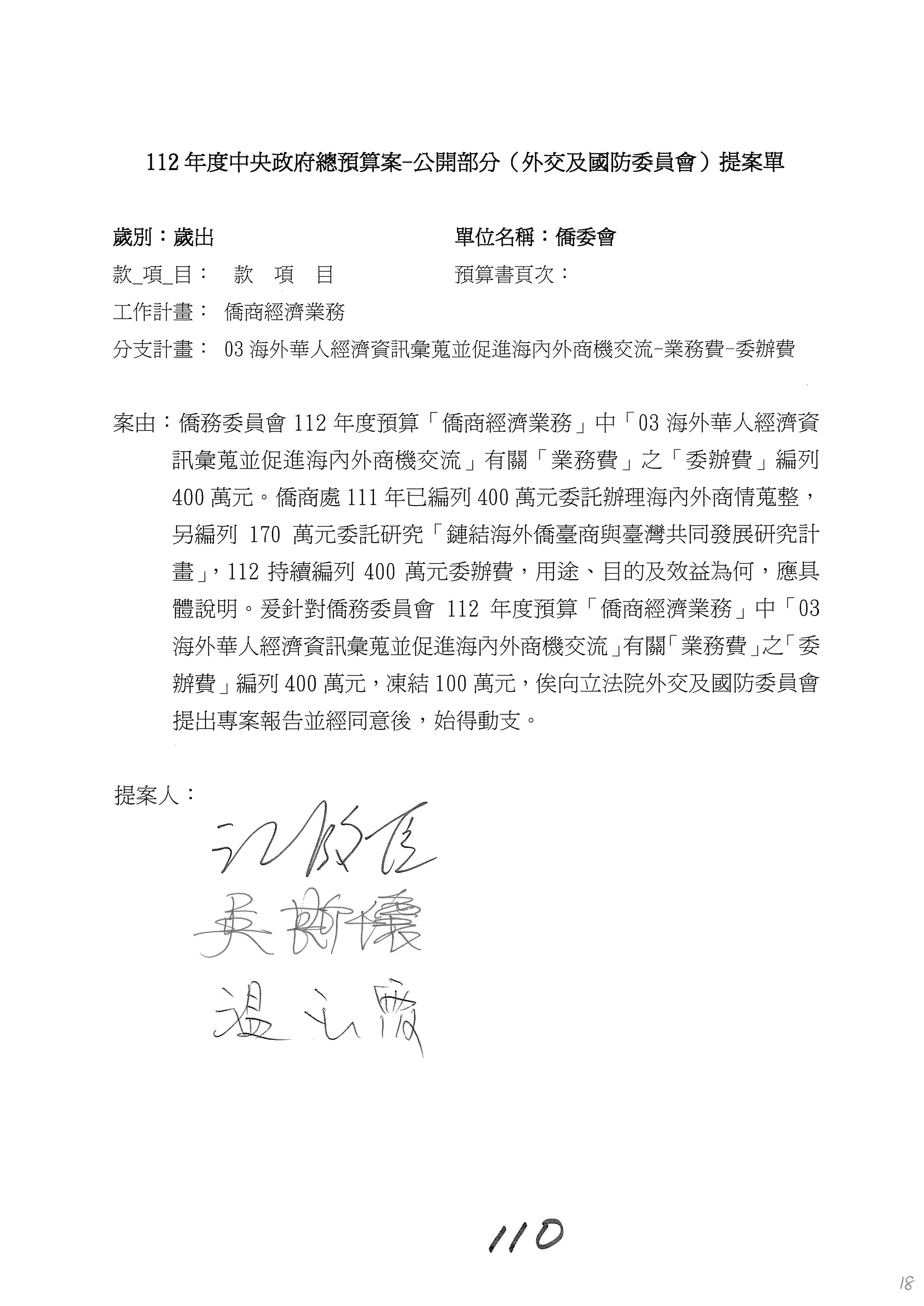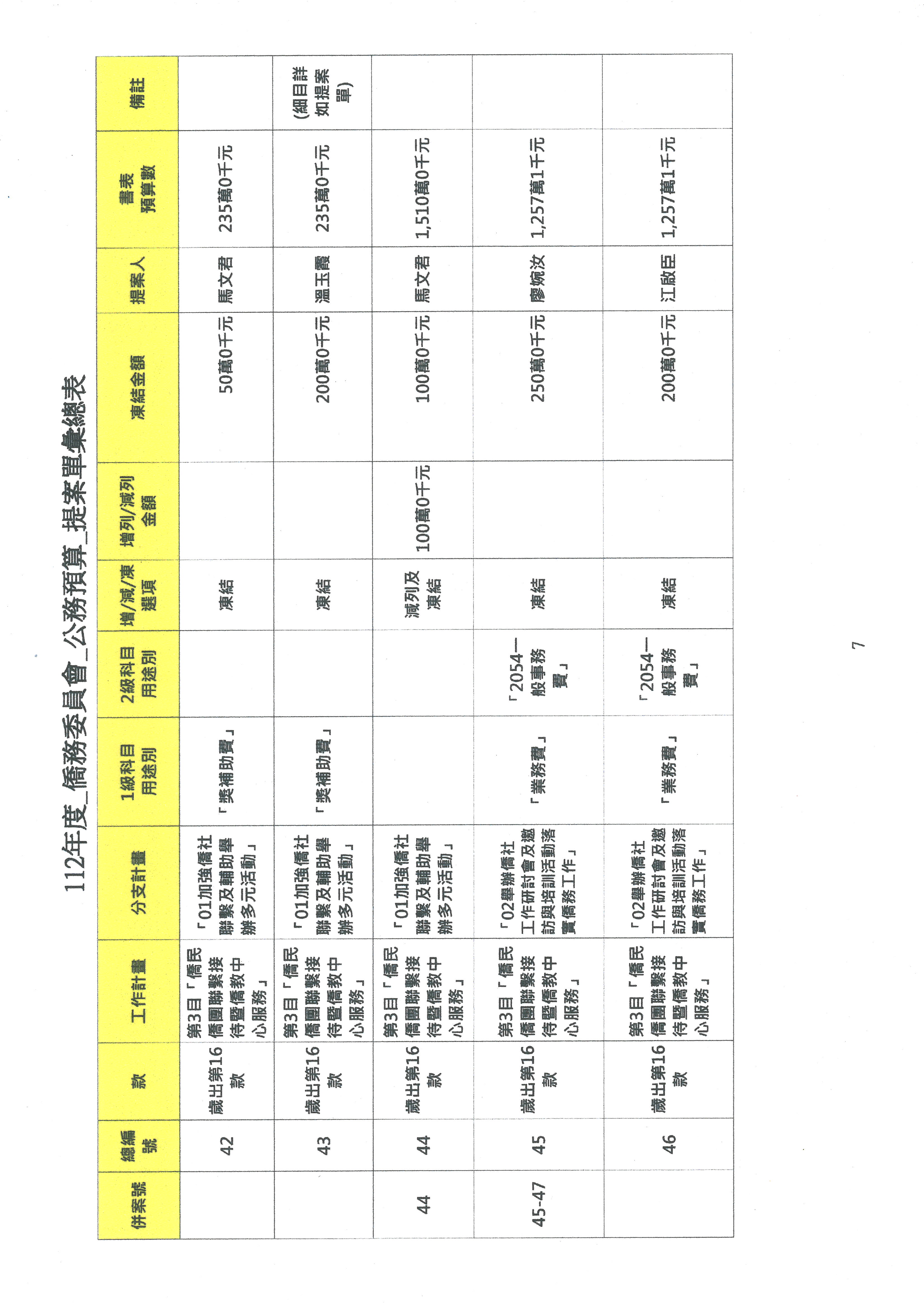 (二)112年度僑務委員會主管預算提案單(公開部分):