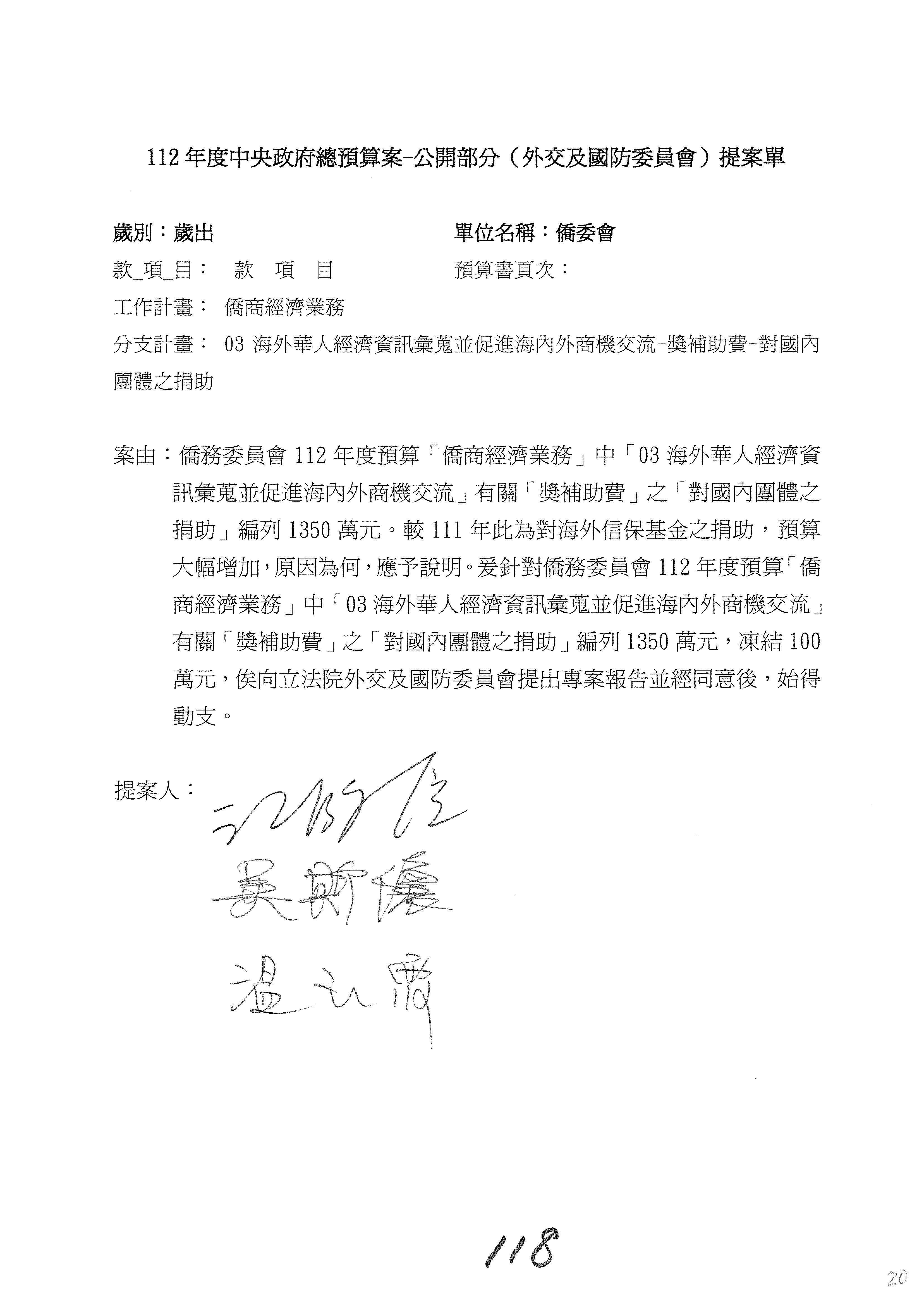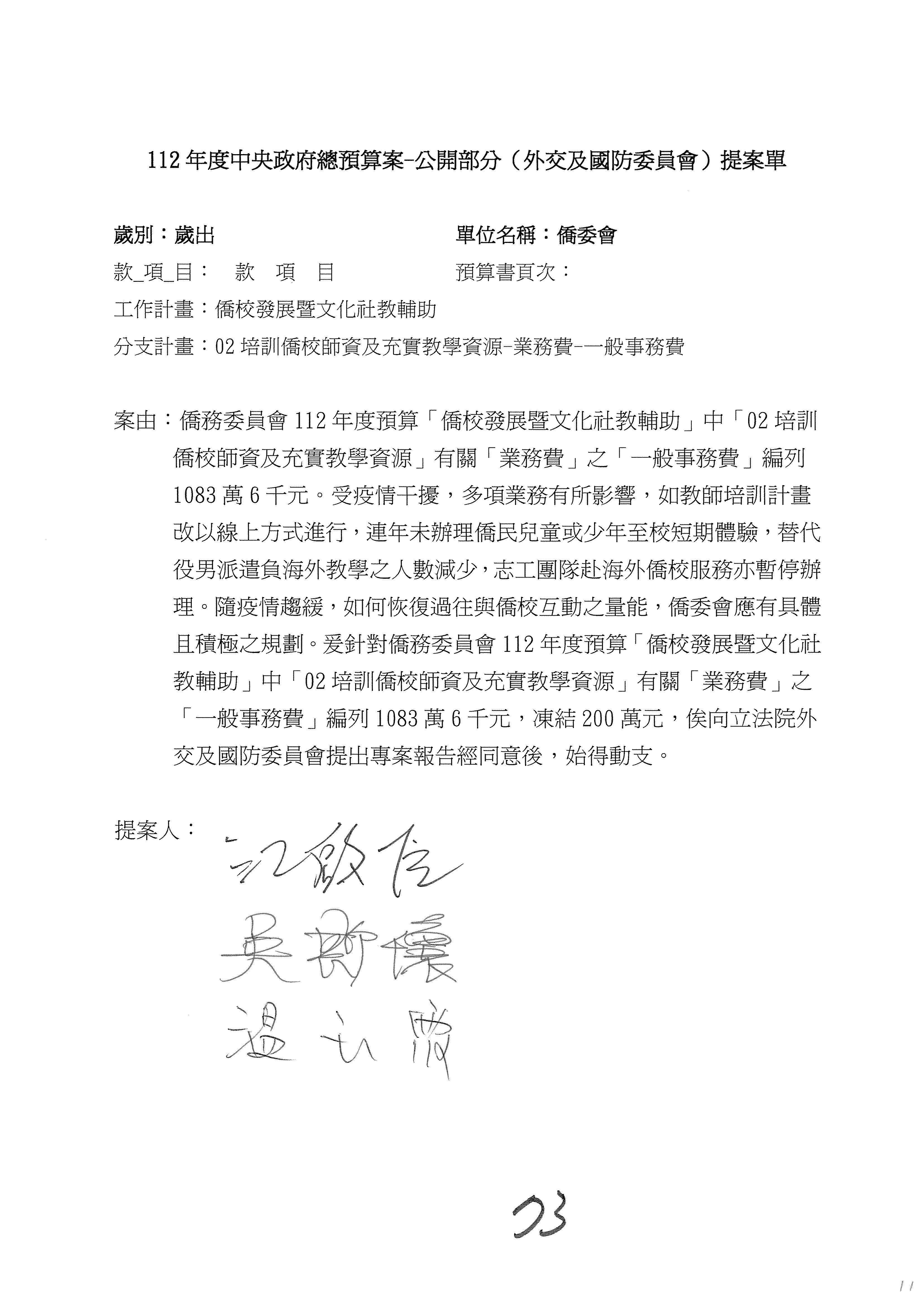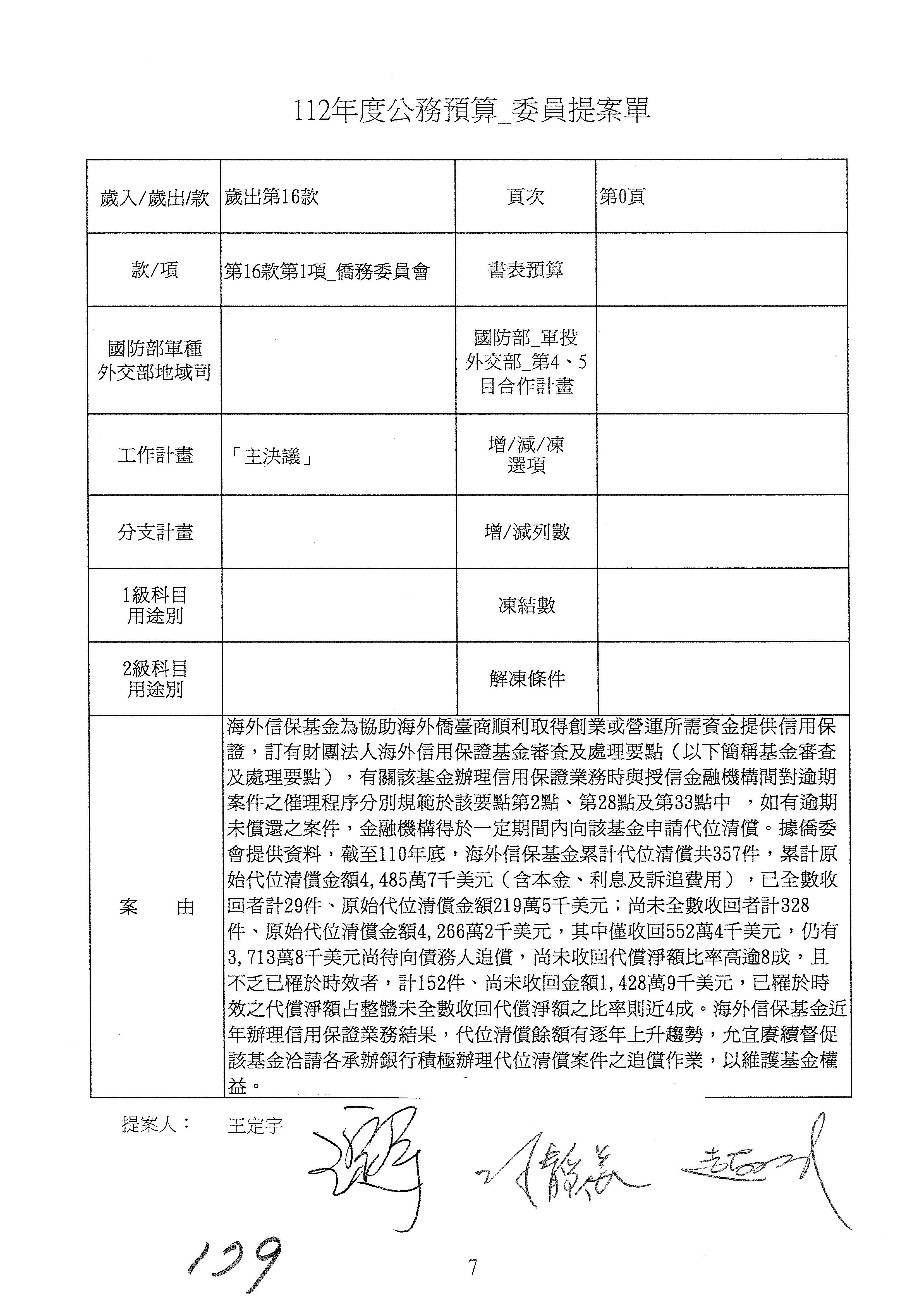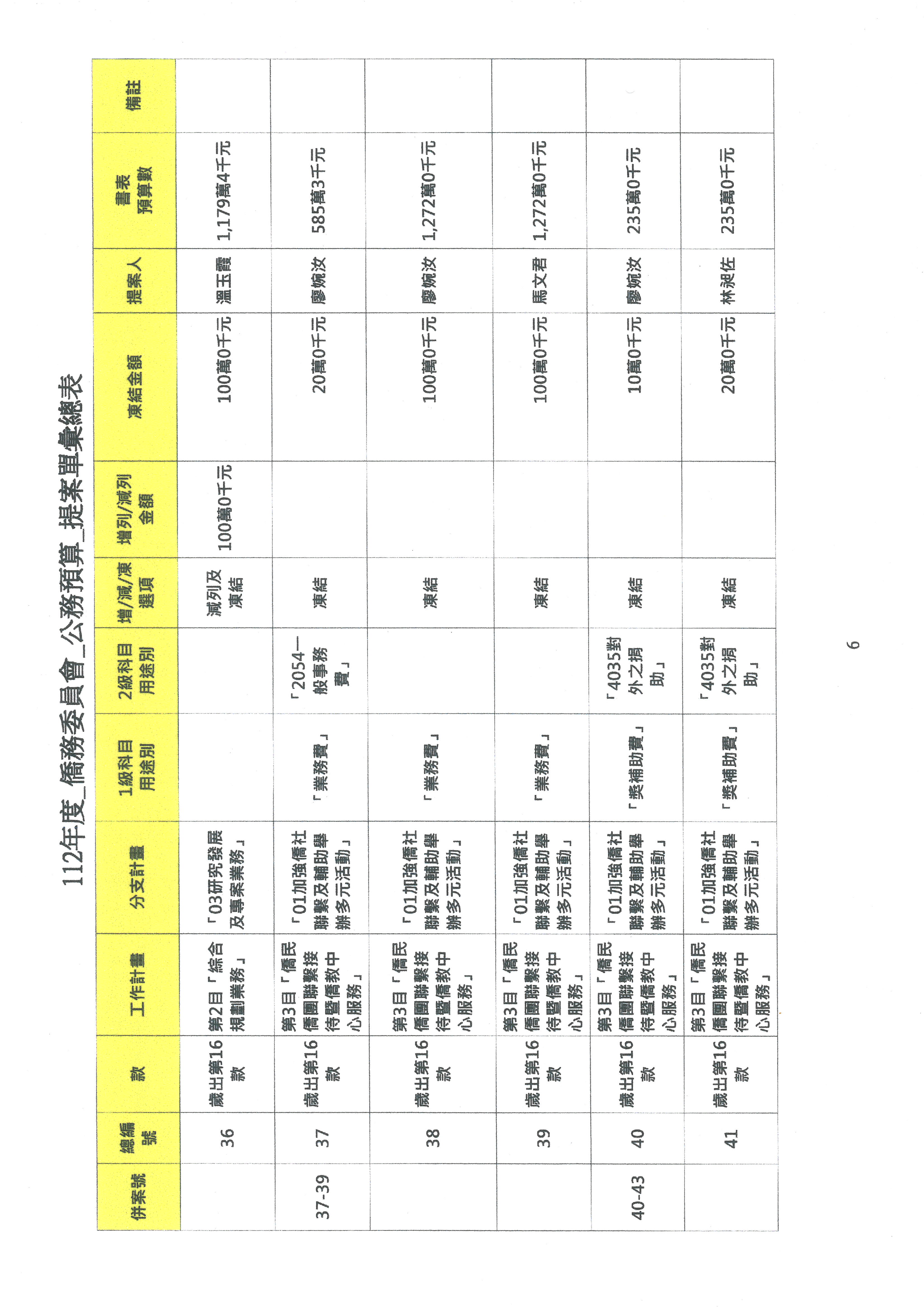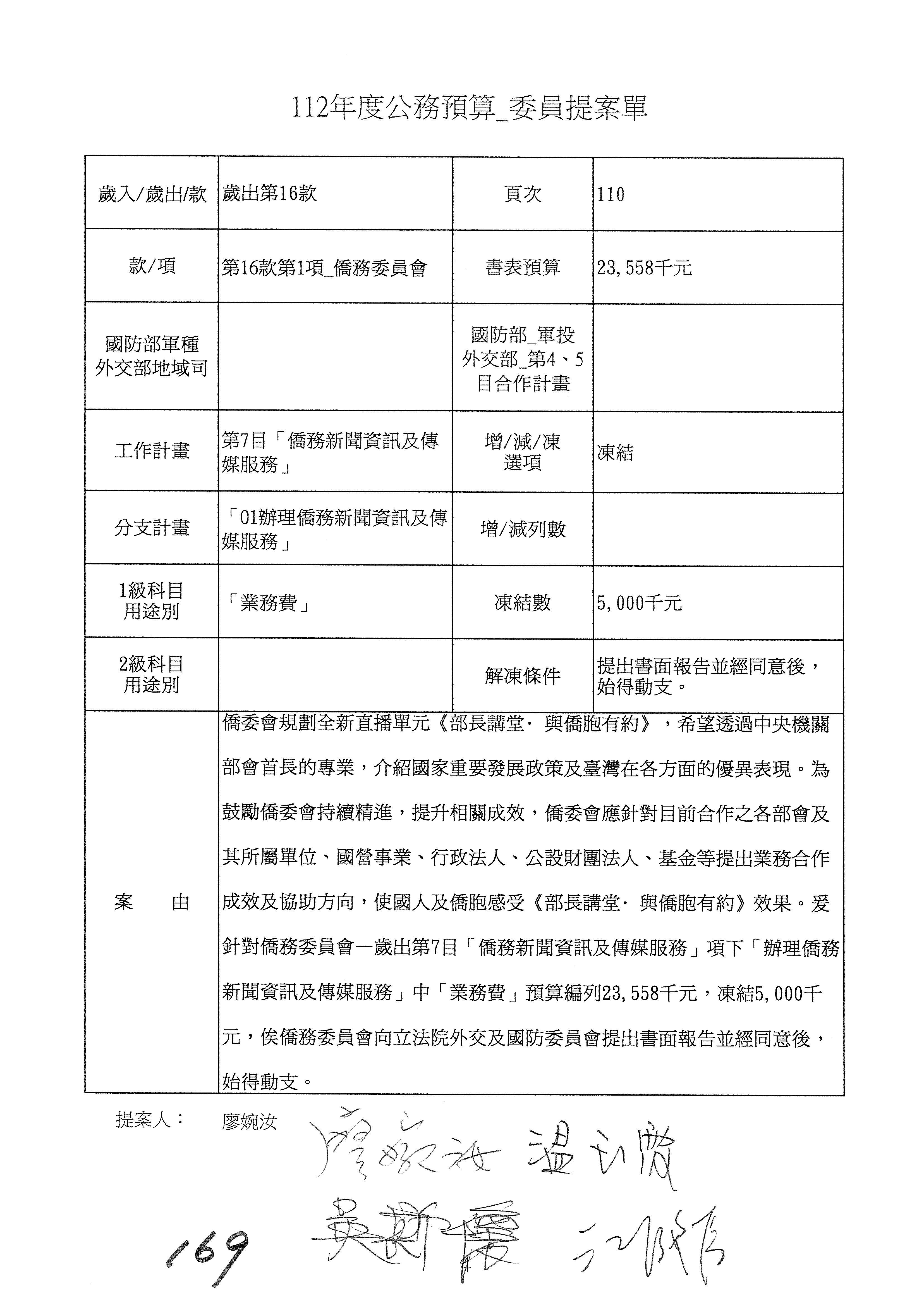(二)112年度僑務委員會主管預算提案單(公開部分):