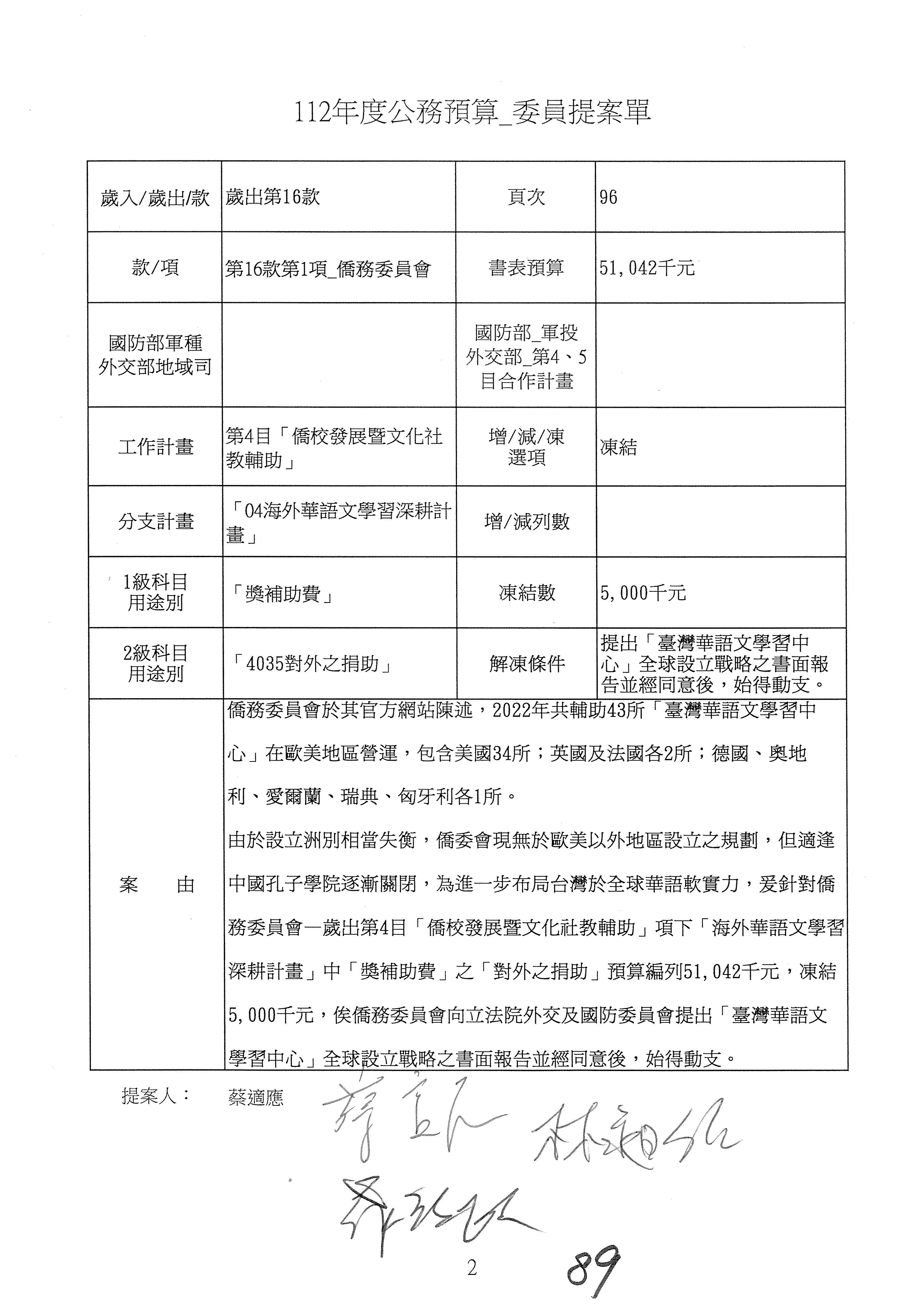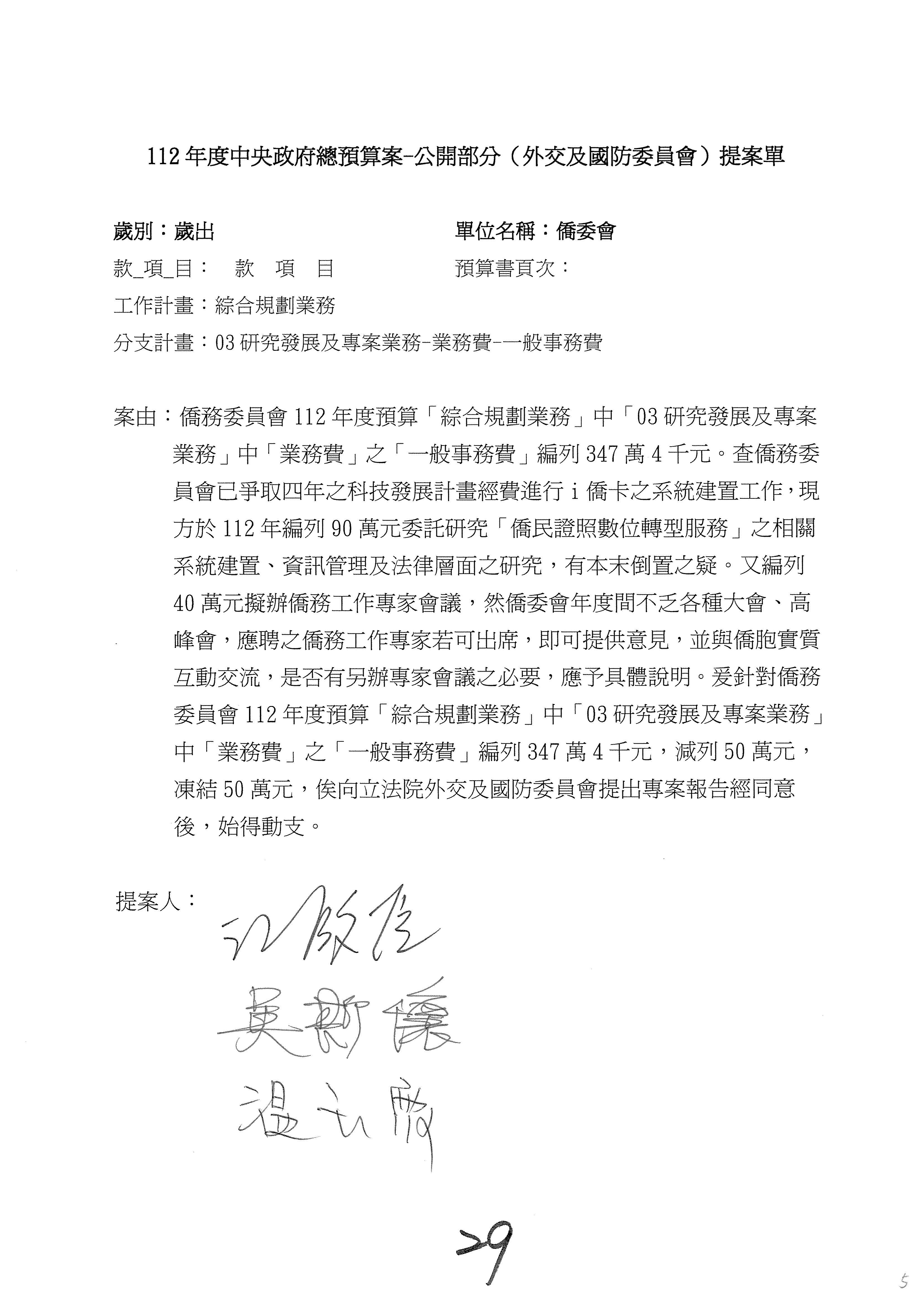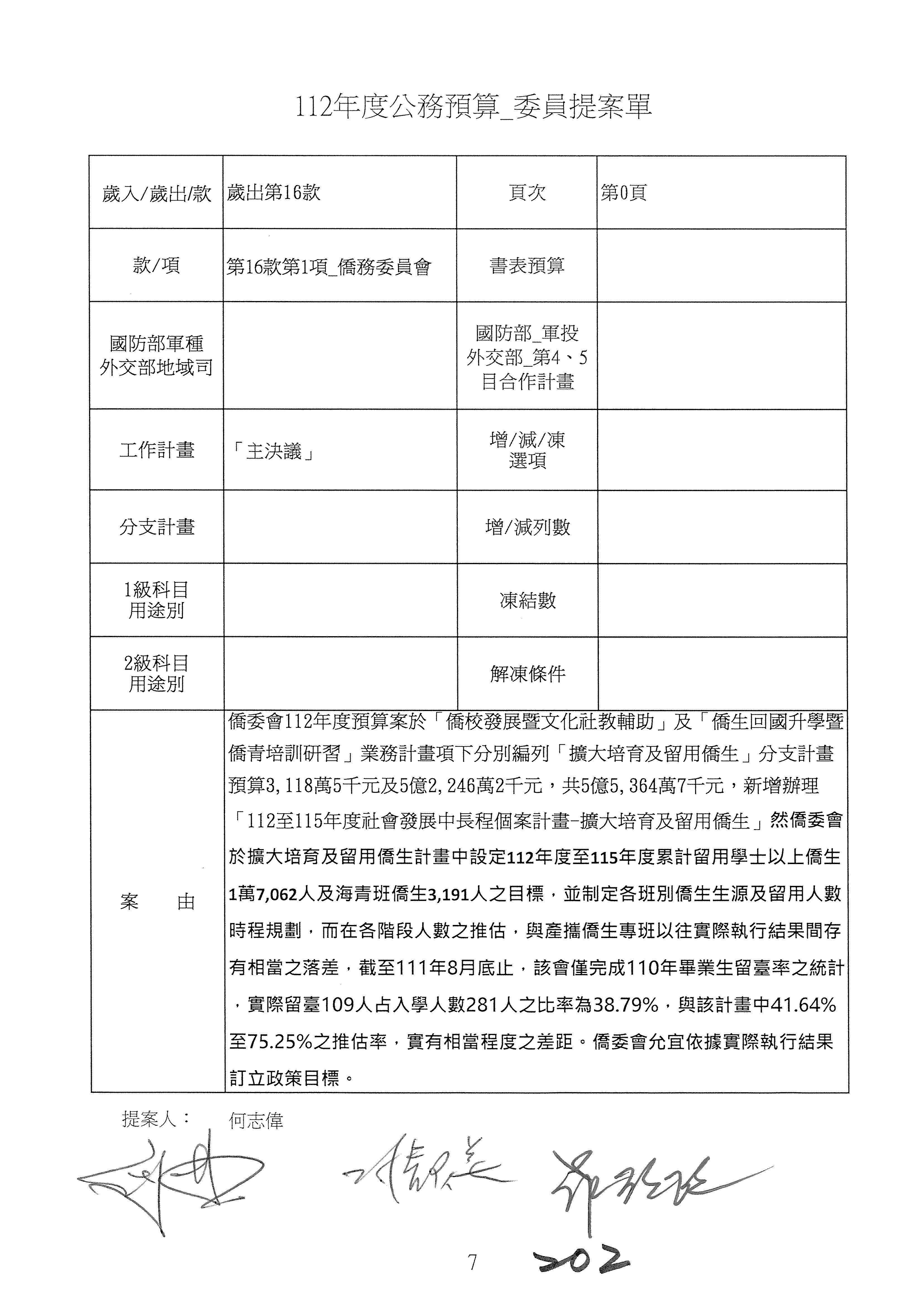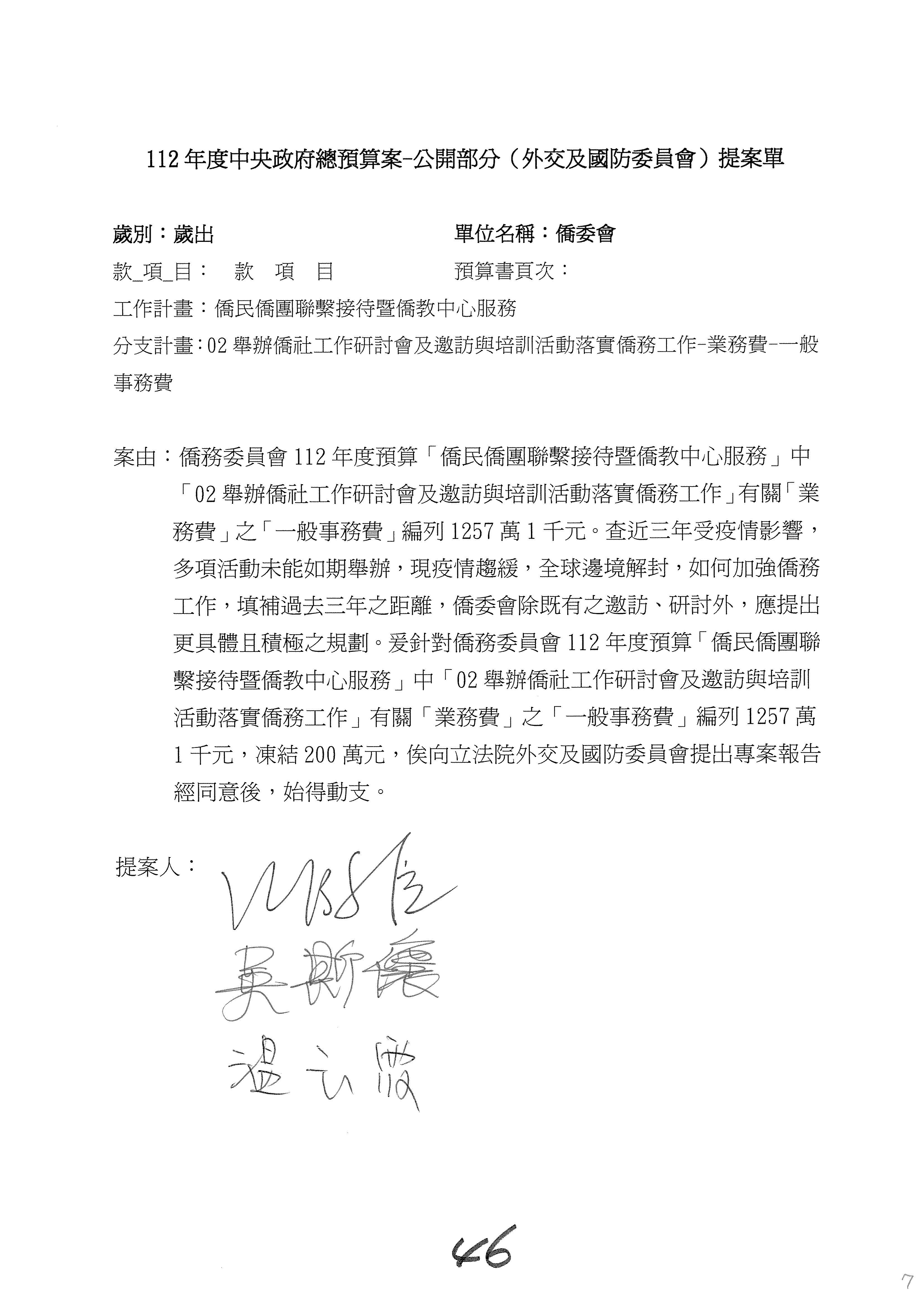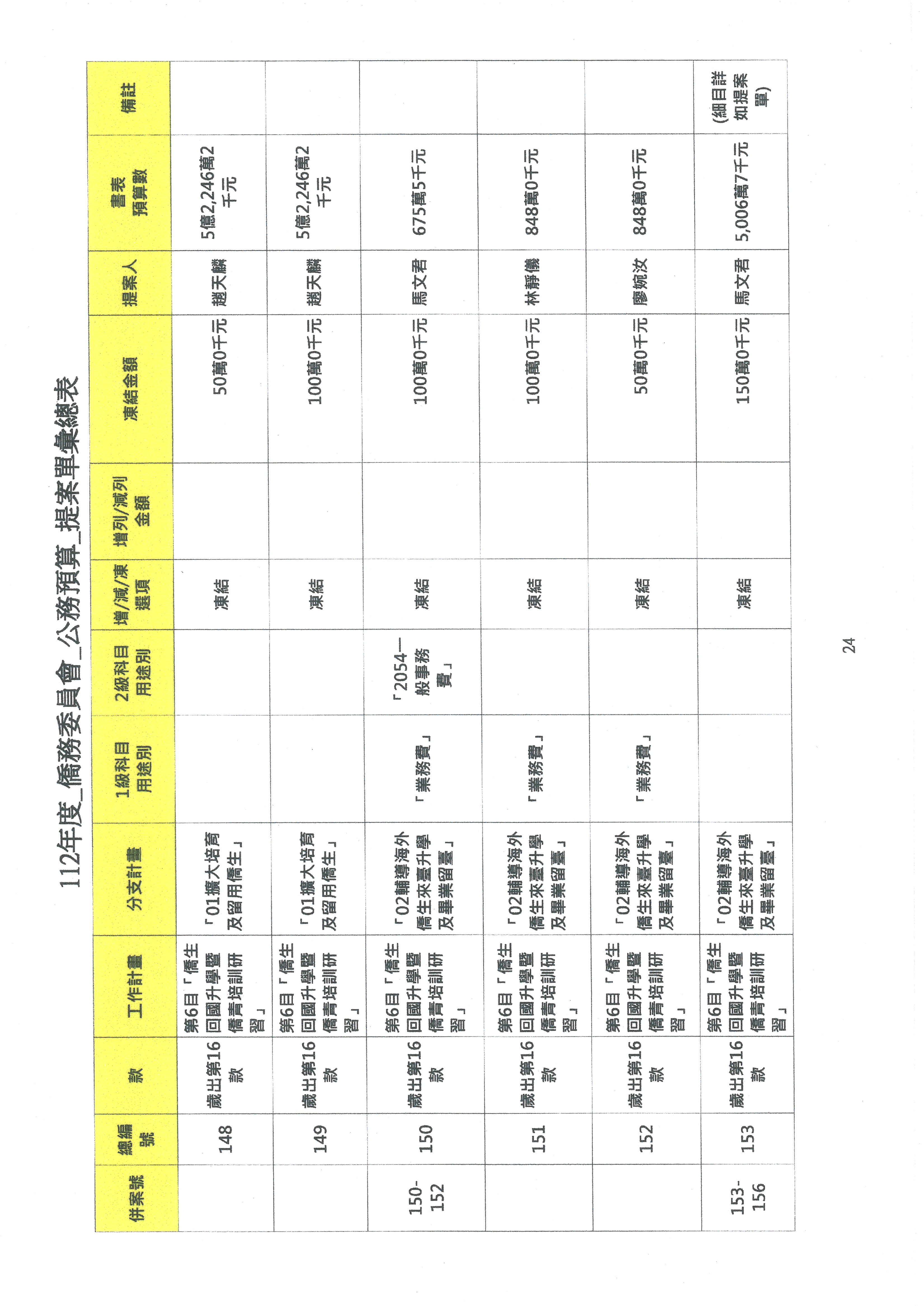 (二)112年度僑務委員會主管預算提案單(公開部分):