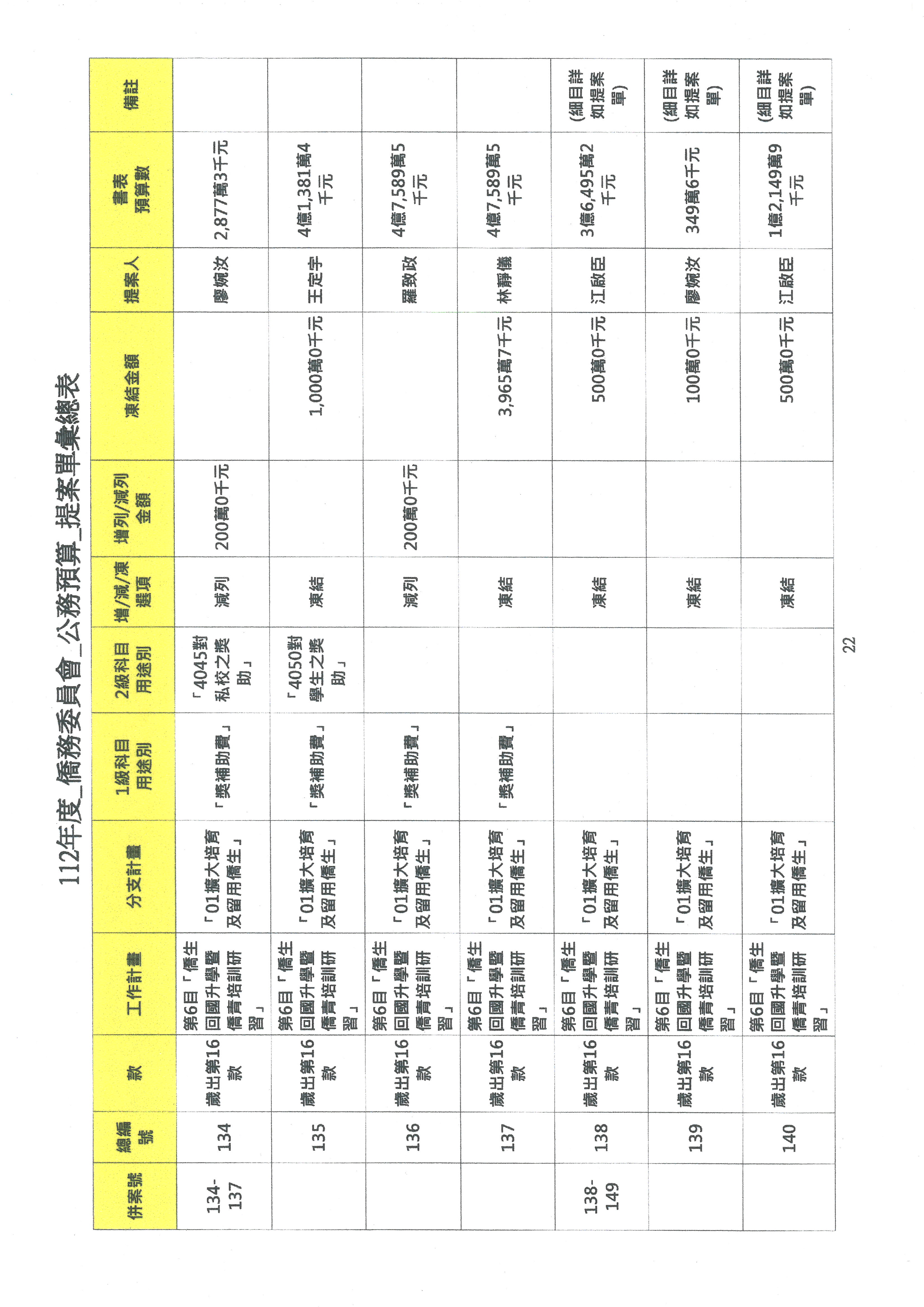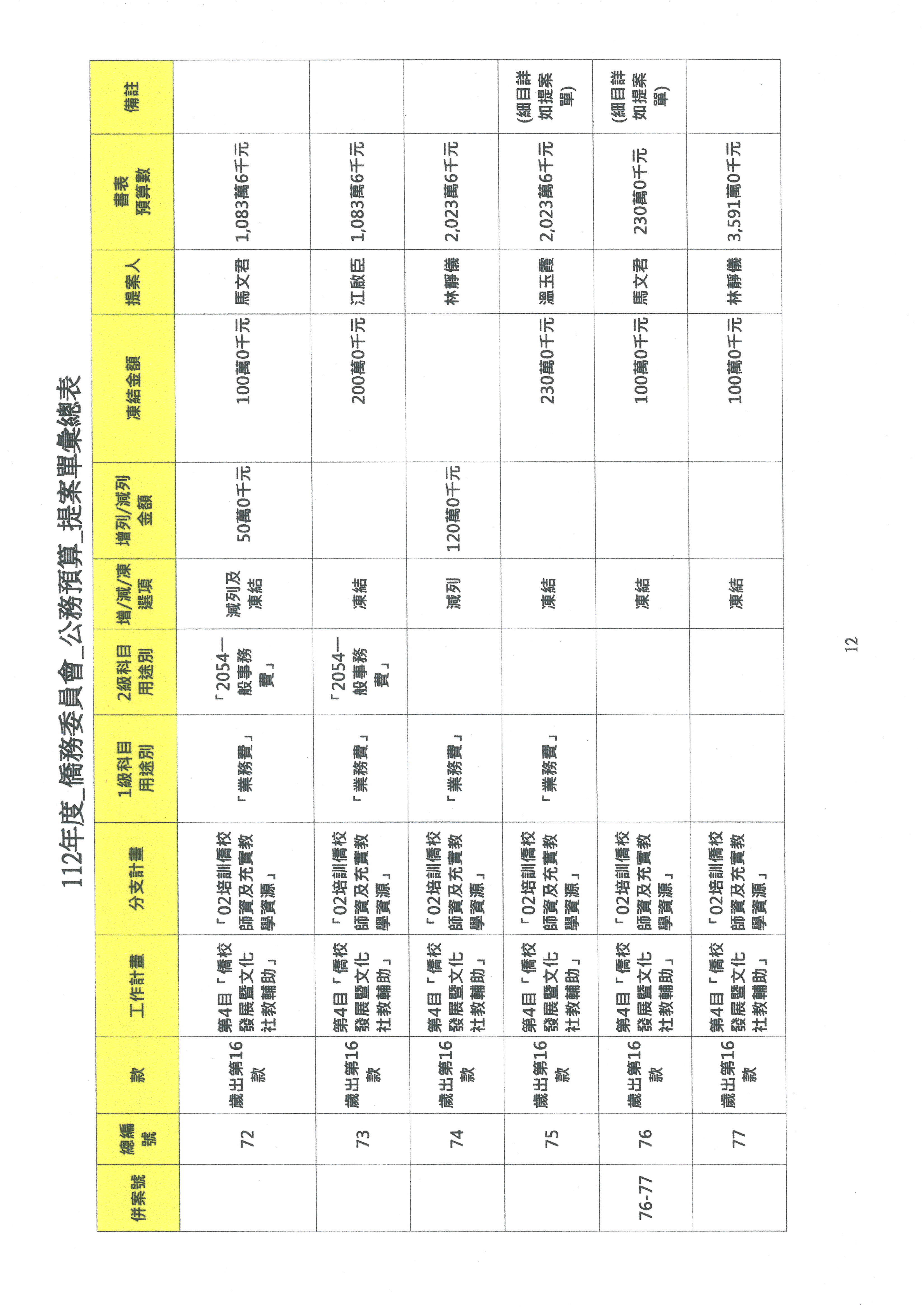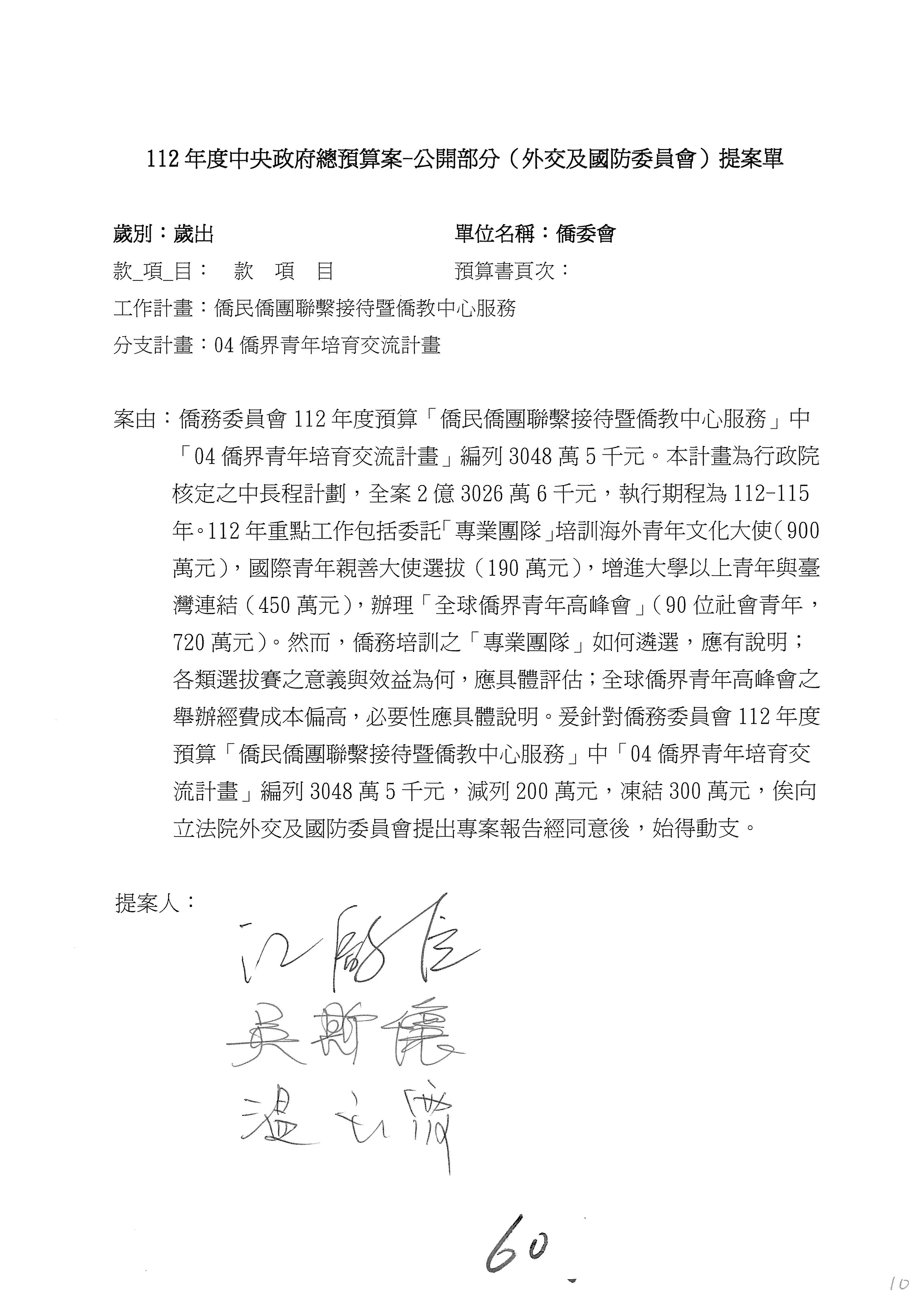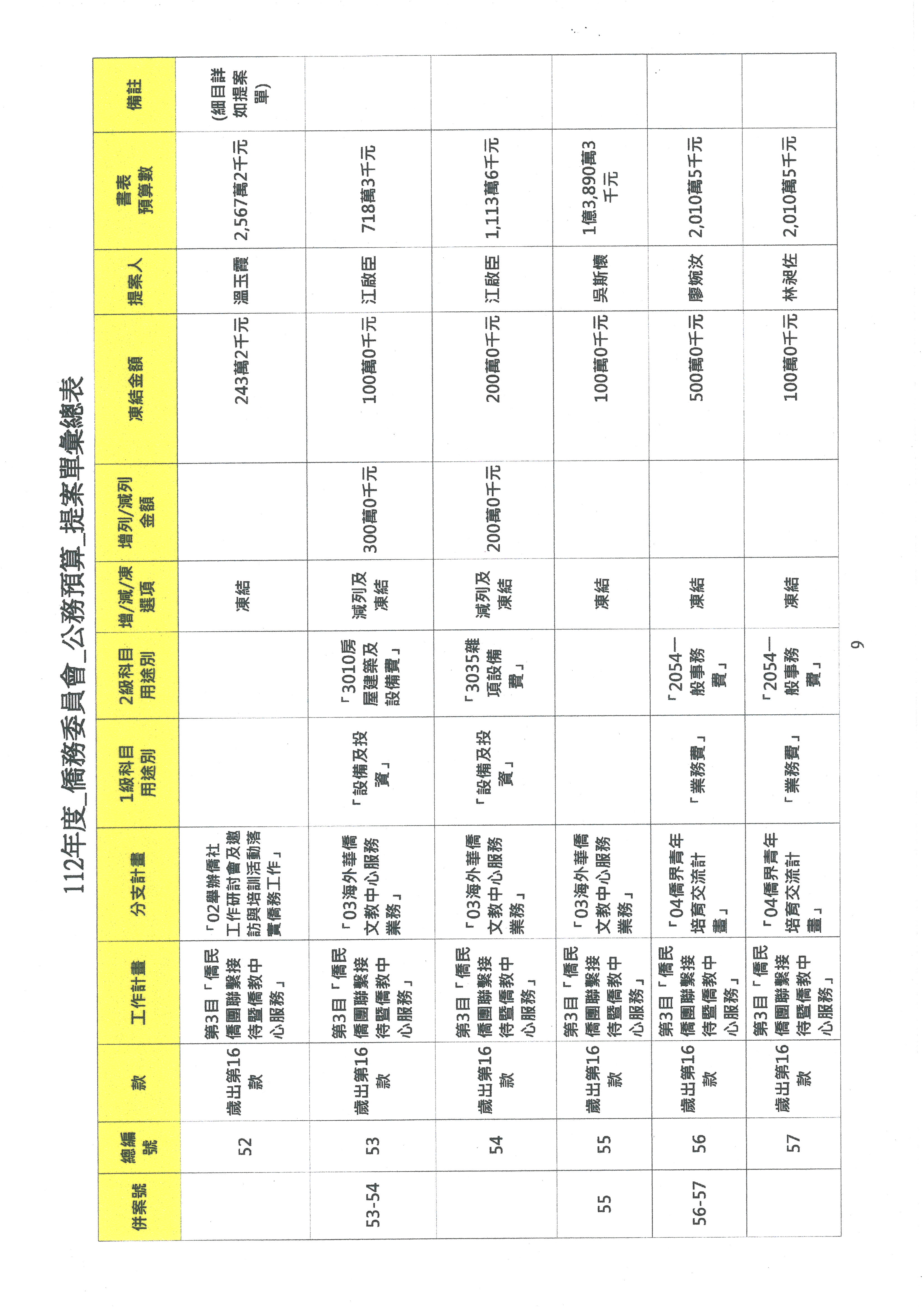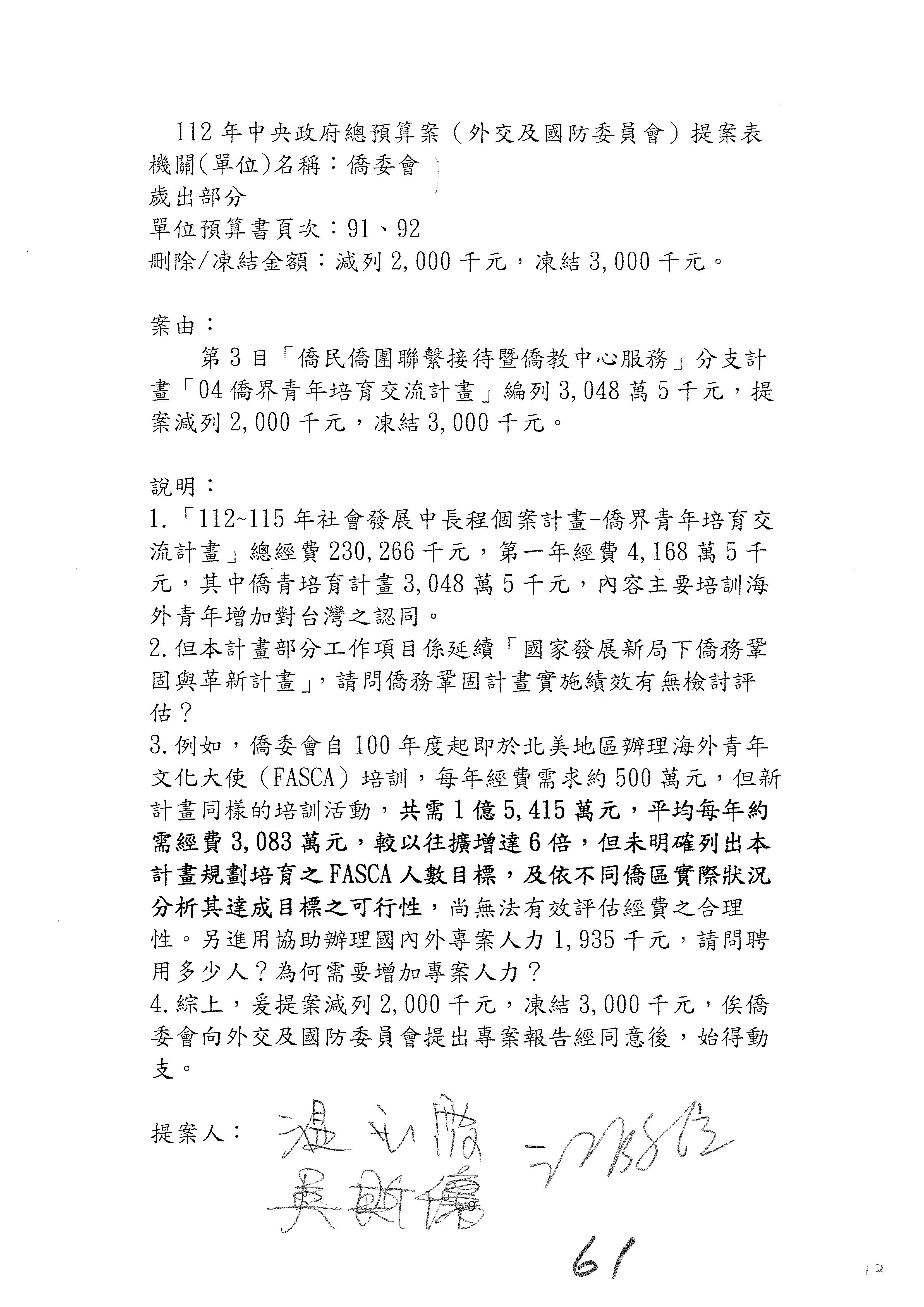 (二)112年度僑務委員會主管預算提案單(公開部分):