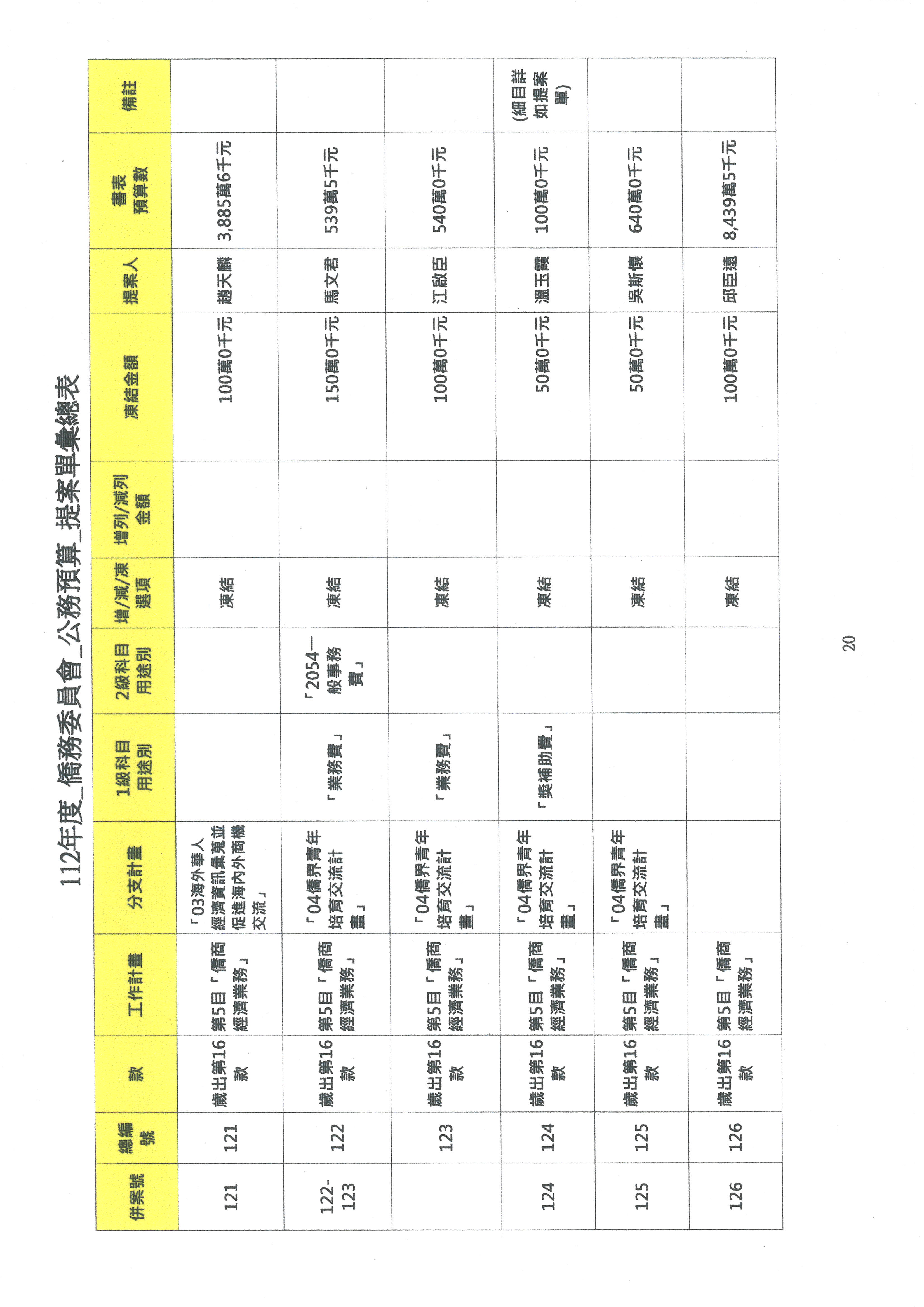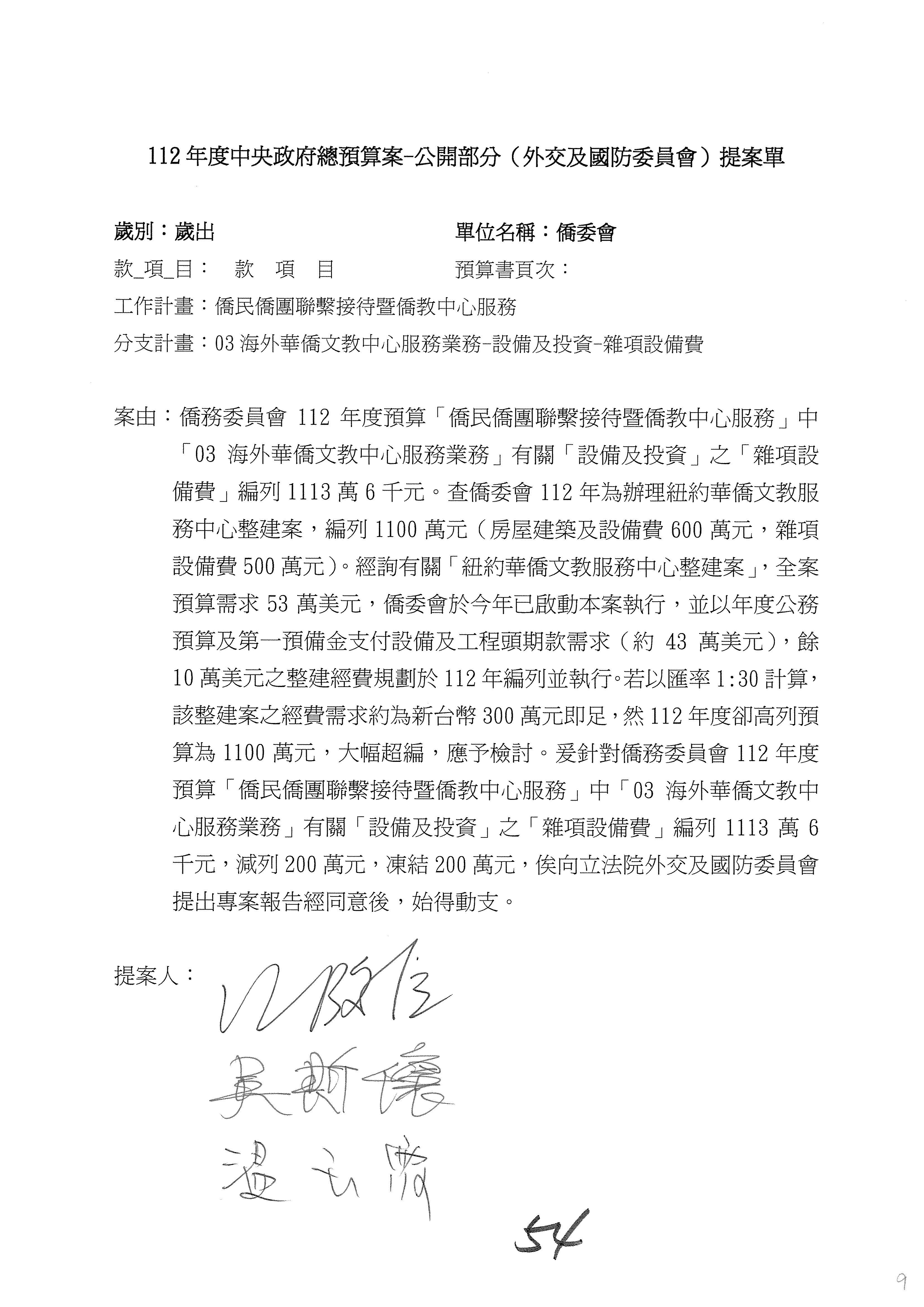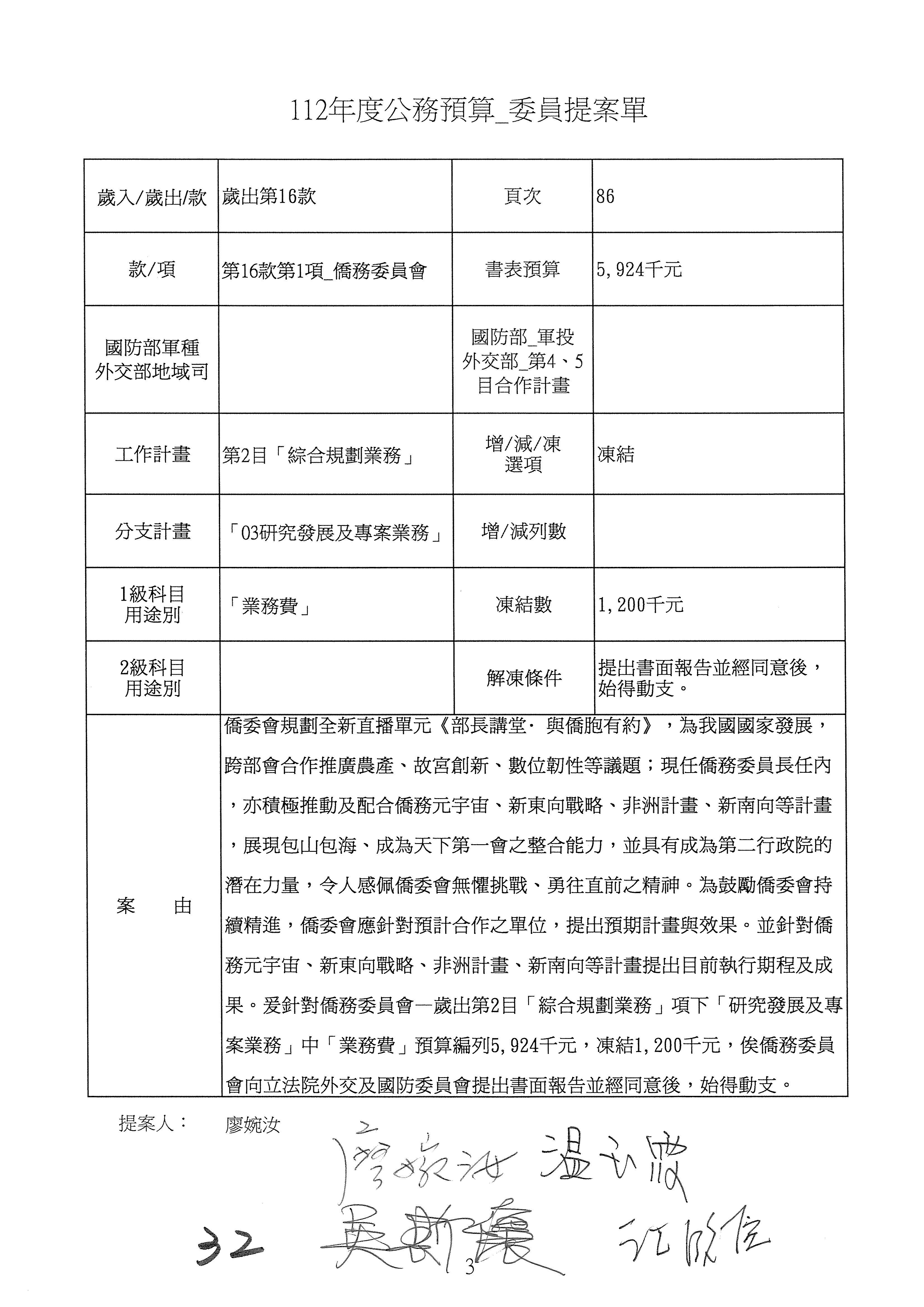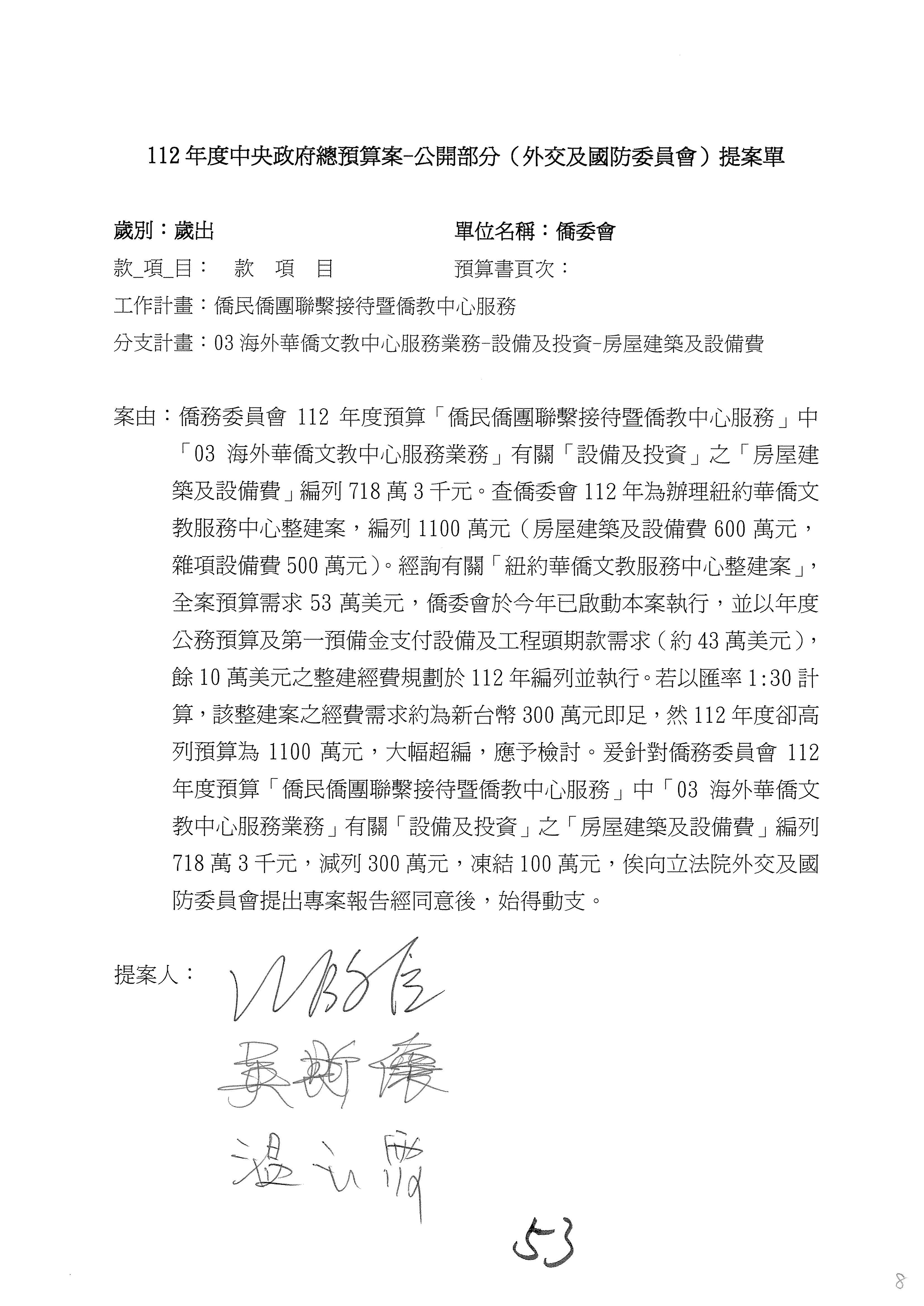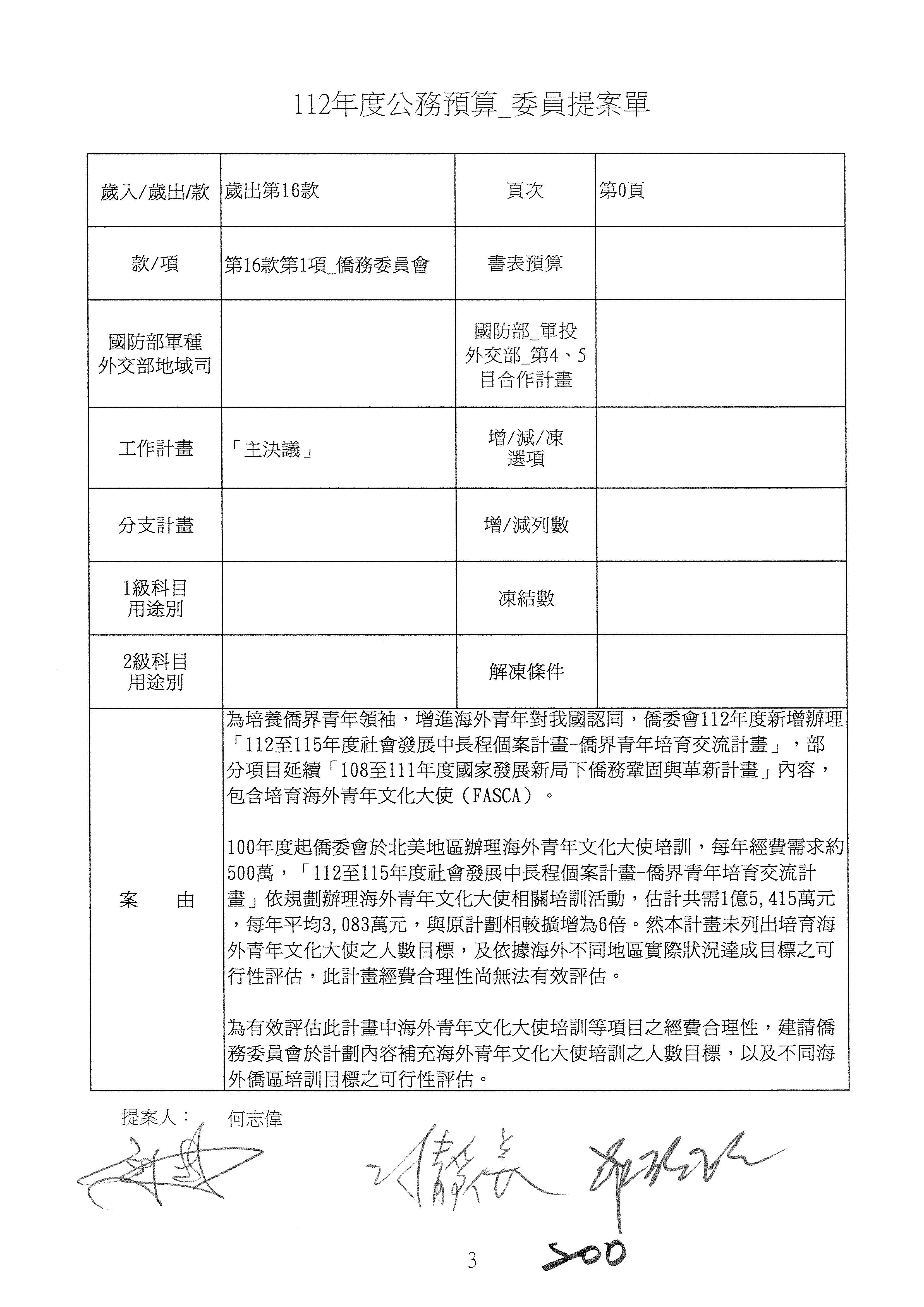 (二)112年度僑務委員會主管預算提案單(公開部分):