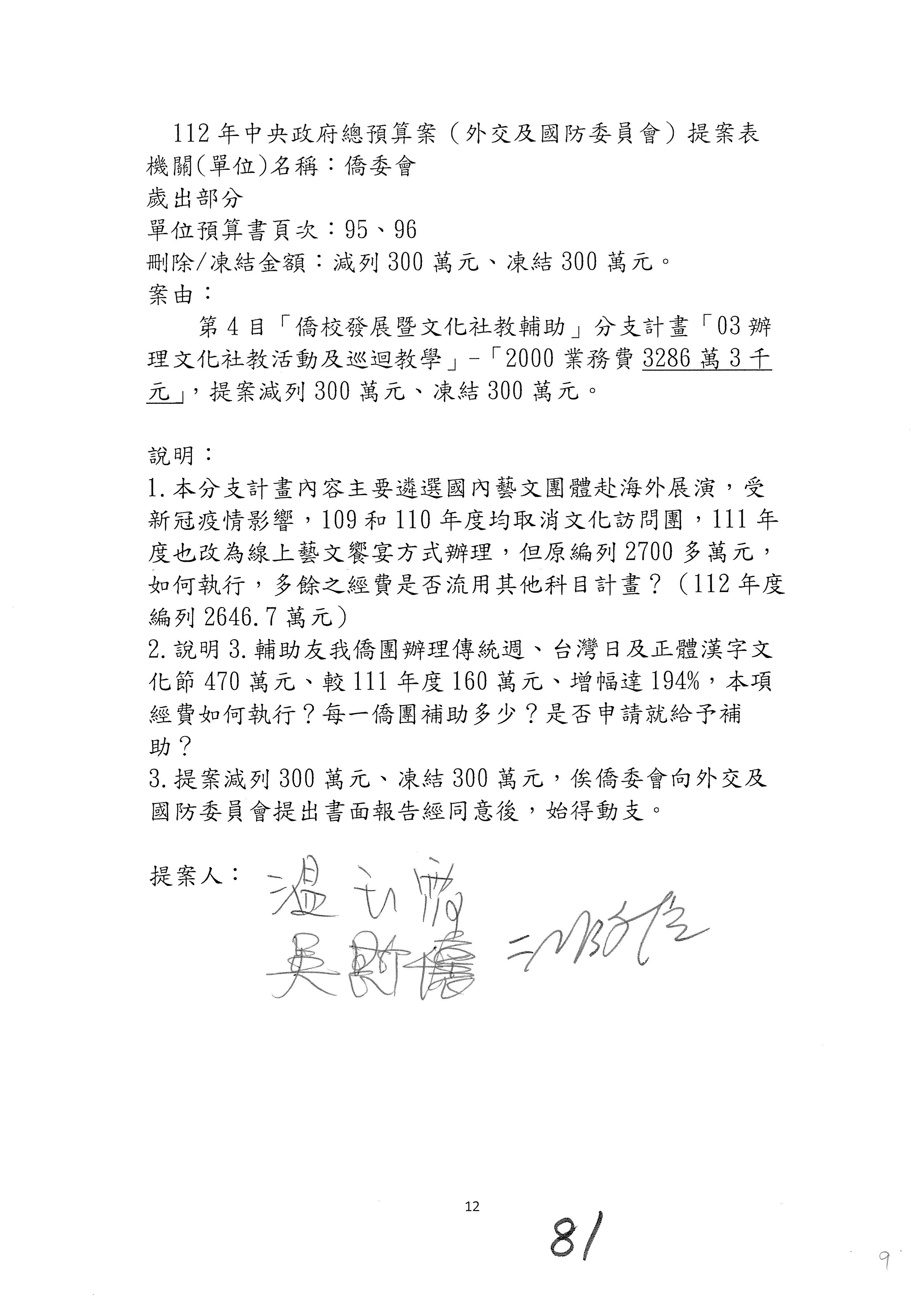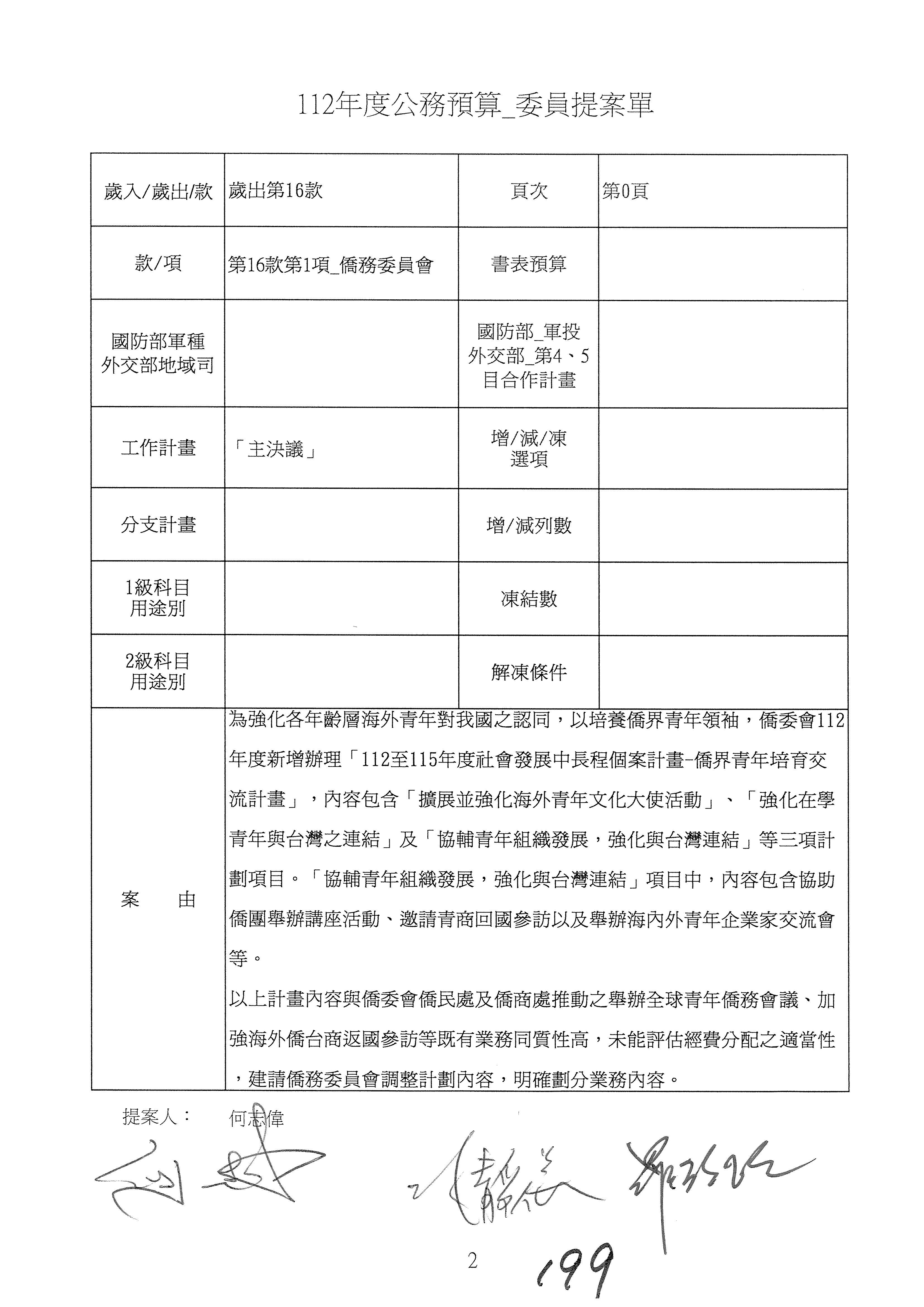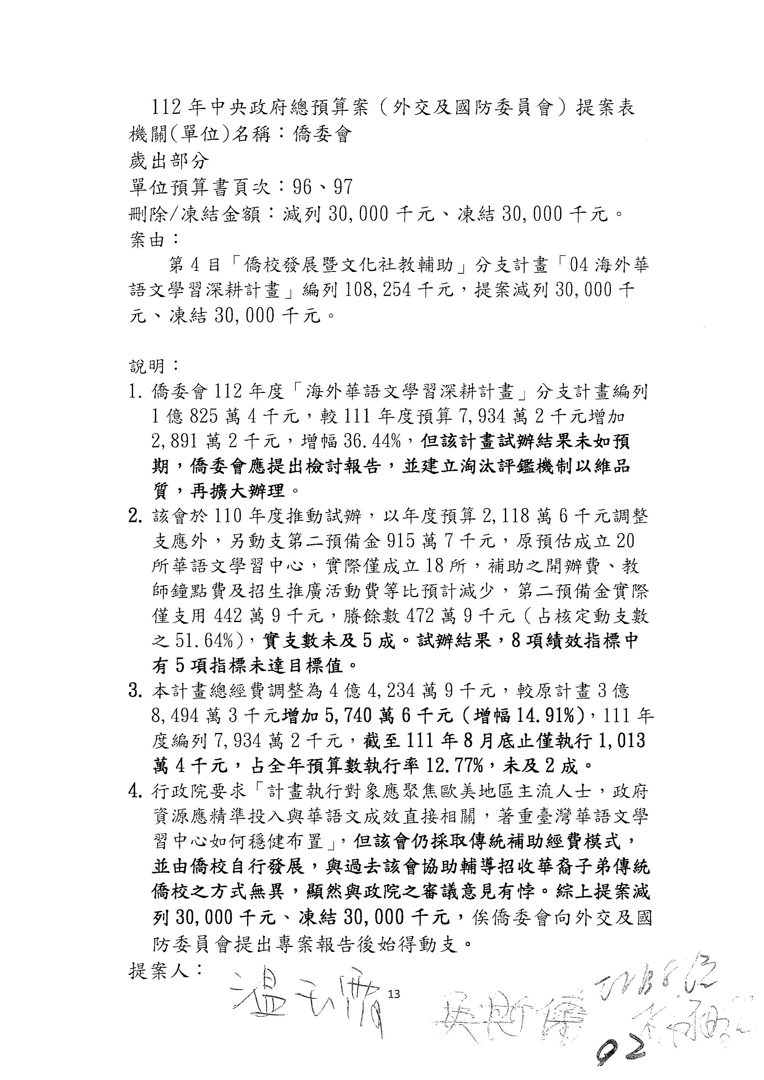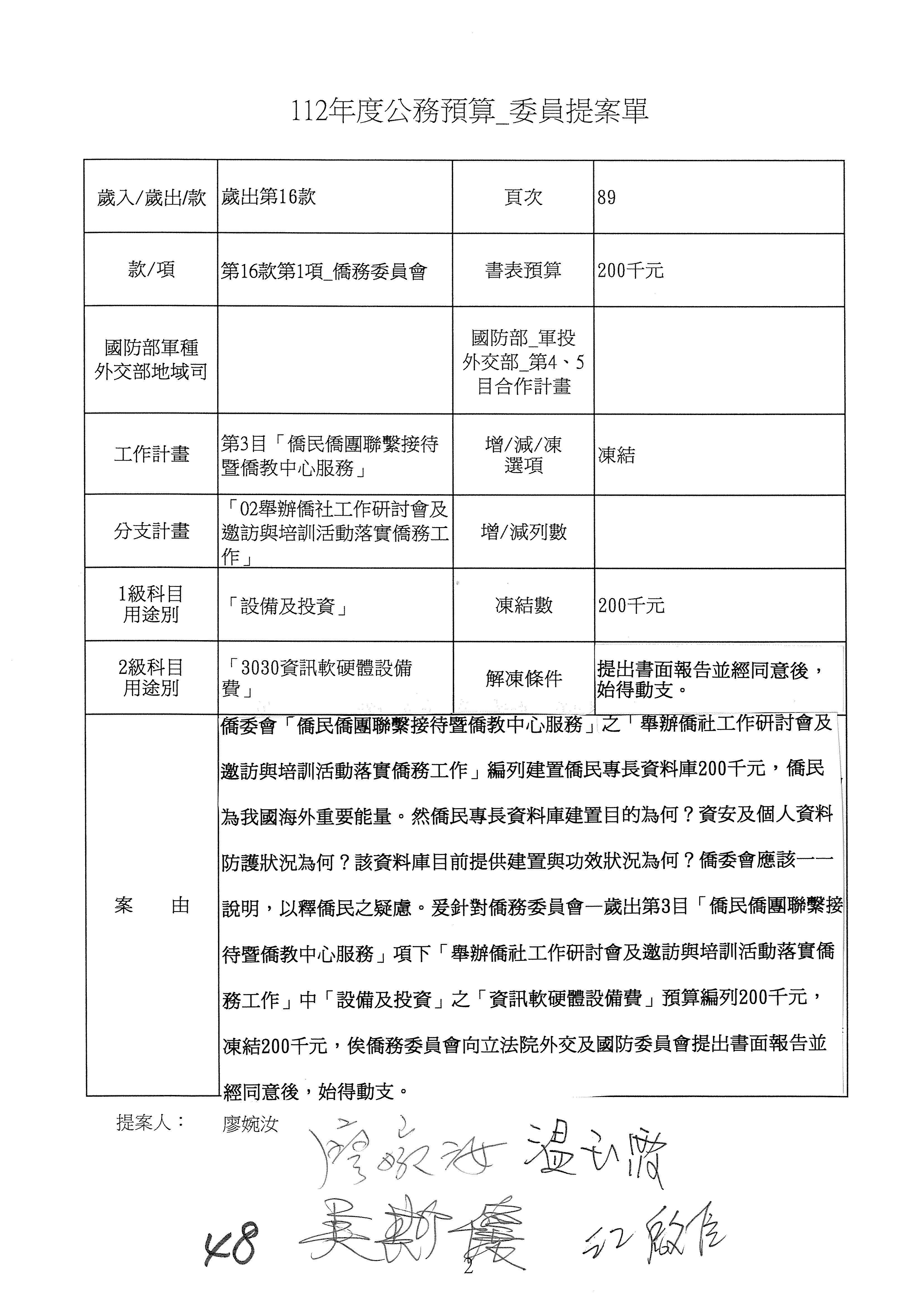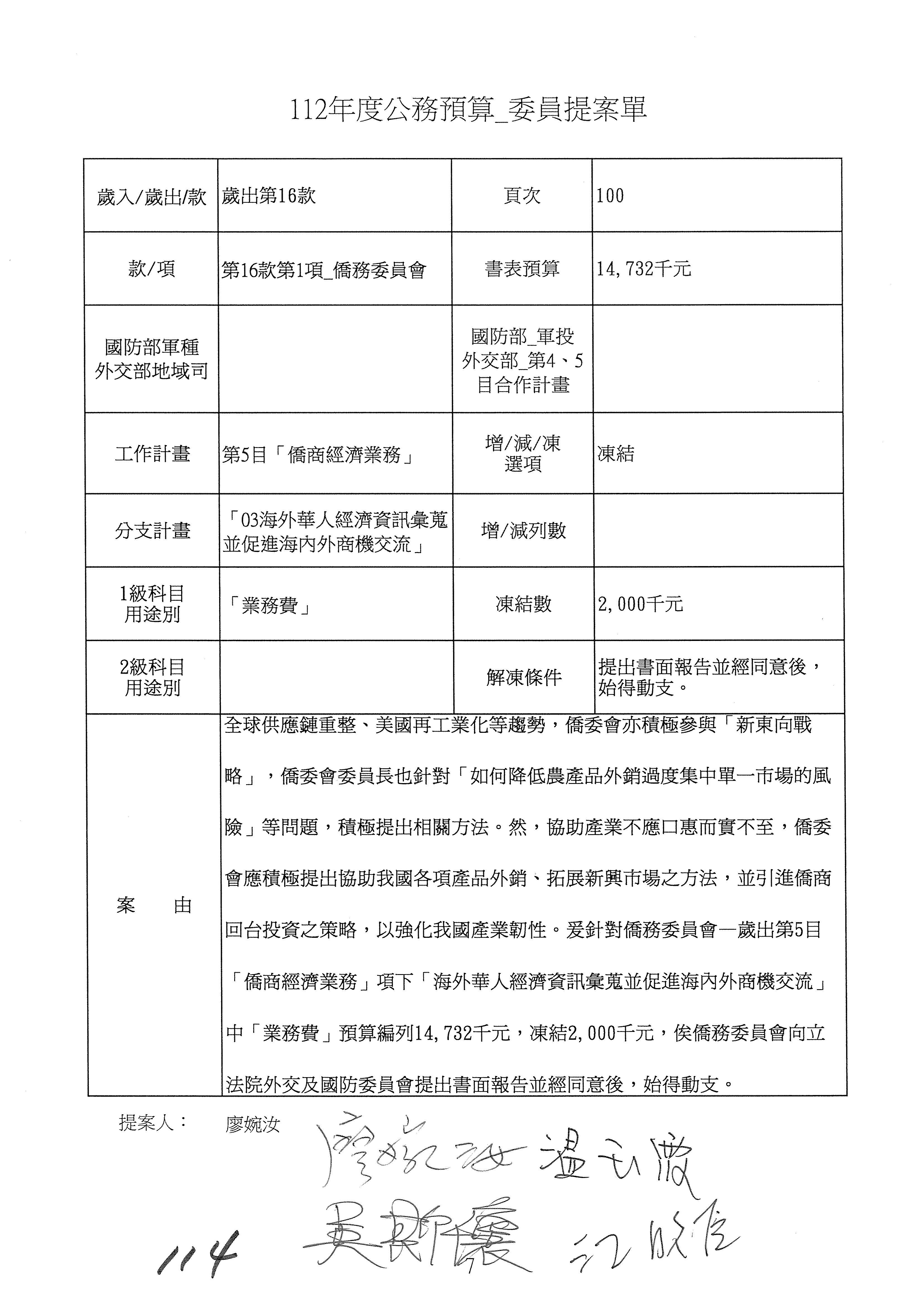 (二)112年度僑務委員會主管預算提案單(公開部分):