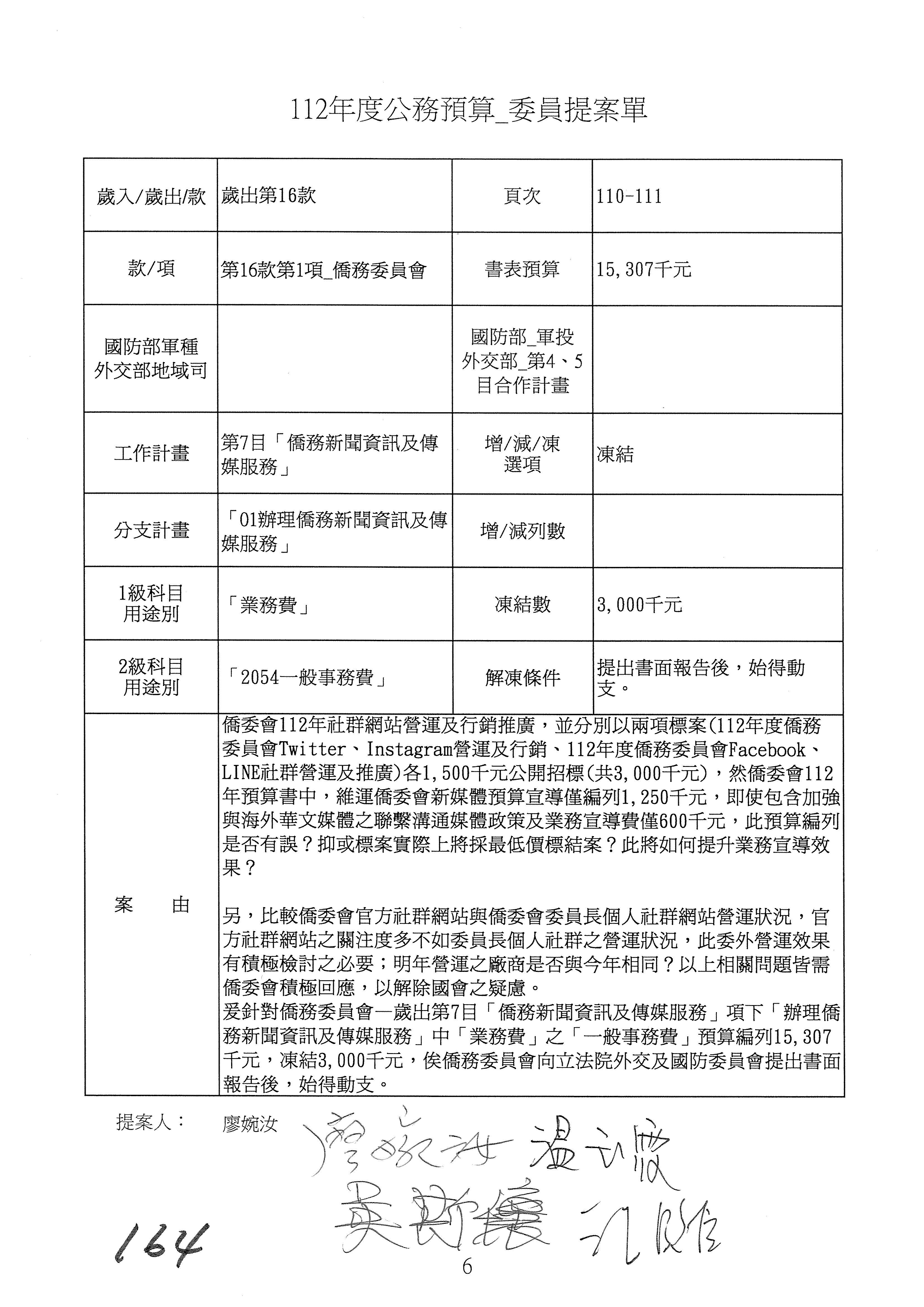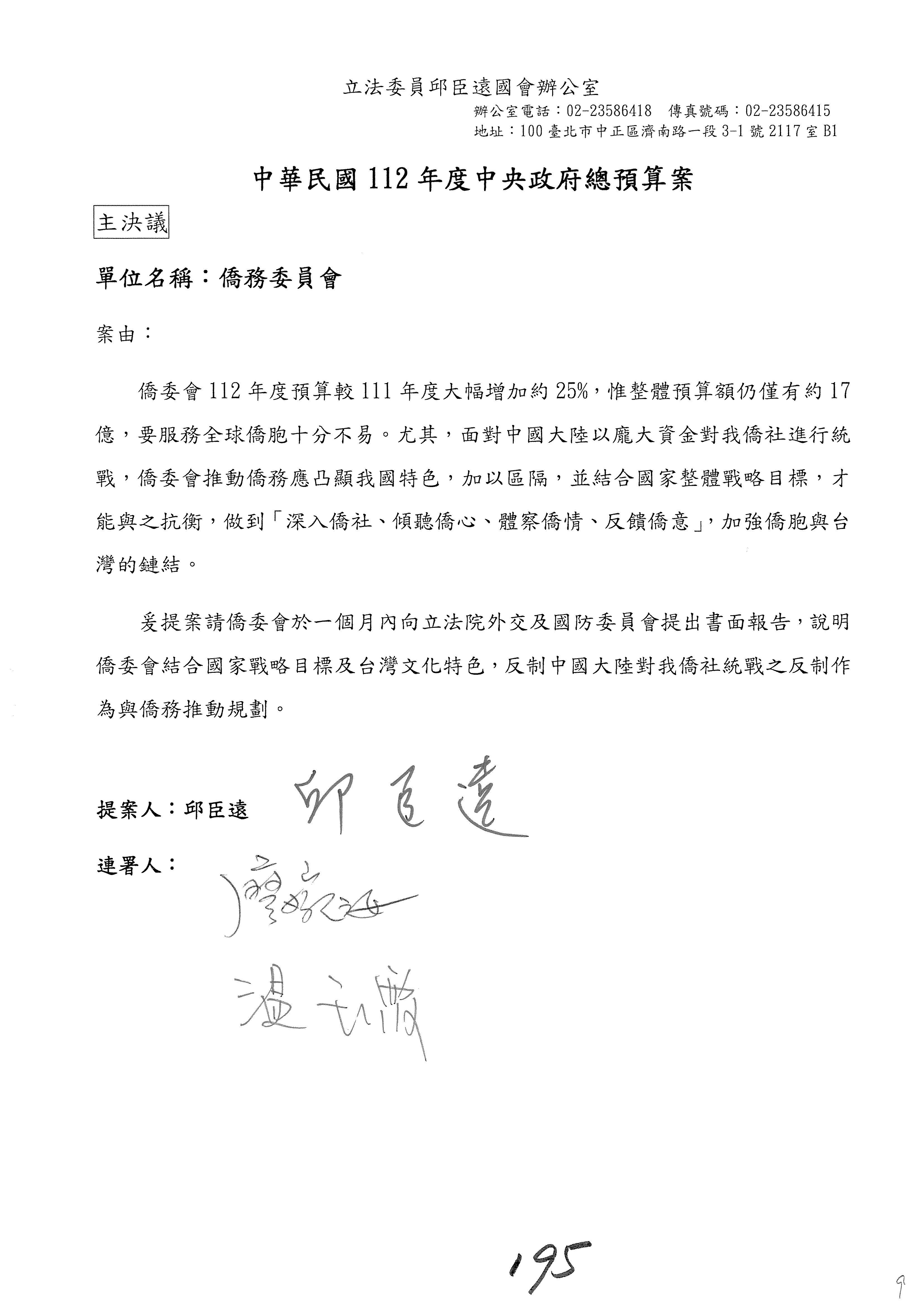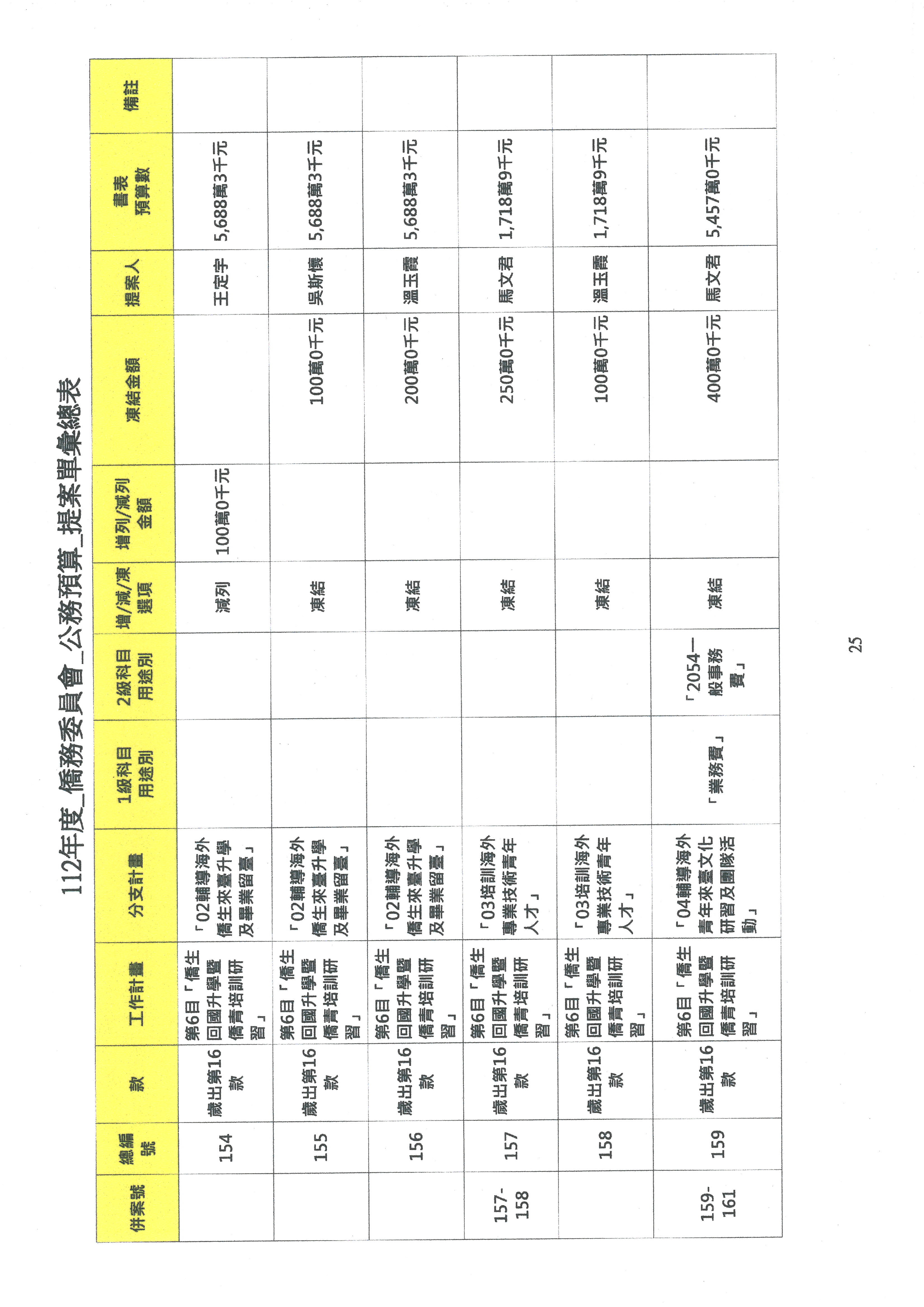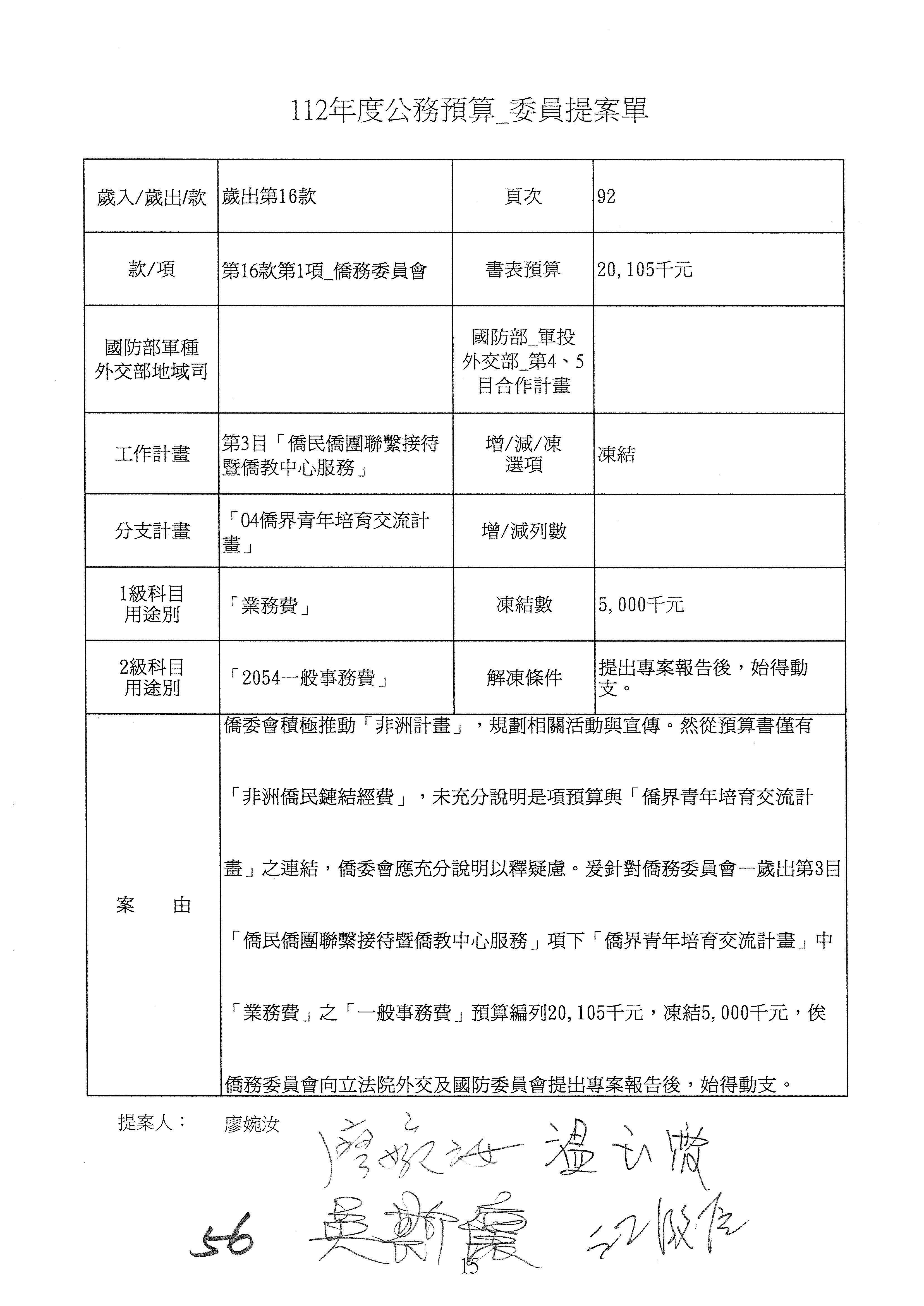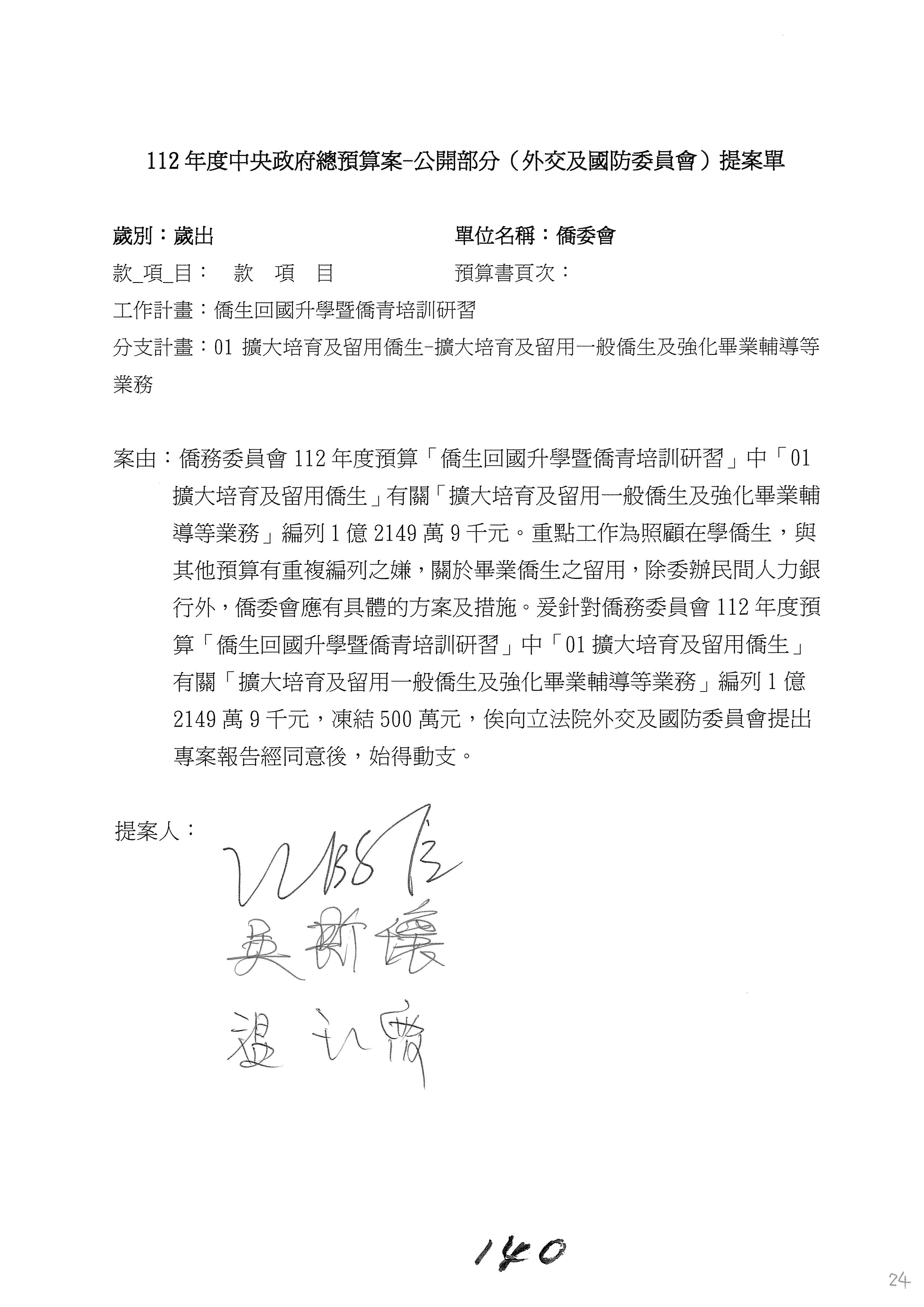 (二)112年度僑務委員會主管預算提案單(公開部分):