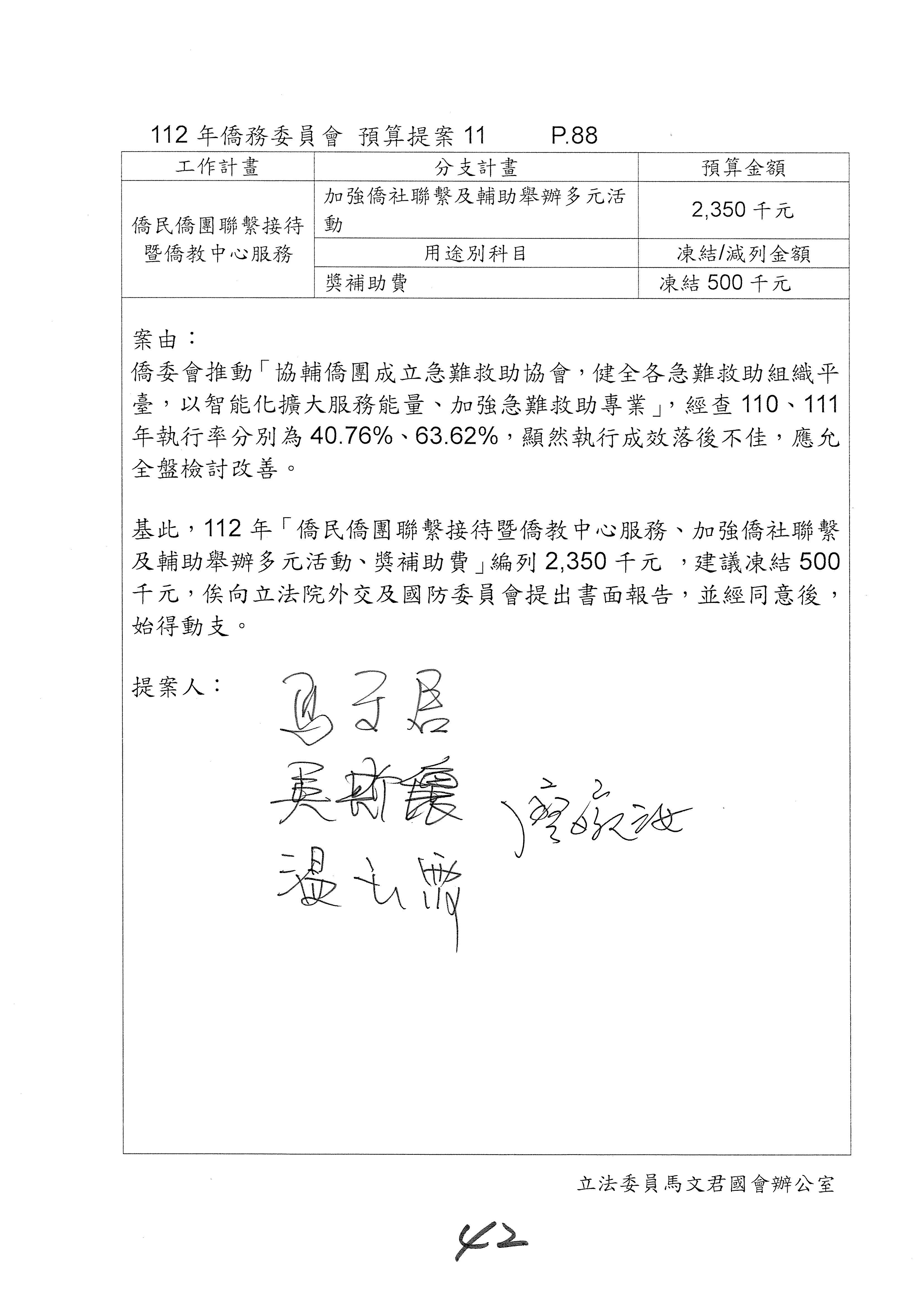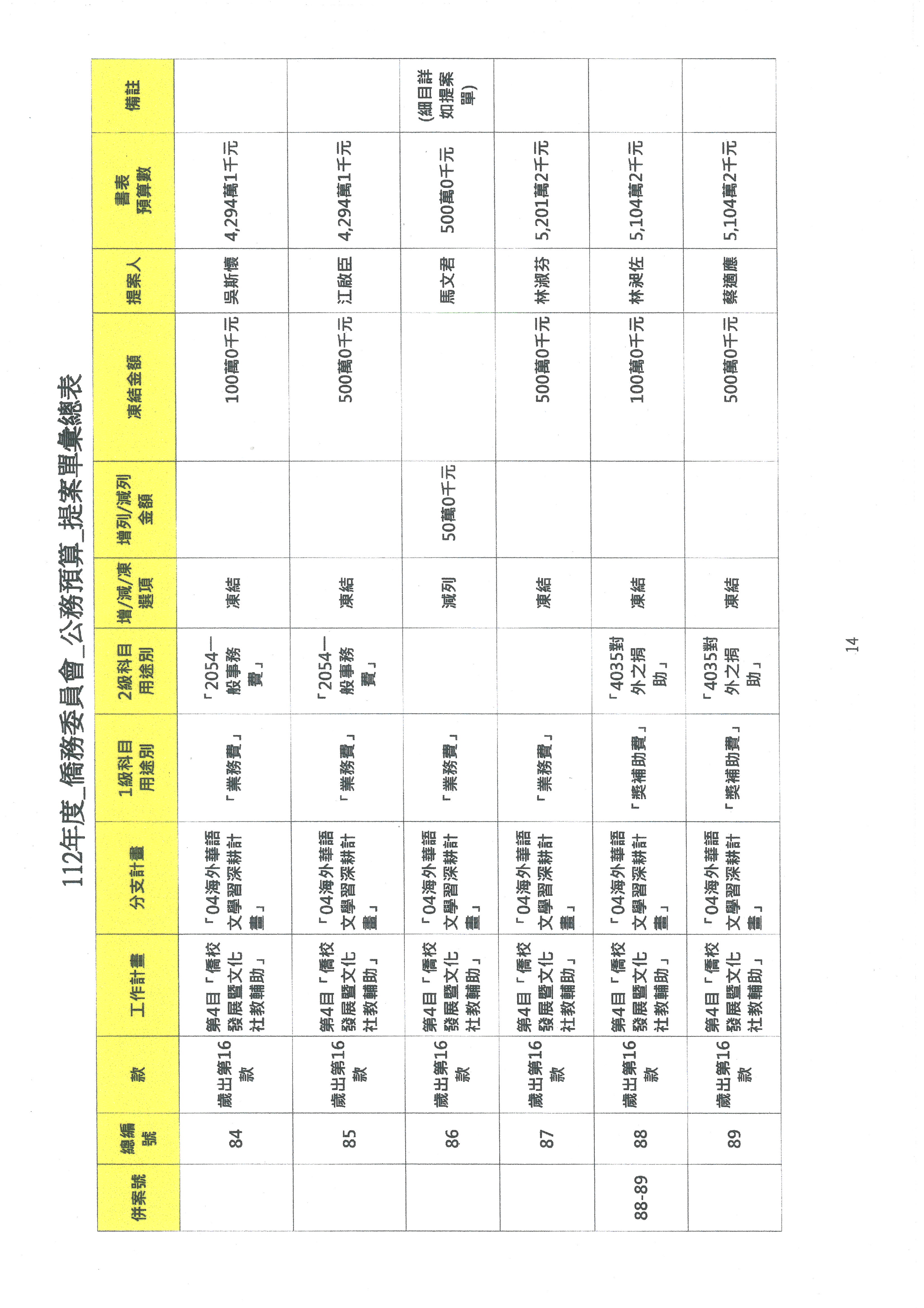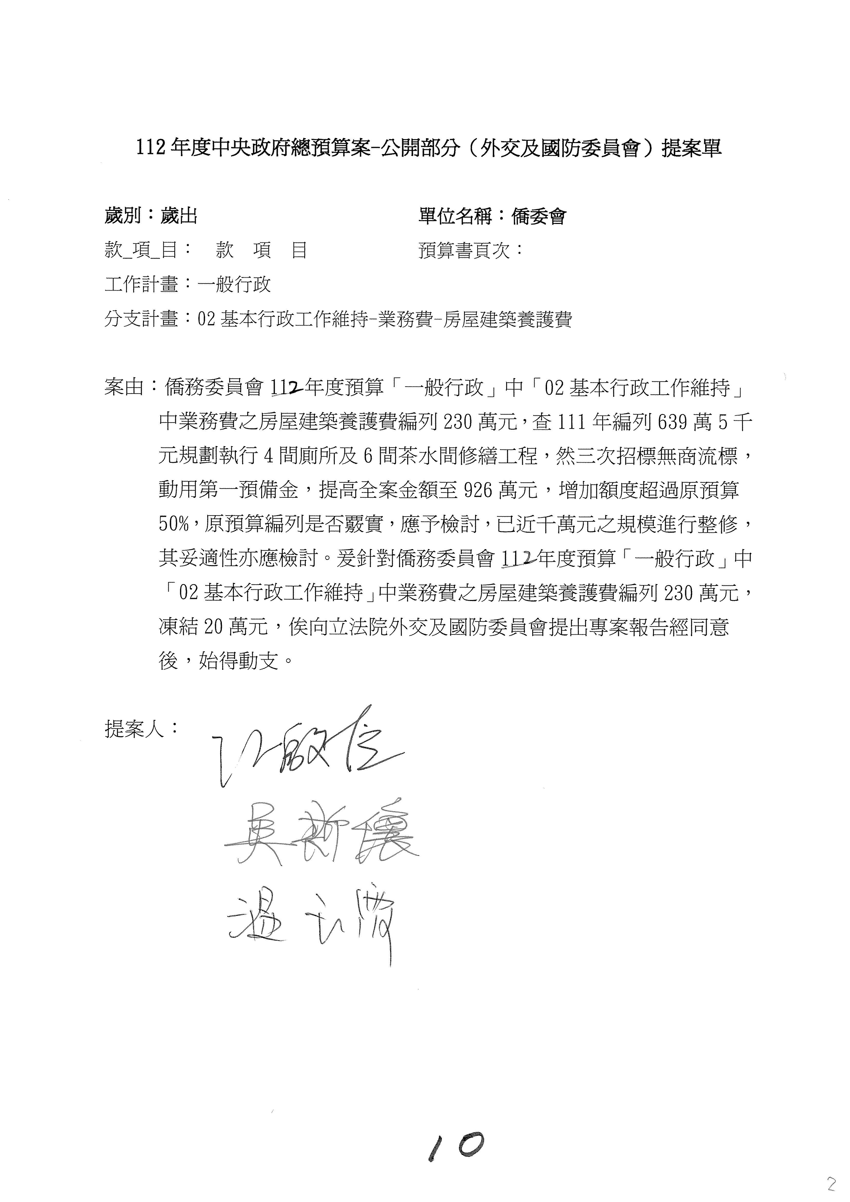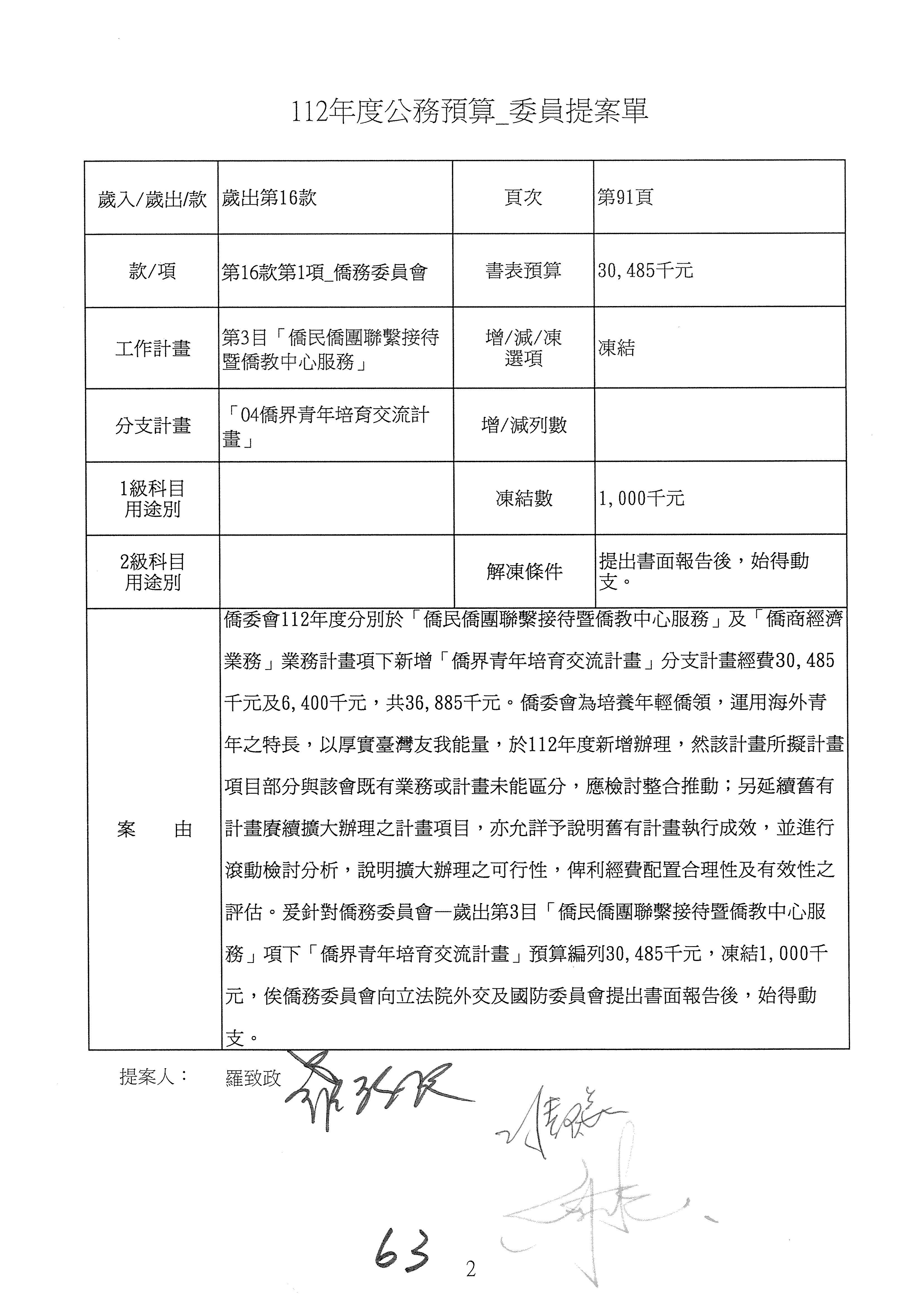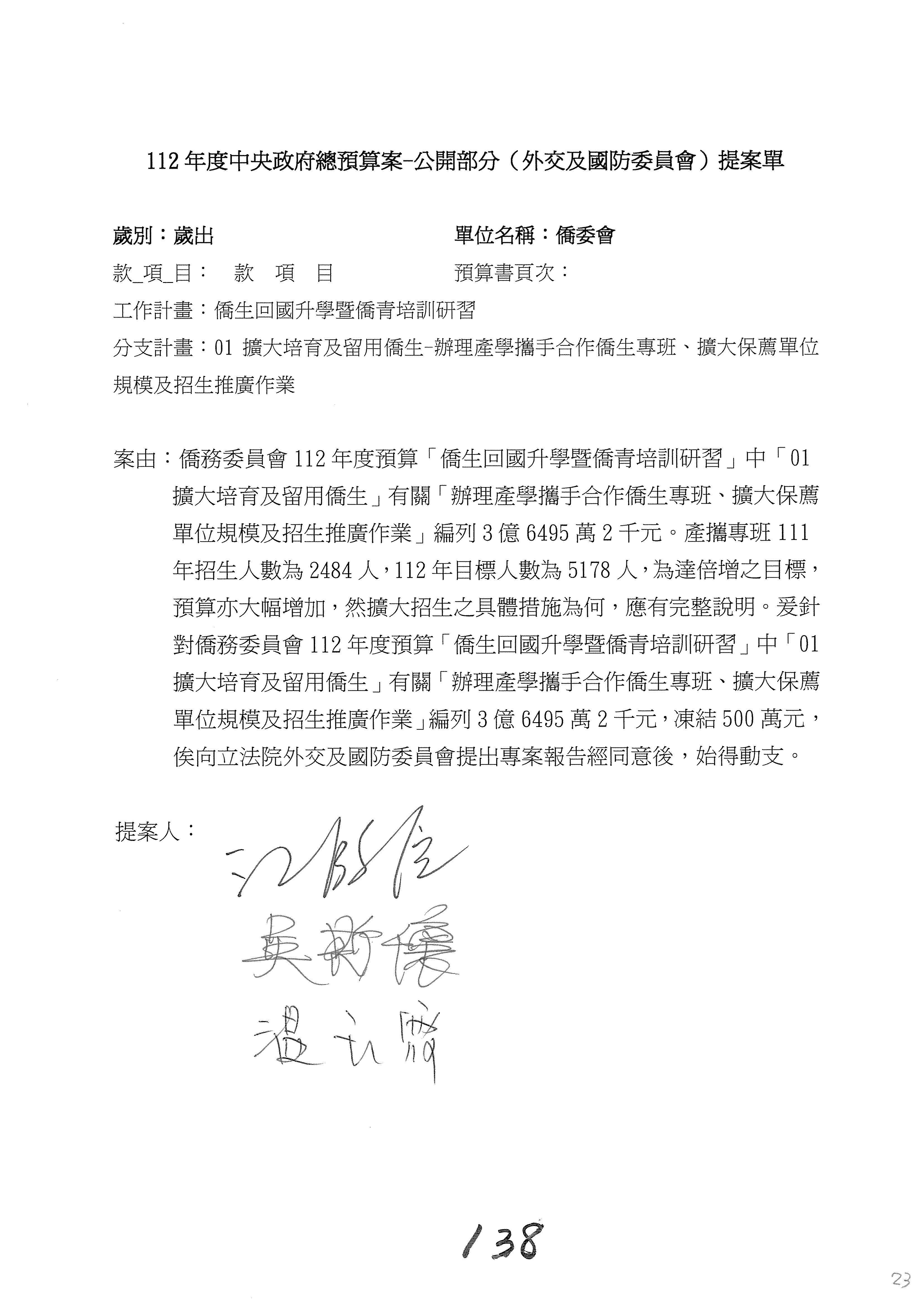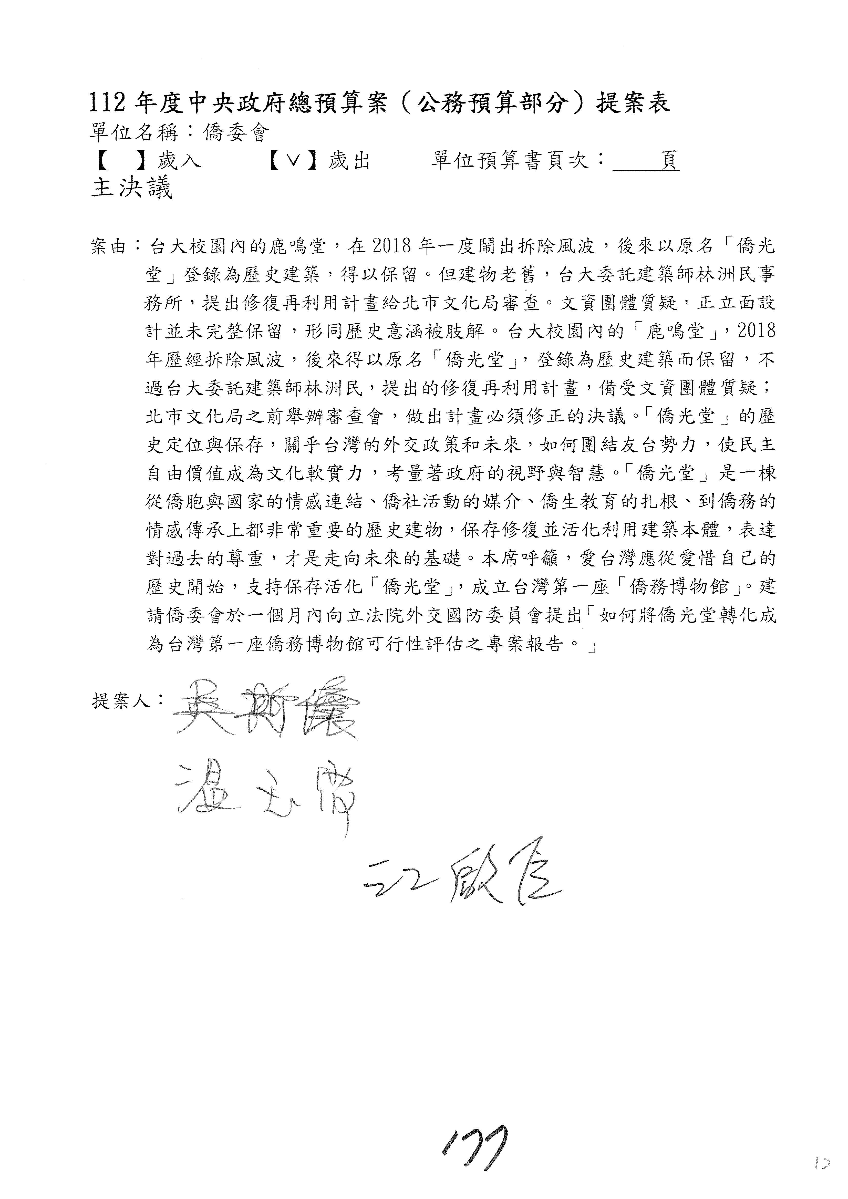 (二)112年度僑務委員會主管預算提案單(公開部分):
