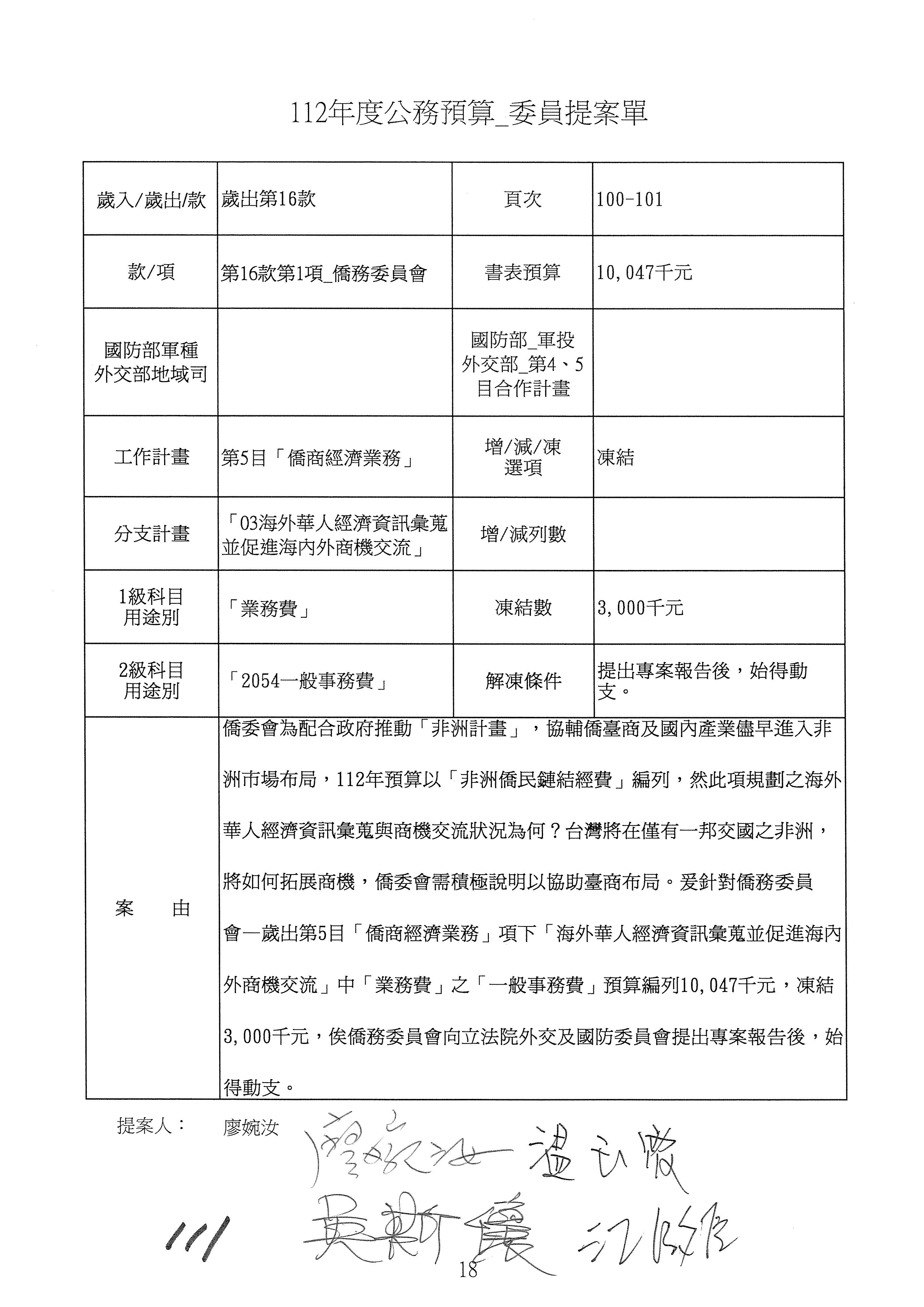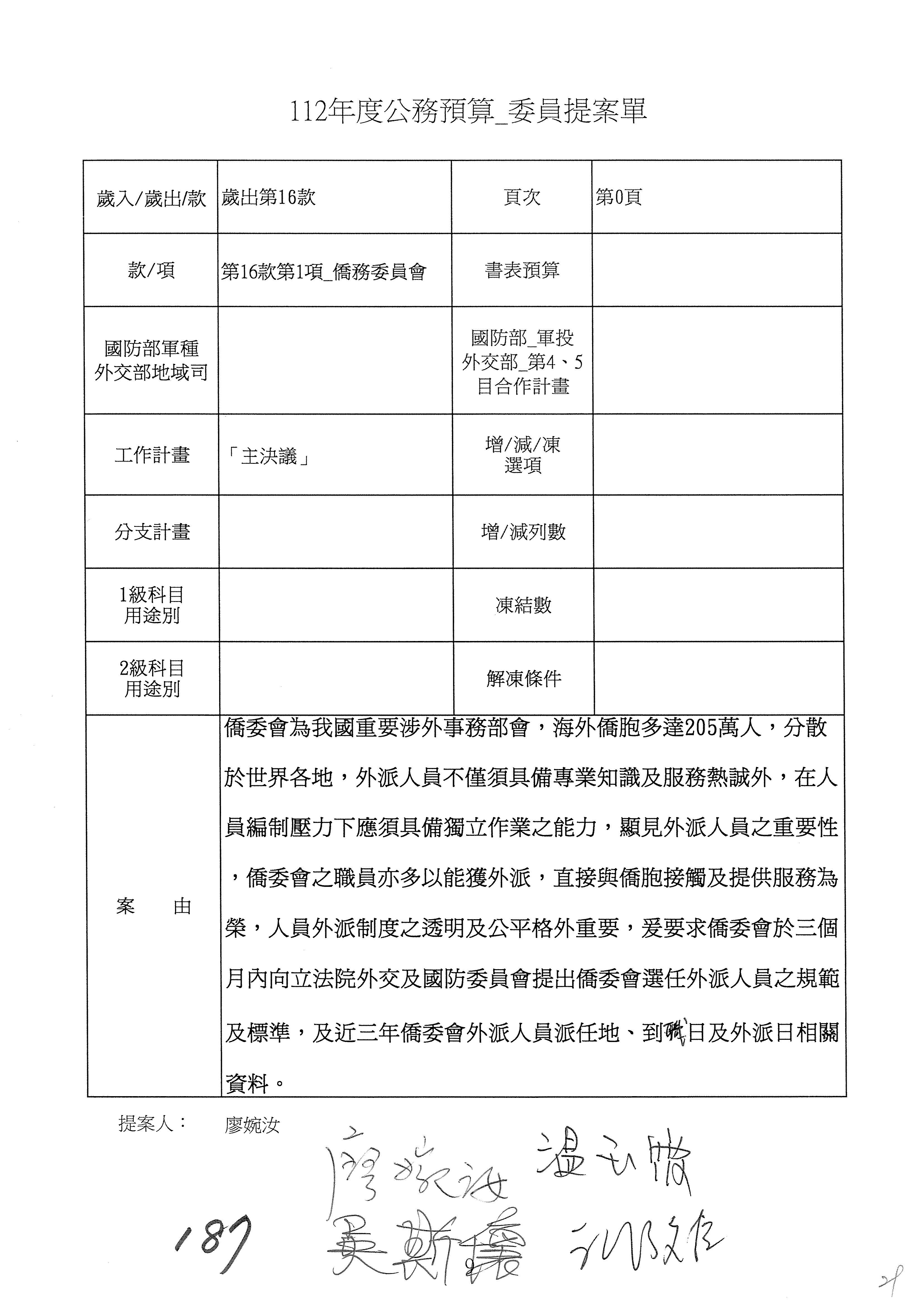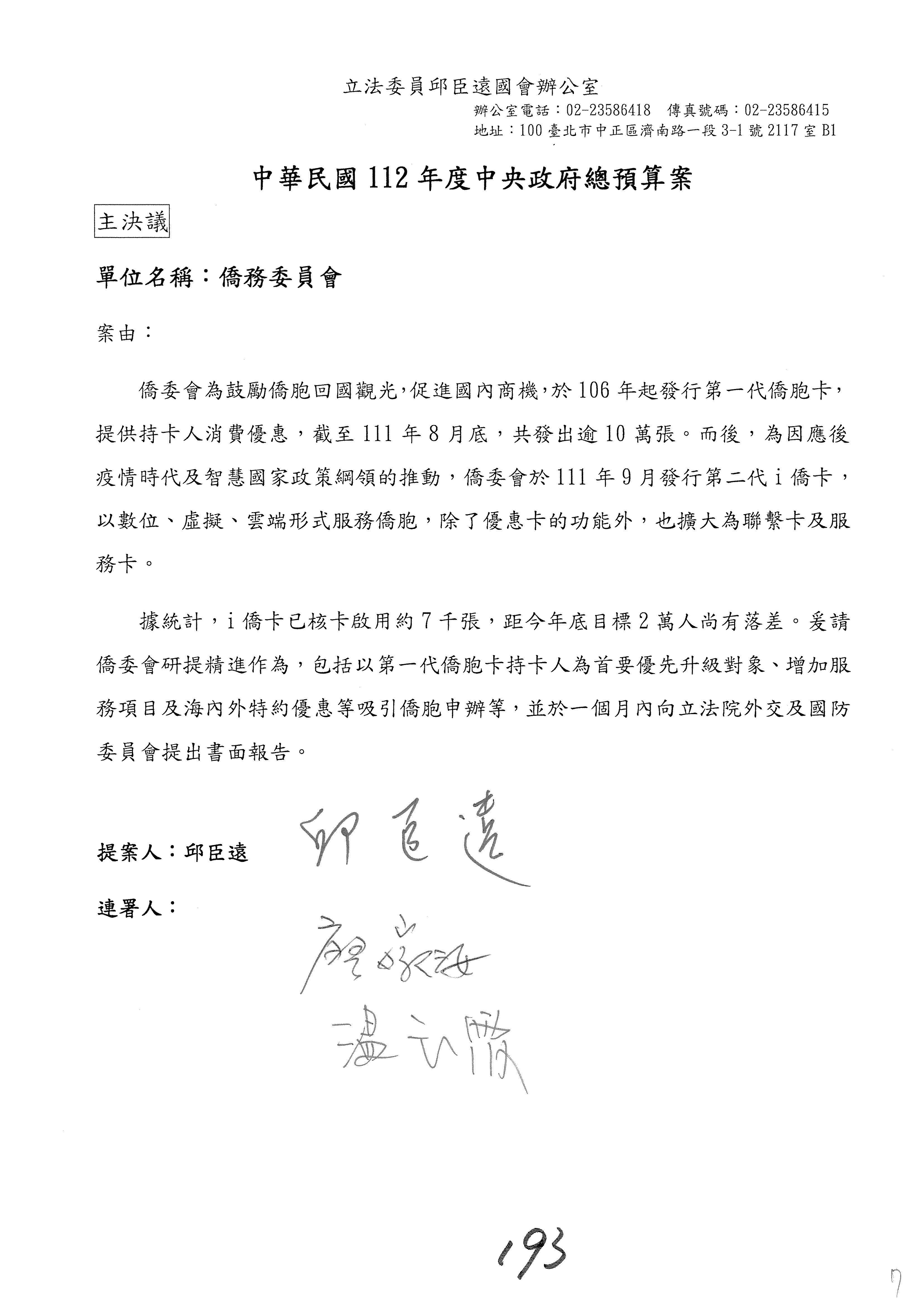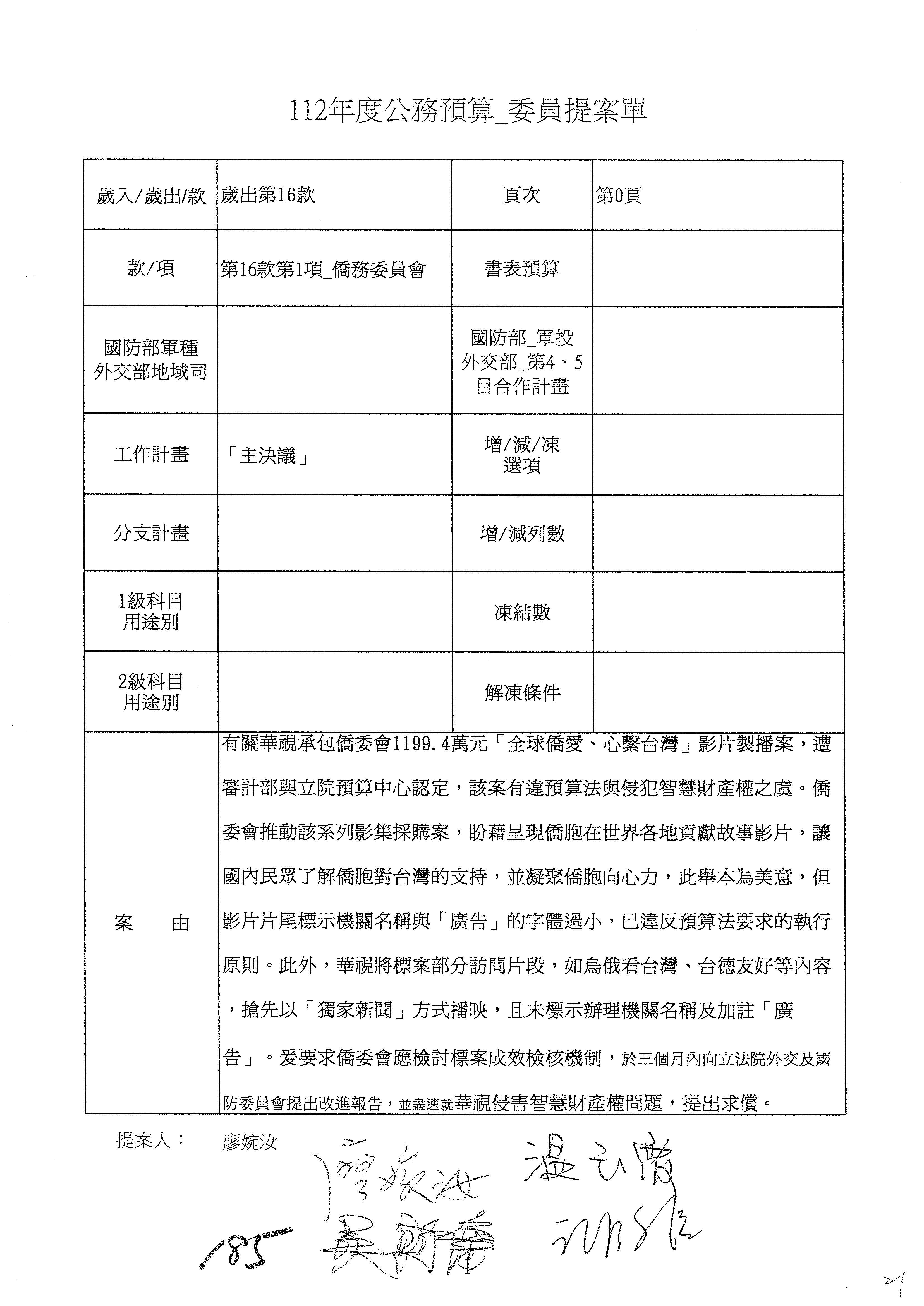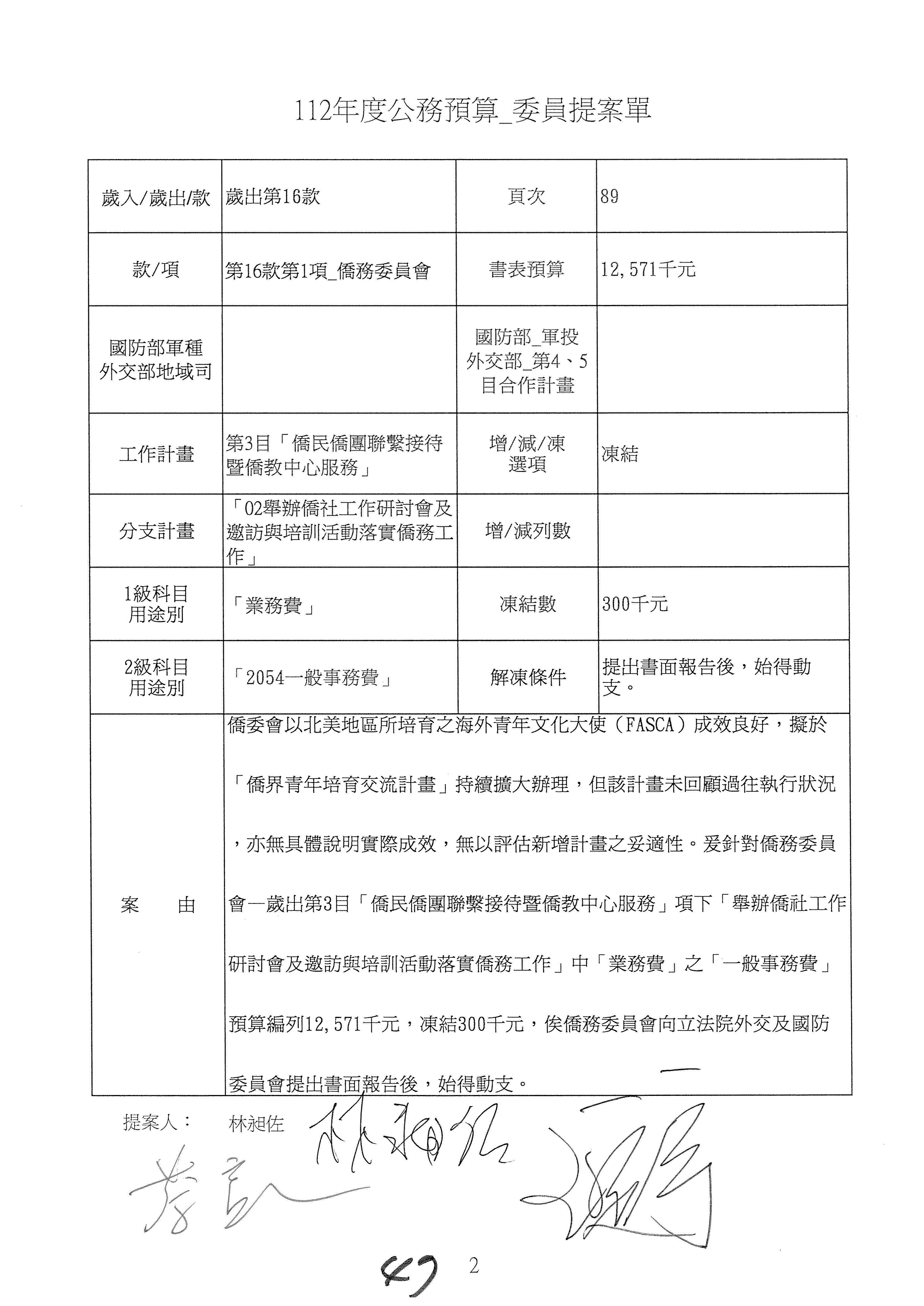 (二)112年度僑務委員會主管預算提案單(公開部分):